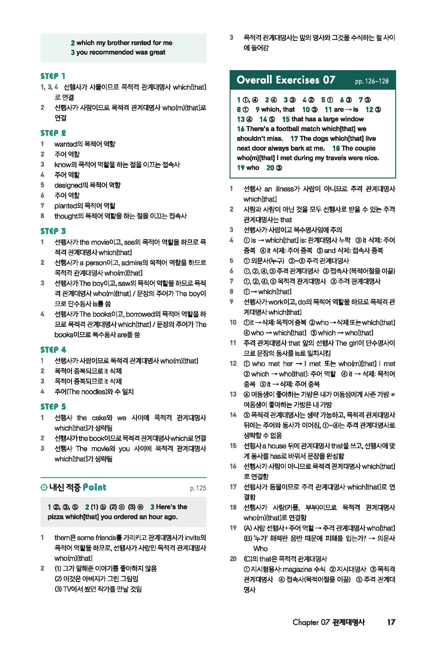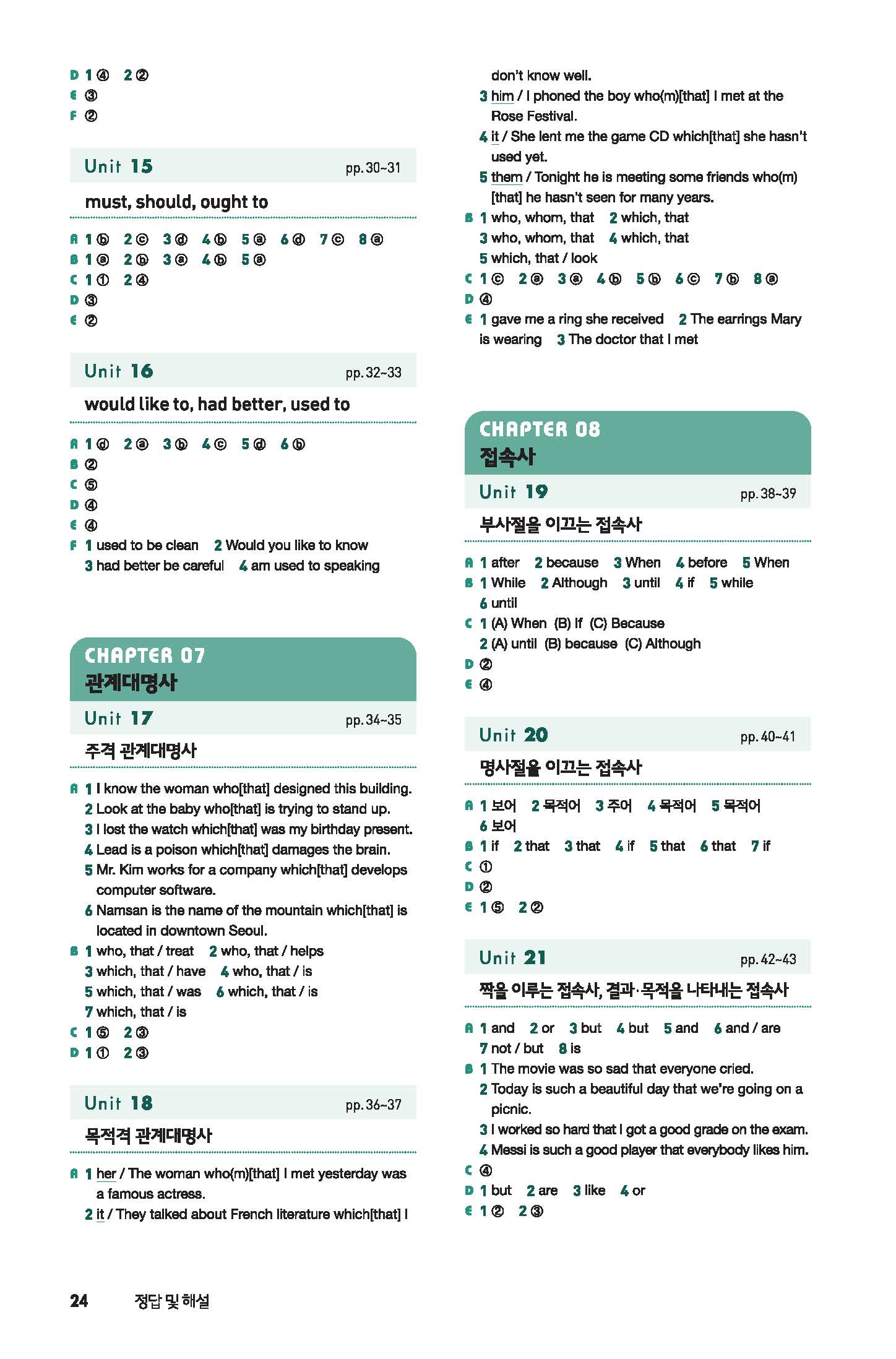 2020개정 그래머큐 그래마큐 GrammarQ Intermediate1 인터 1 답지 사진답지 빠른답지 모바일최적화