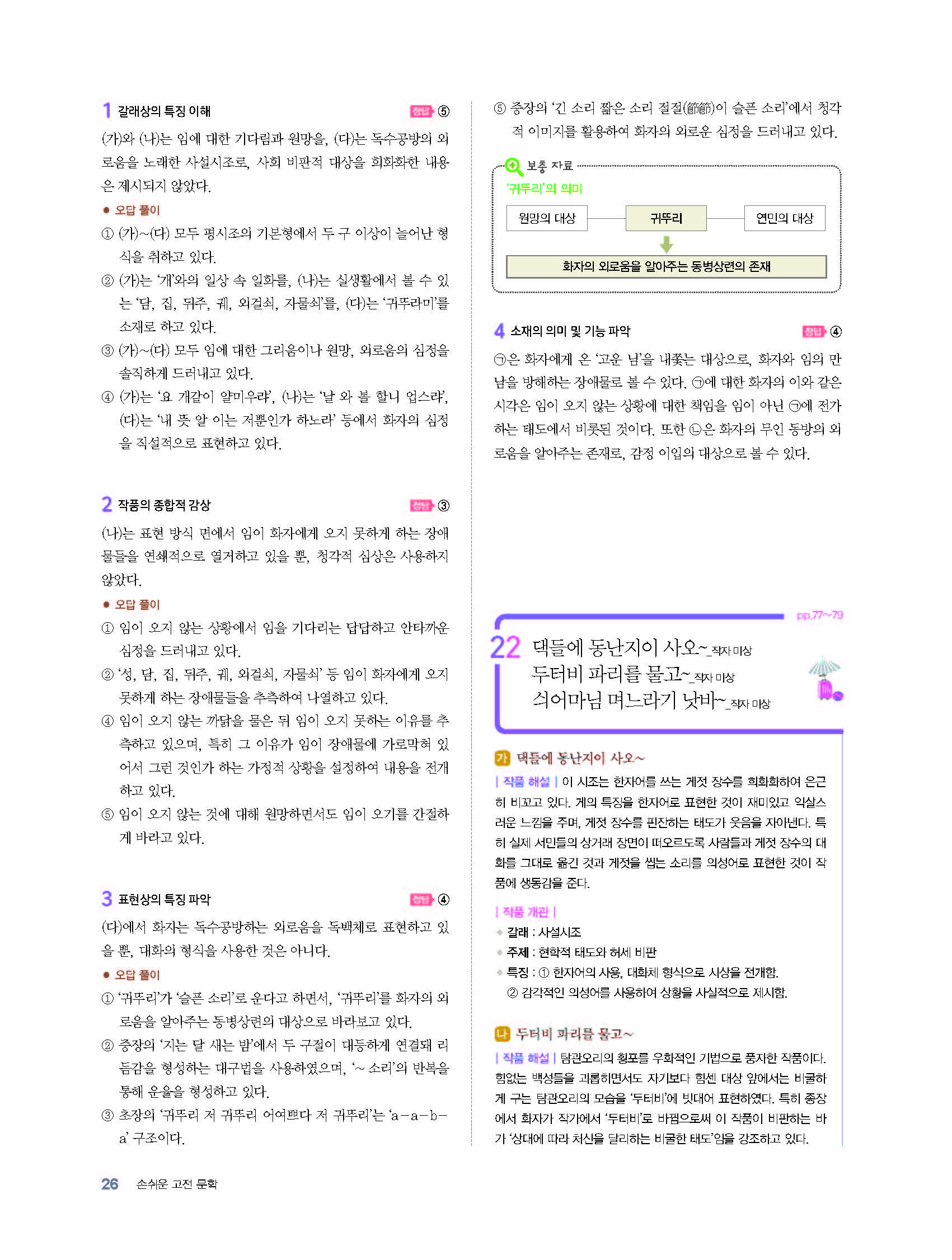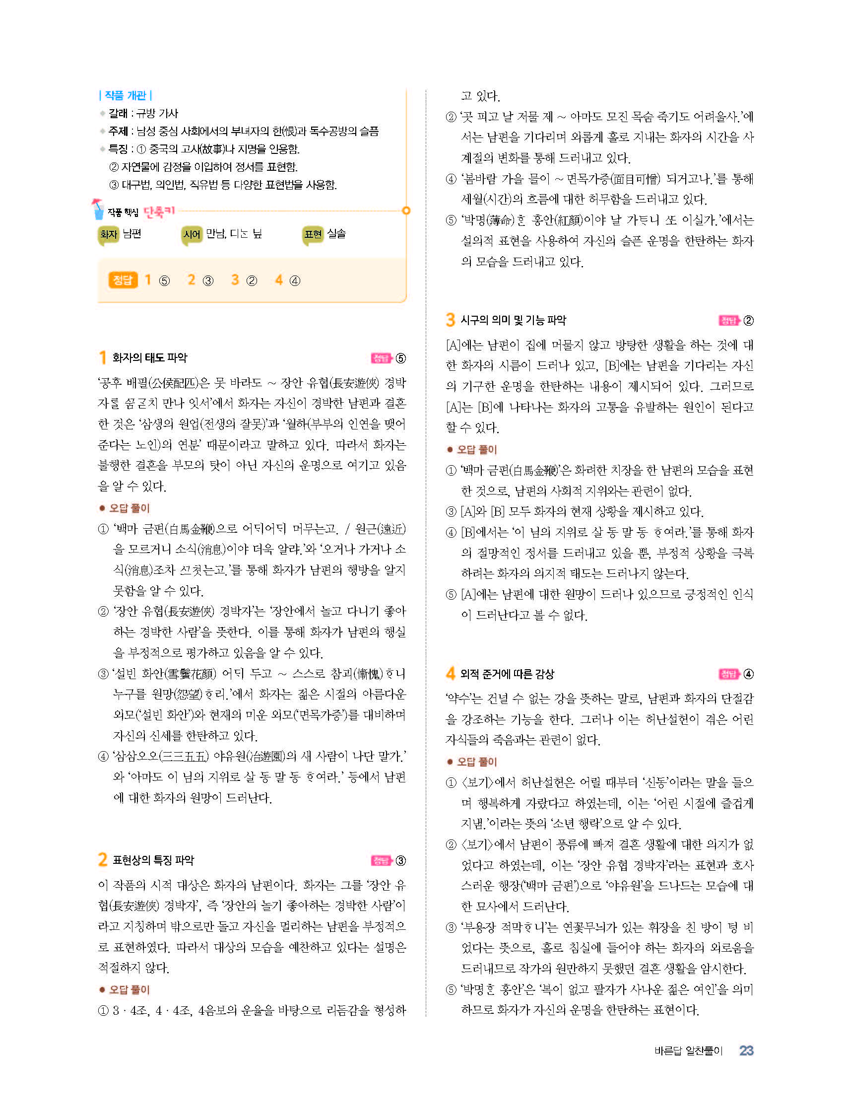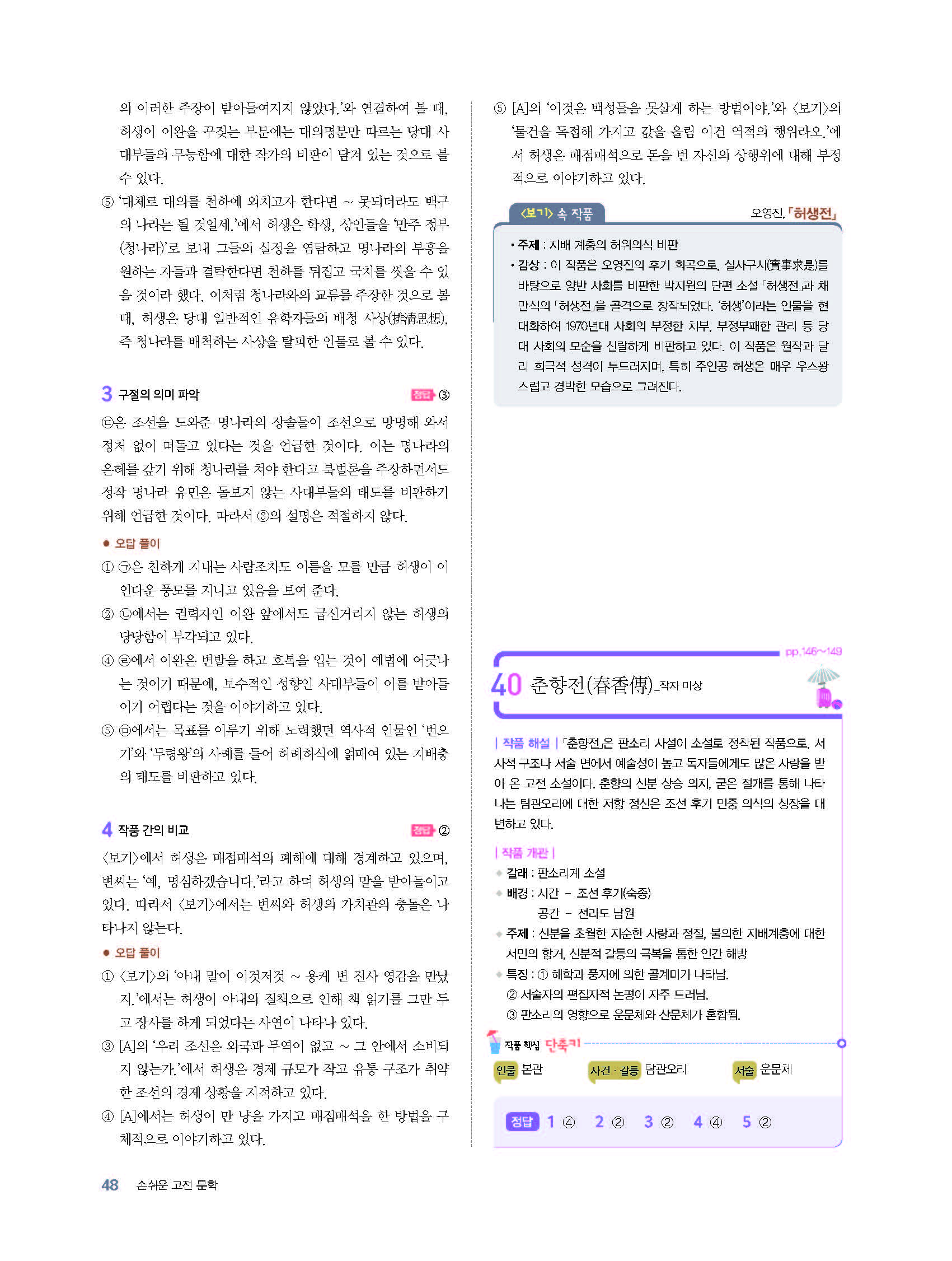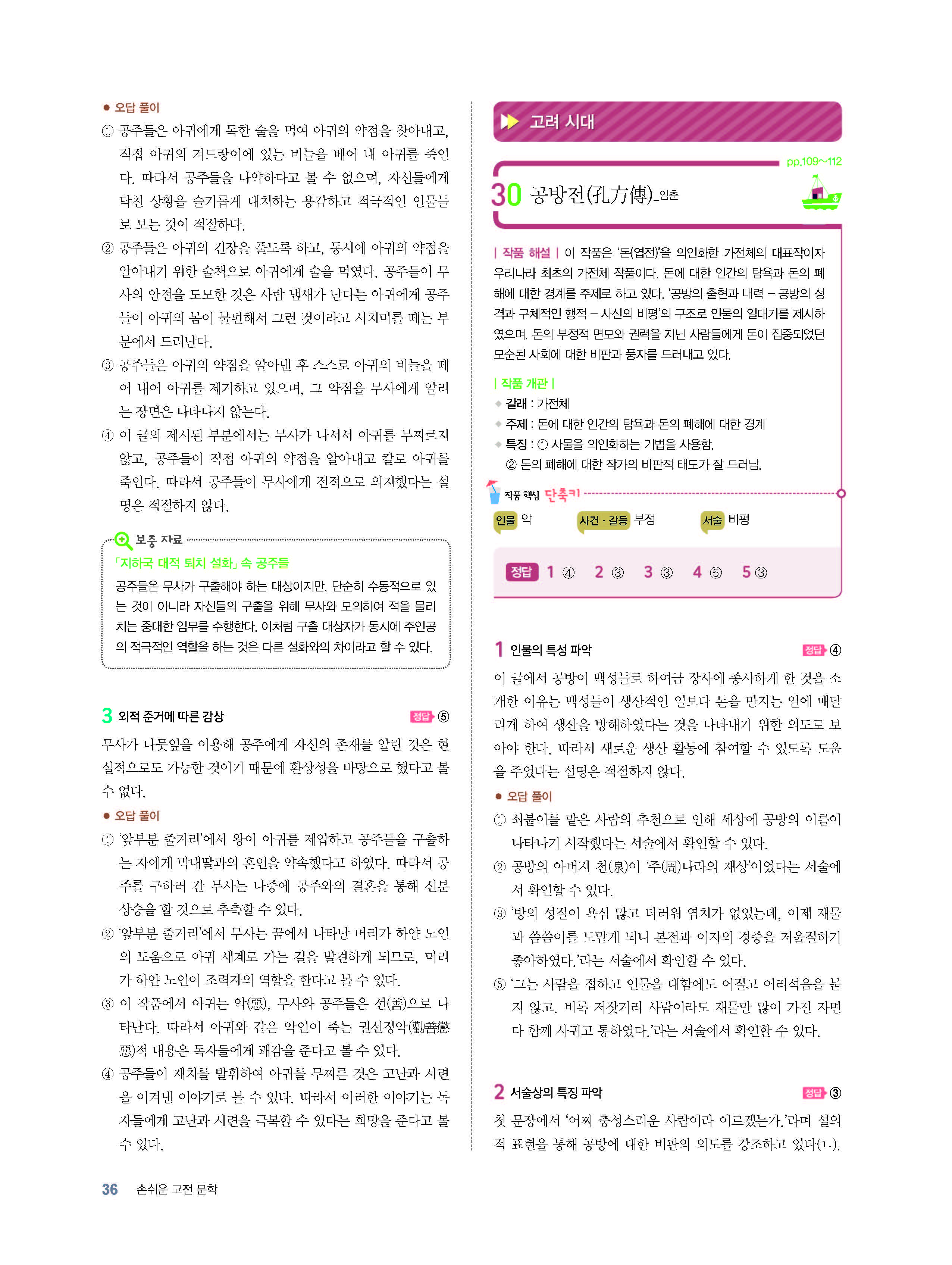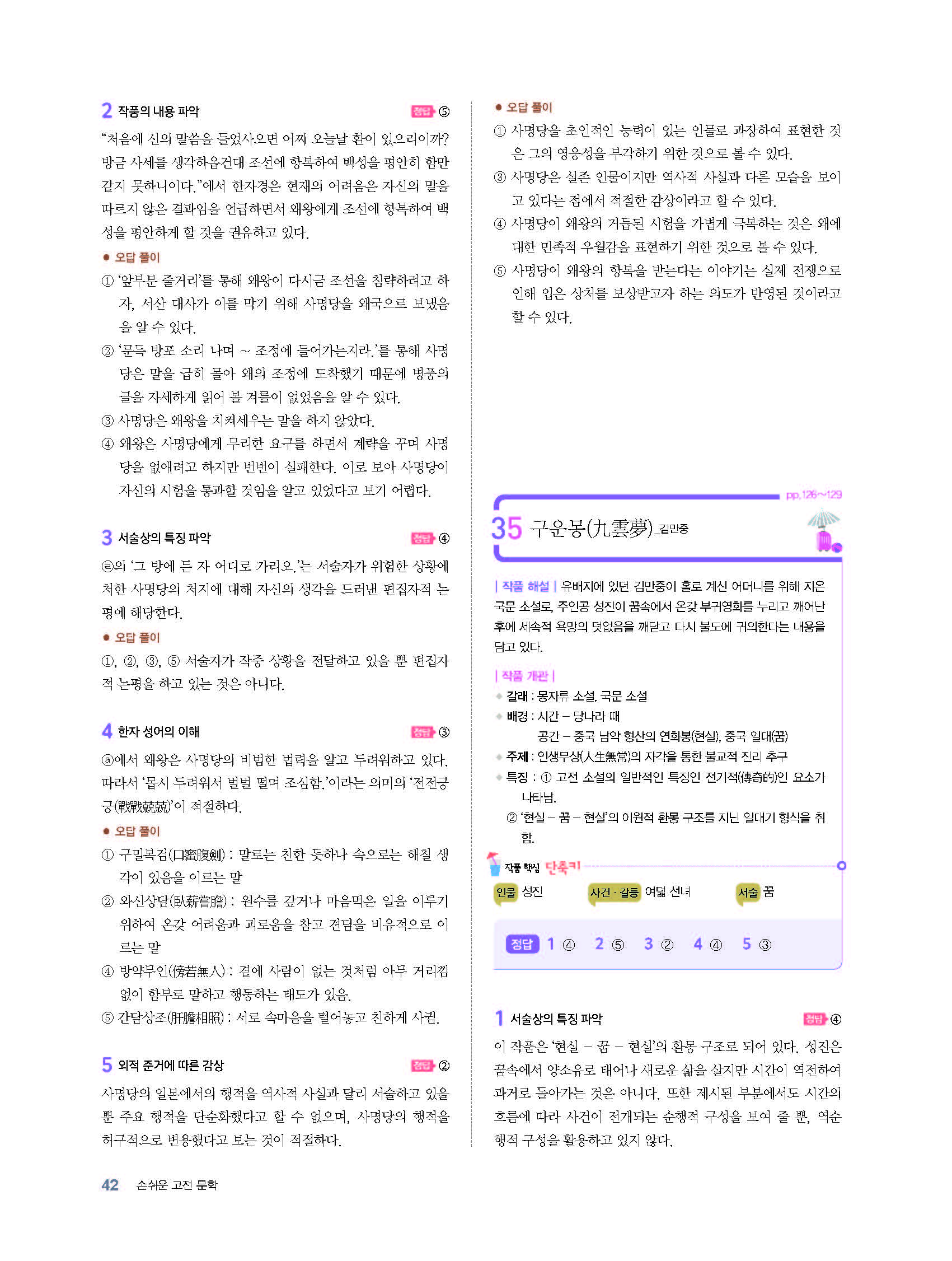 미래엔 손쉬운 고전문학 답지 해설 사진답지 빠른답지 모바일최적화