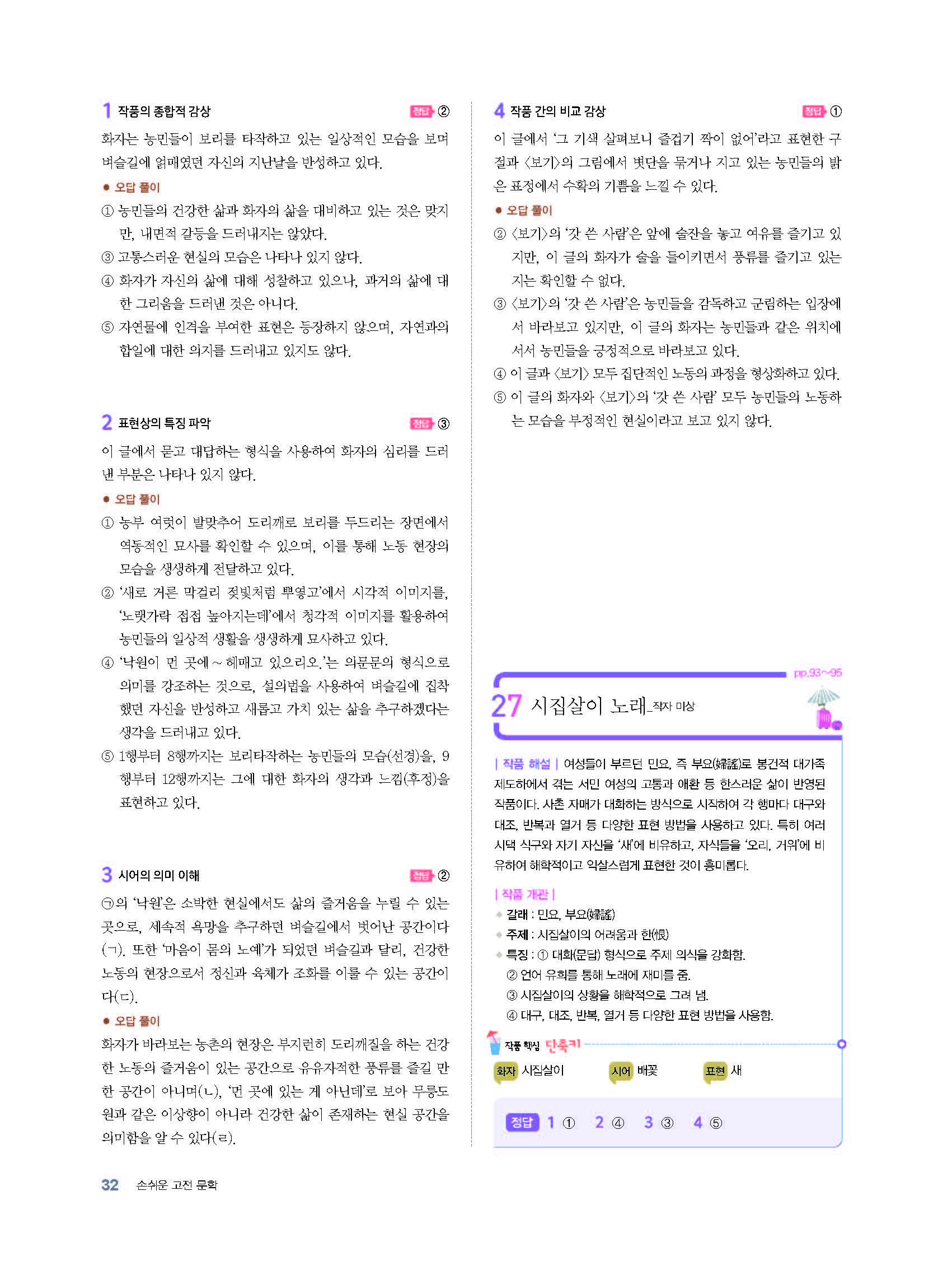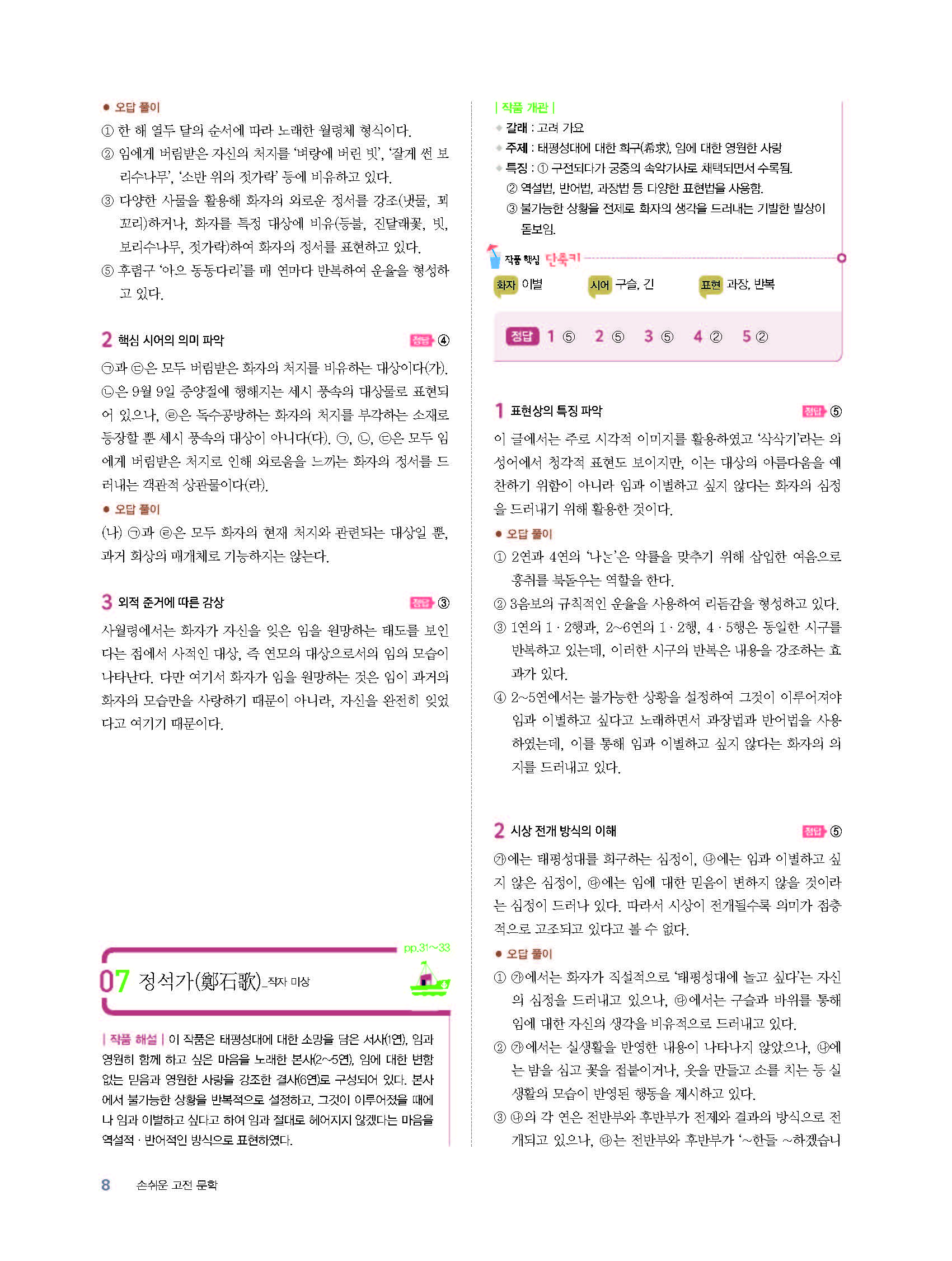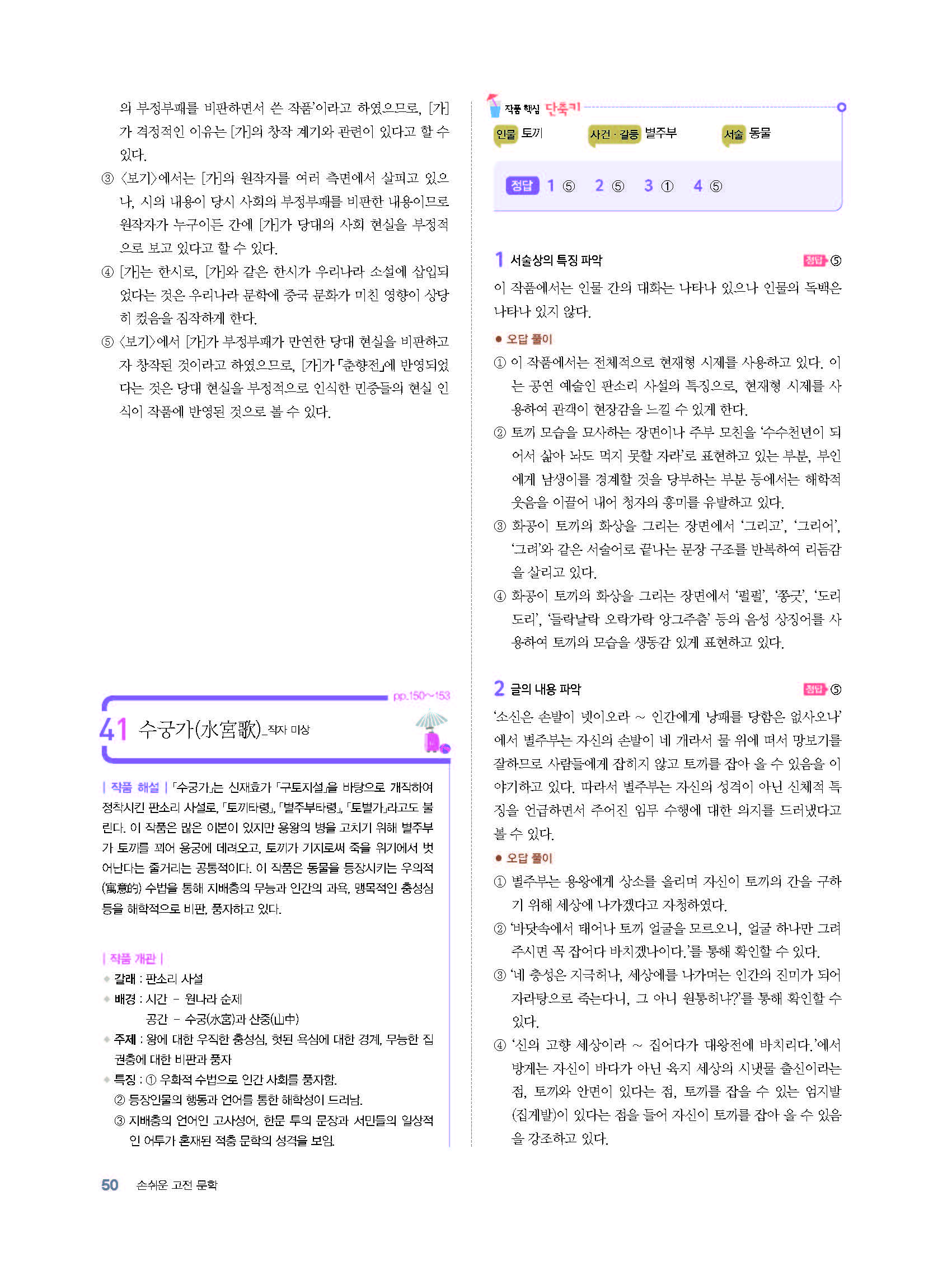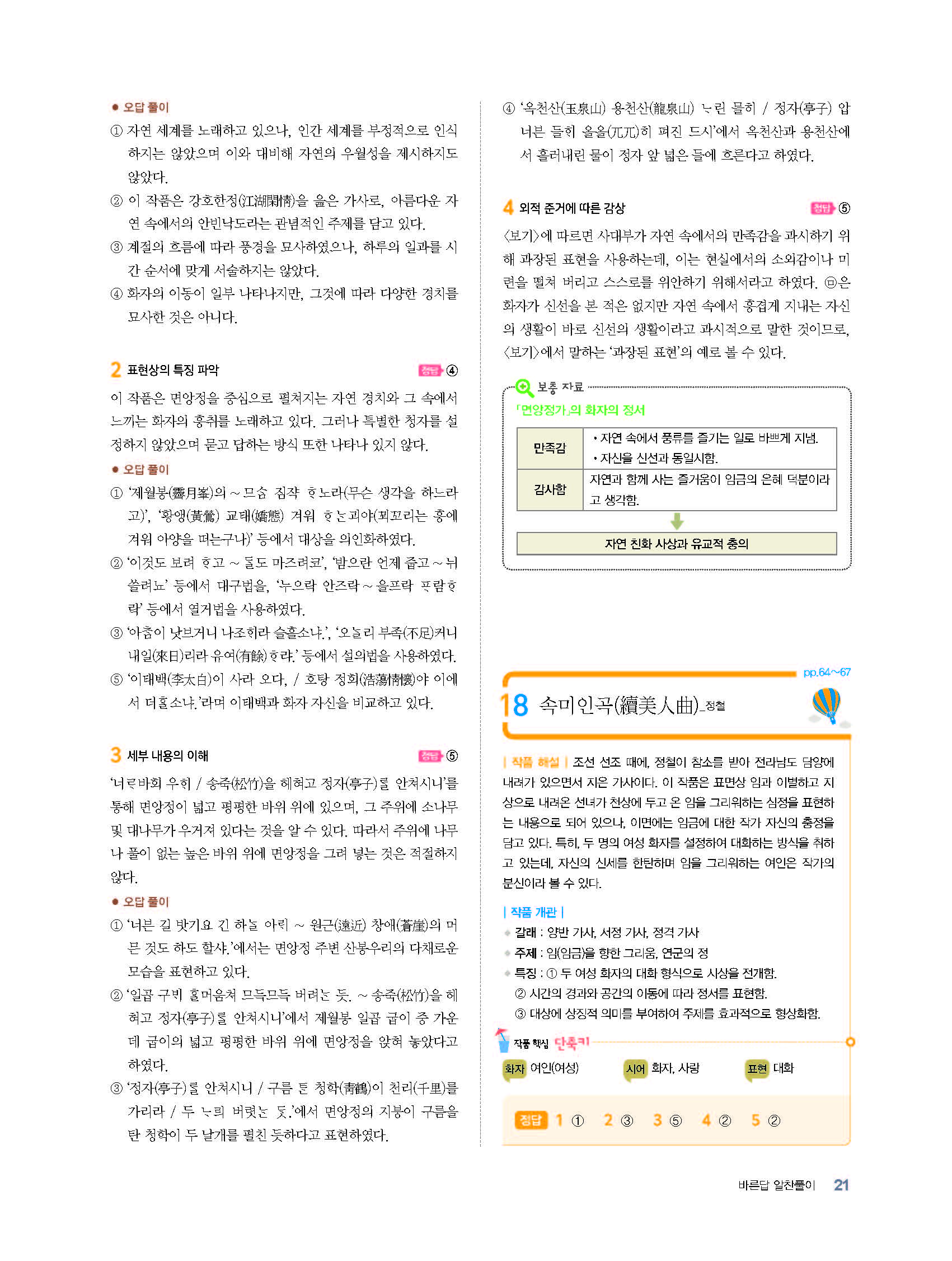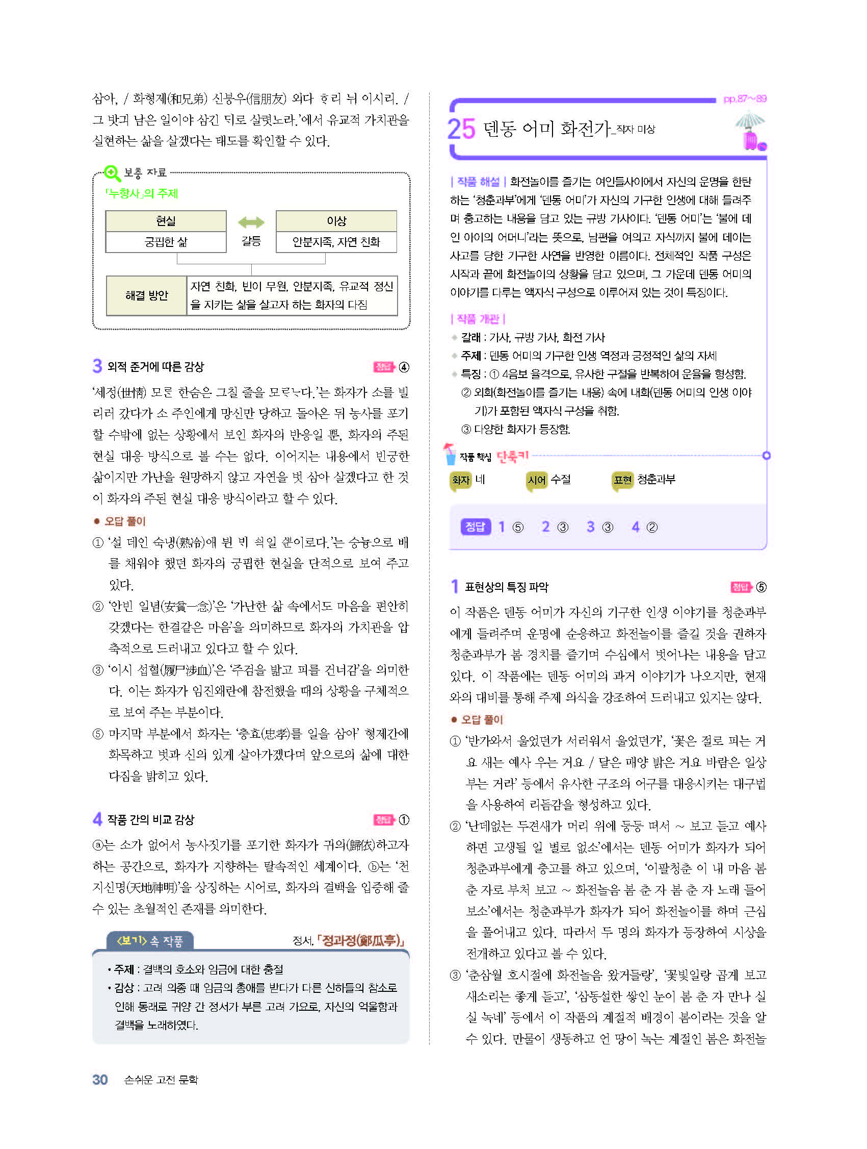미래엔 손쉬운 고전문학 답지 해설 사진답지 빠른답지 모바일최적화