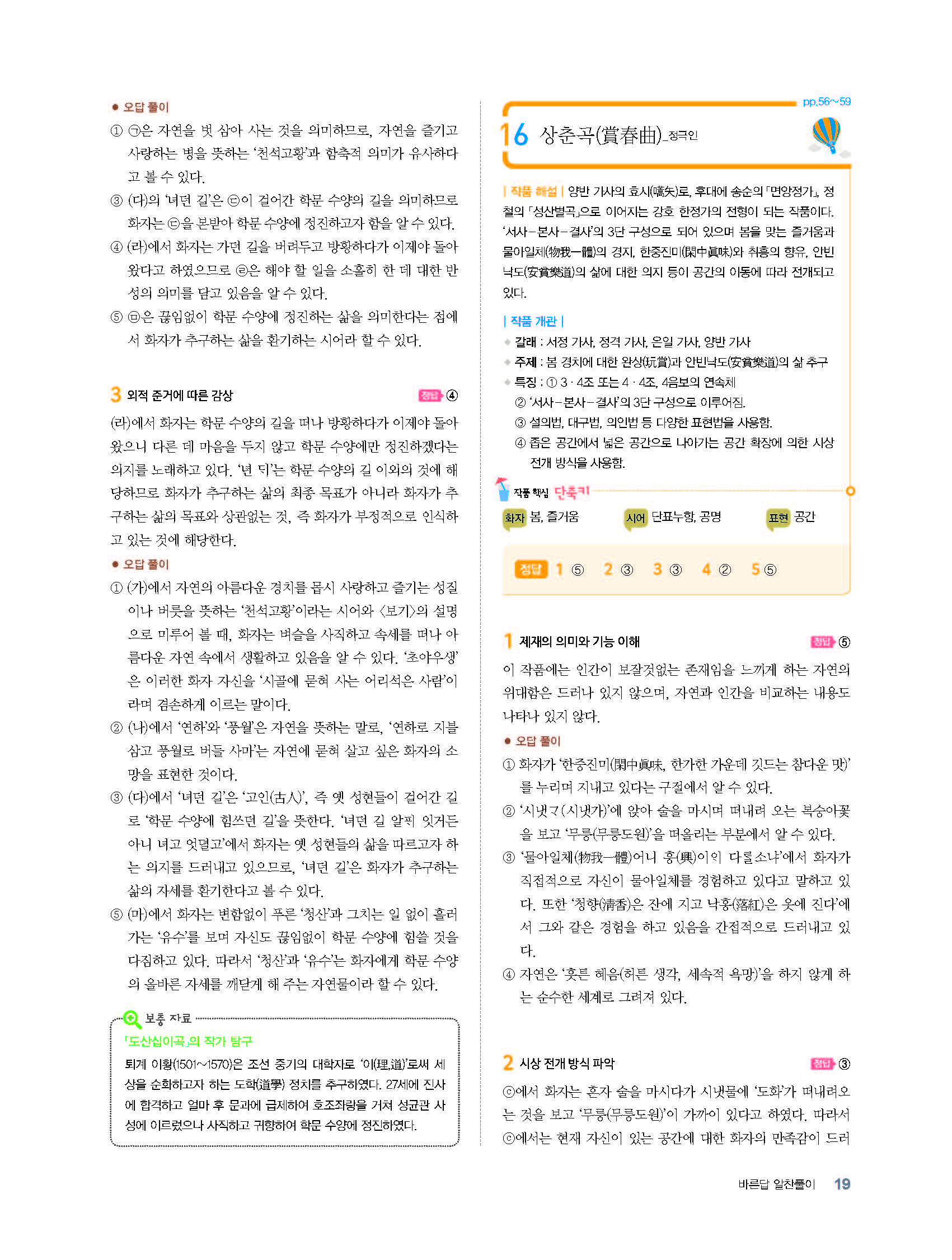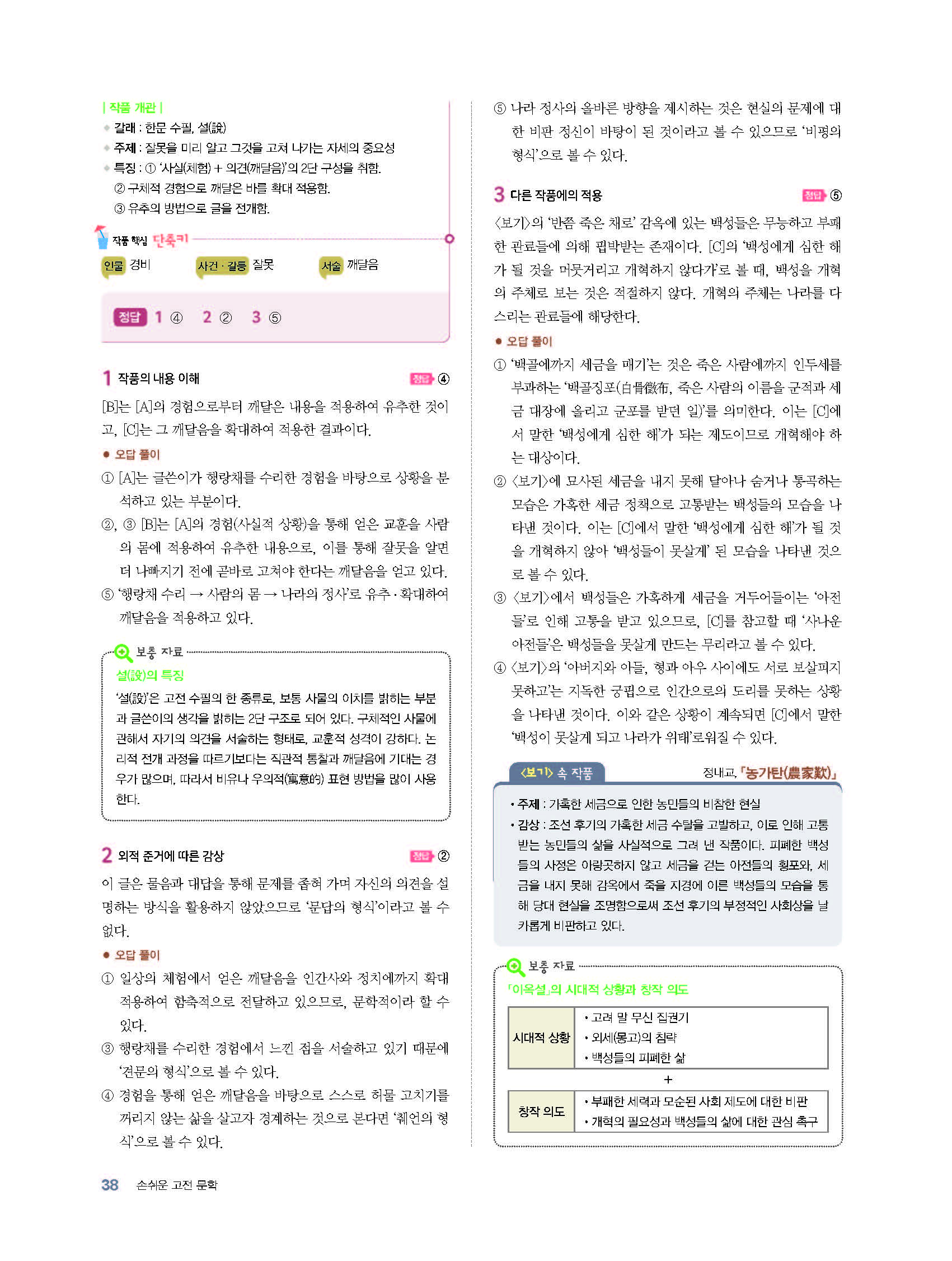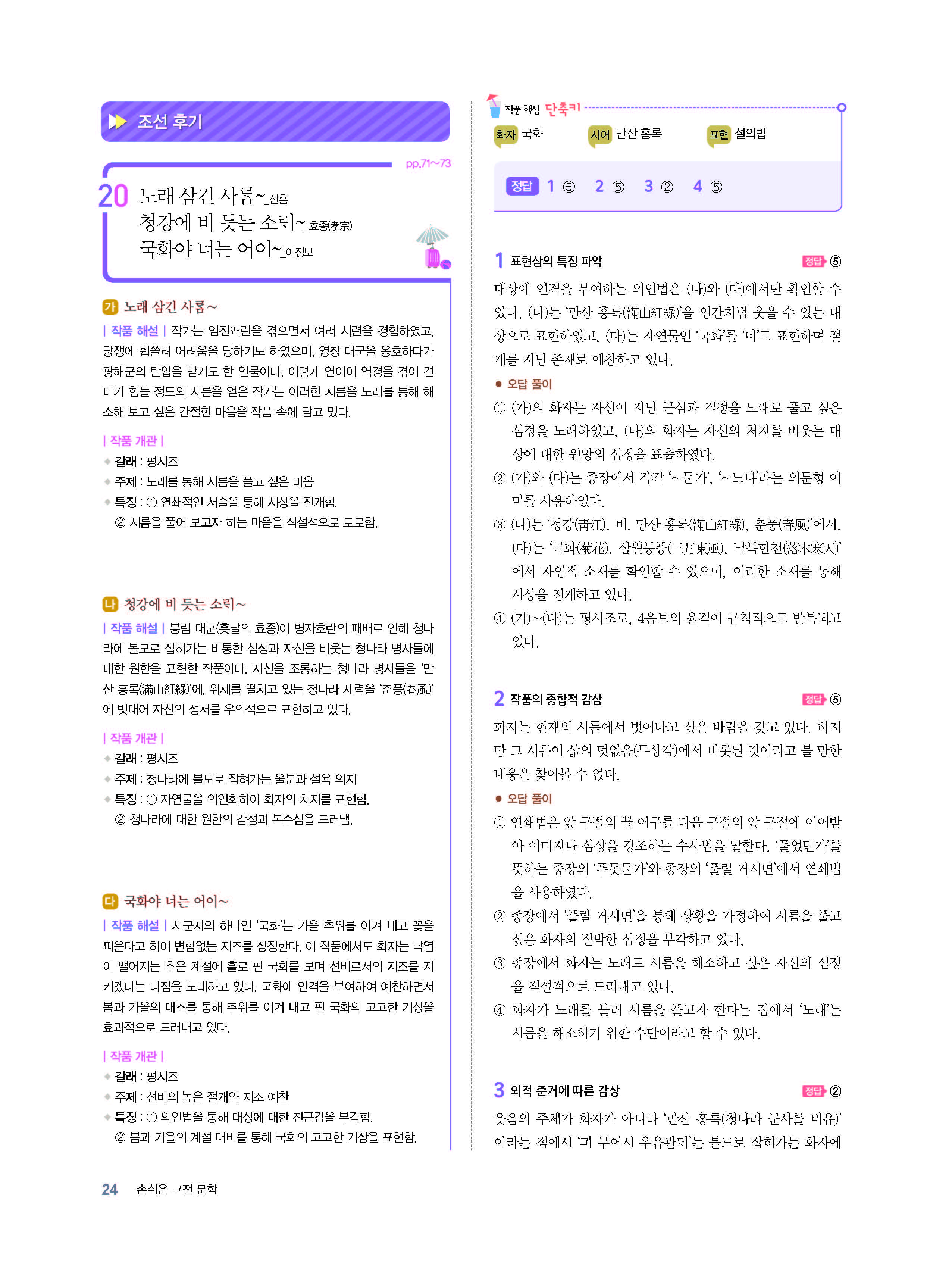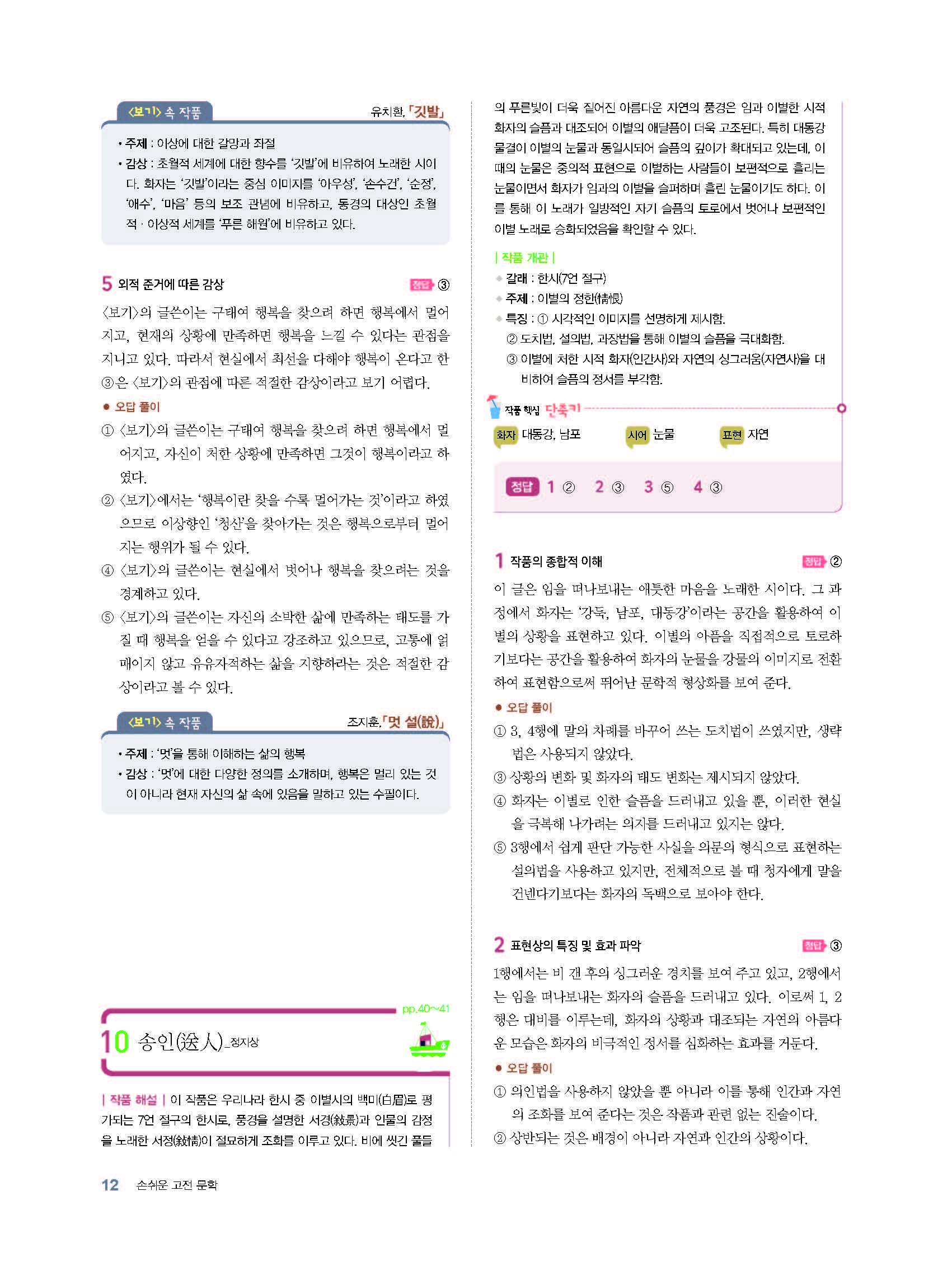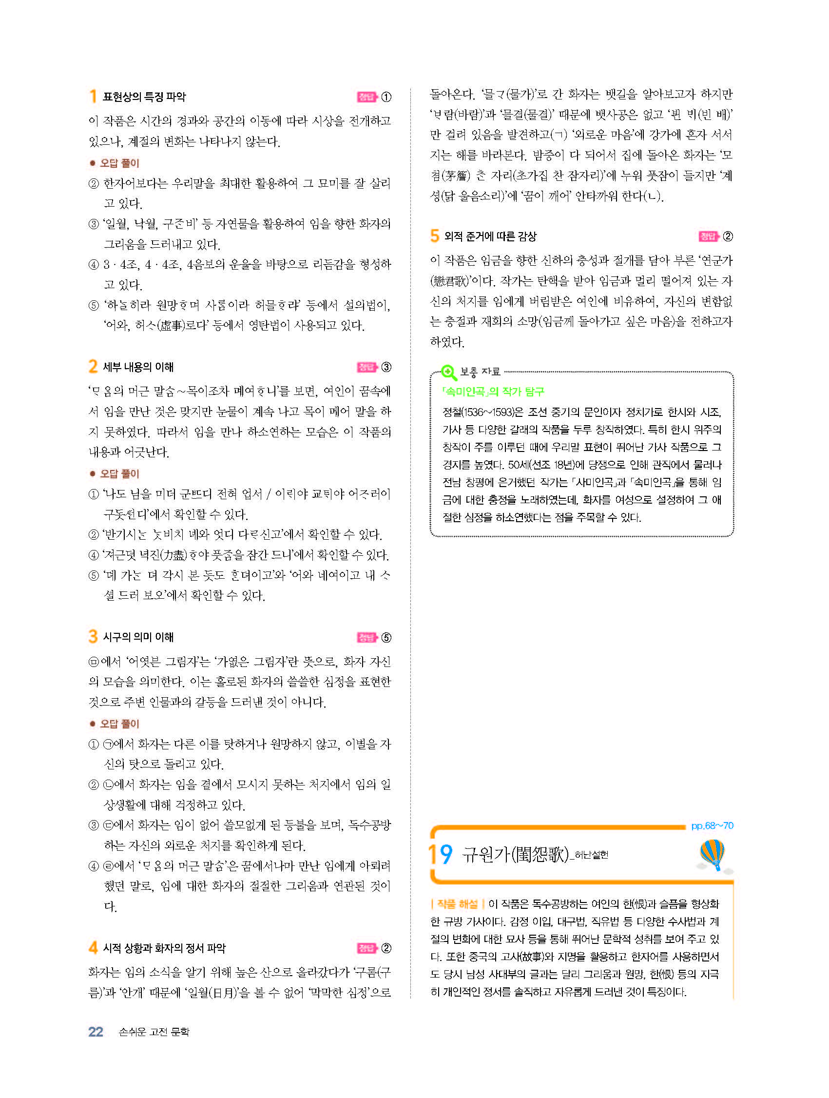 미래엔 손쉬운 고전문학 답지 해설 사진답지 빠른답지 모바일최적화