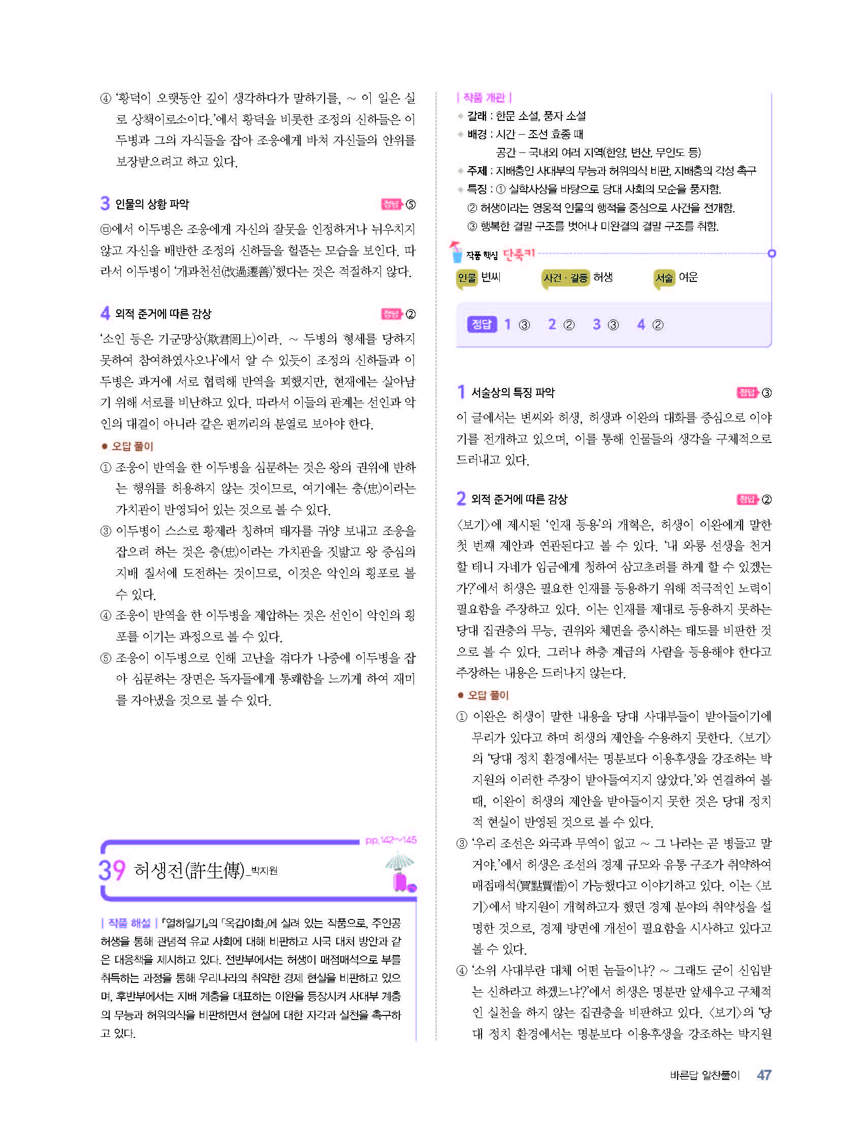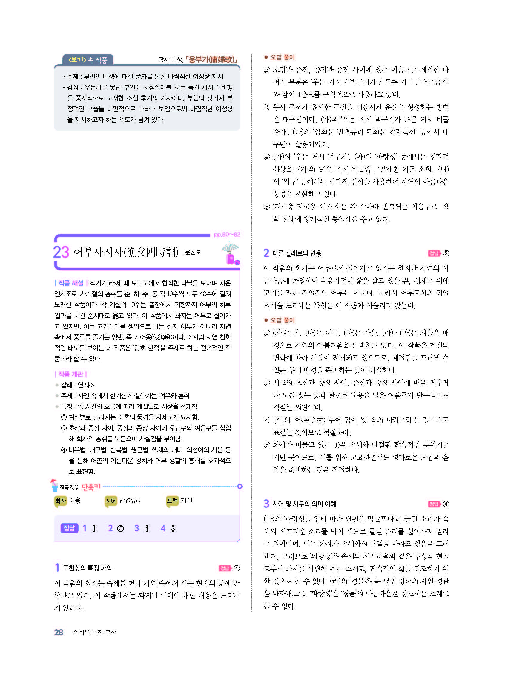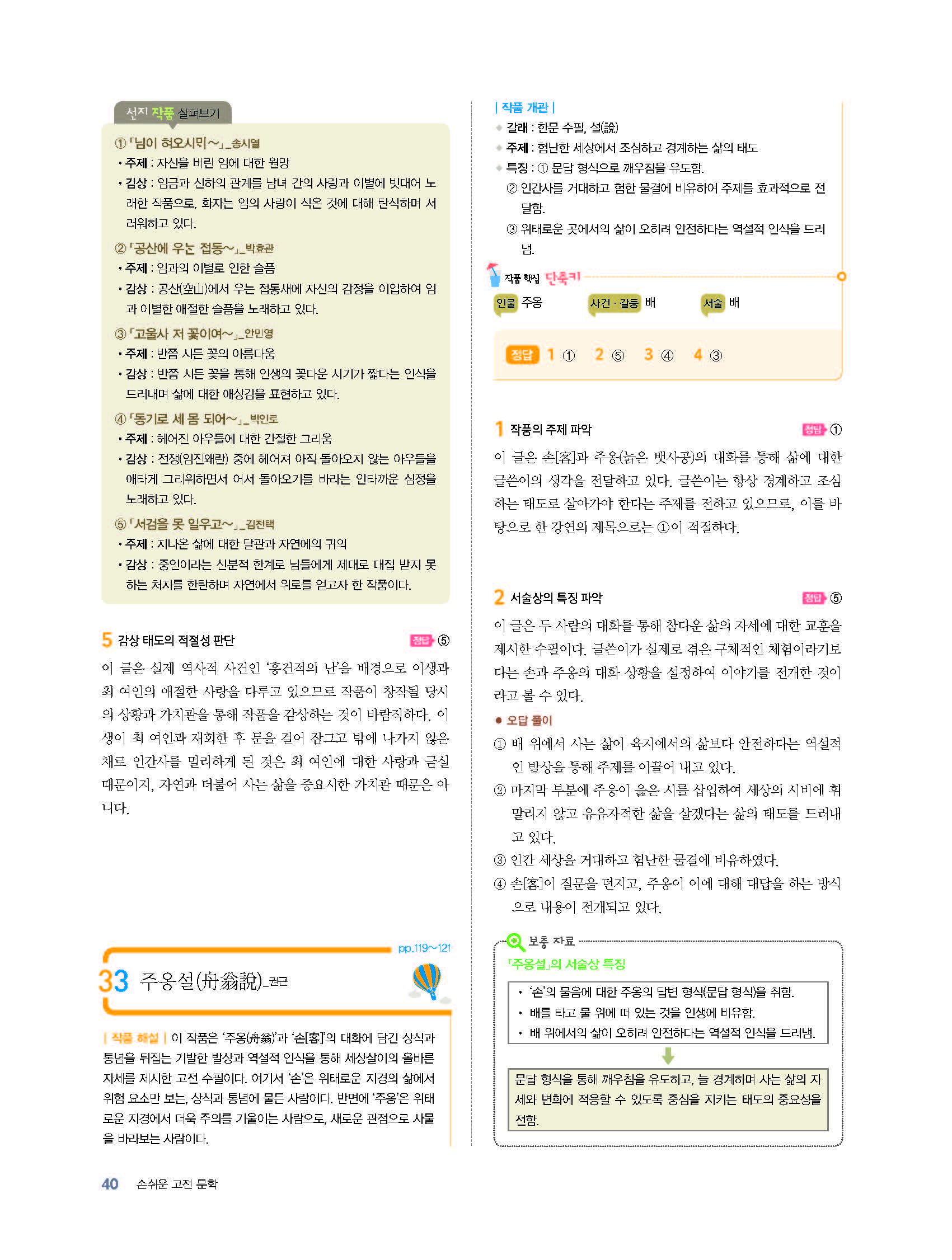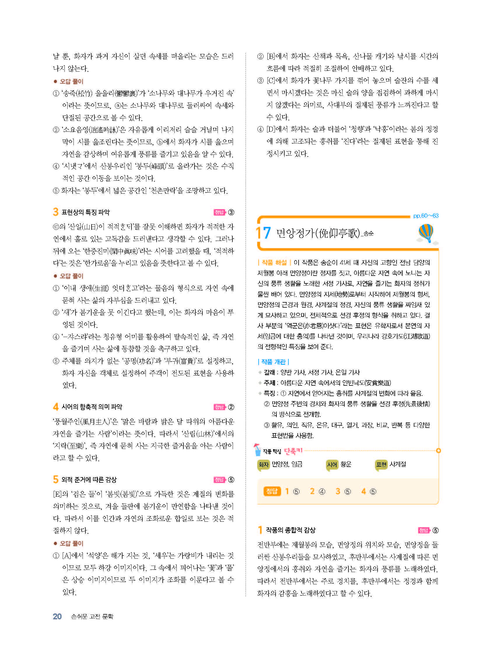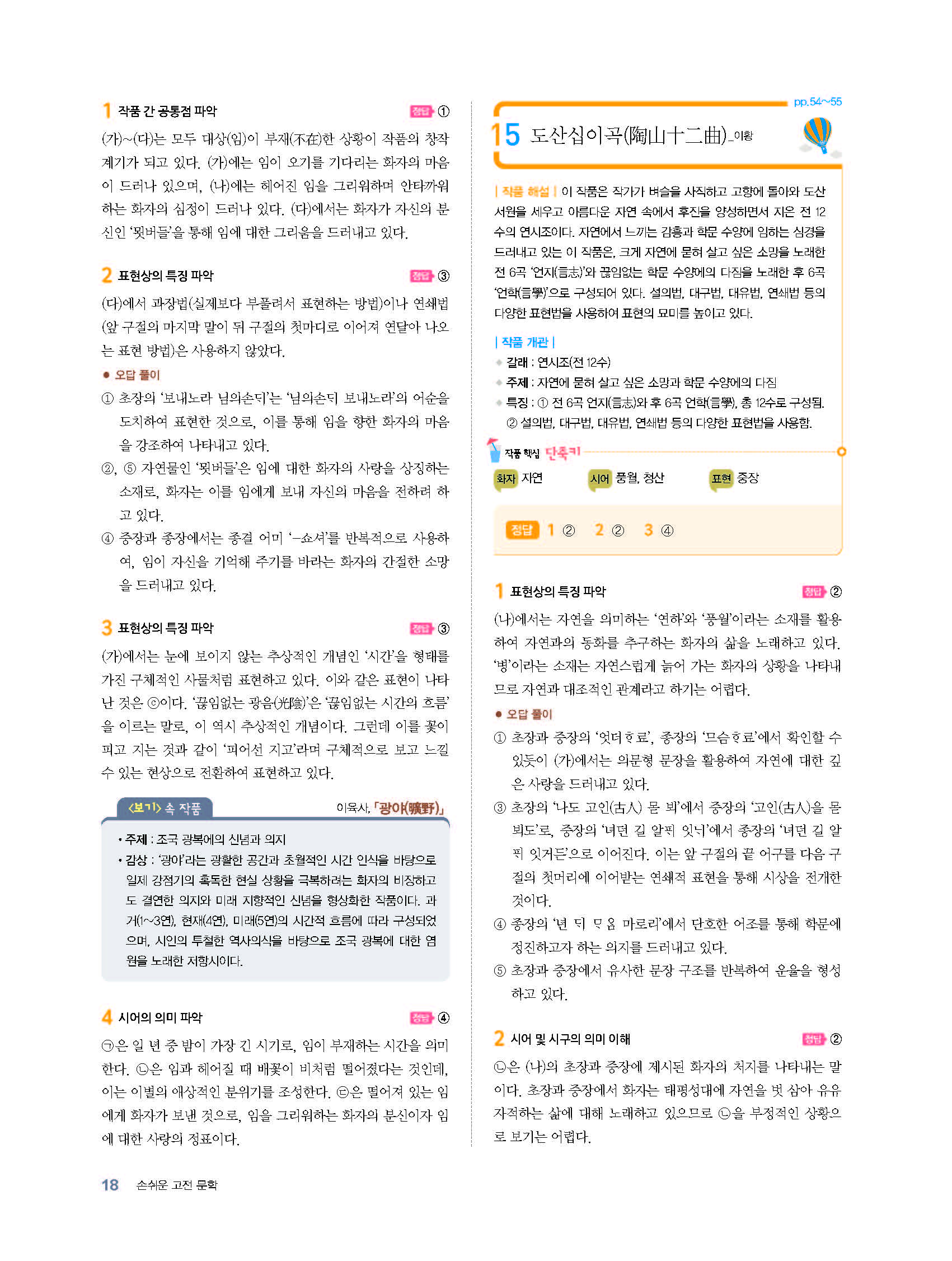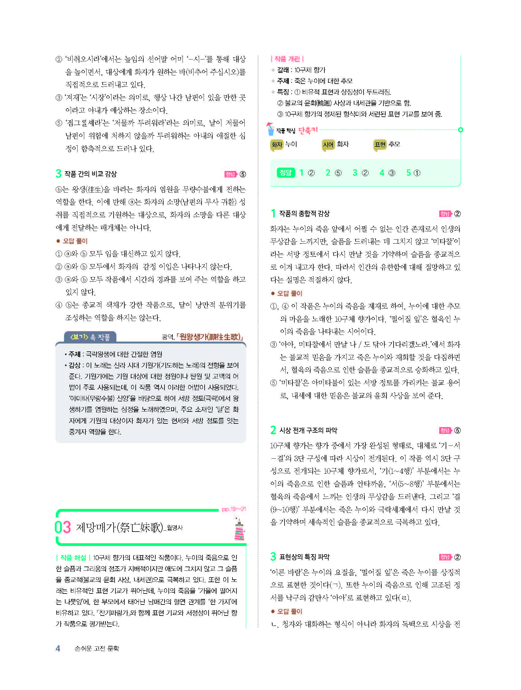 미래엔 손쉬운 고전문학 답지 해설 사진답지 빠른답지 모바일최적화