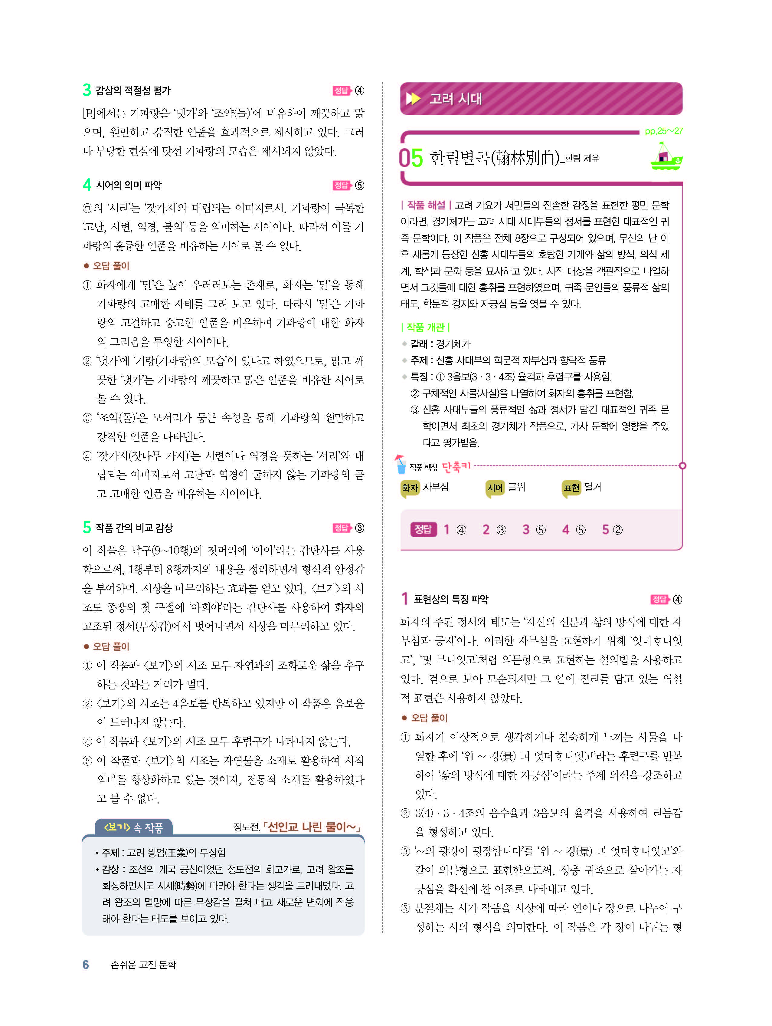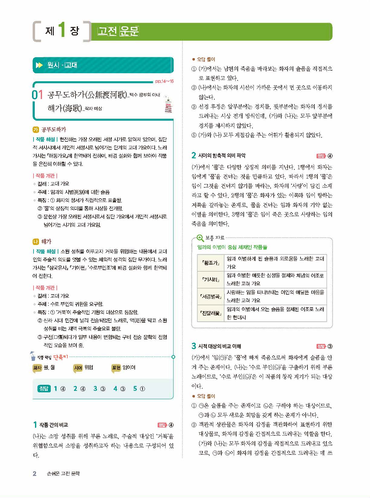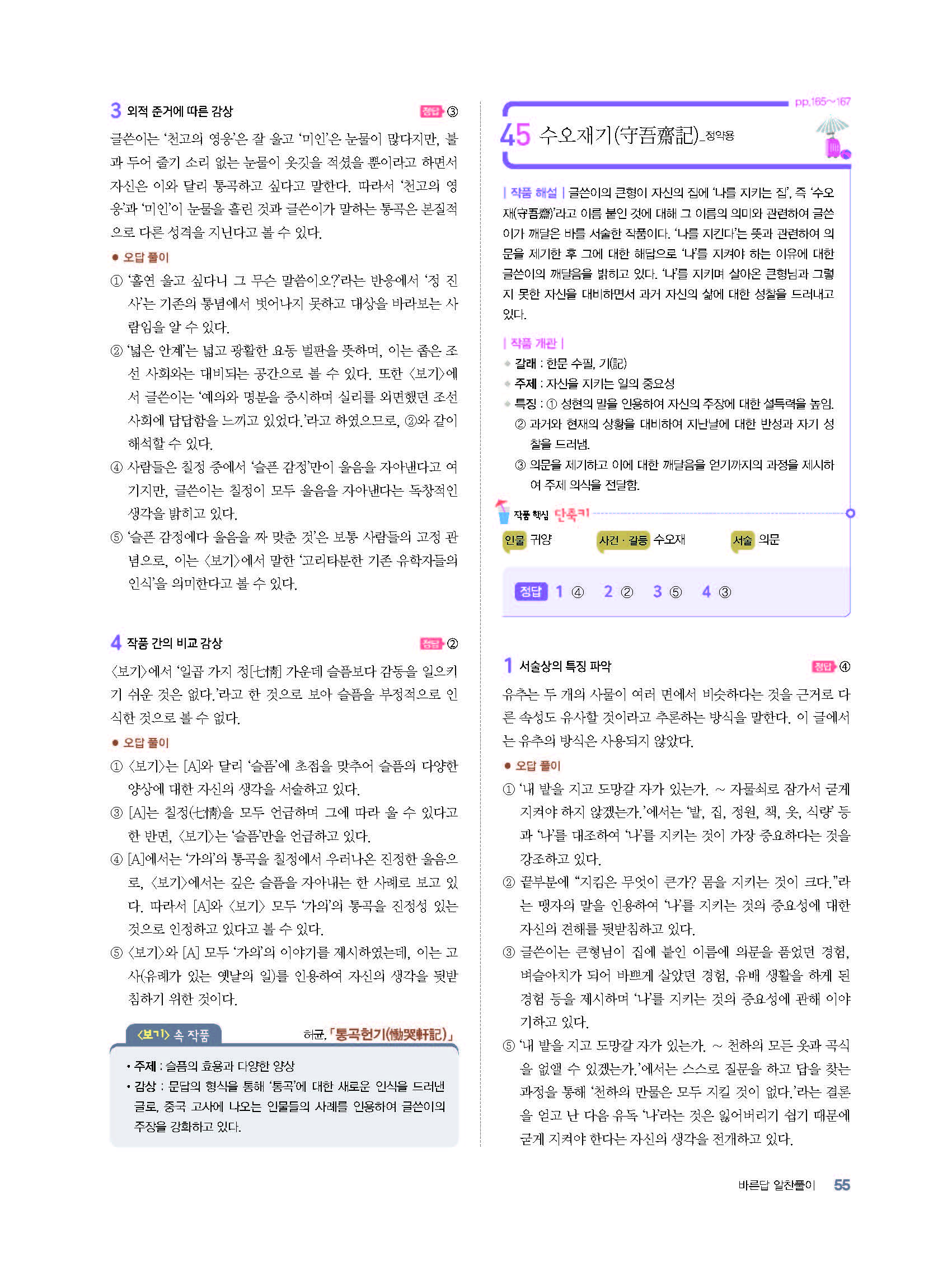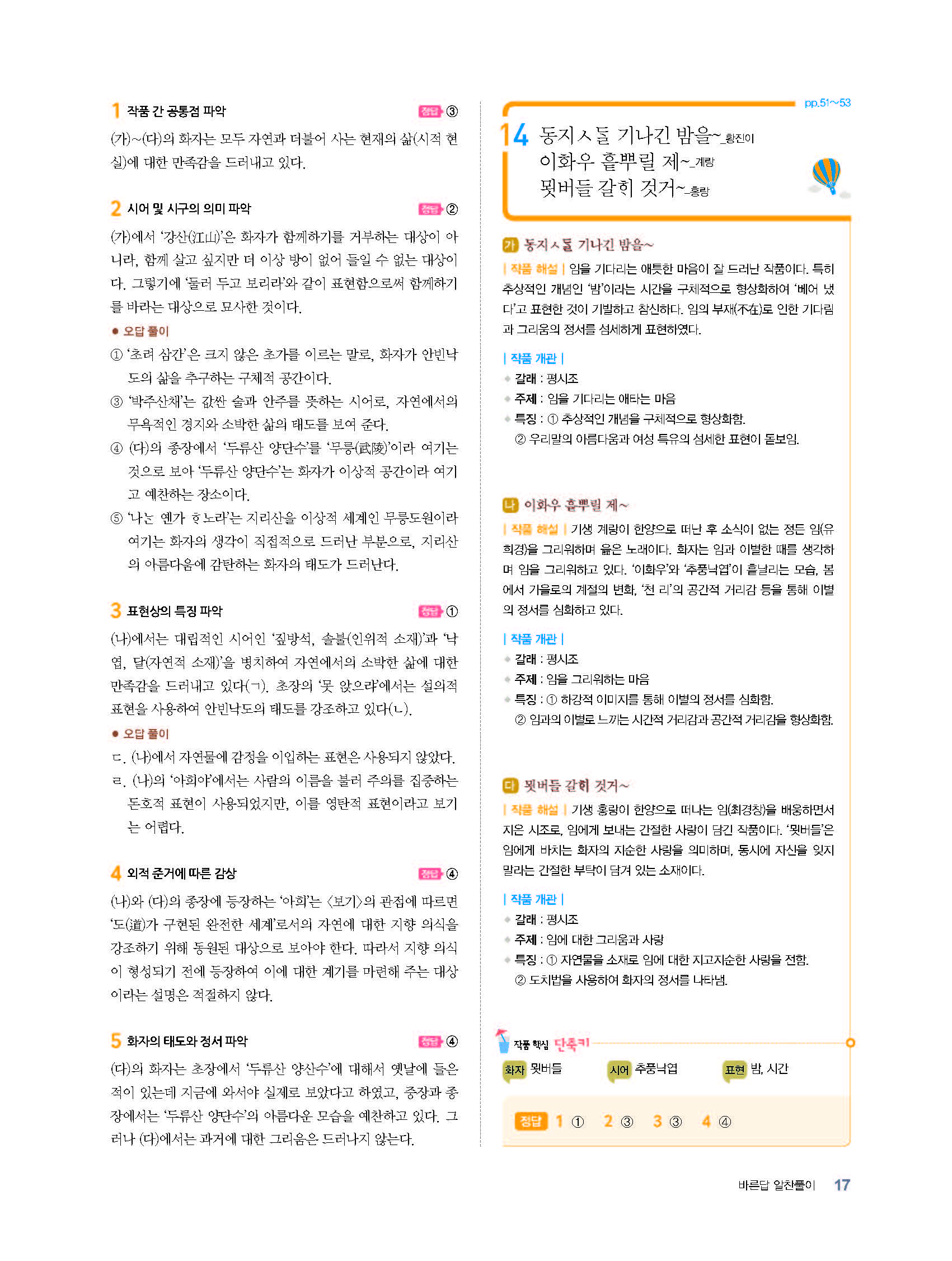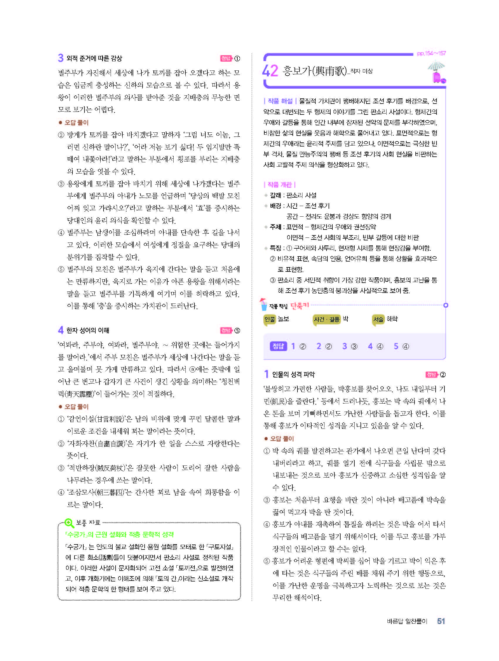 미래엔 손쉬운 고전문학 답지 해설 사진답지 빠른답지 모바일최적화