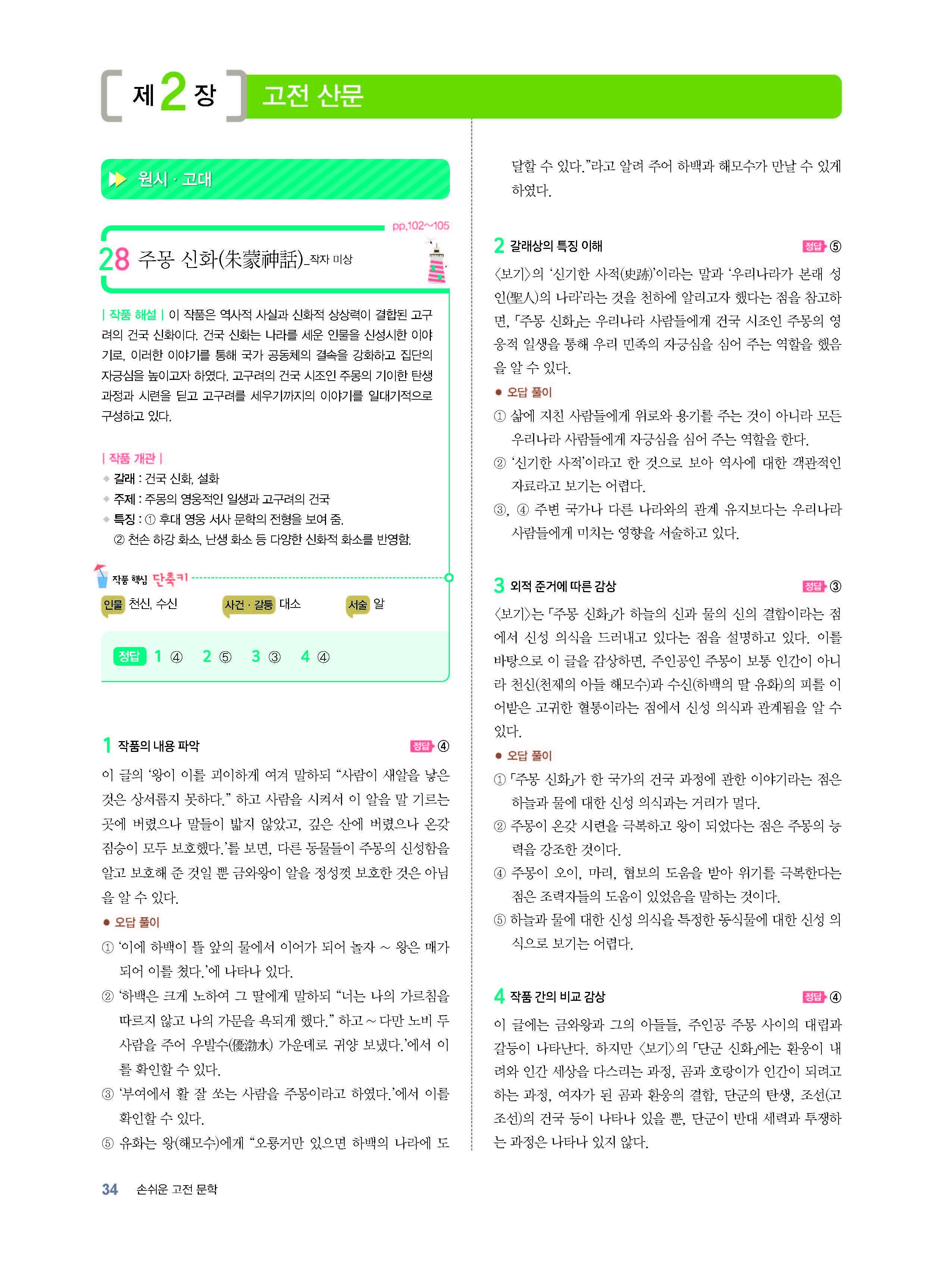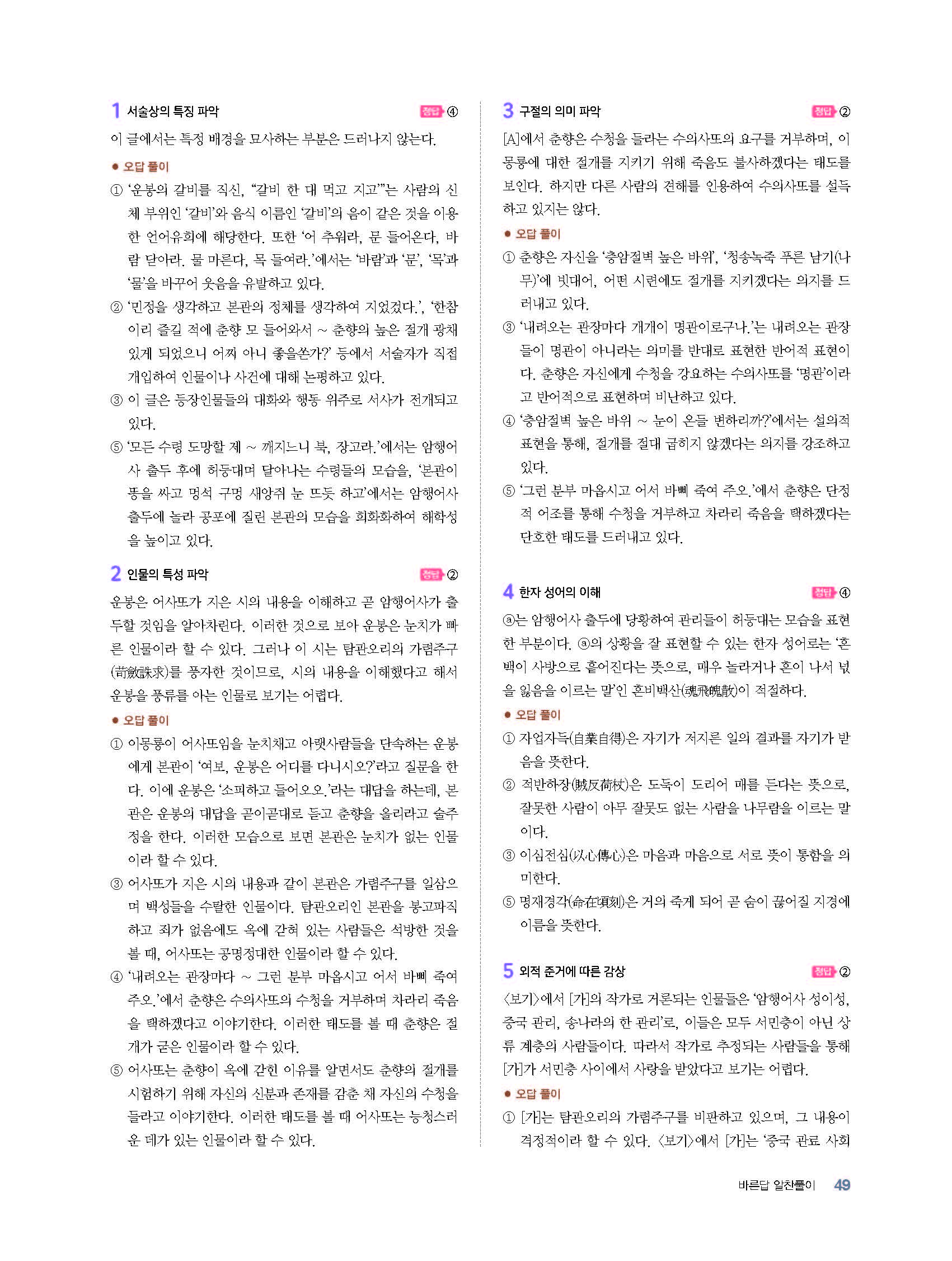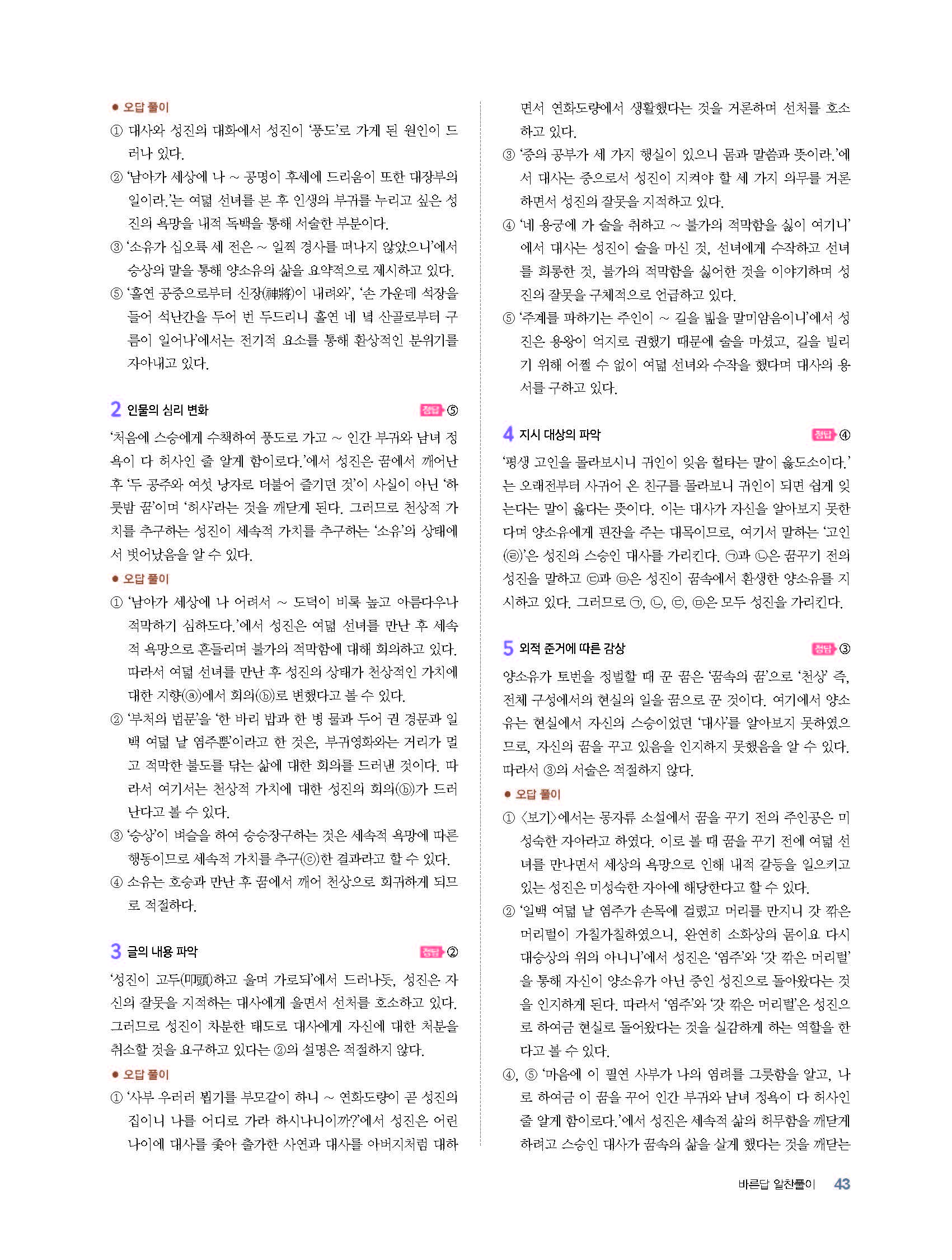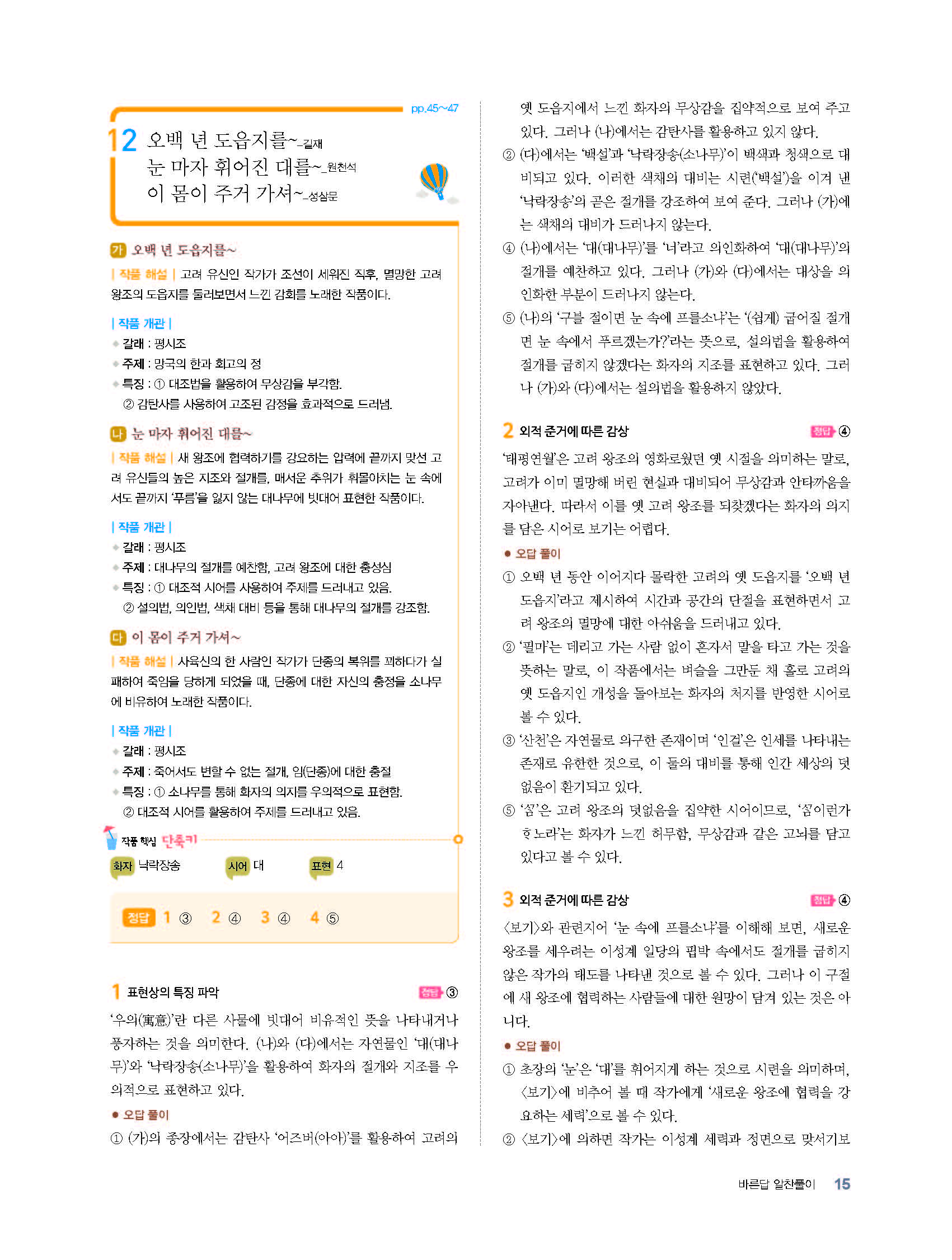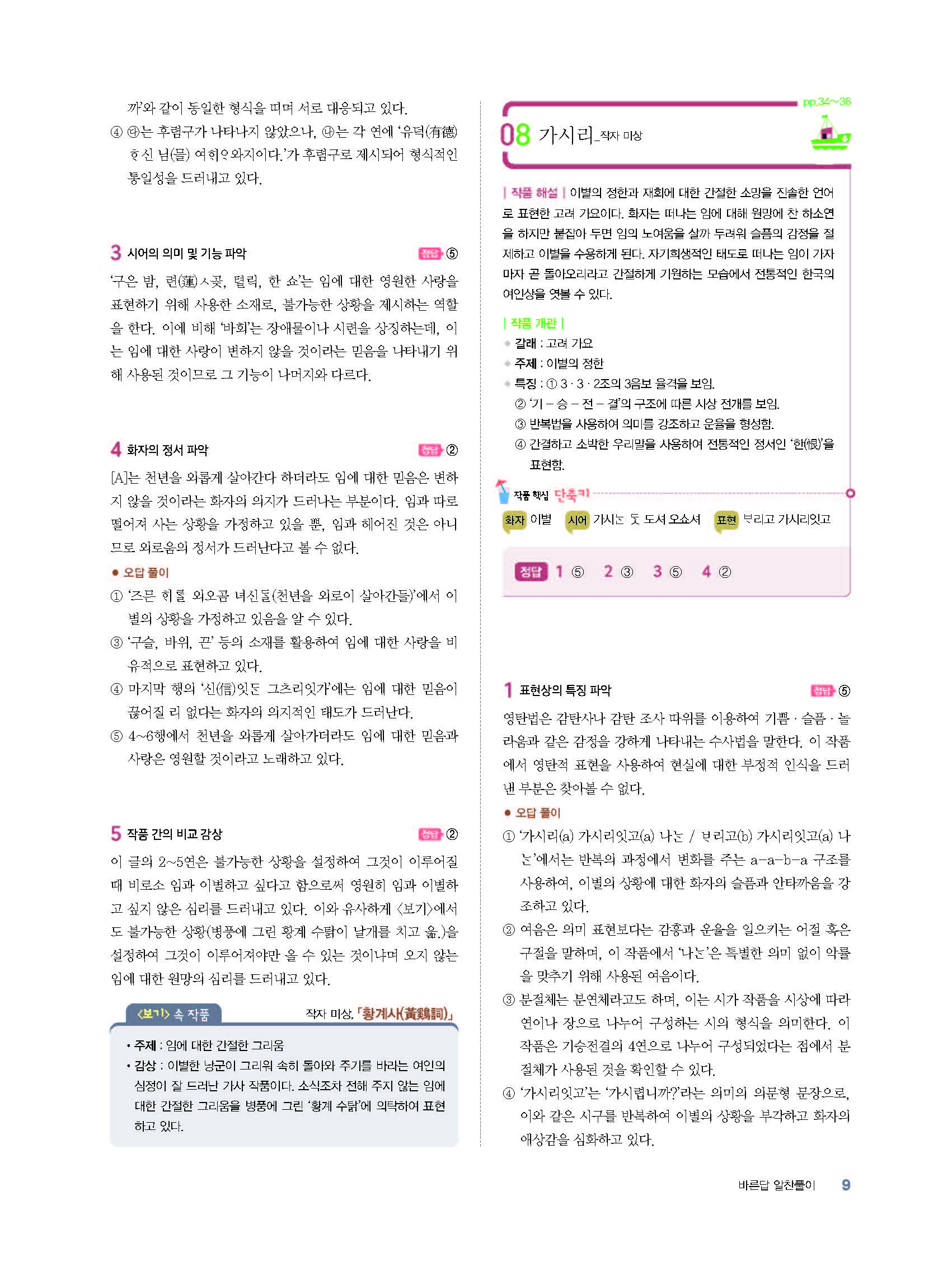 미래엔 손쉬운 고전문학 답지 해설 사진답지 빠른답지 모바일최적화