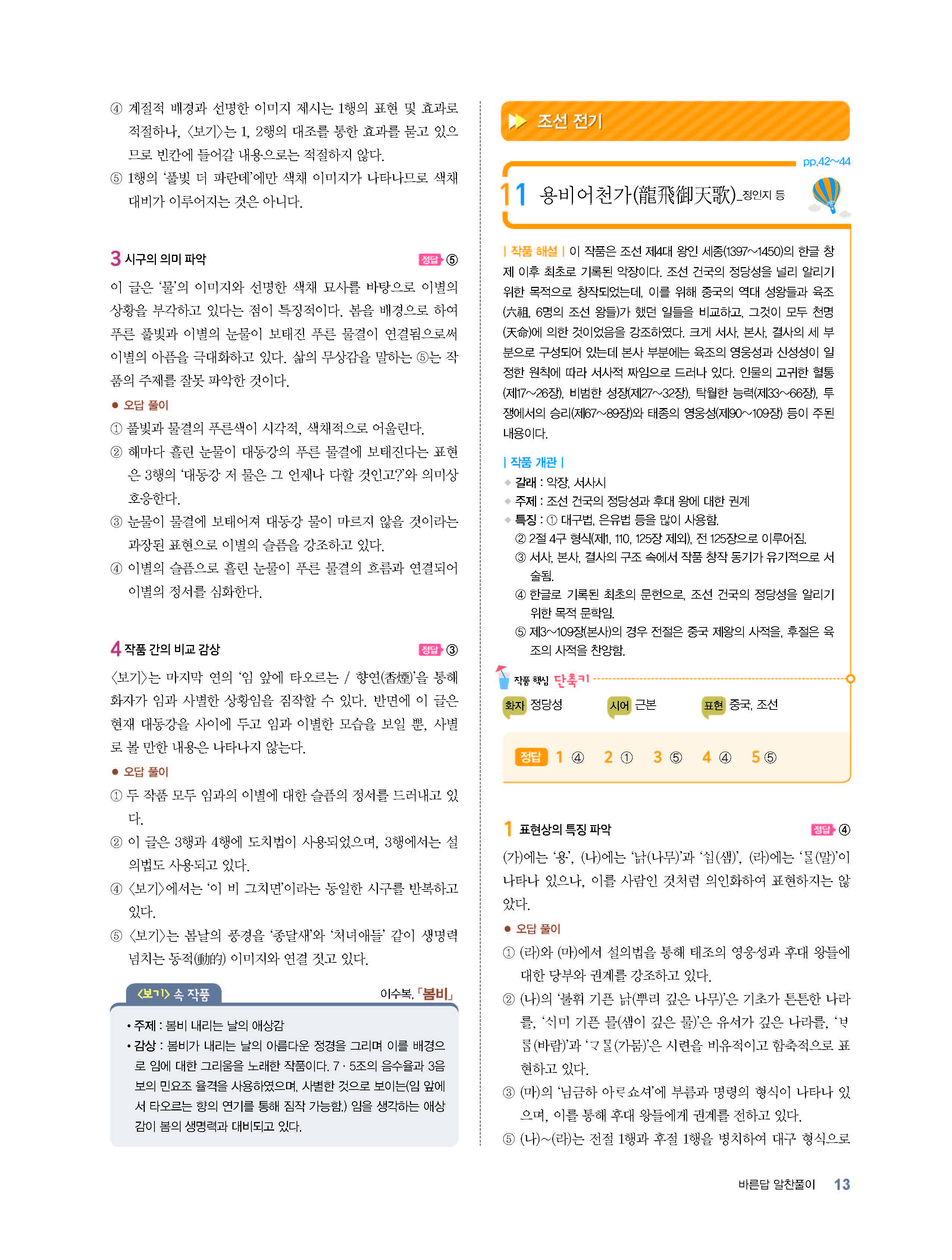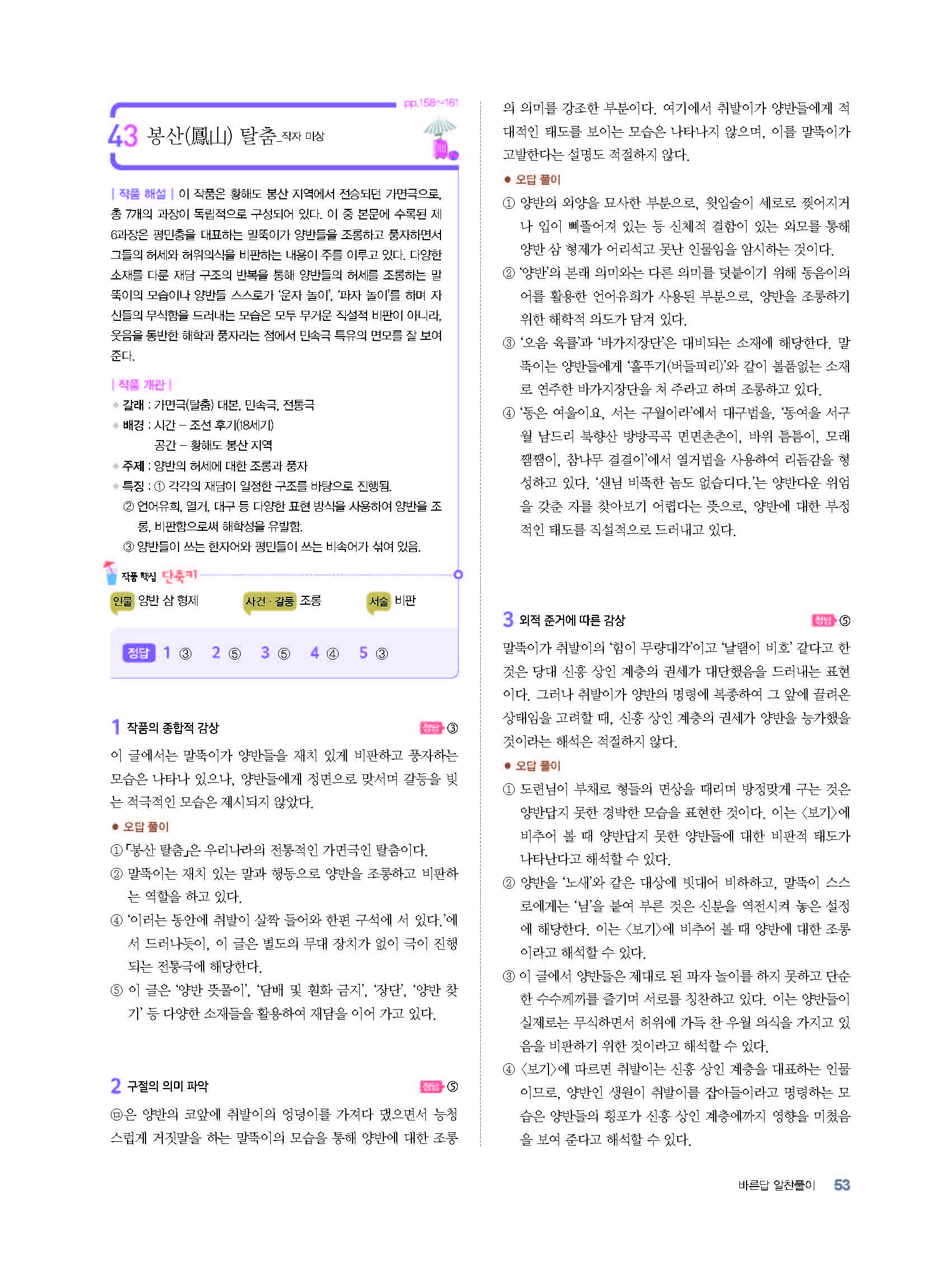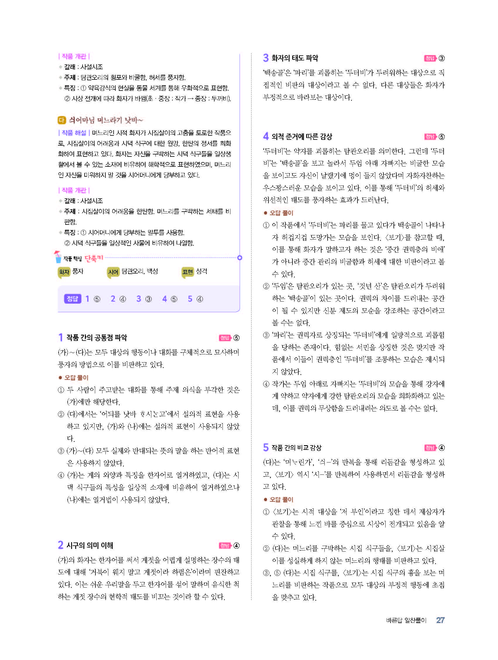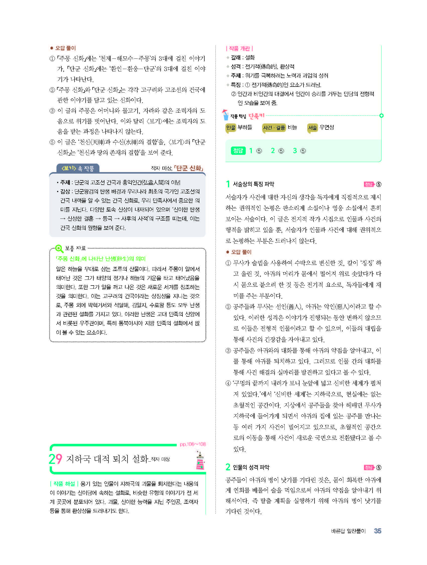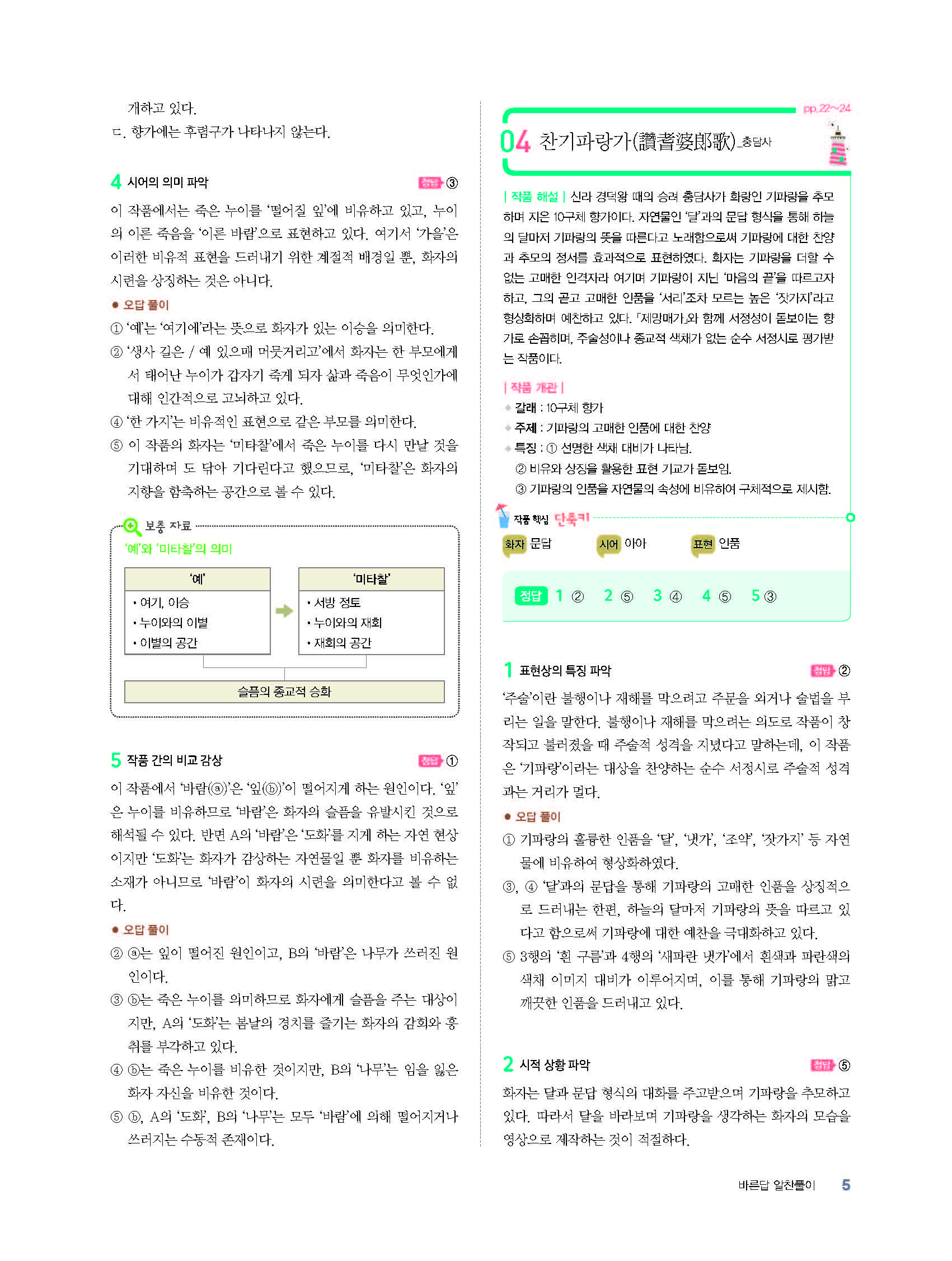 미래엔 손쉬운 고전문학 답지 해설 사진답지 빠른답지 모바일최적화