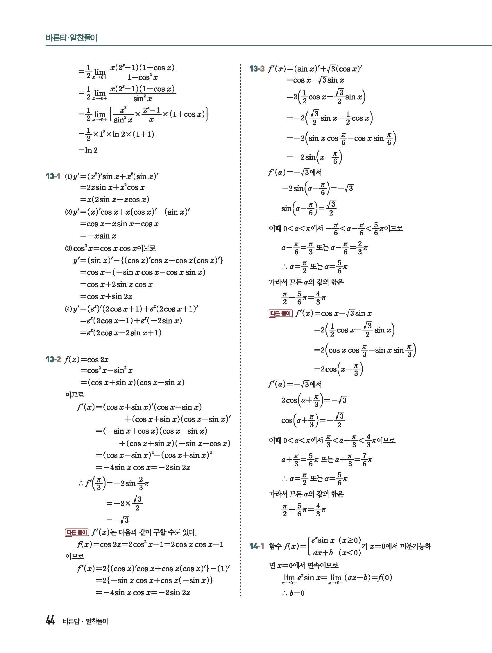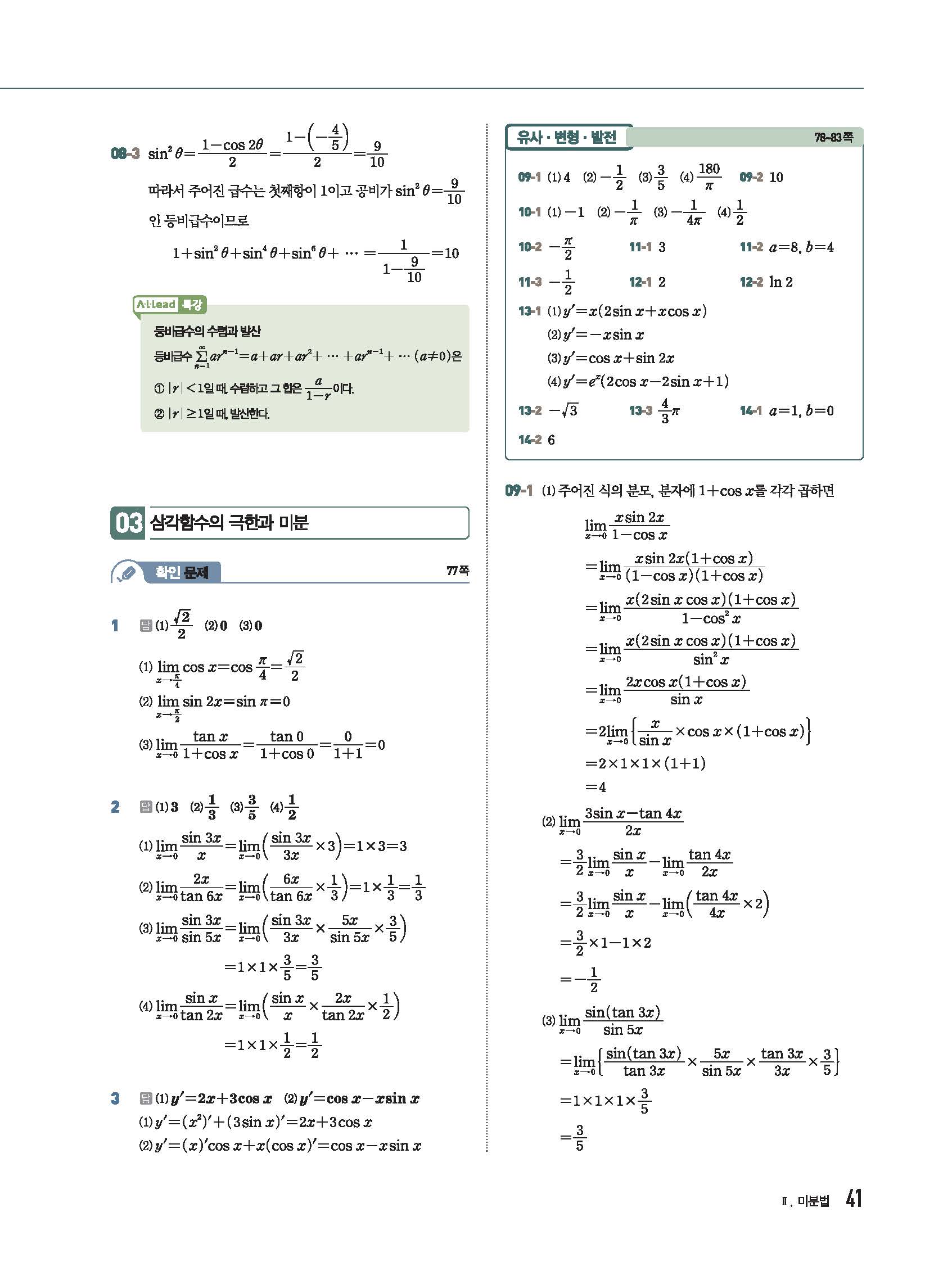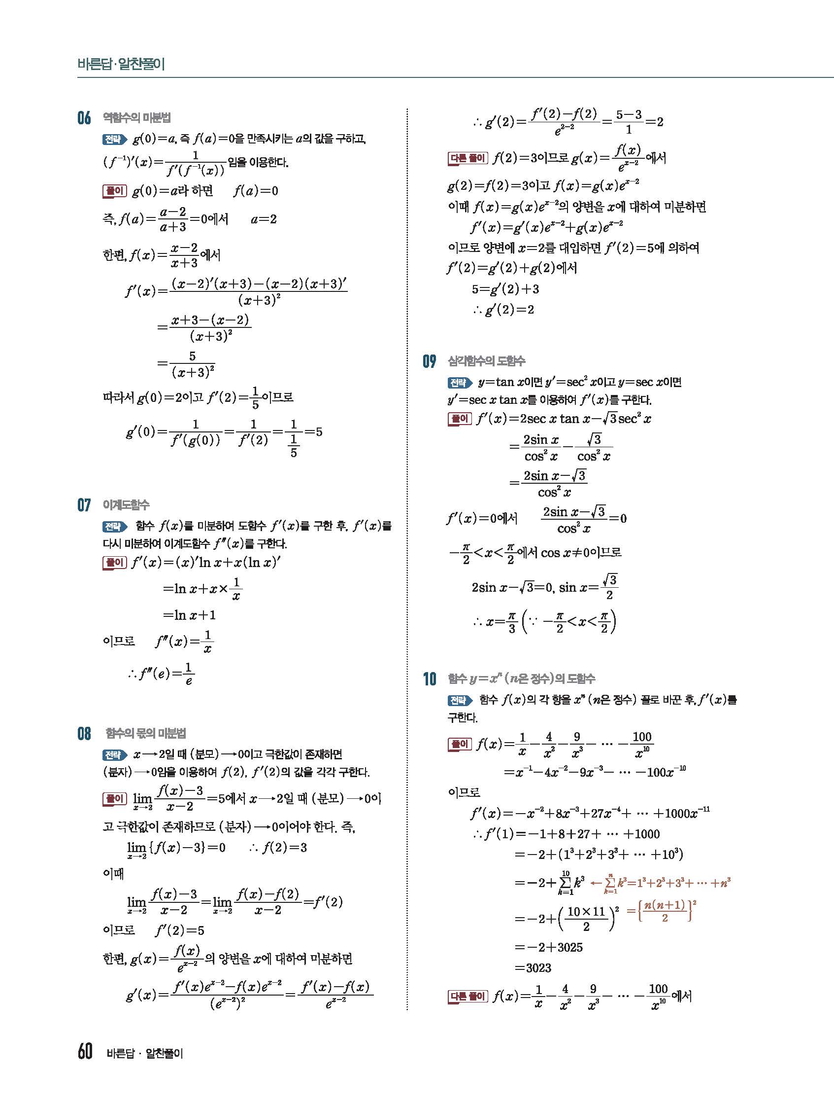 뉴올리드 고등 미적분 답지 해설 사진답지 빠른답지 모바일최적화