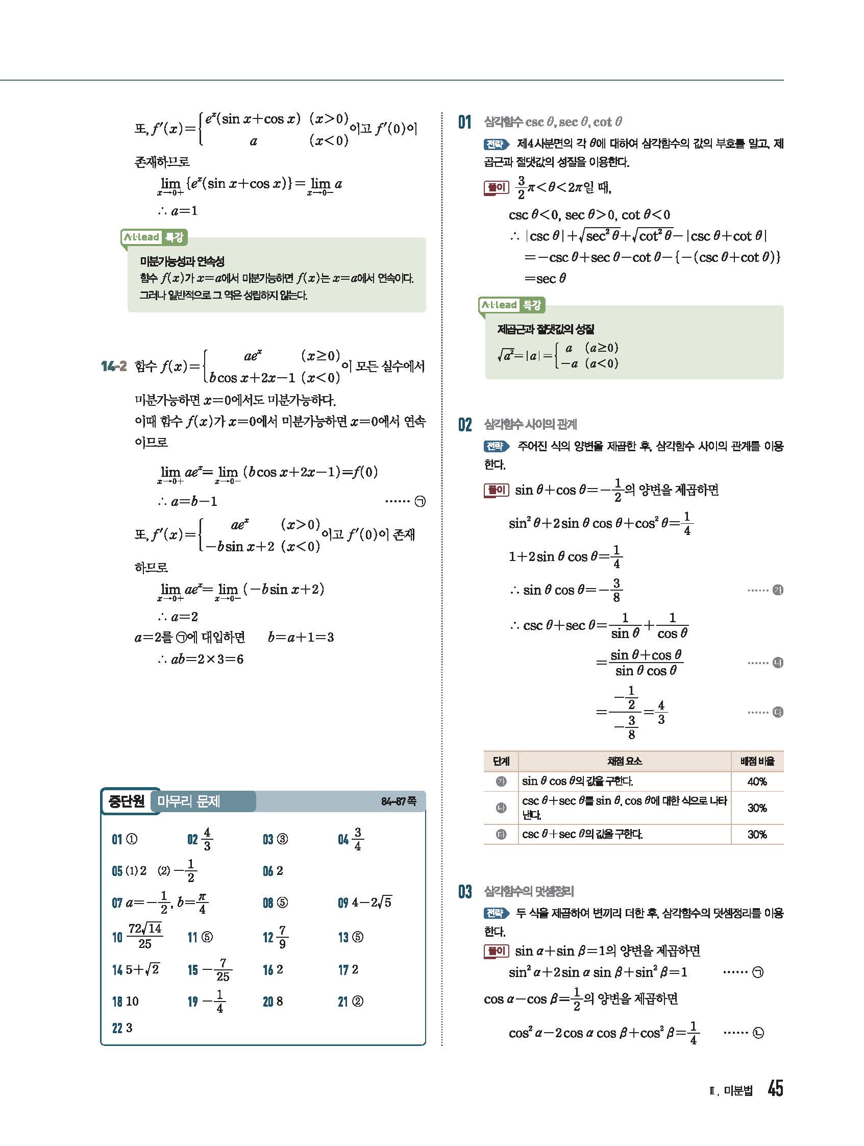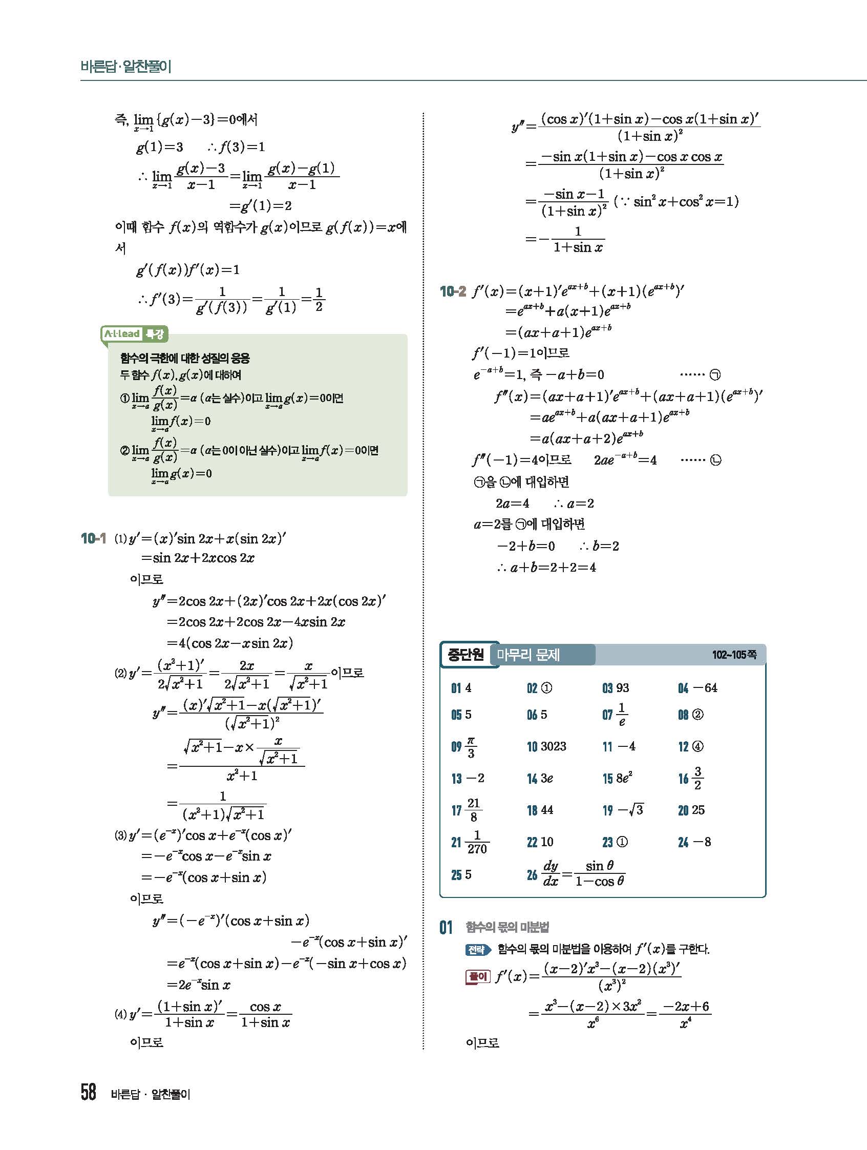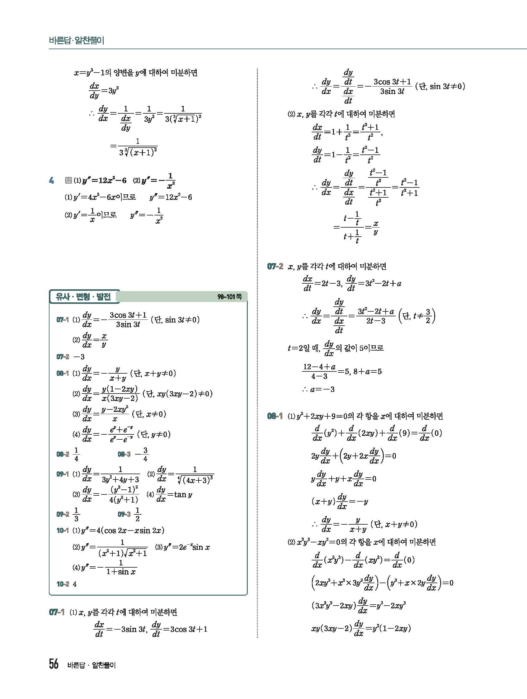 뉴올리드 고등 미적분 답지 해설 사진답지 빠른답지 모바일최적화