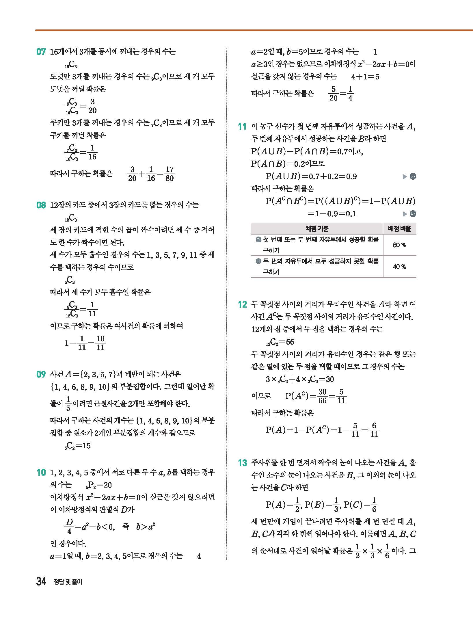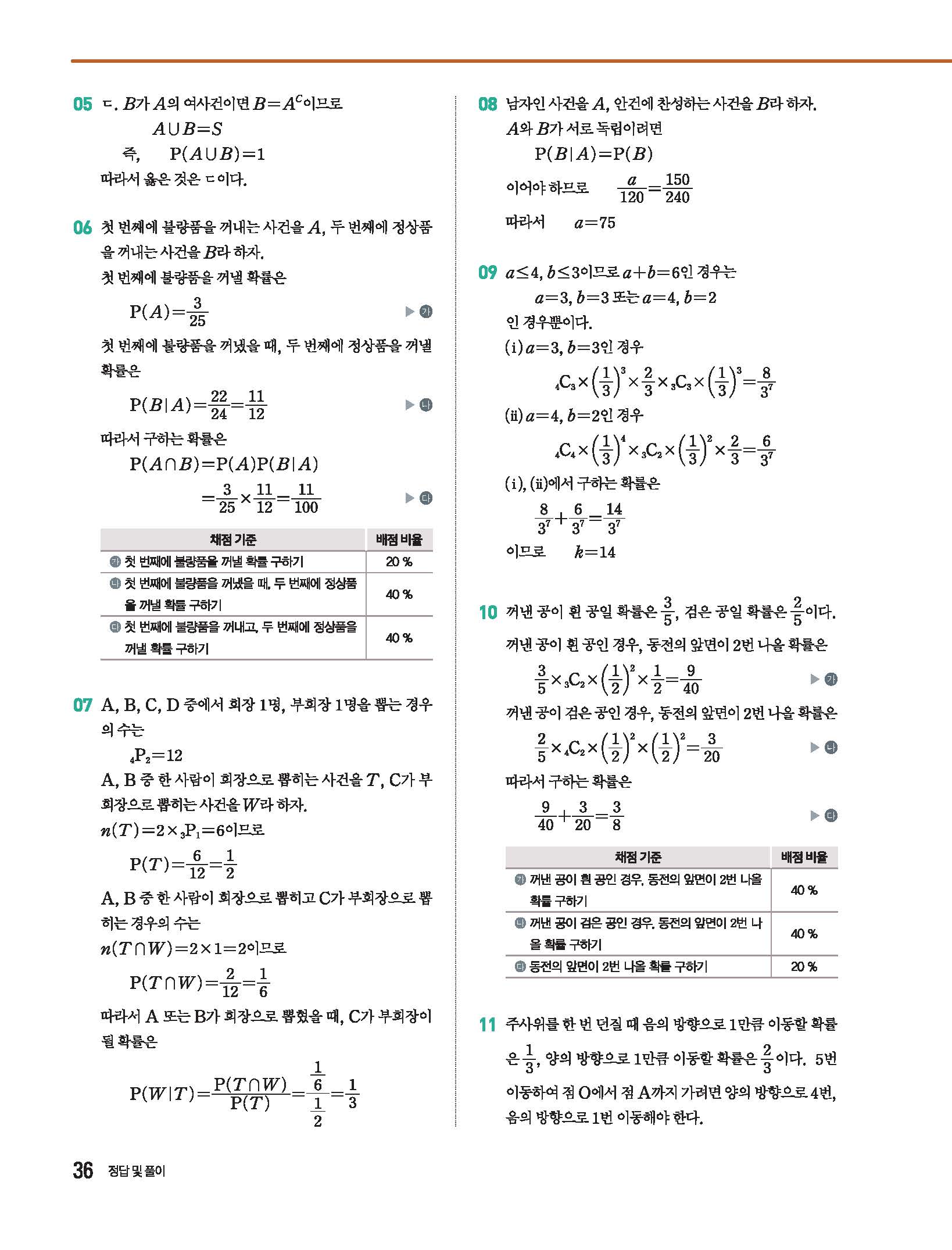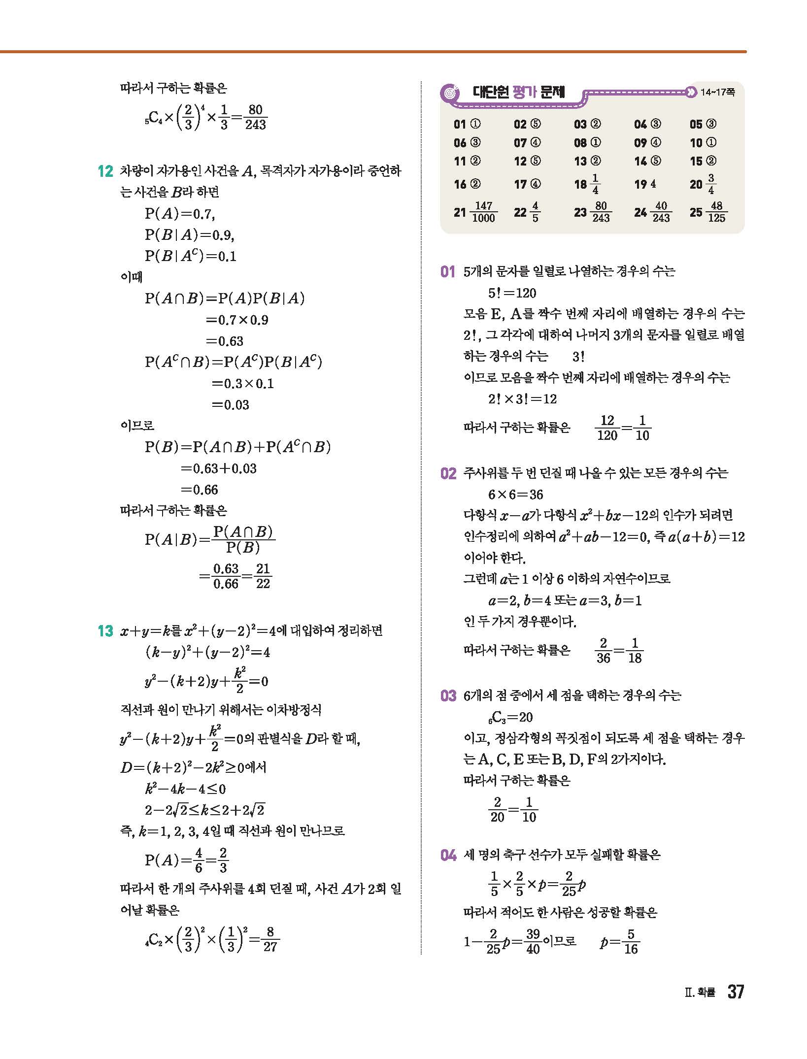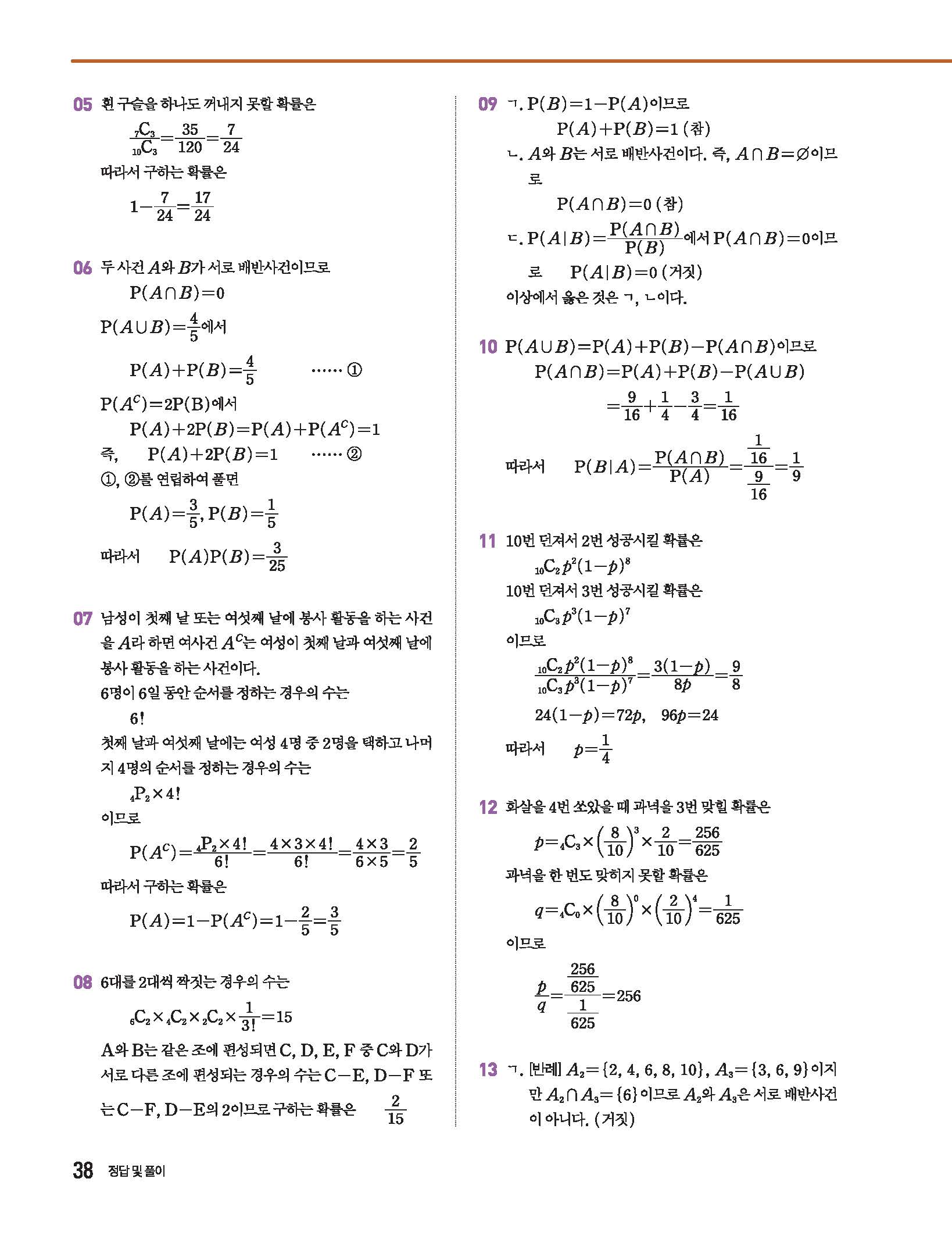 미래엔 확률과통계 자습서 답지 해설 사진답지 빠른답지 모바일최적화