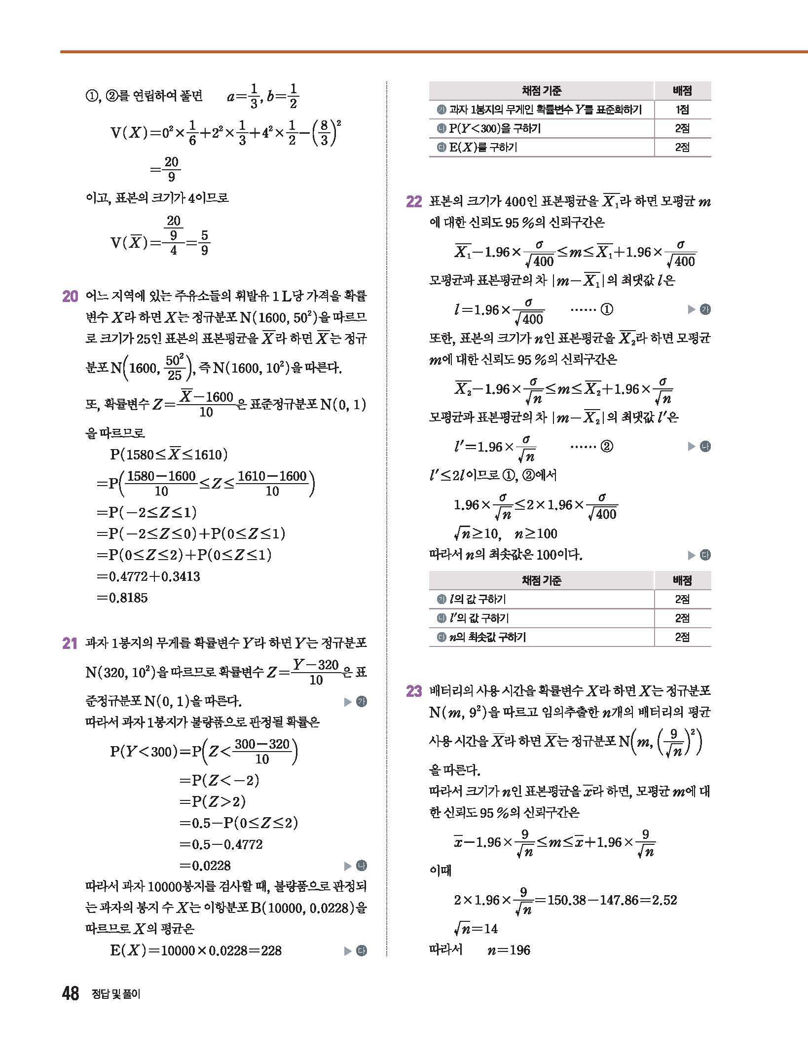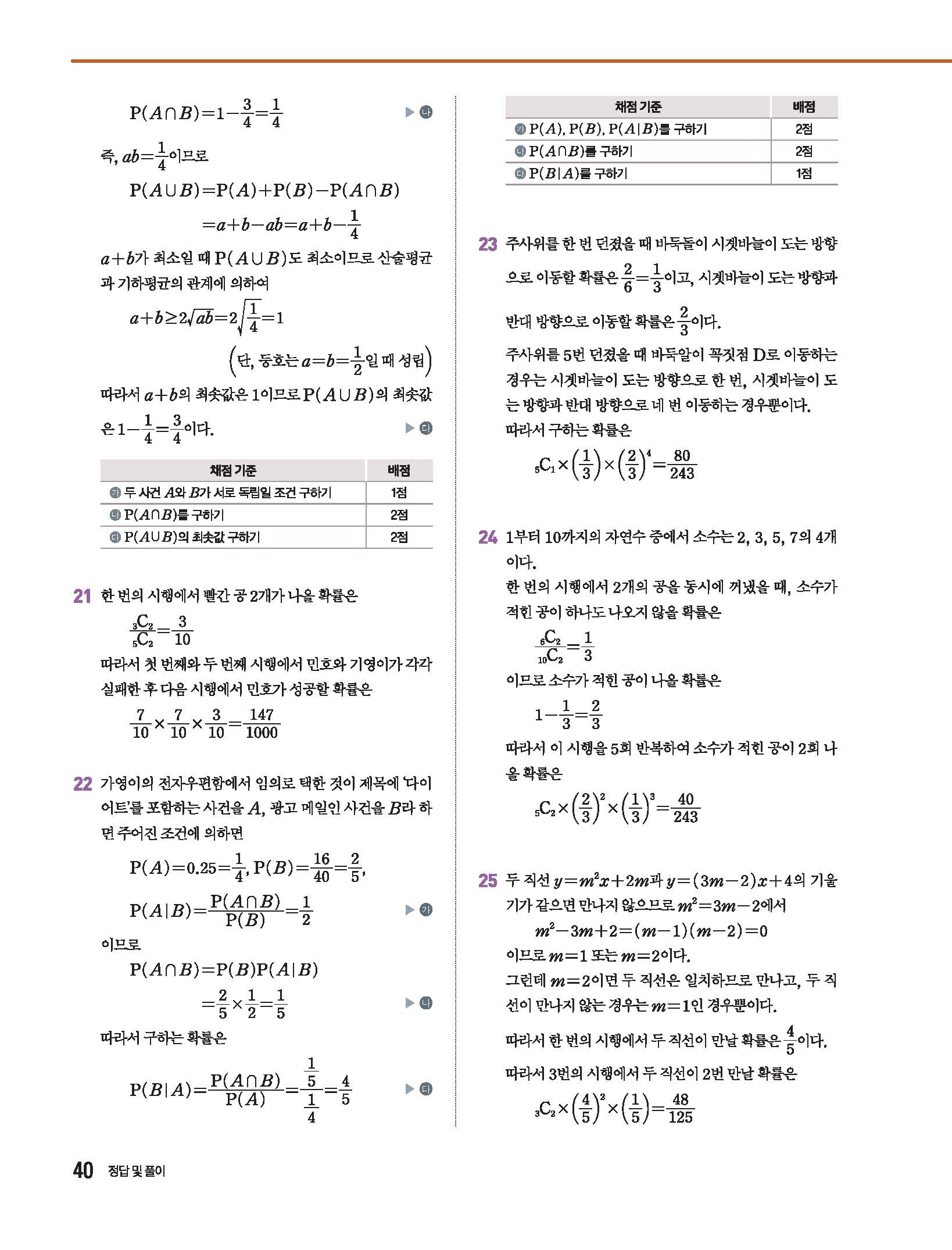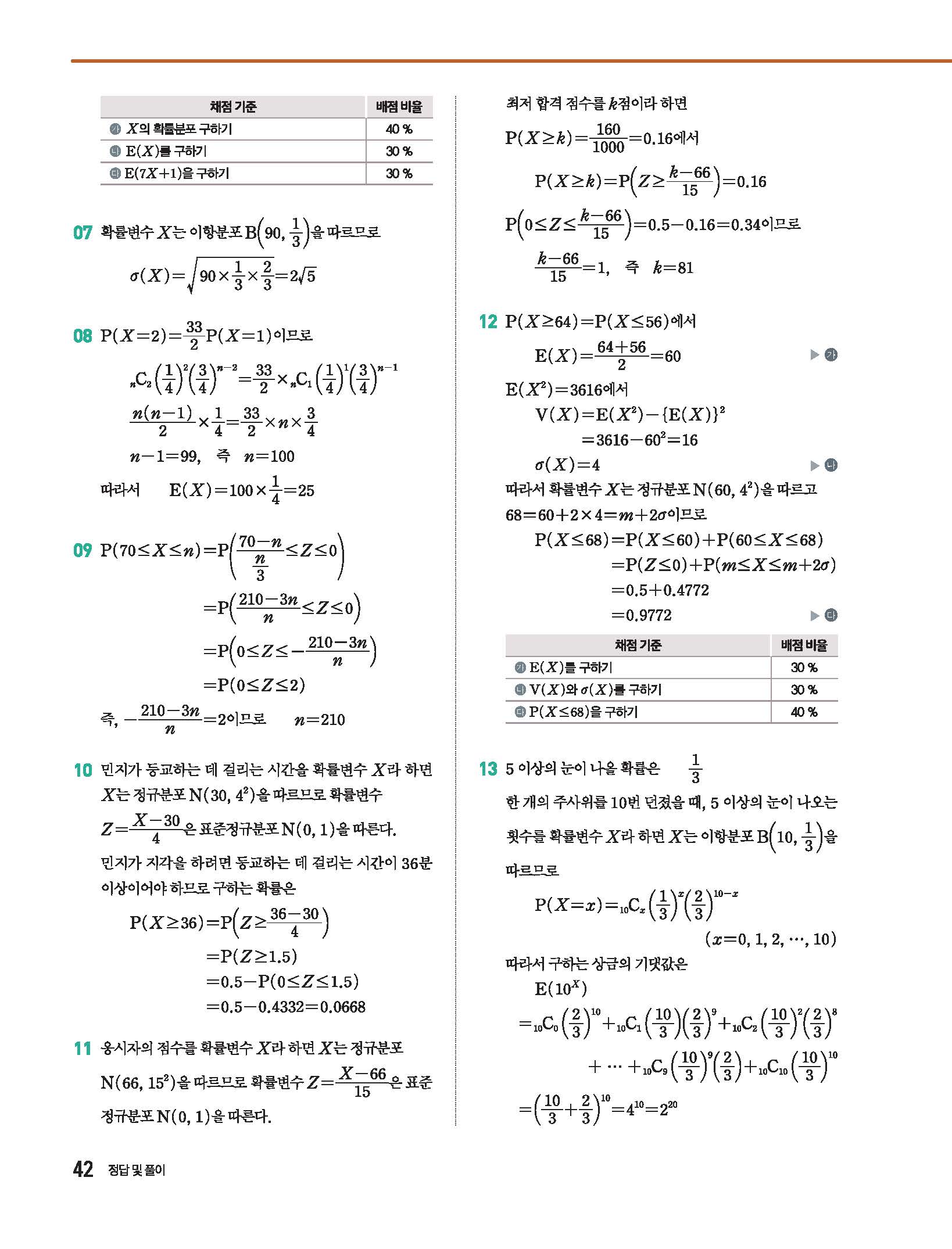 미래엔 확률과통계 자습서 답지 해설 사진답지 빠른답지 모바일최적화