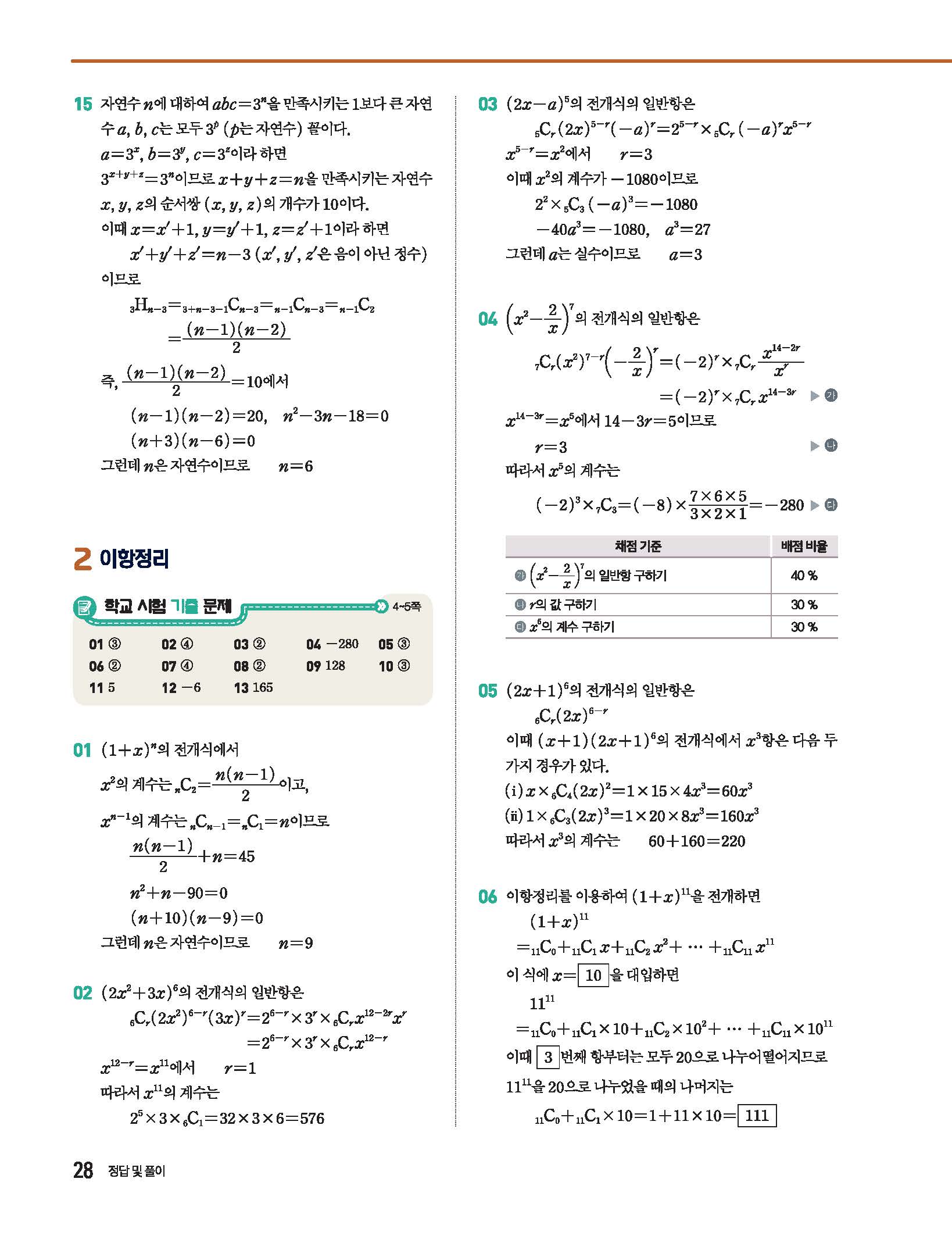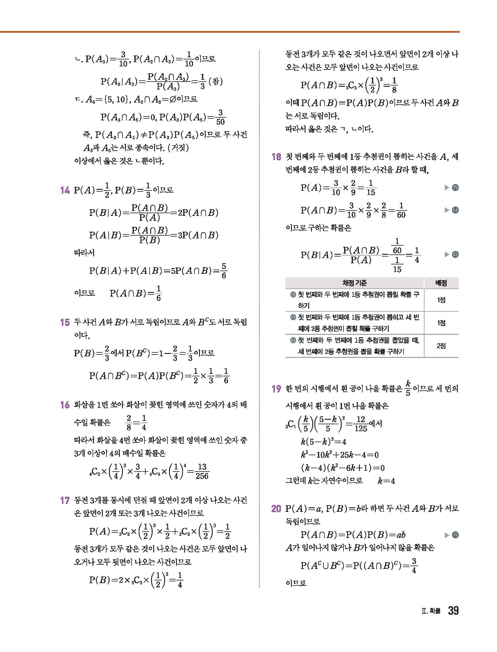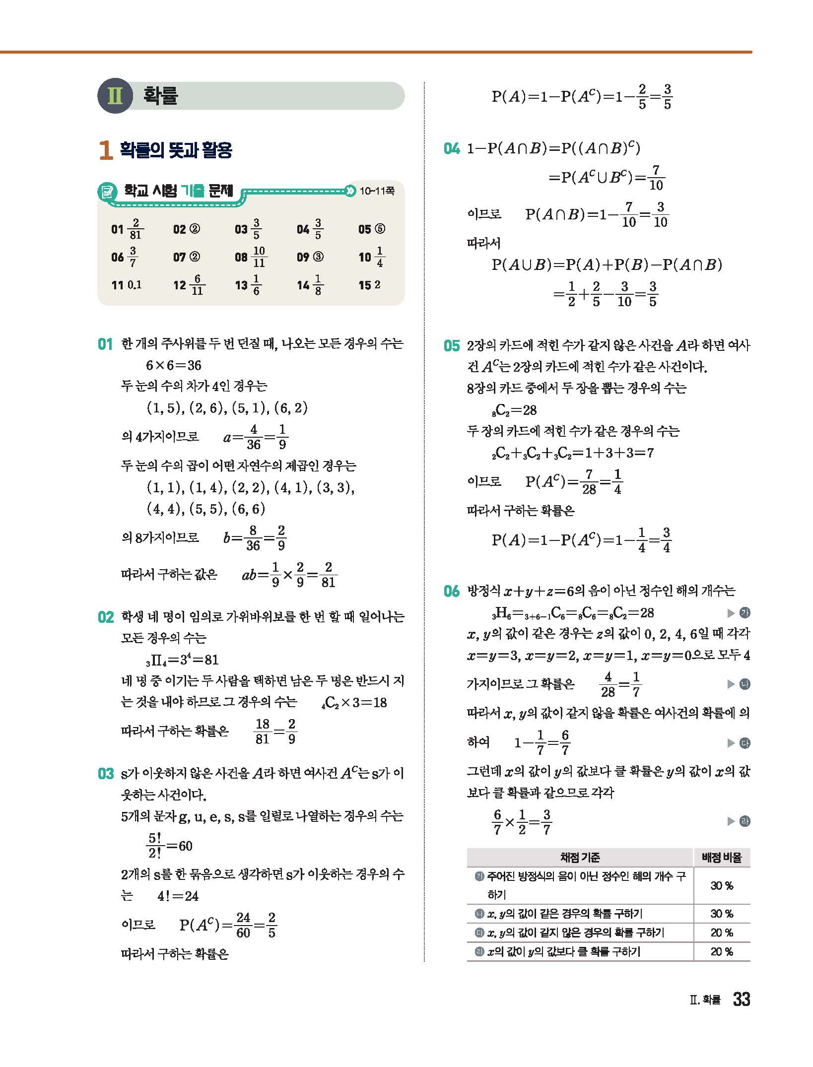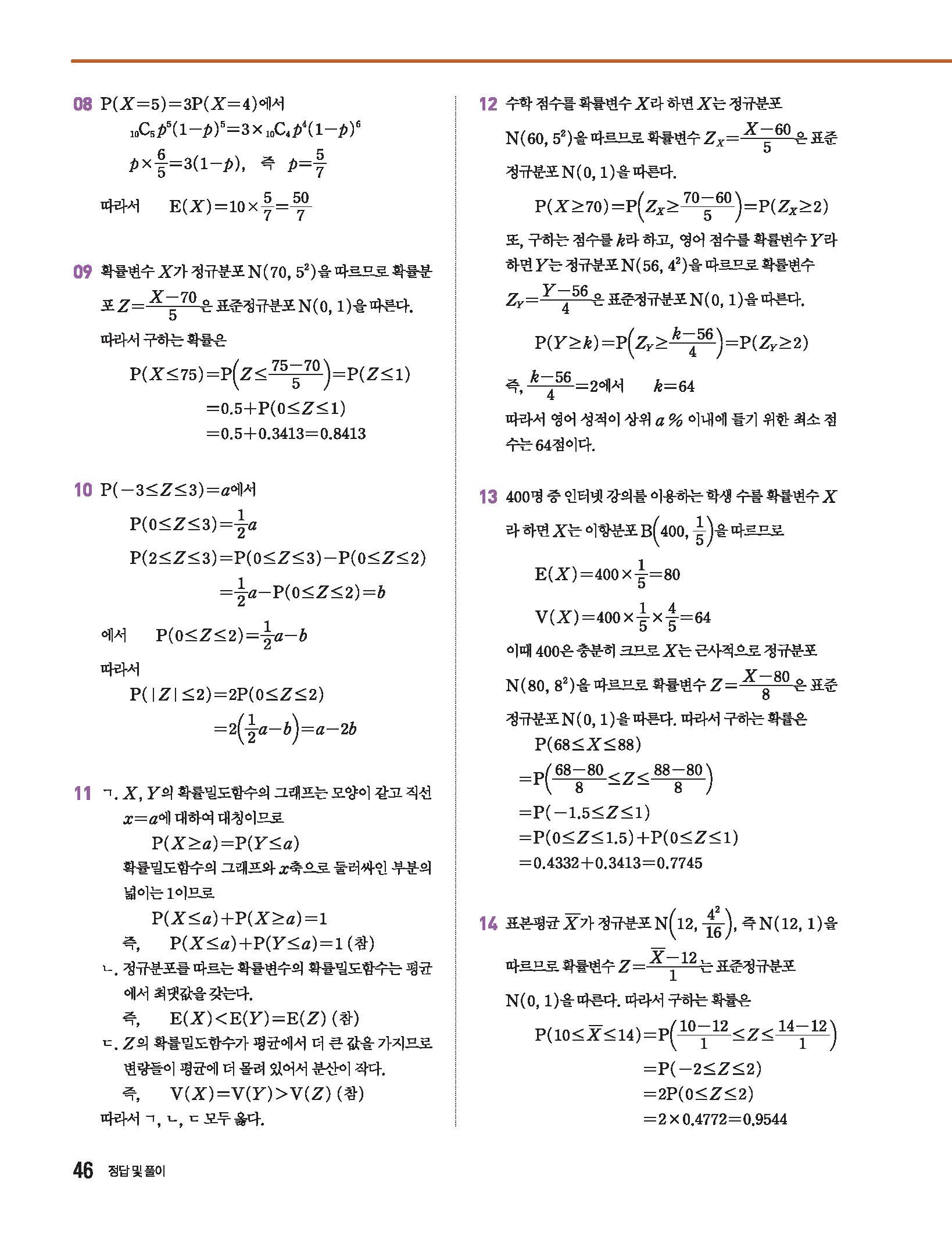 미래엔 확률과통계 자습서 답지 해설 사진답지 빠른답지 모바일최적화
