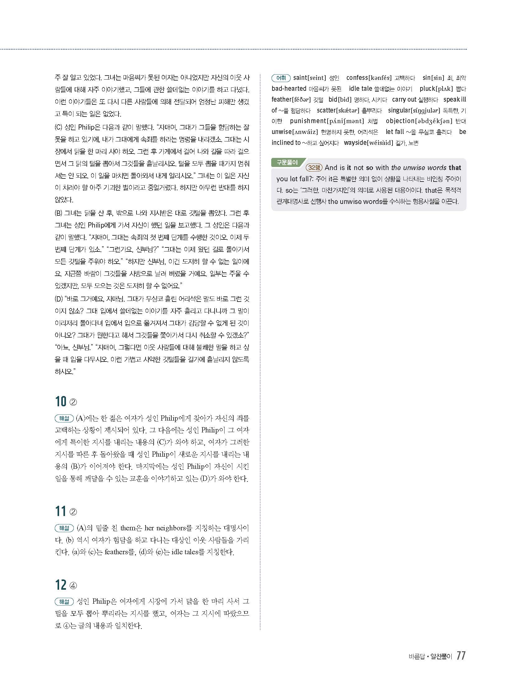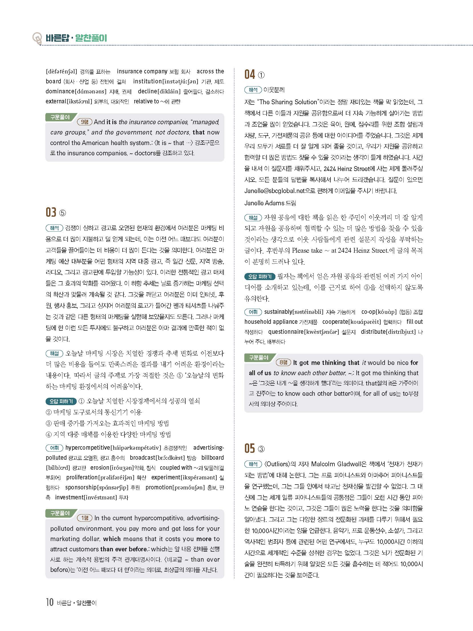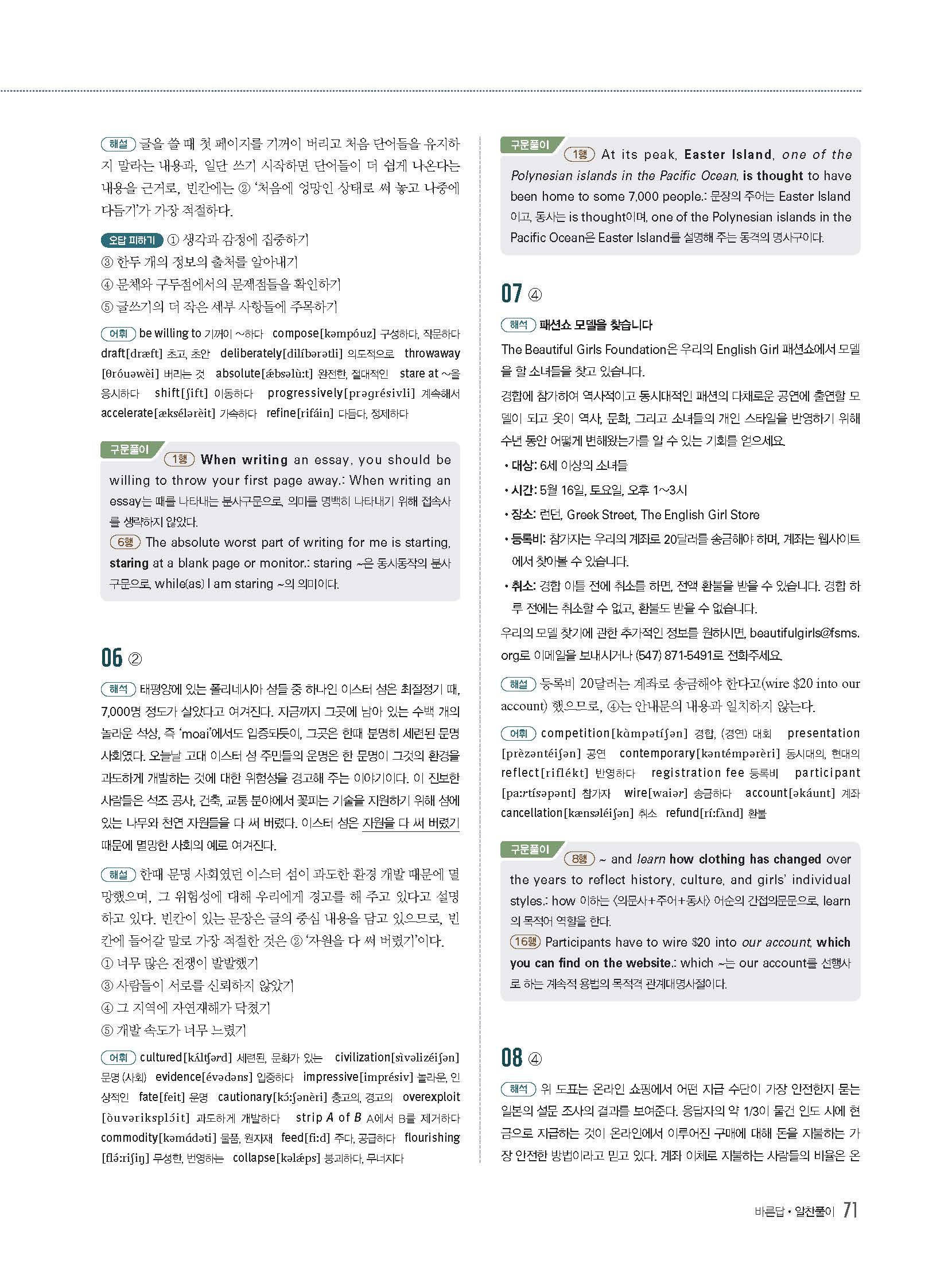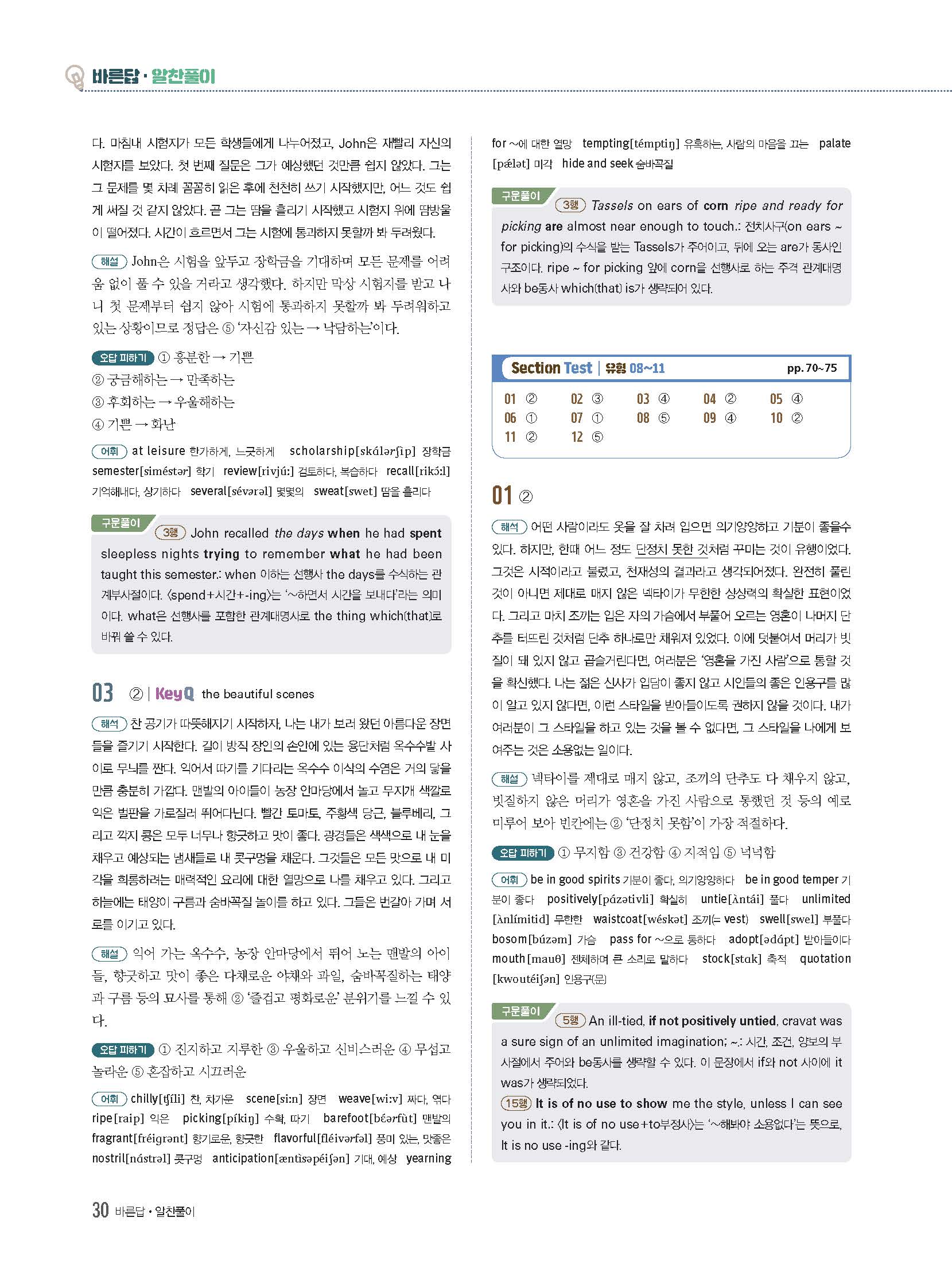 파사쥬 영어 유형독해 답지 해설 사진답지 빠른답지 모바일최적화