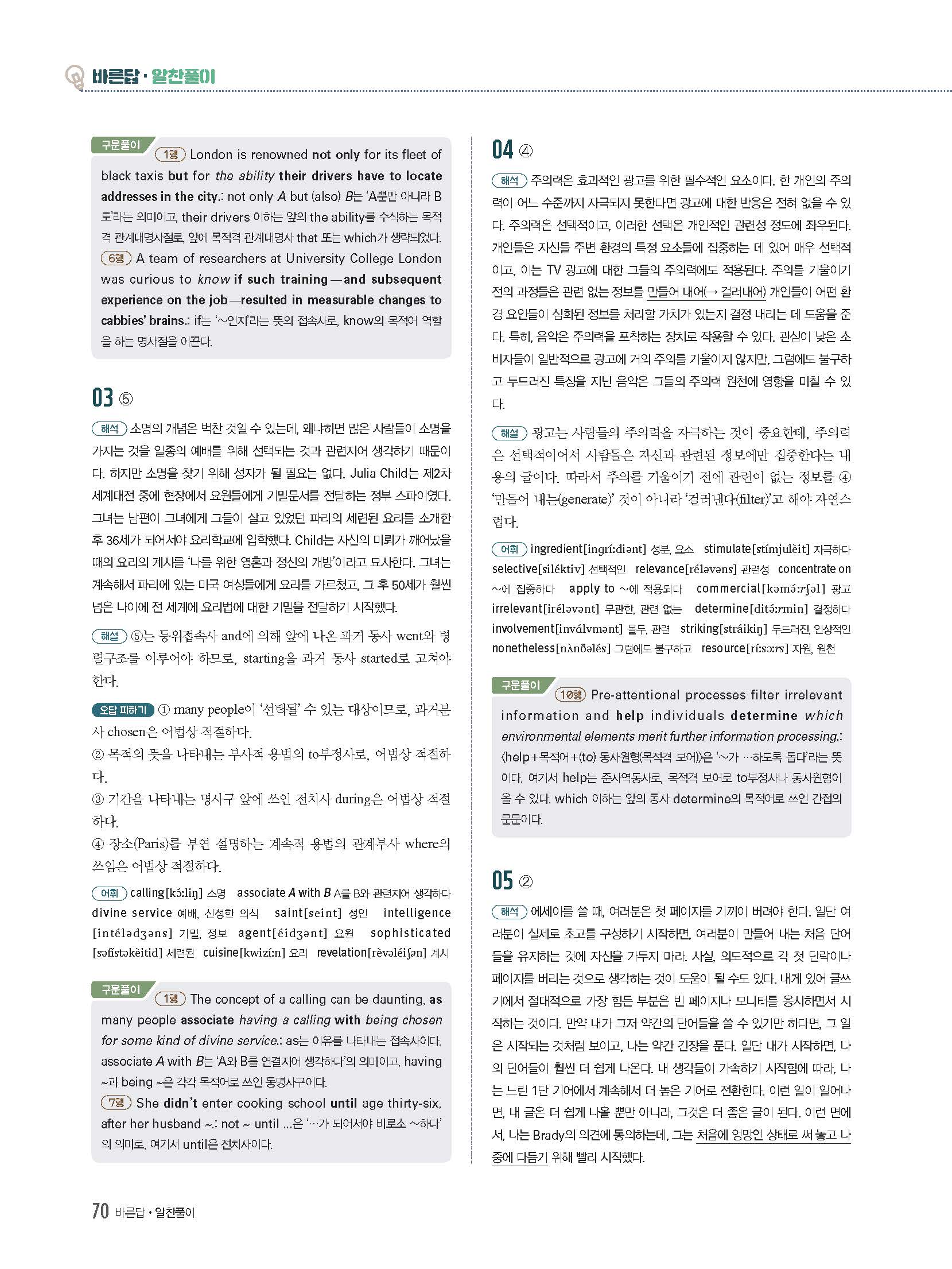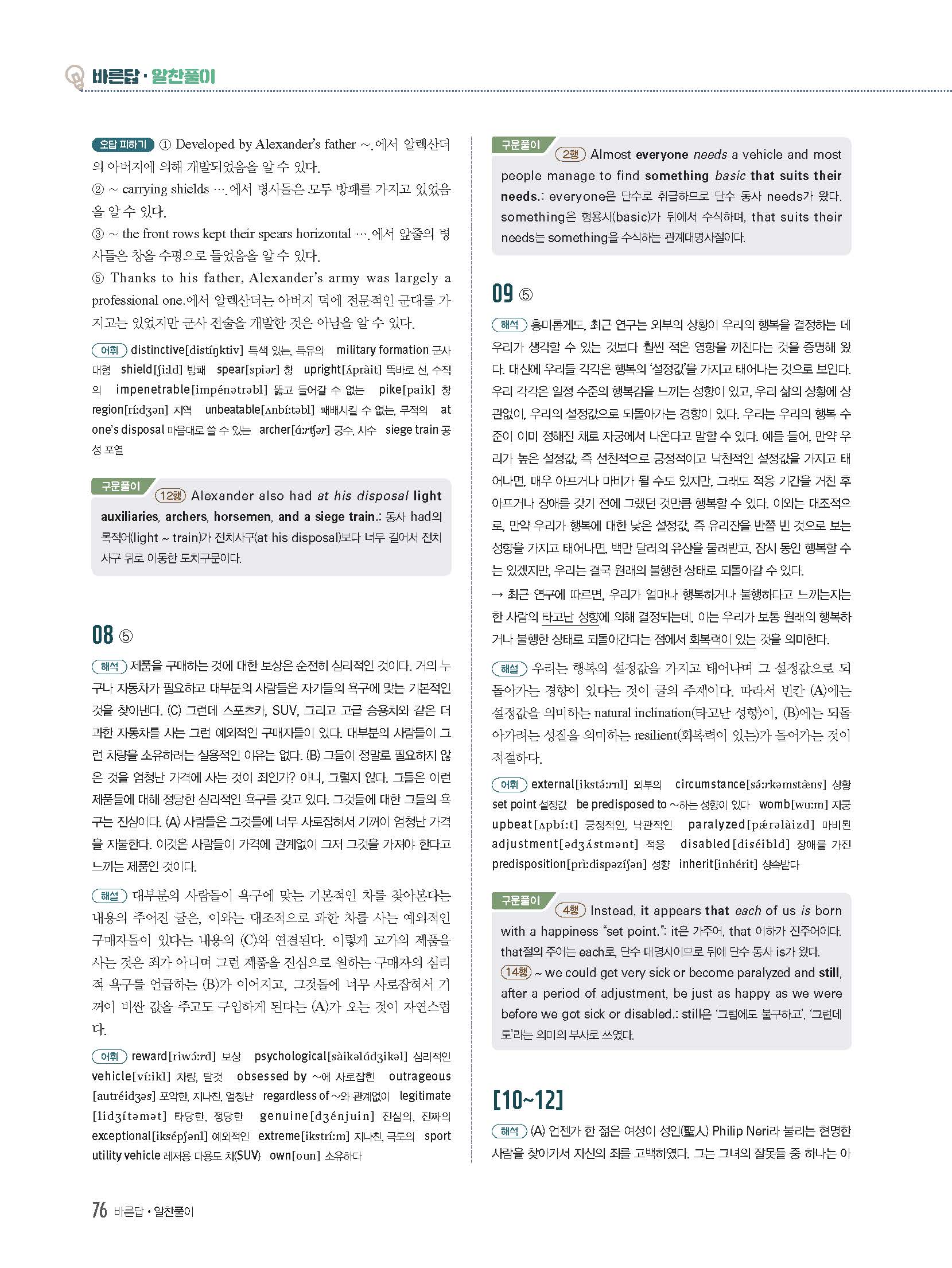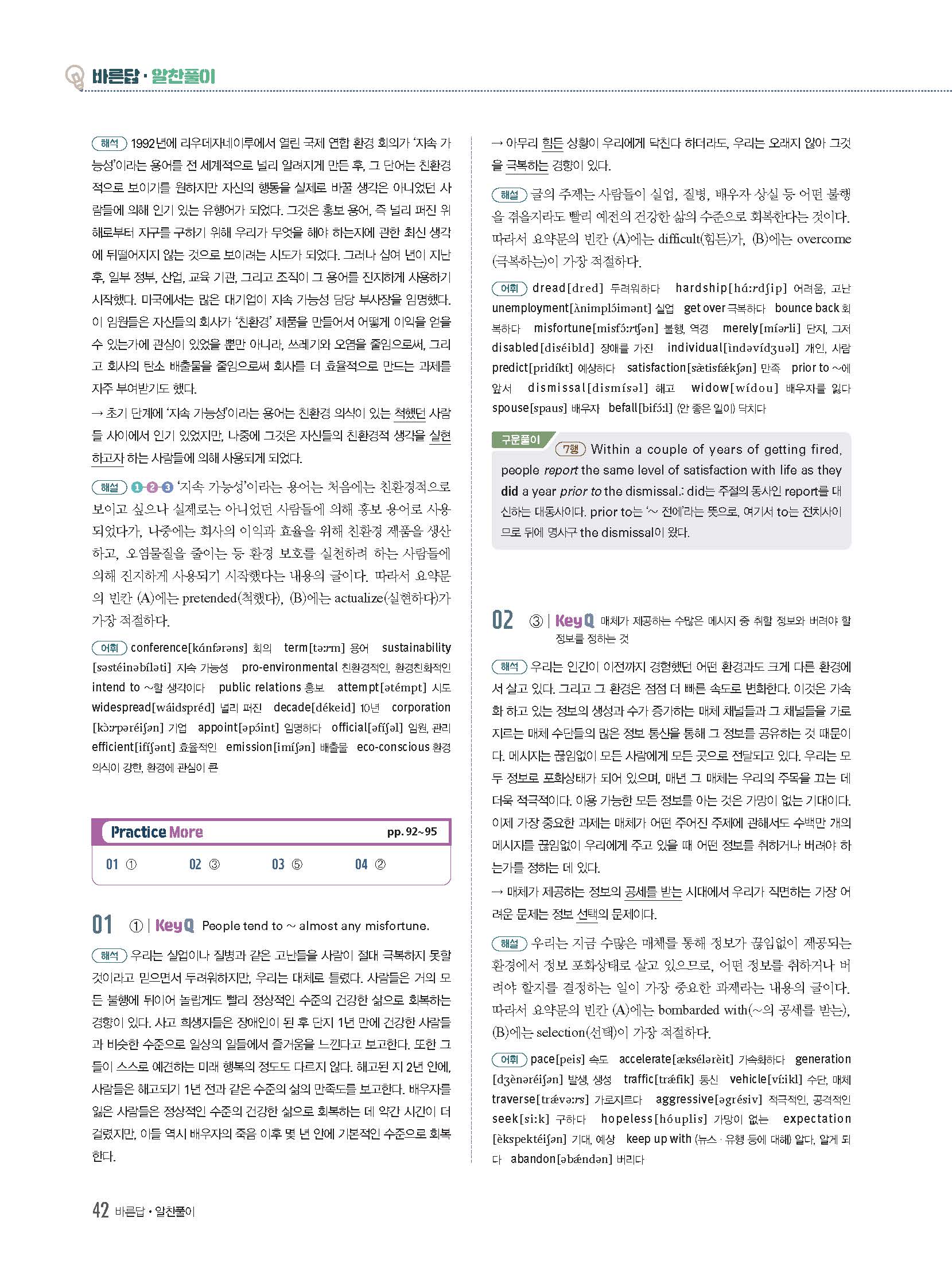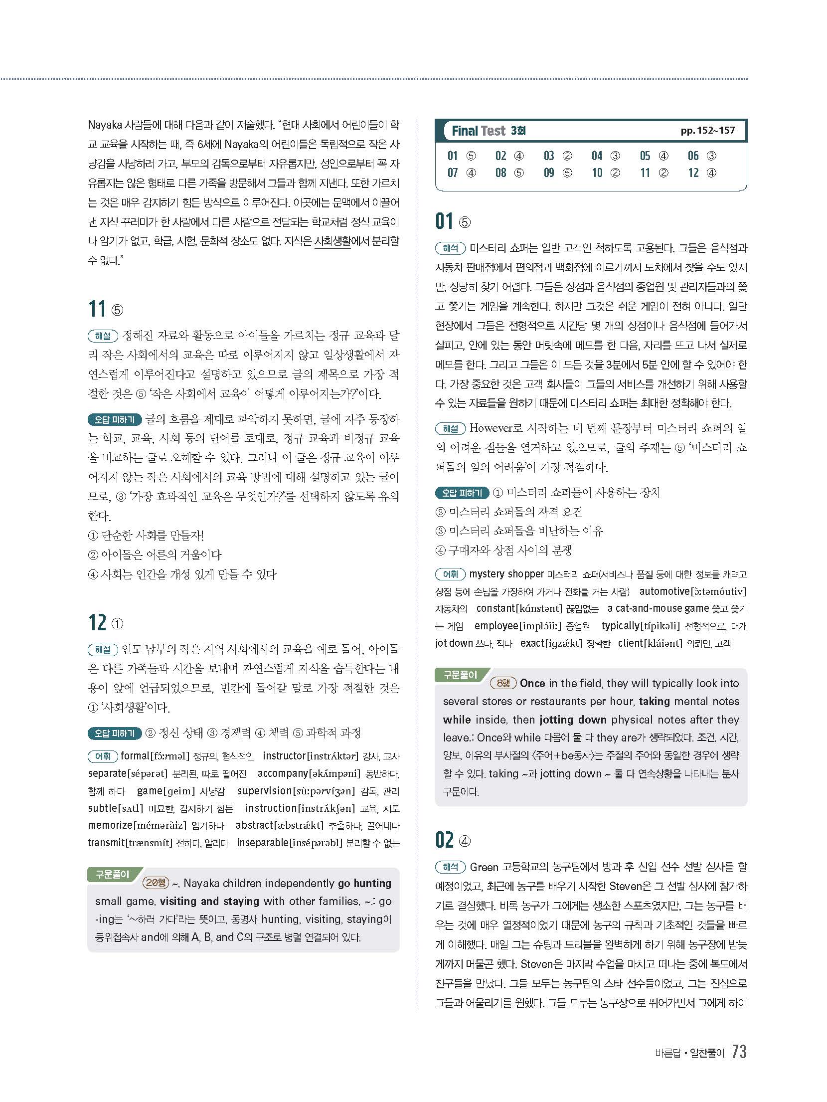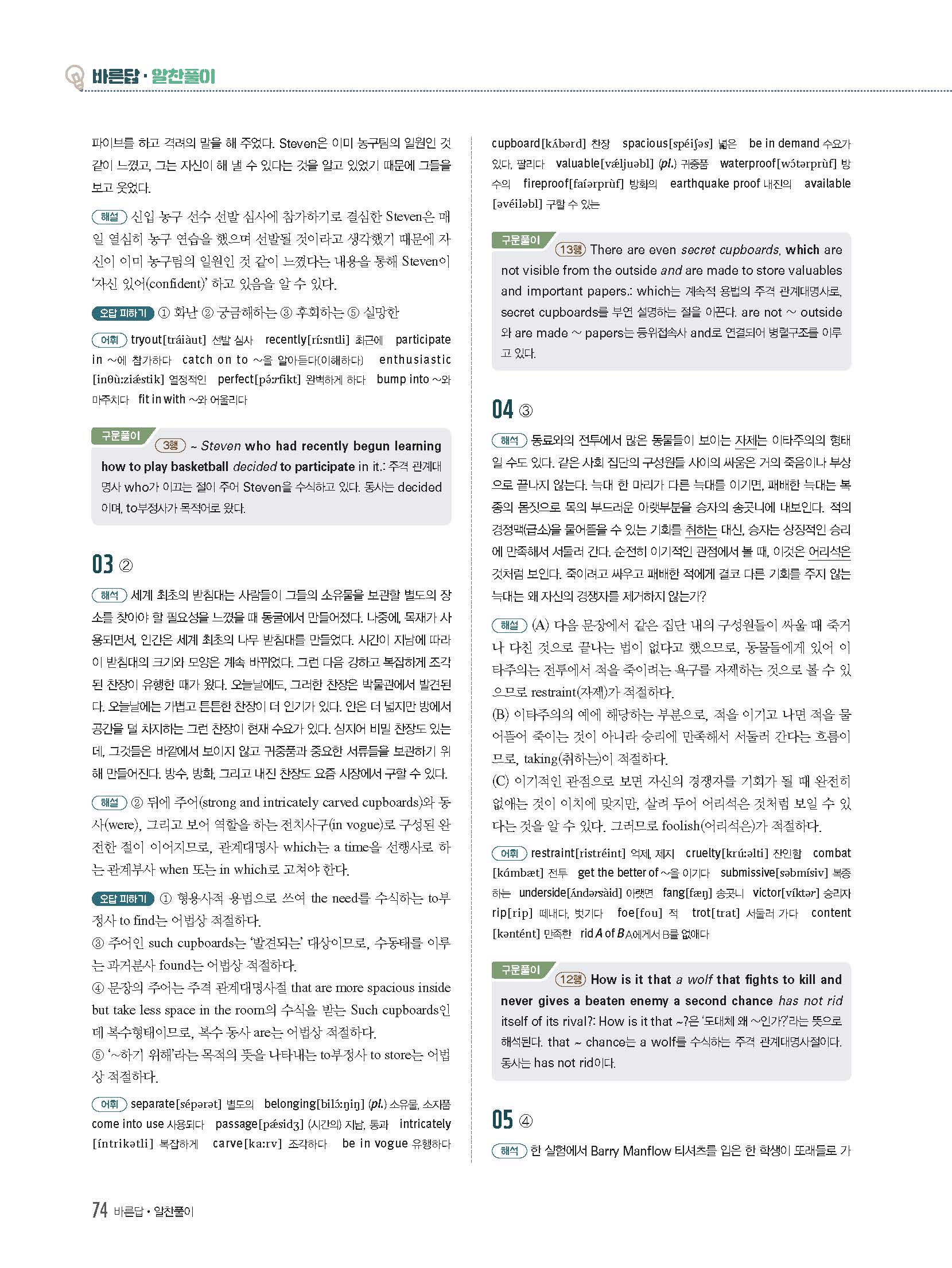 파사쥬 영어 유형독해 답지 해설 사진답지 빠른답지 모바일최적화