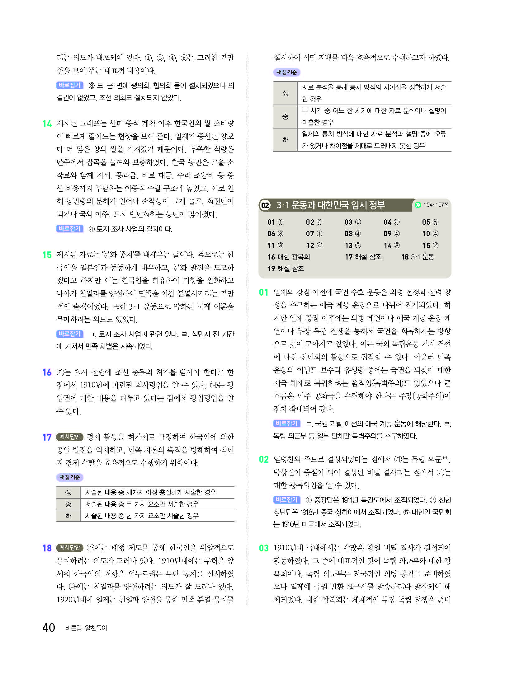 미래엔 자습서 한국사 답지 사진답지 빠른답지 모바일최적화