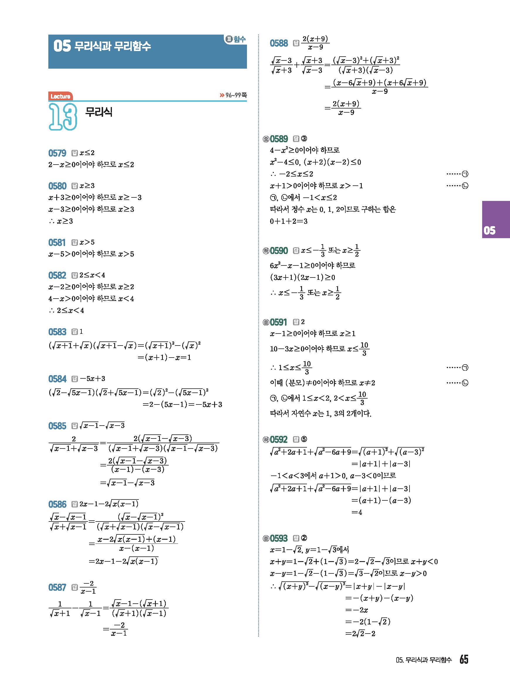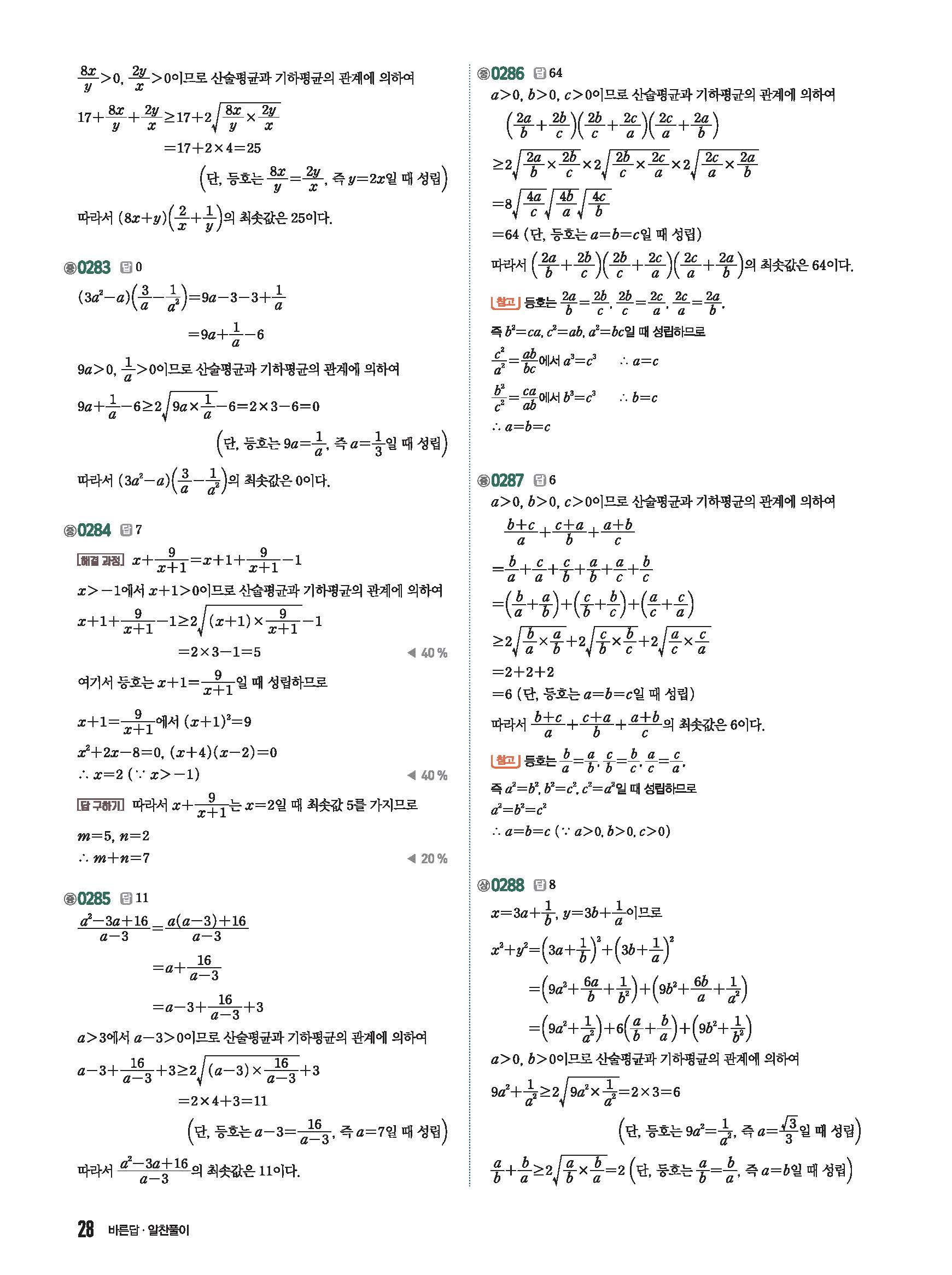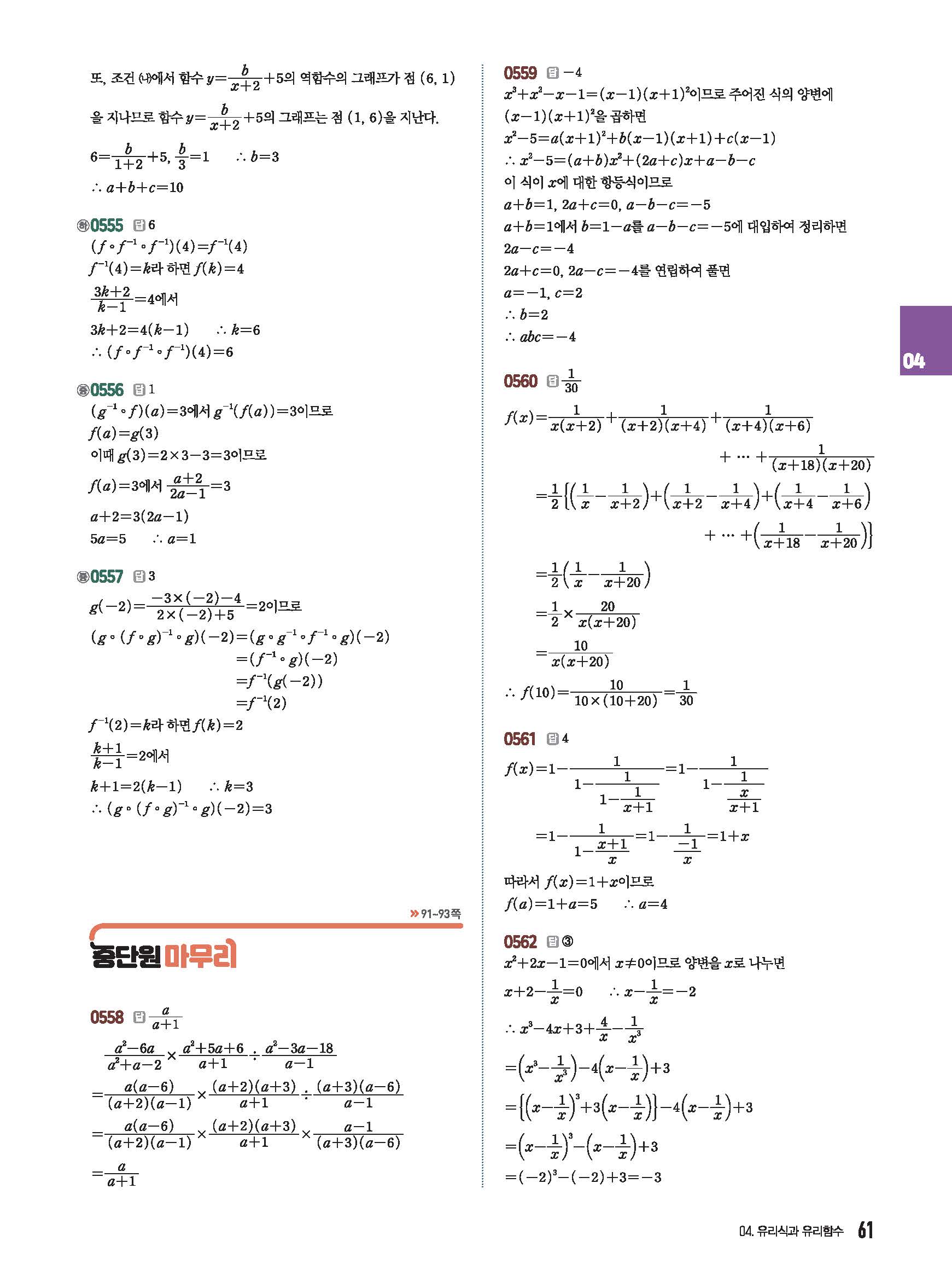 유형중심 고등수학하 답지 해설 사진답지 빠른답지 모바일최적화 미래엔