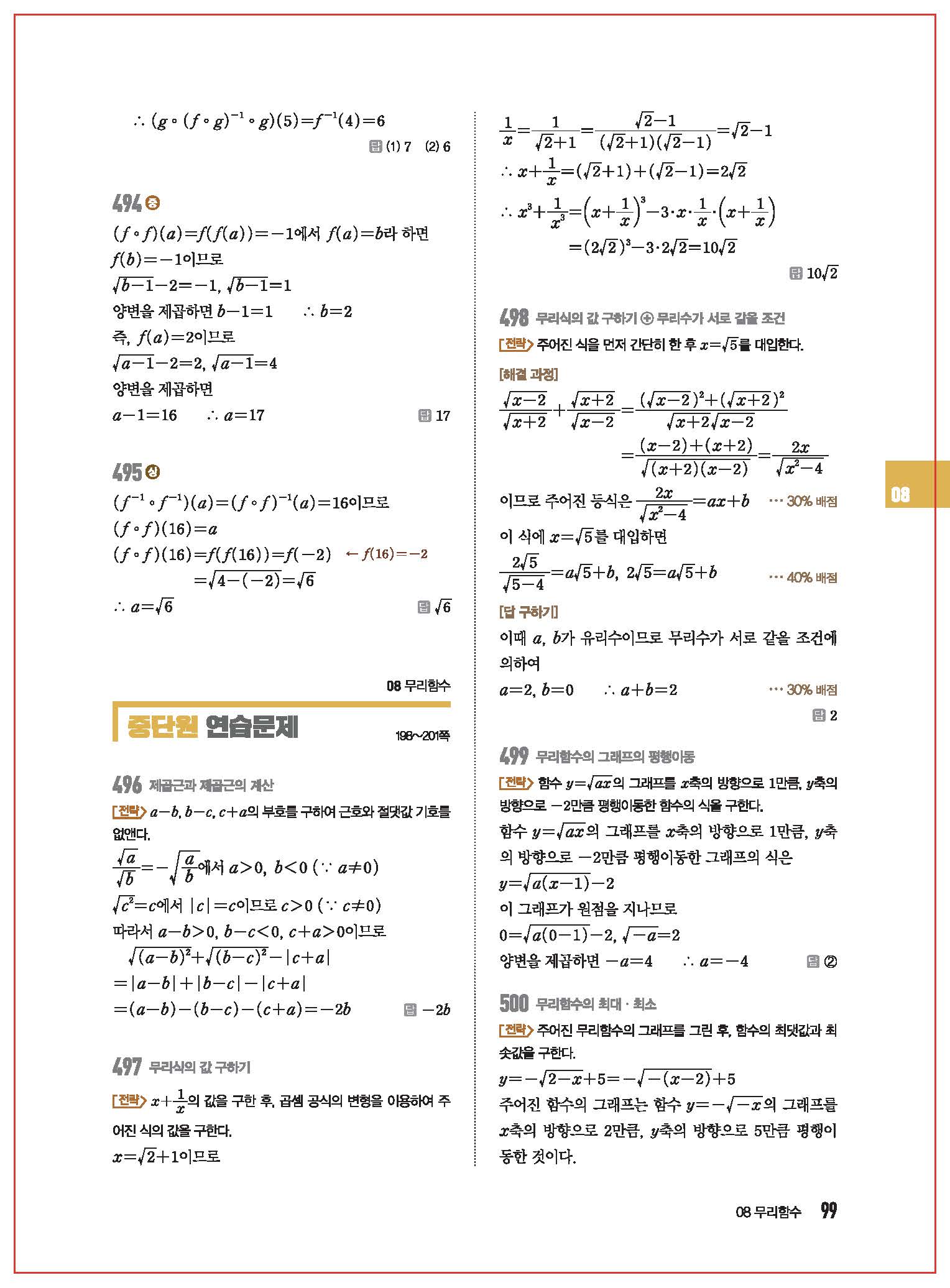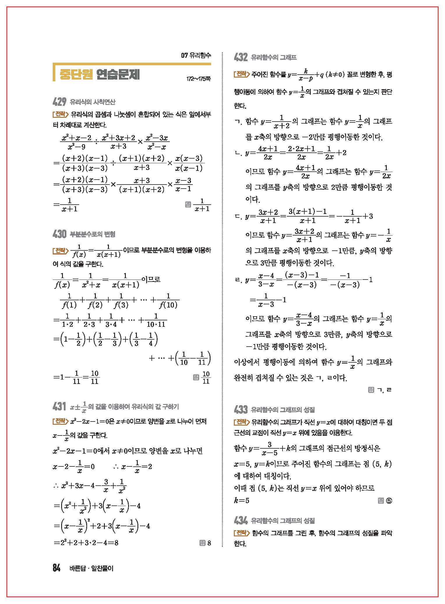 수학중심 고등수학하 답지 해설 사진답지 빠른답지 모바일최적화 미래엔