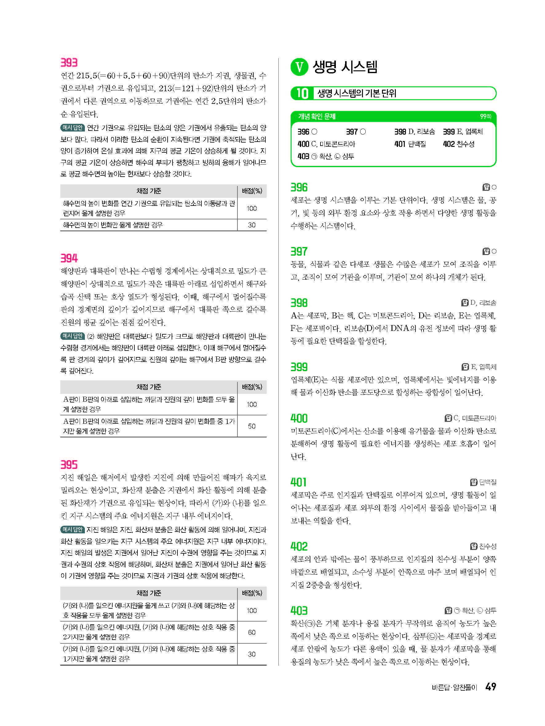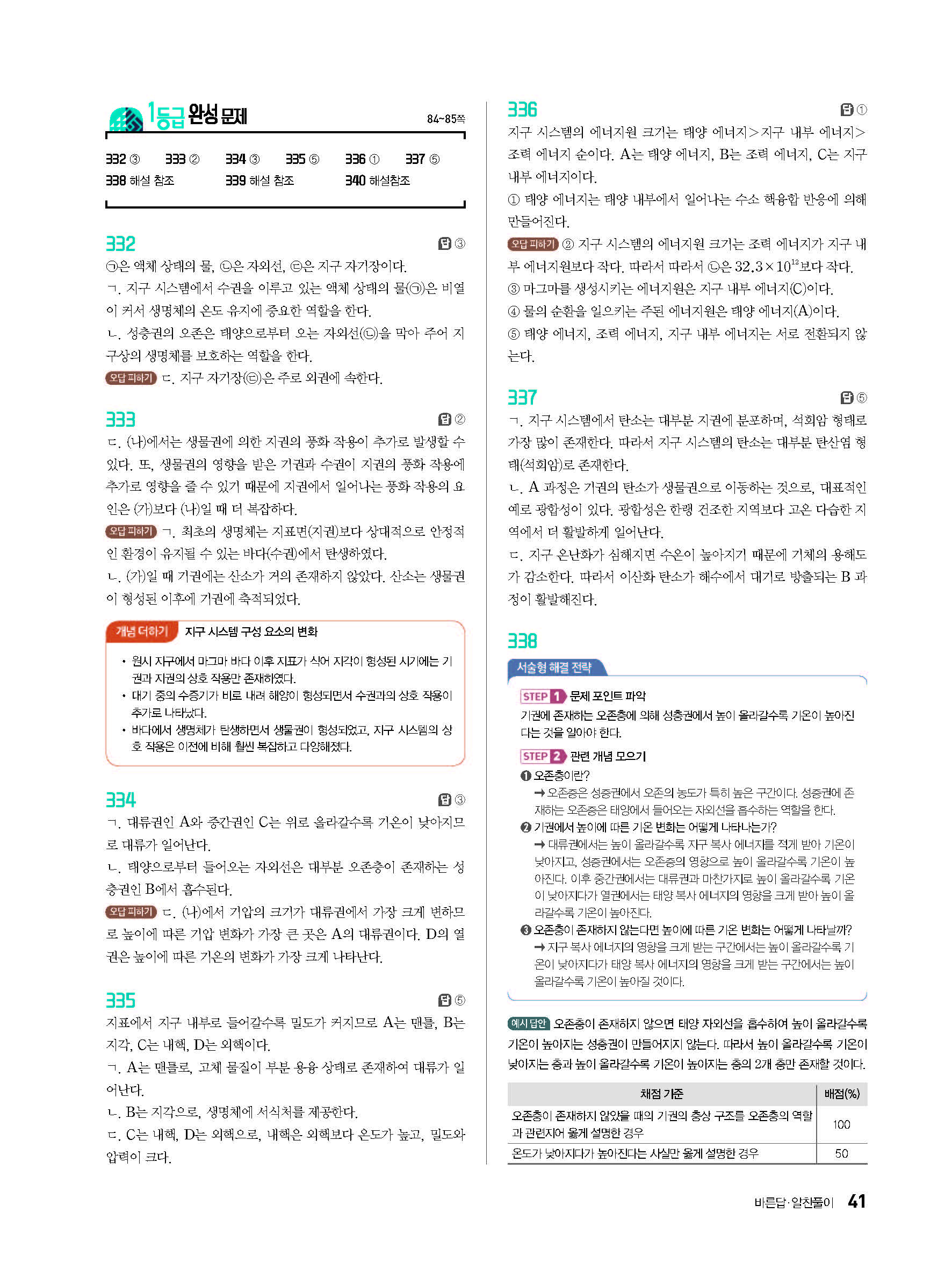 일등급만들기 통합과학 답지 사진답지 빠른답지 모바일최적화