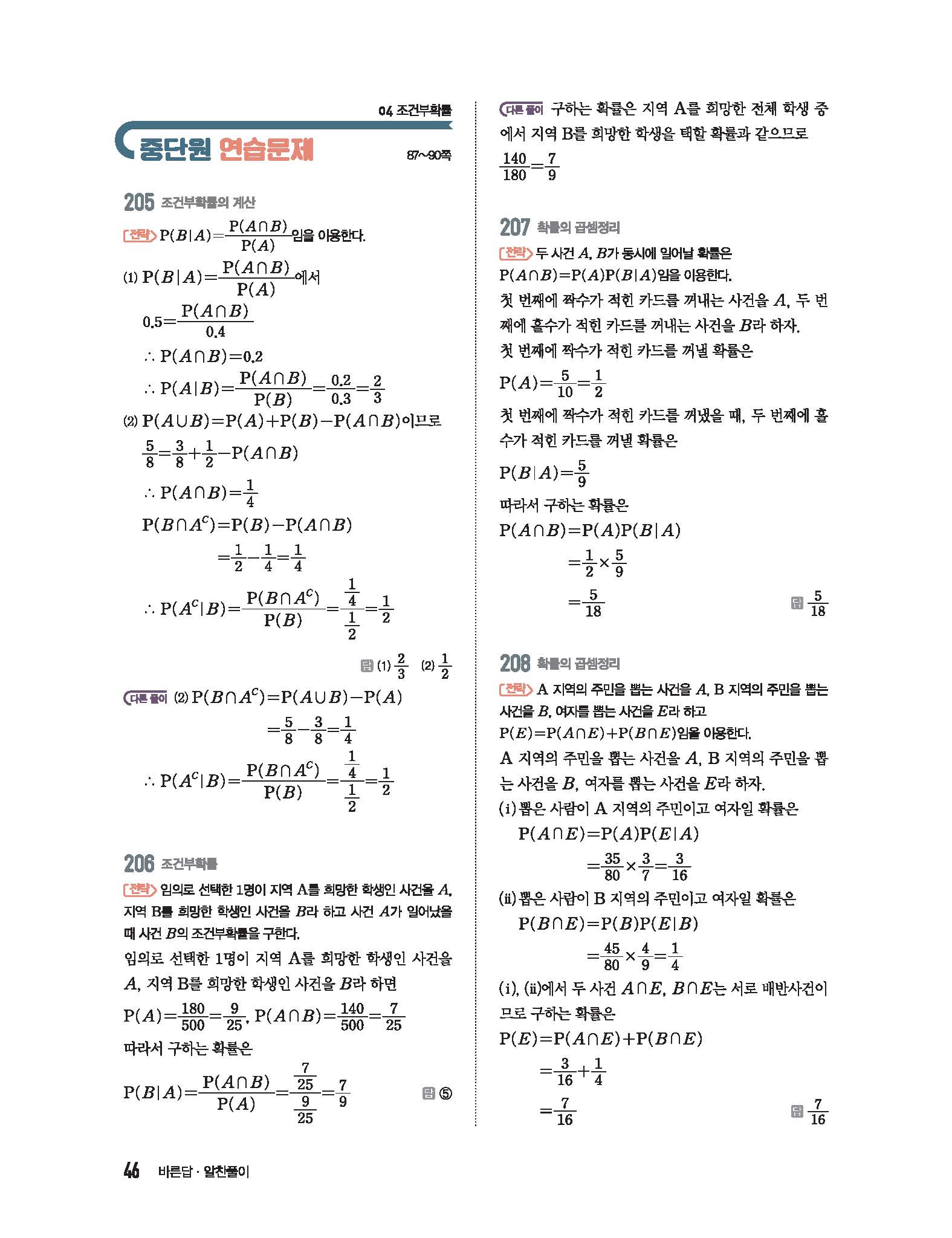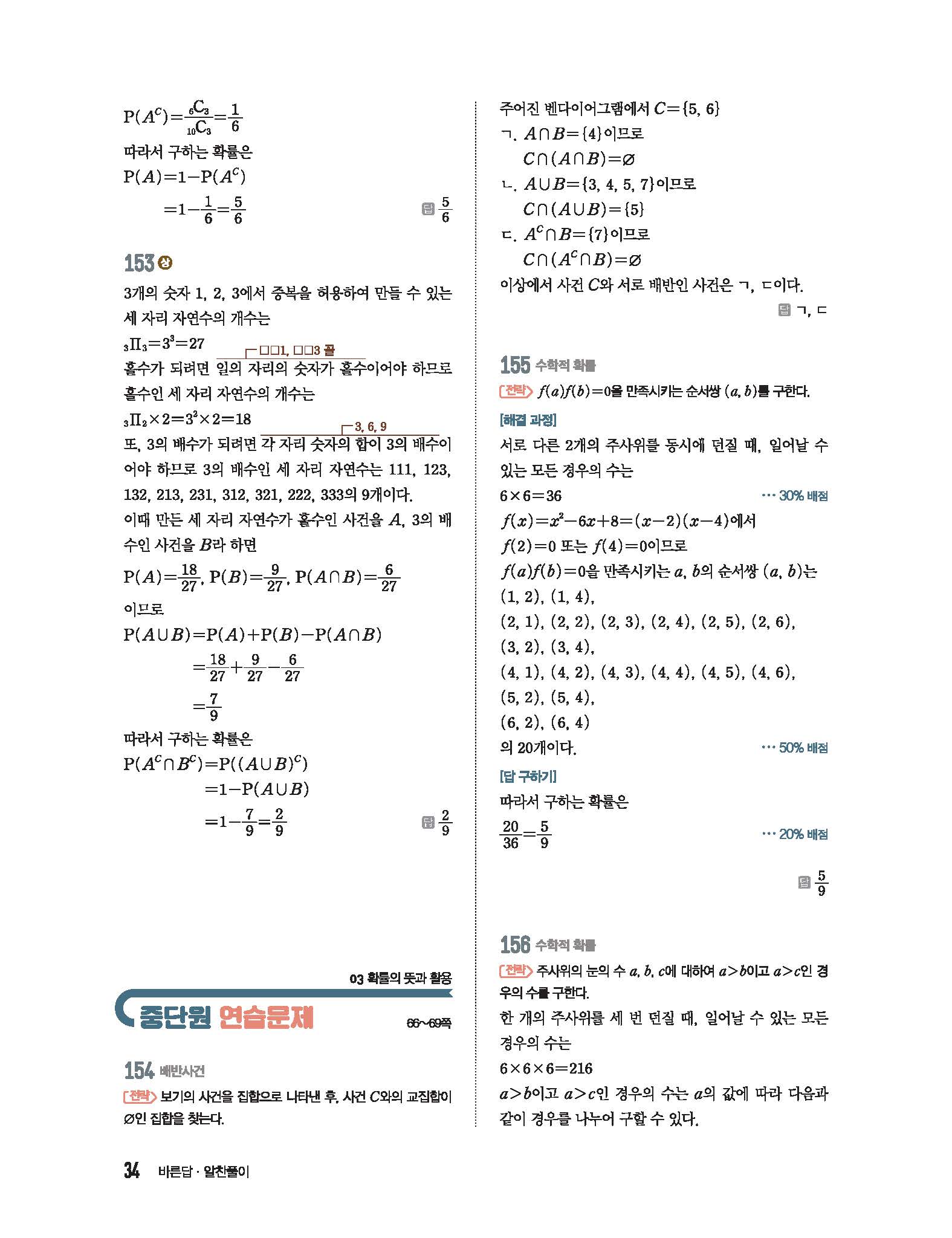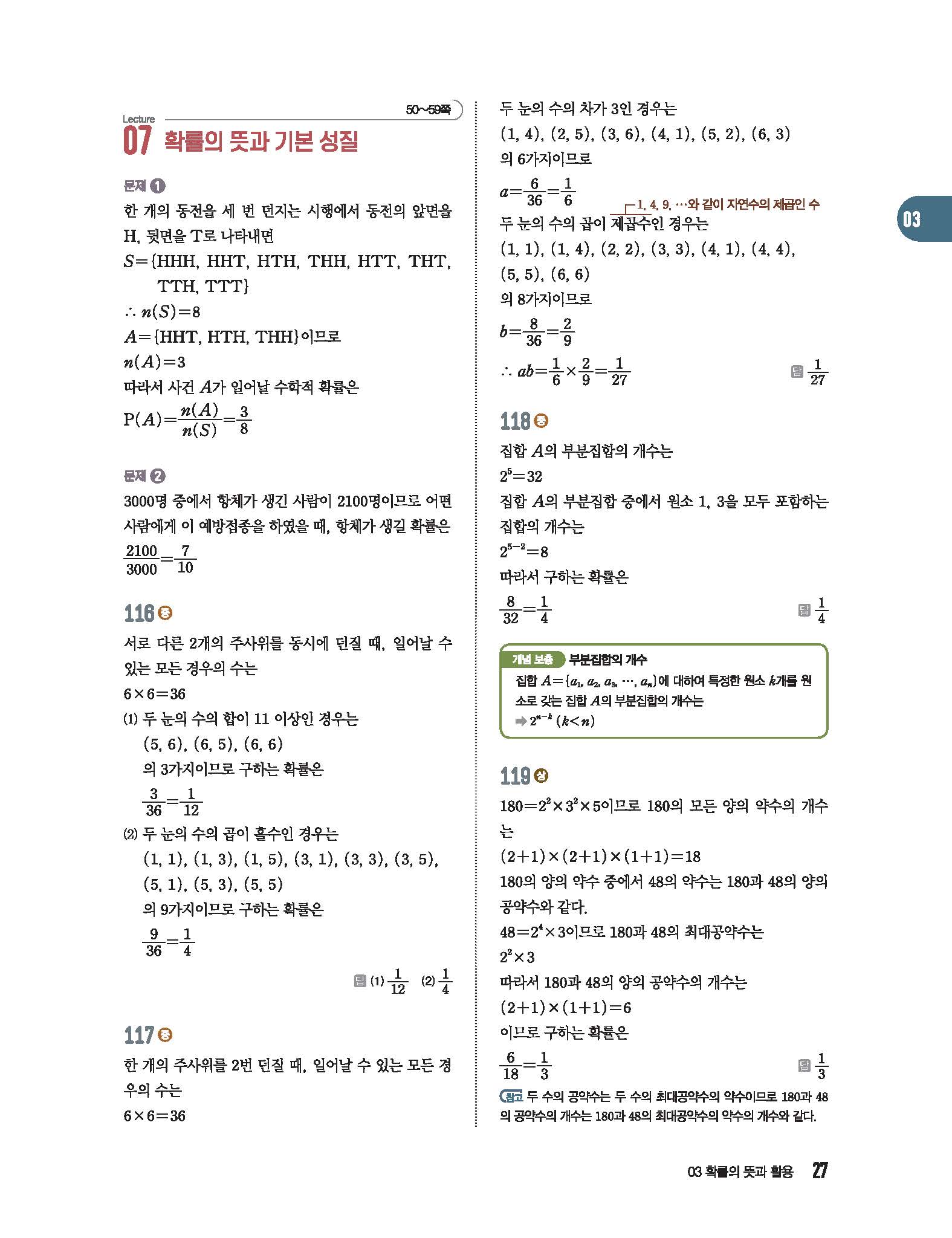 수학중심 확률과통계 답지 해설 사진답지 빠른답지 모바일최적화