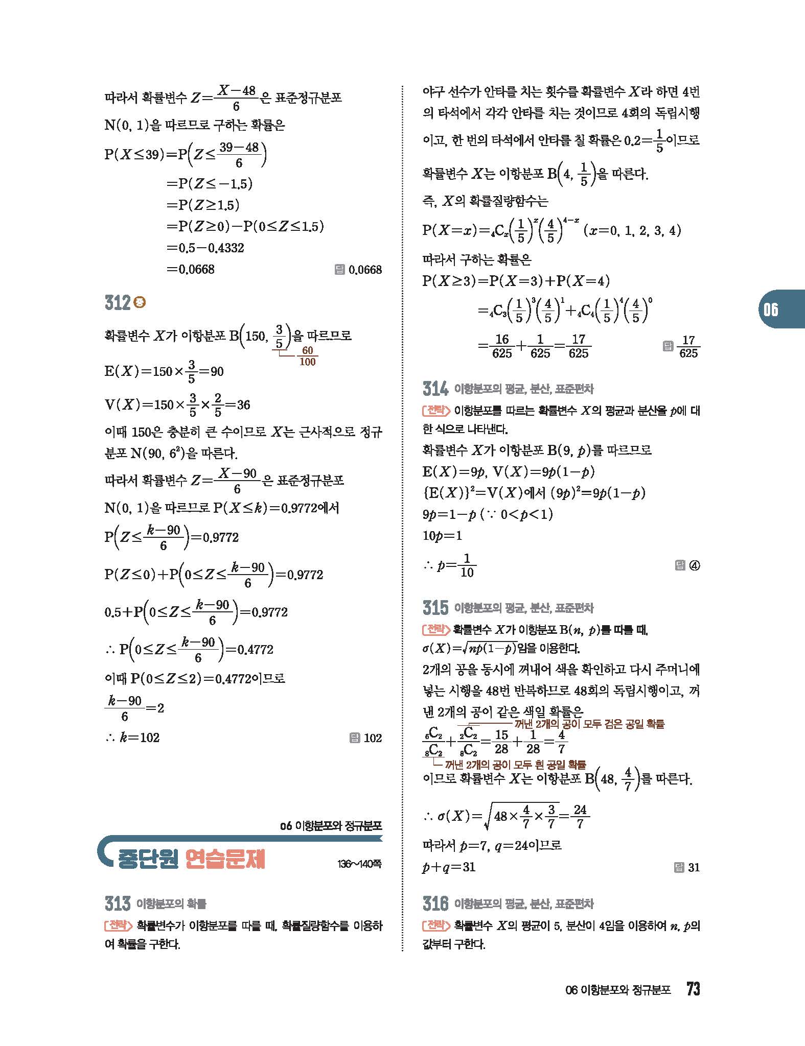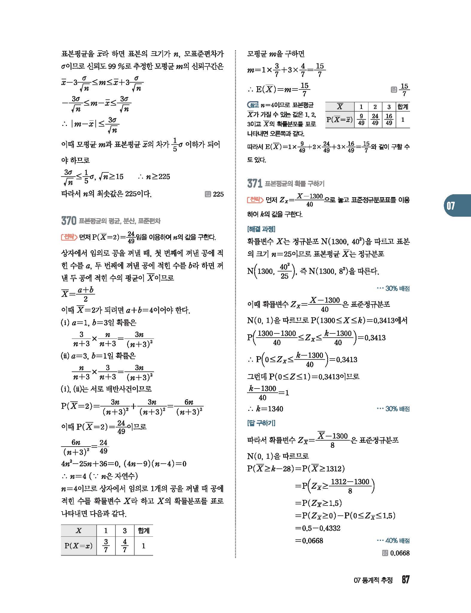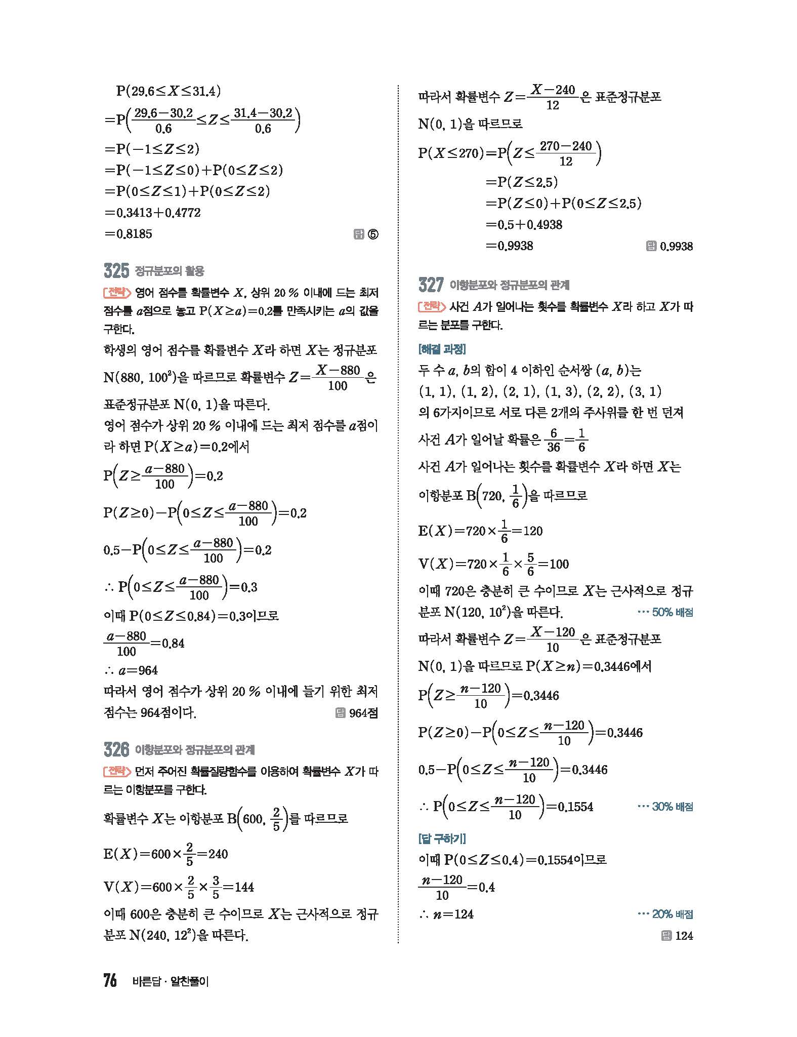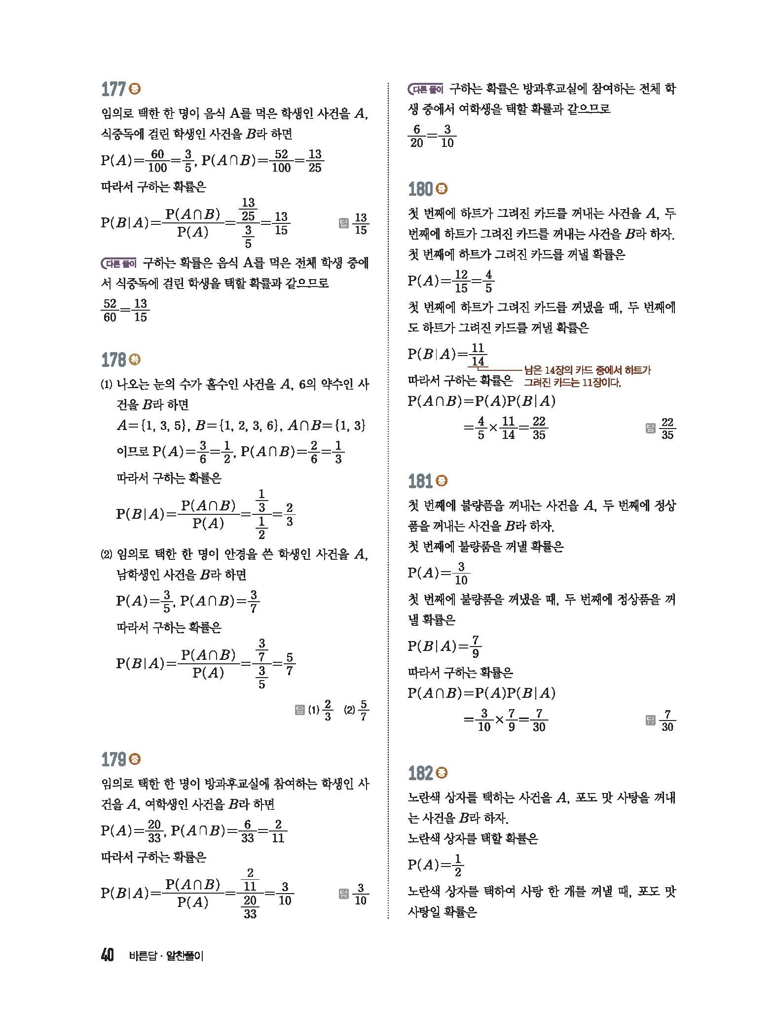 수학중심 확률과통계 답지 해설 사진답지 빠른답지 모바일최적화