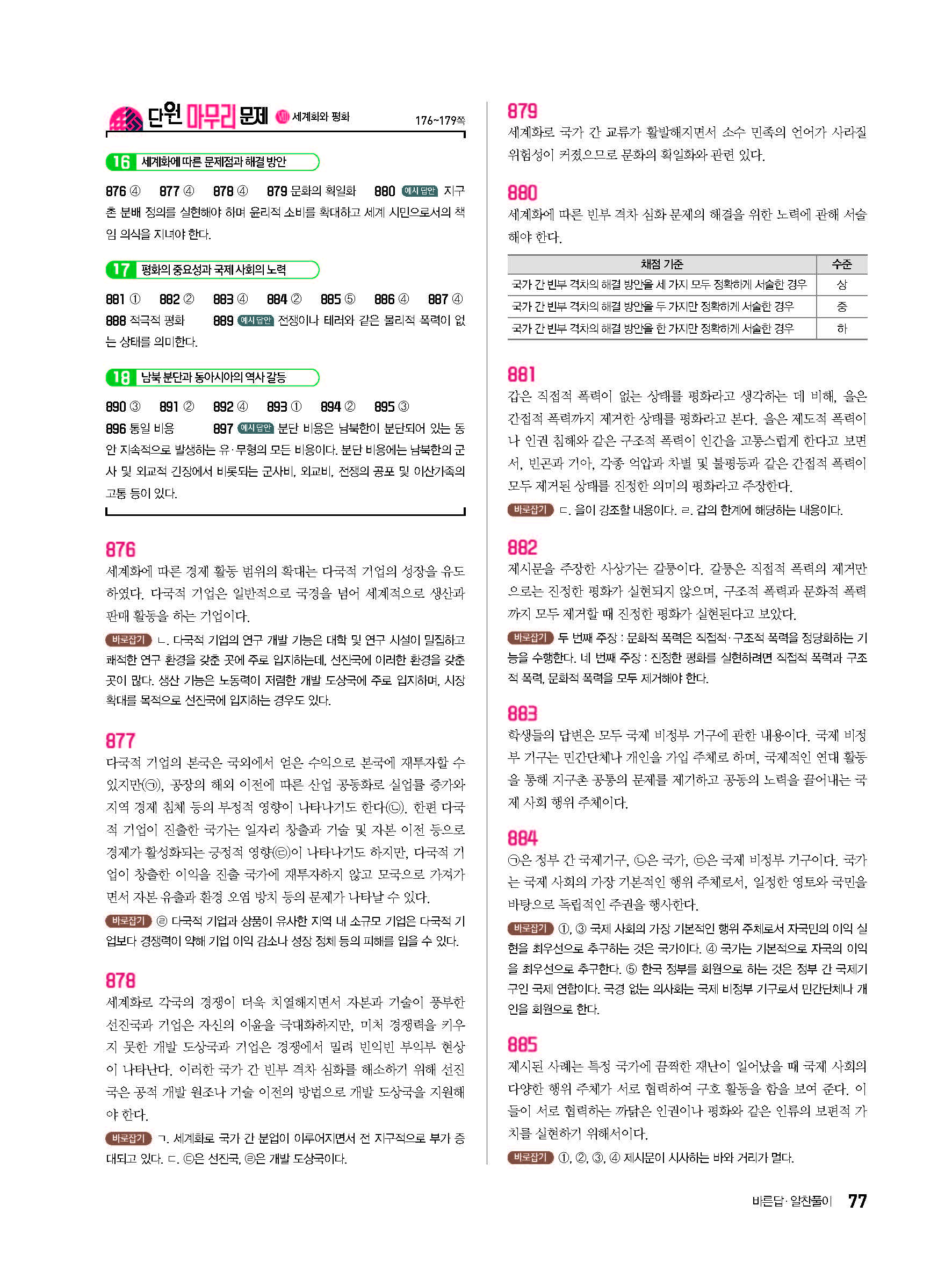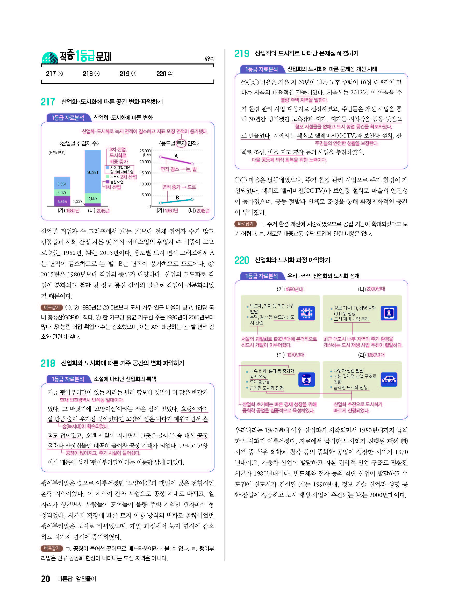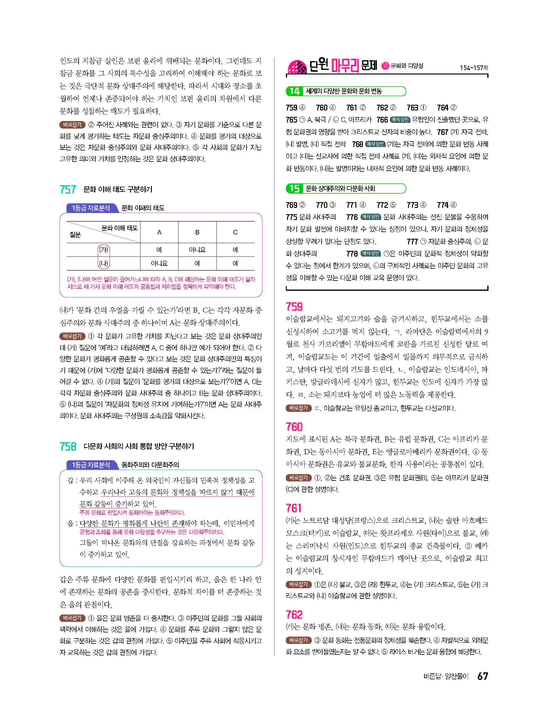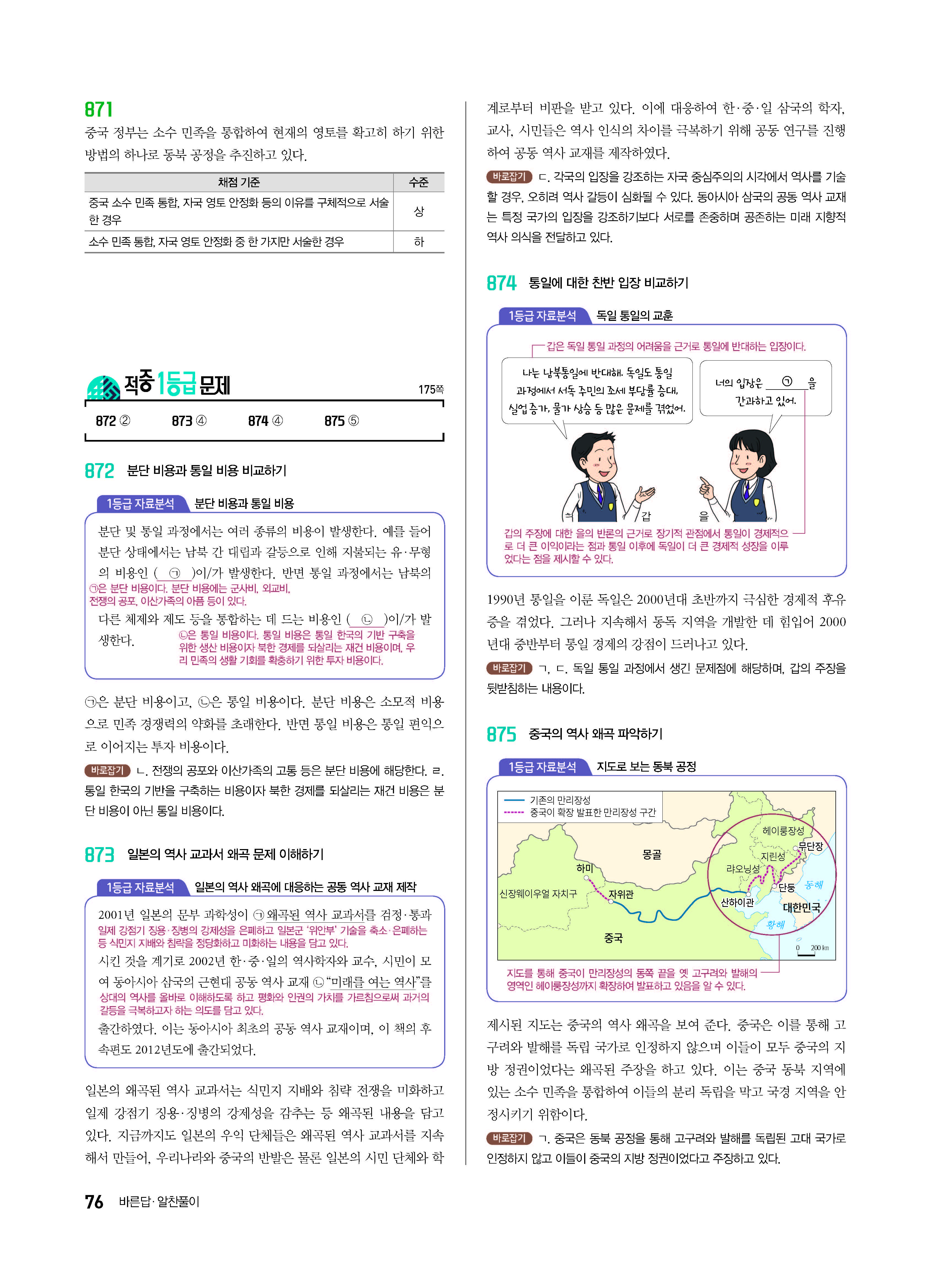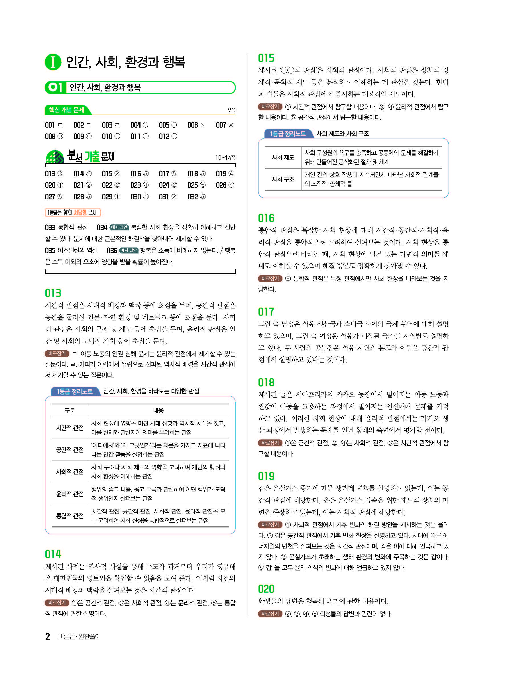일등급만들기 통합사회 답지 사진답지 빠른답지 모바일최적화