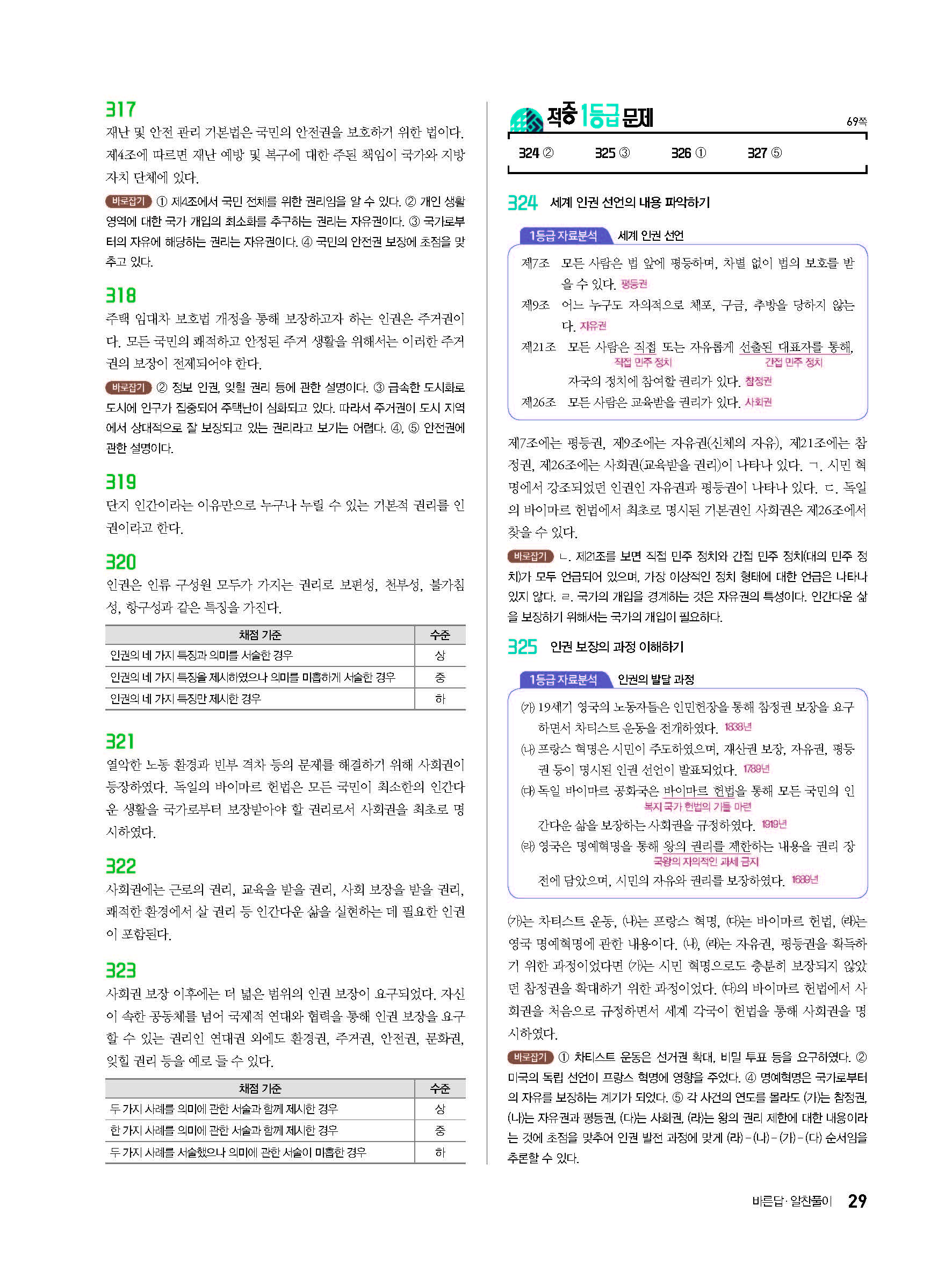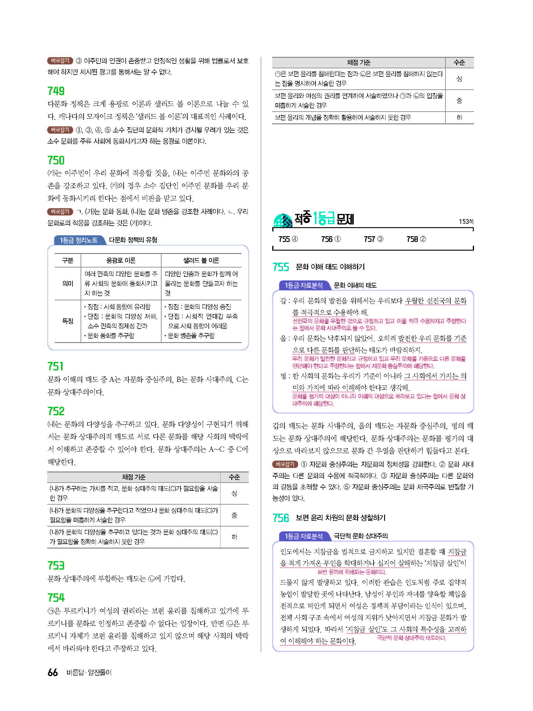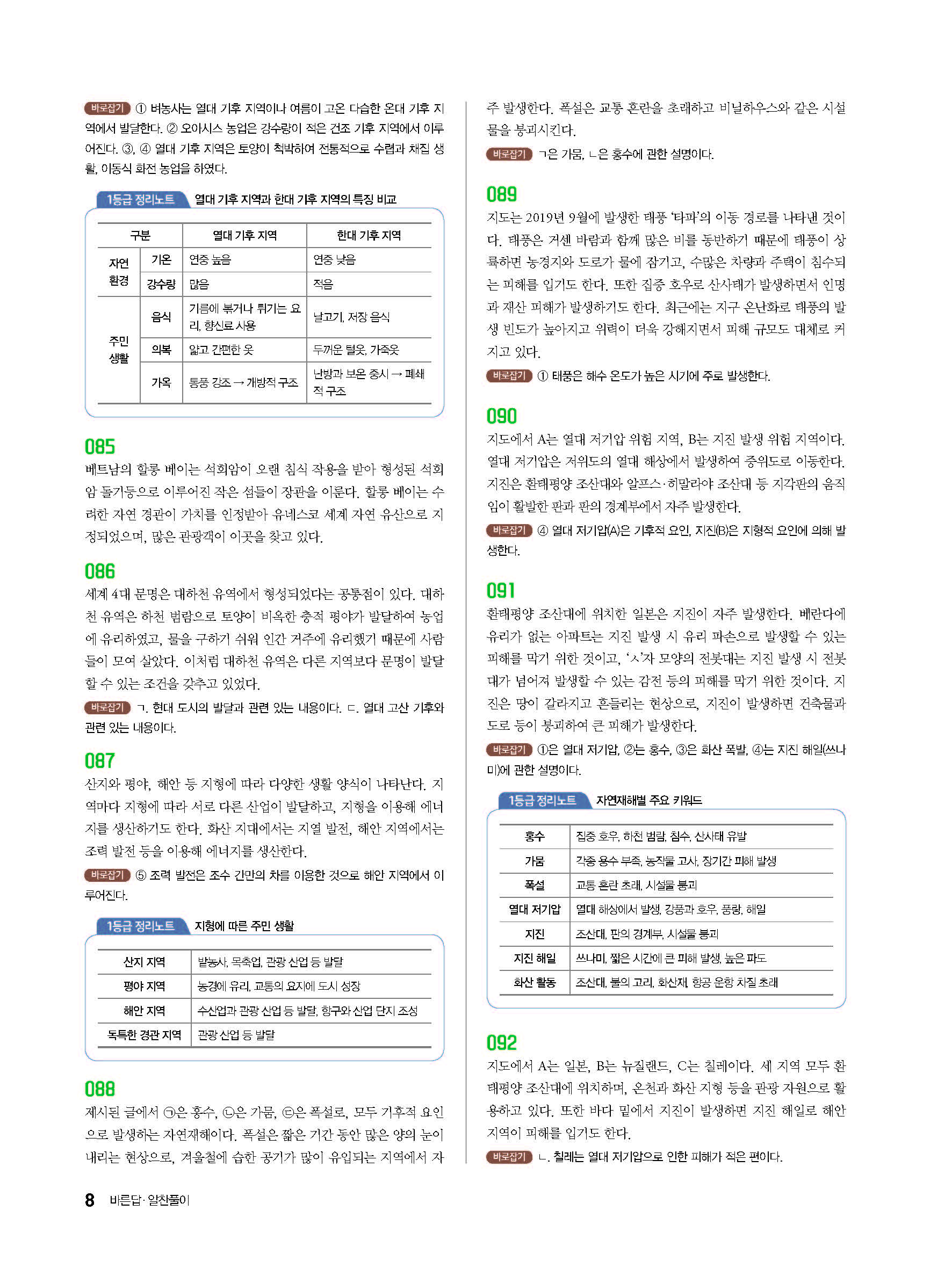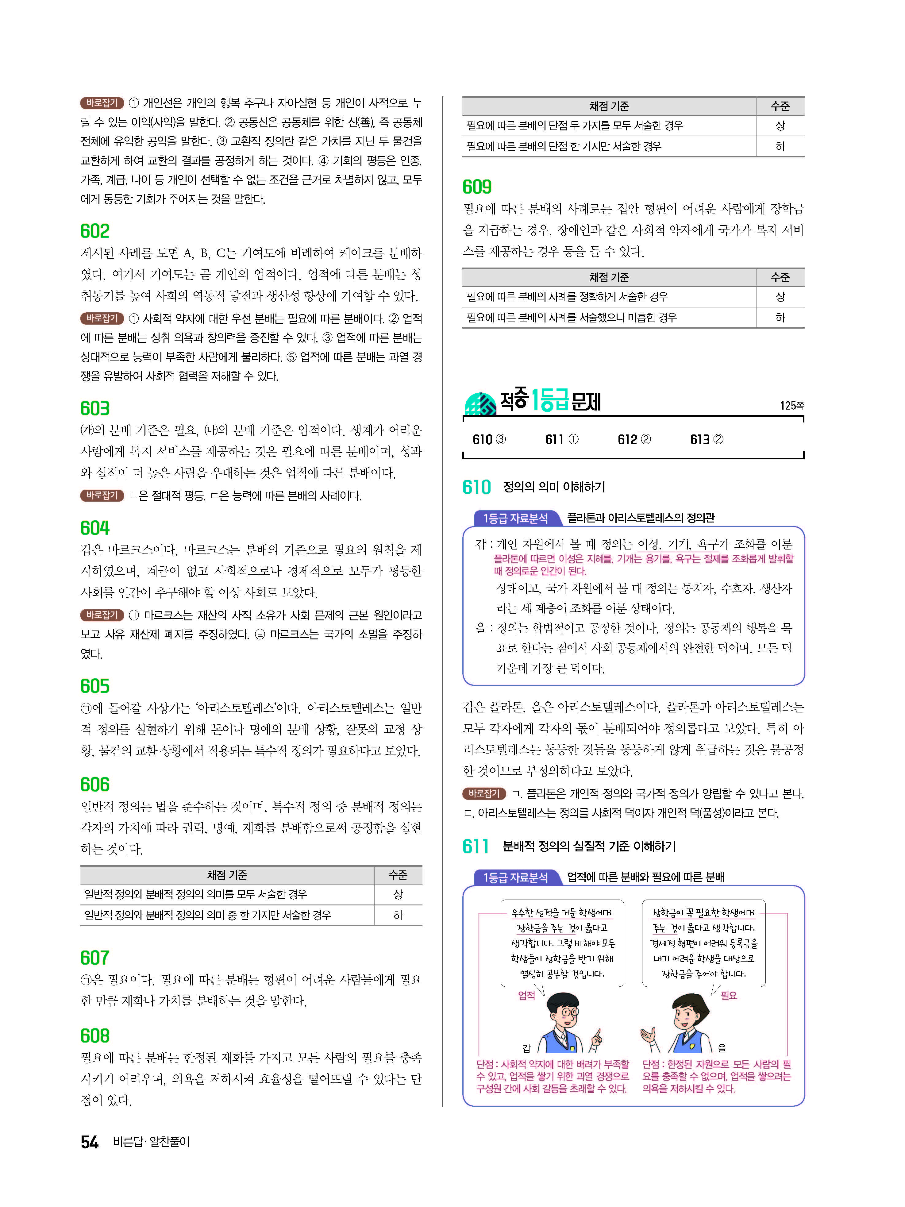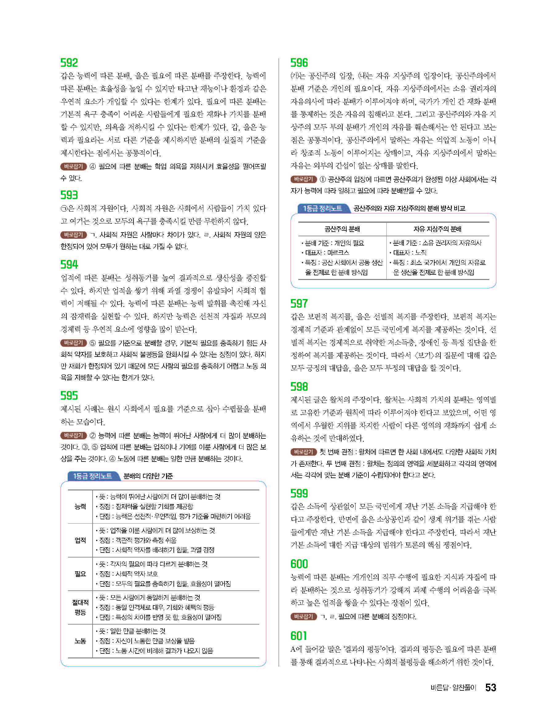 일등급만들기 통합사회 답지 사진답지 빠른답지 모바일최적화