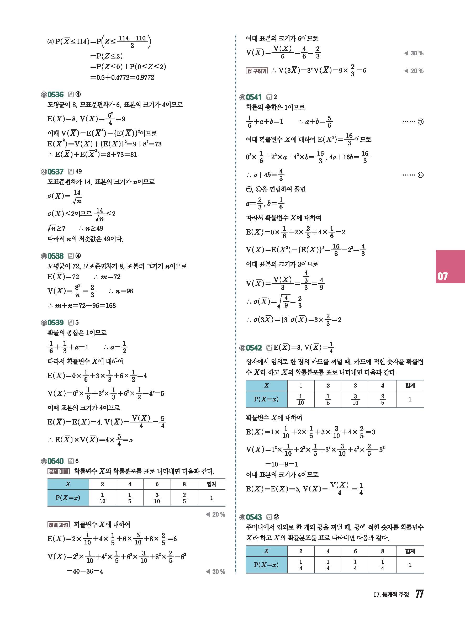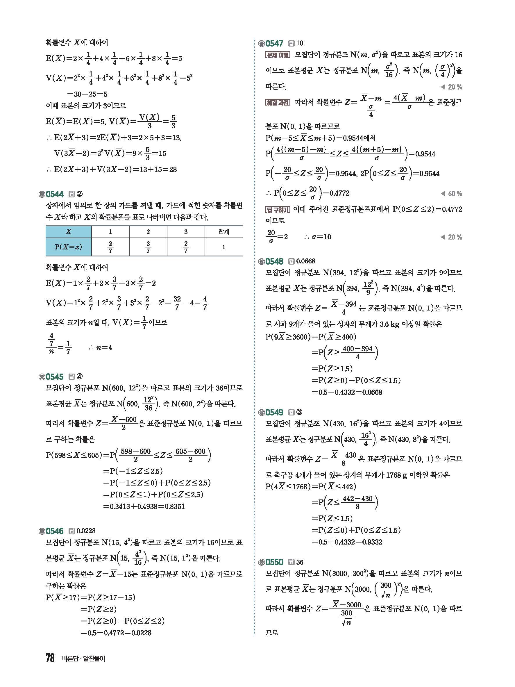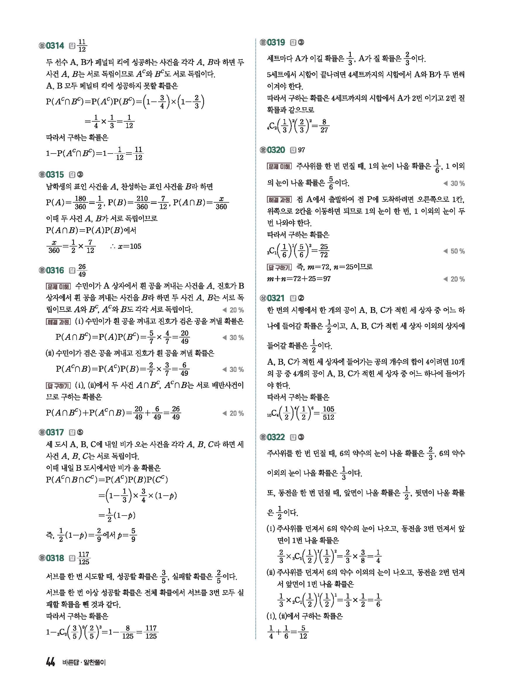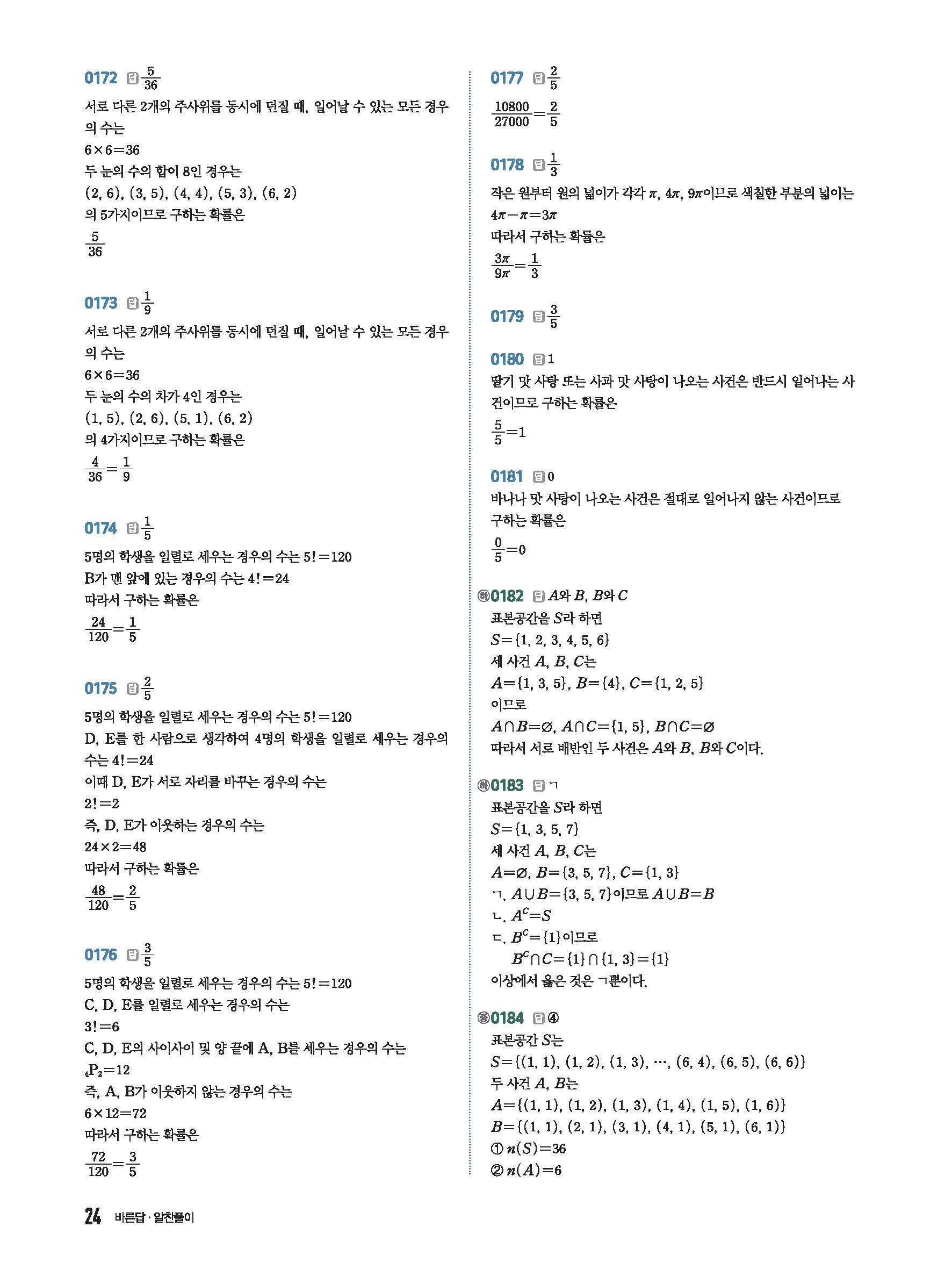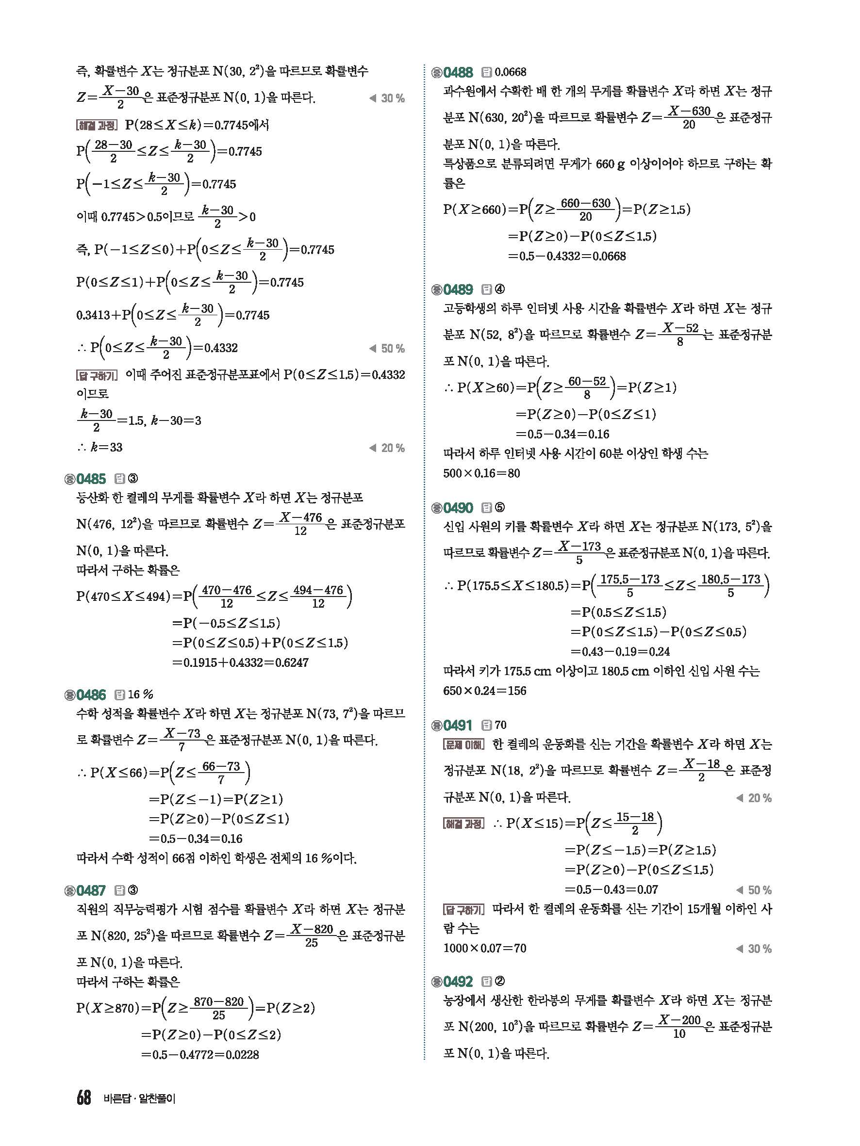 유형중심 확률과통계 답지 사진답지 빠른답지 모바일최적화
