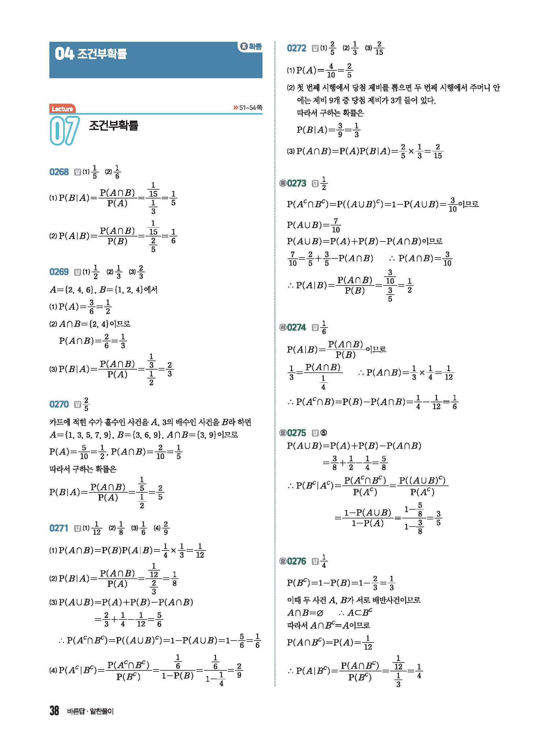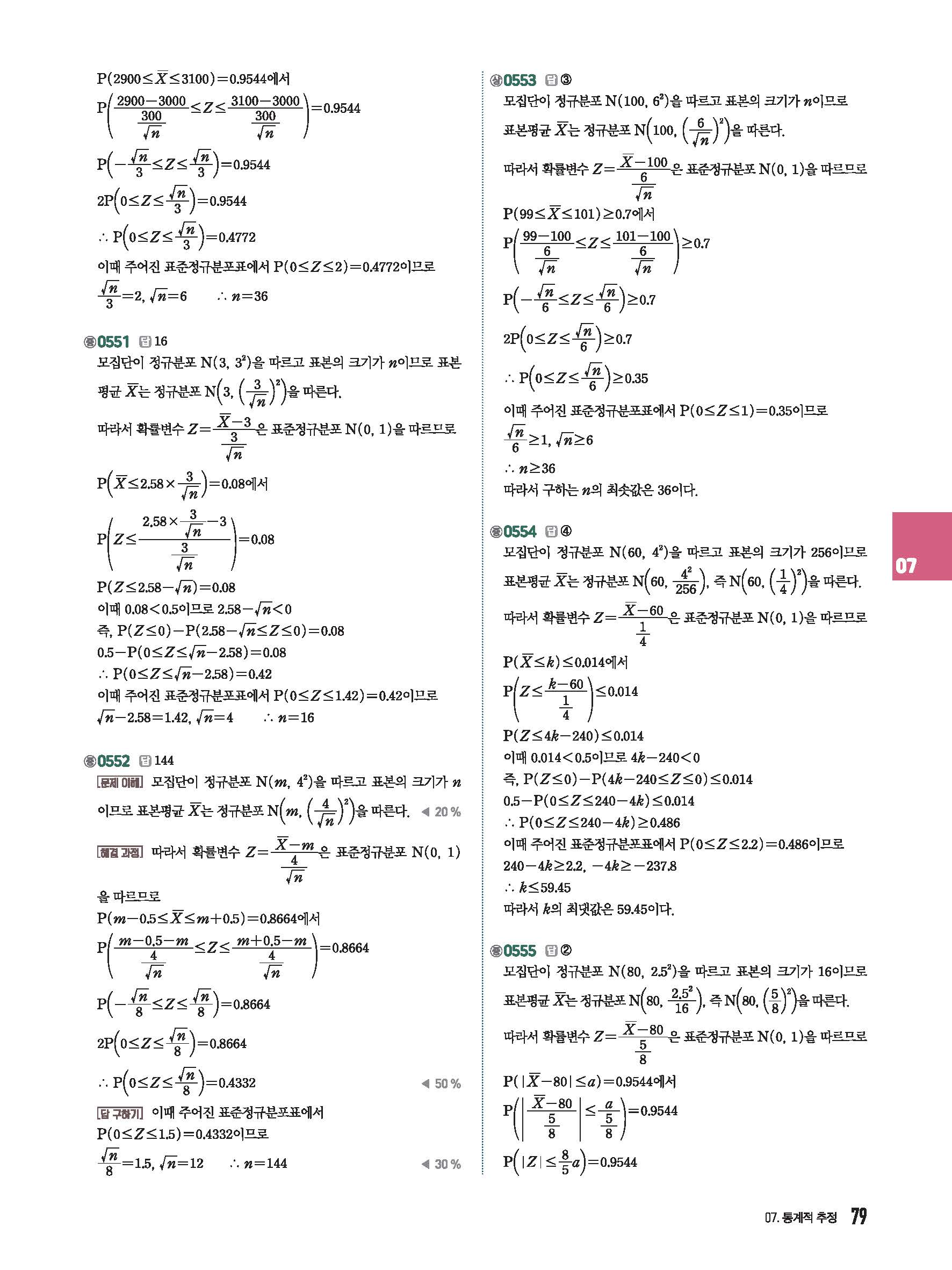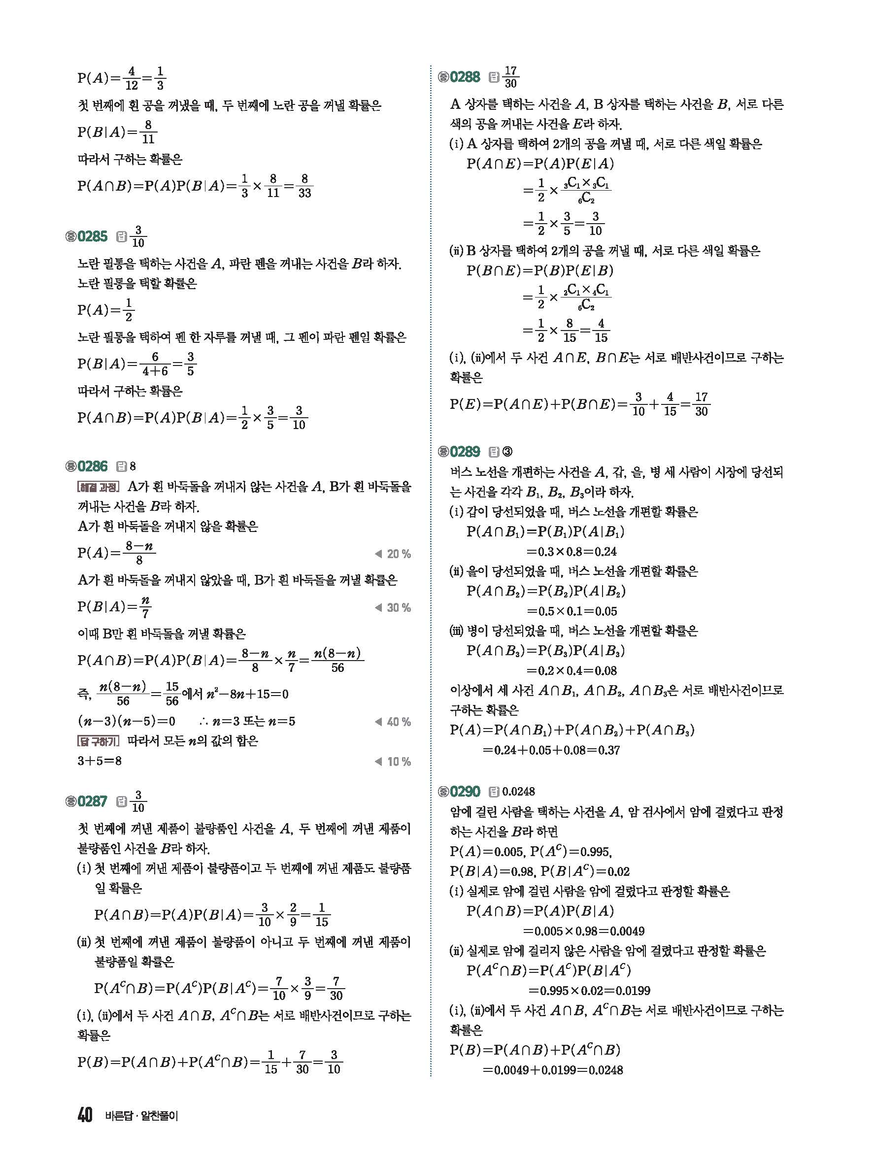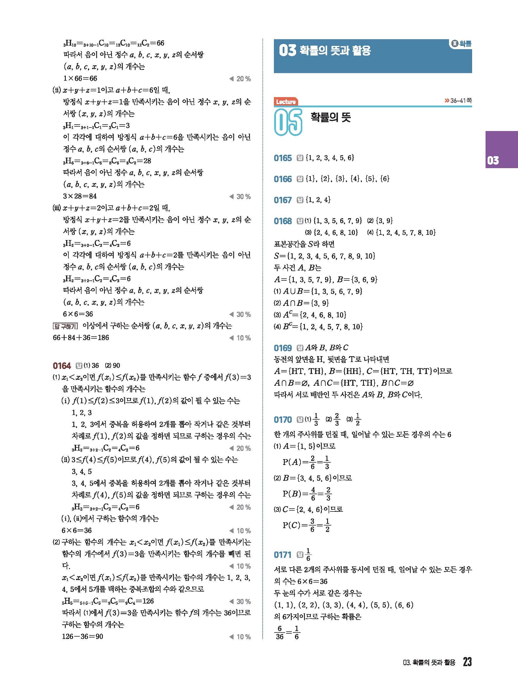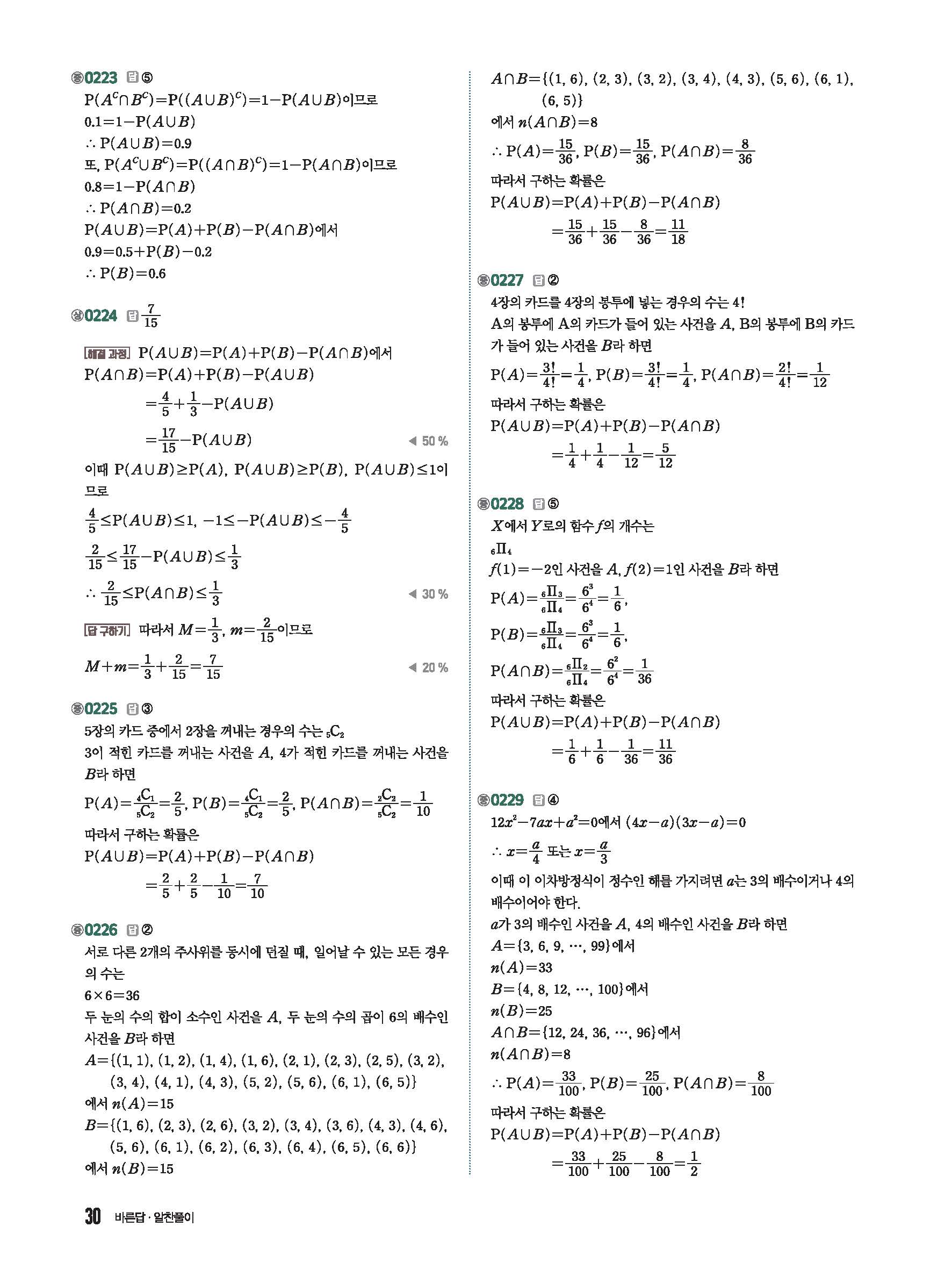 유형중심 확률과통계 답지 사진답지 빠른답지 모바일최적화