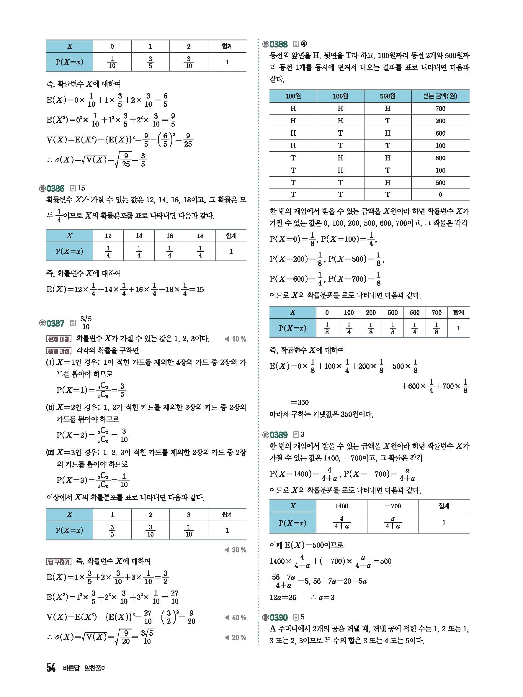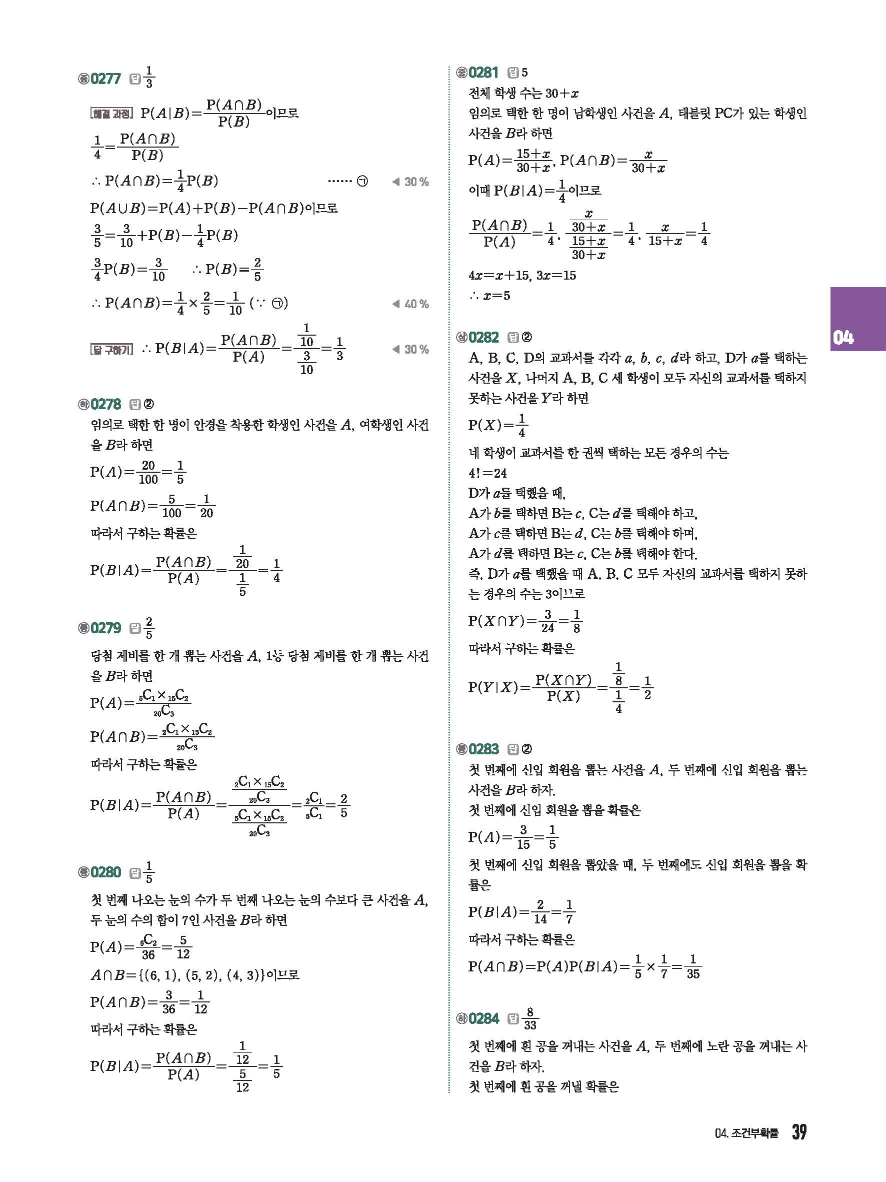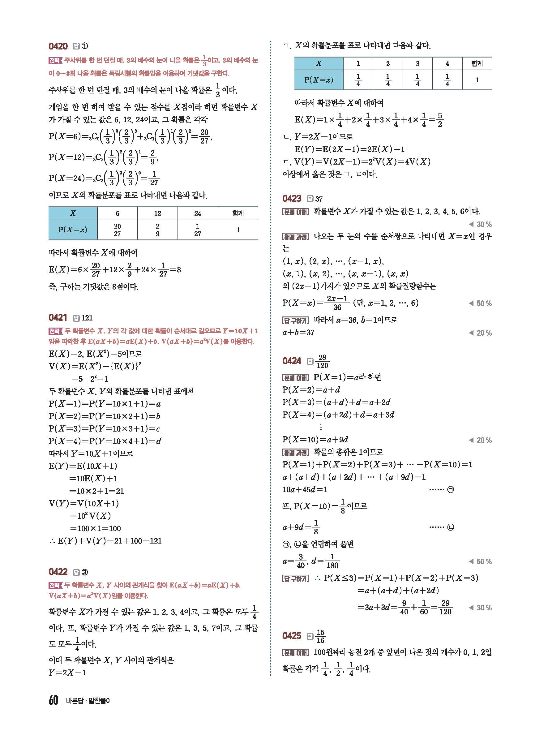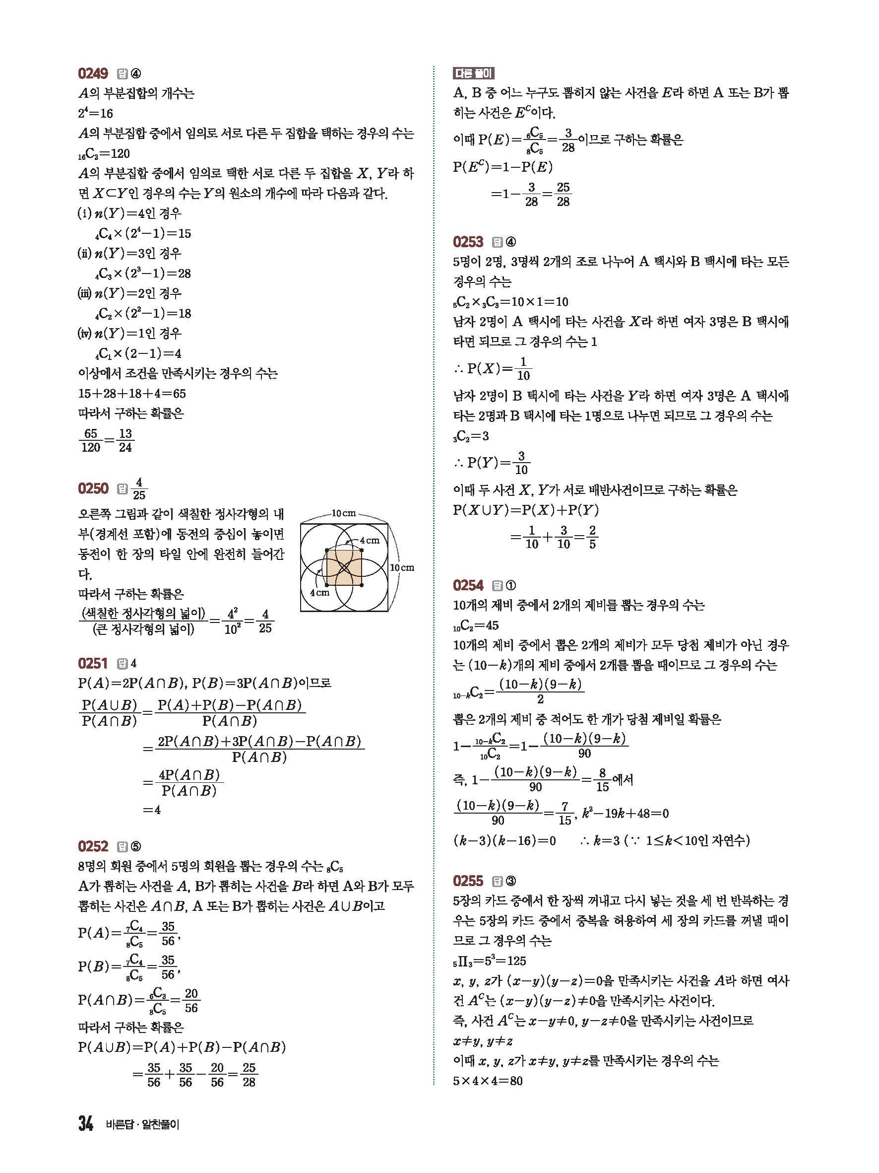 유형중심 확률과통계 답지 사진답지 빠른답지 모바일최적화