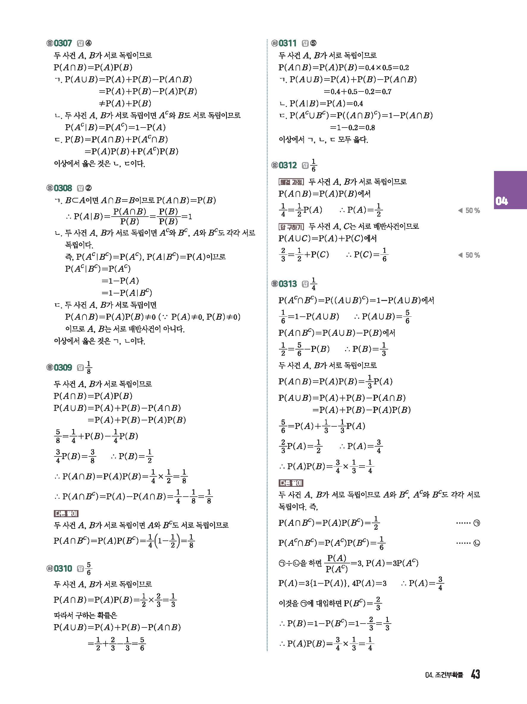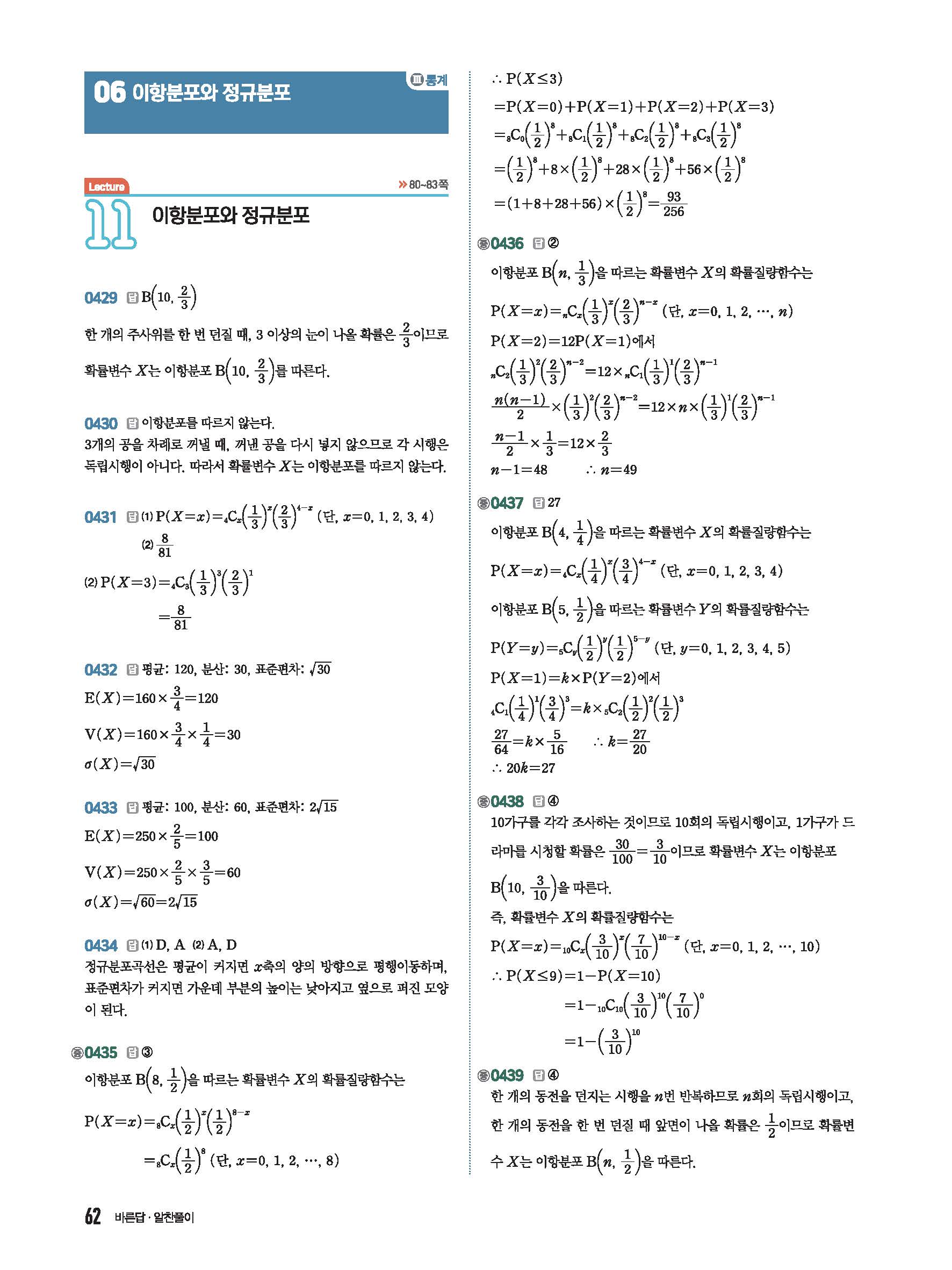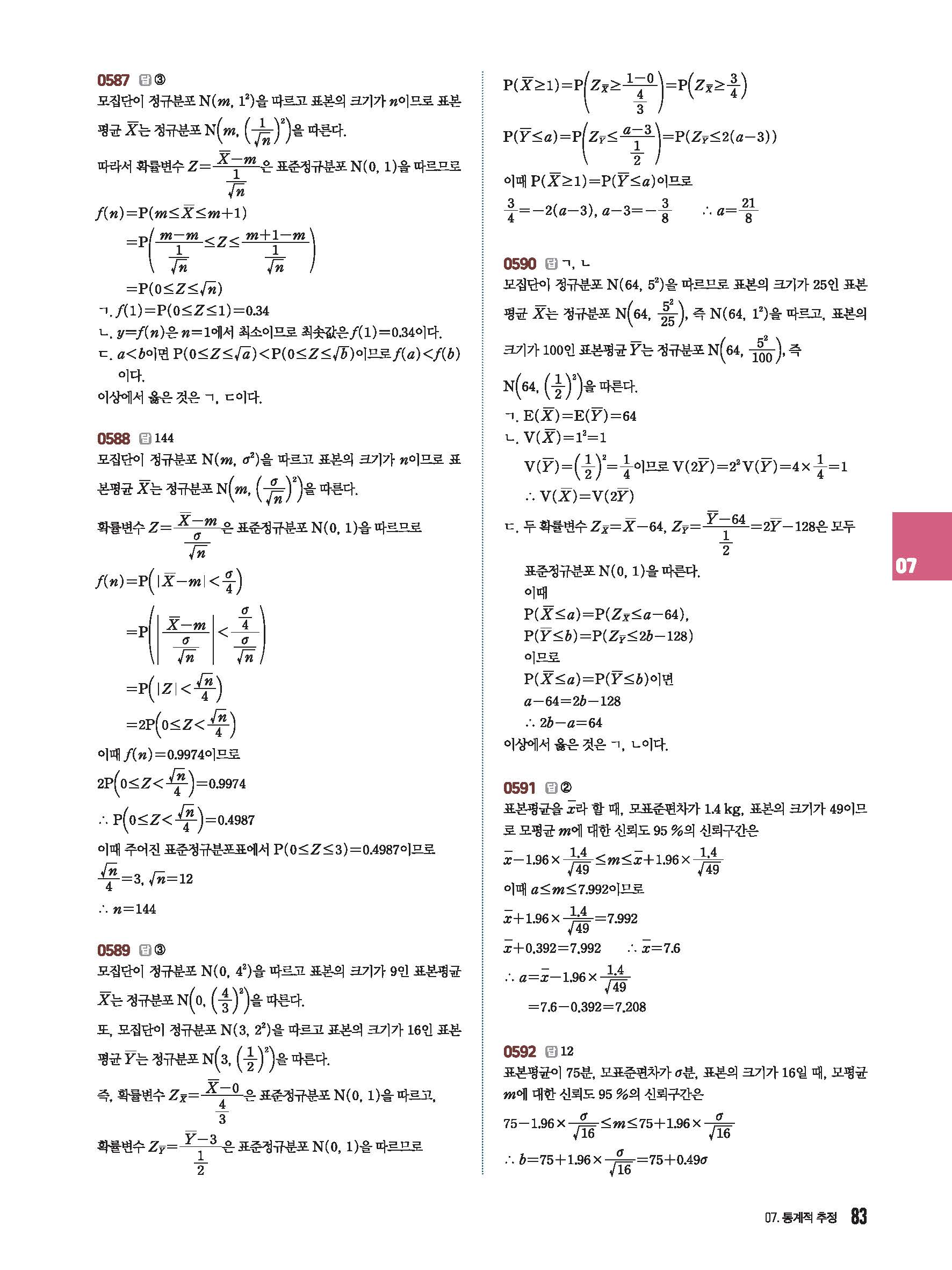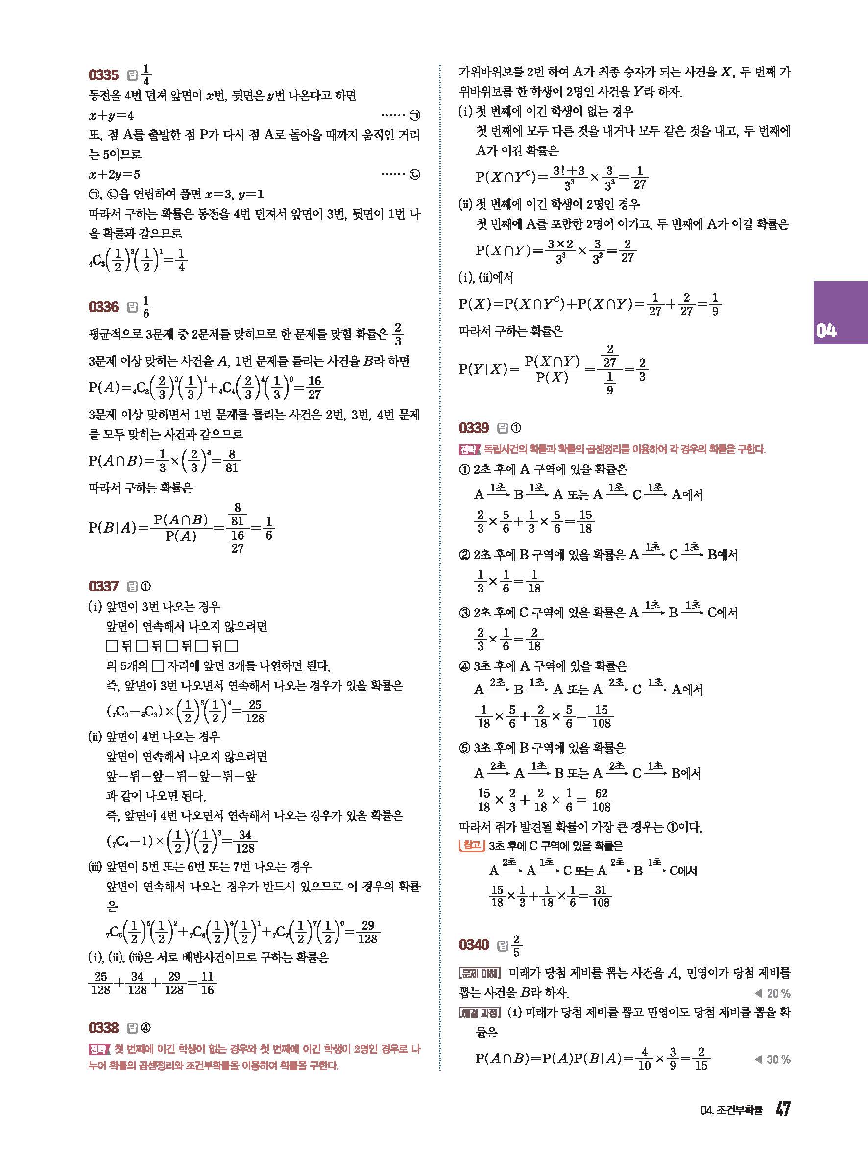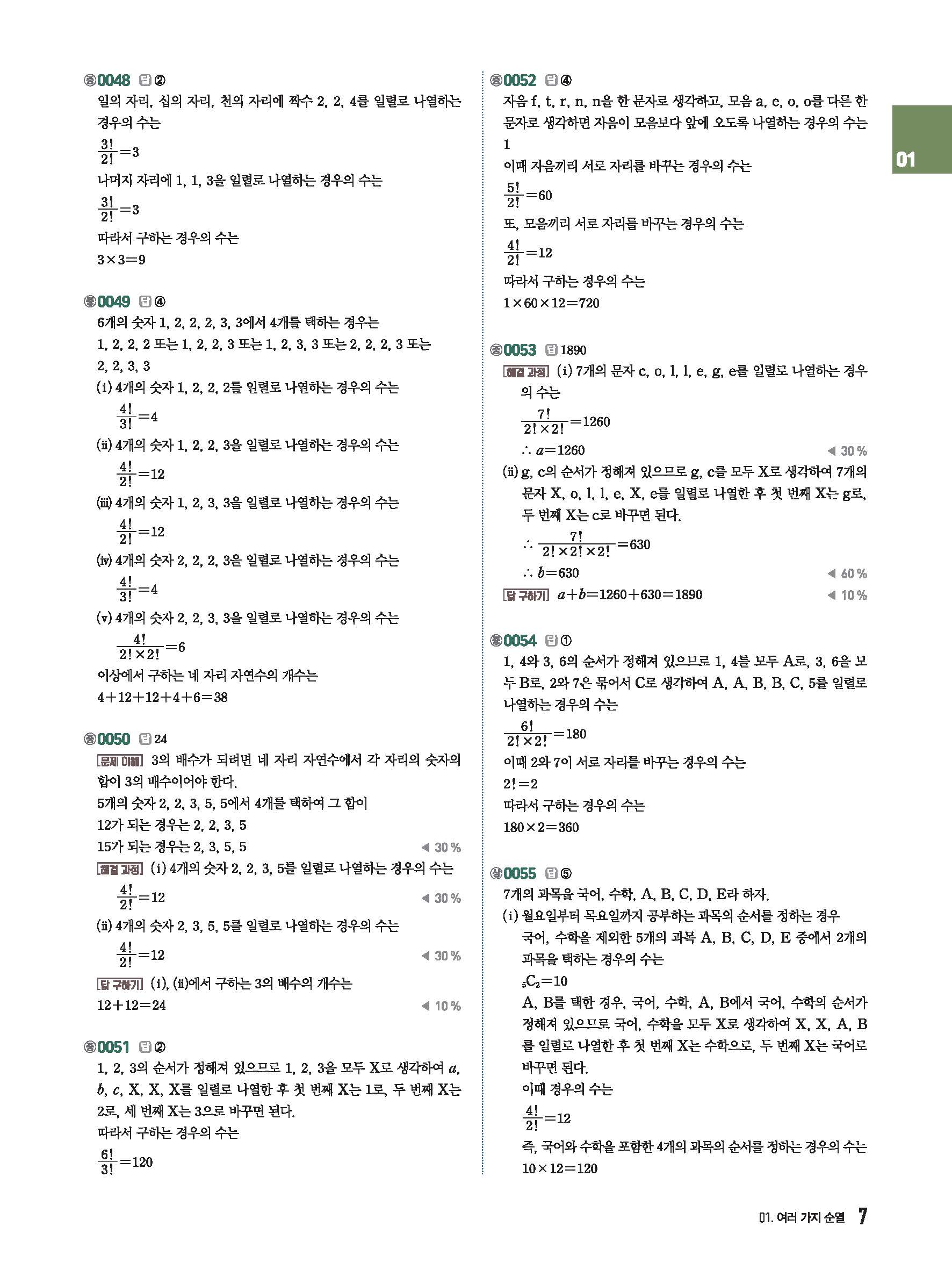 유형중심 확률과통계 답지 사진답지 빠른답지 모바일최적화