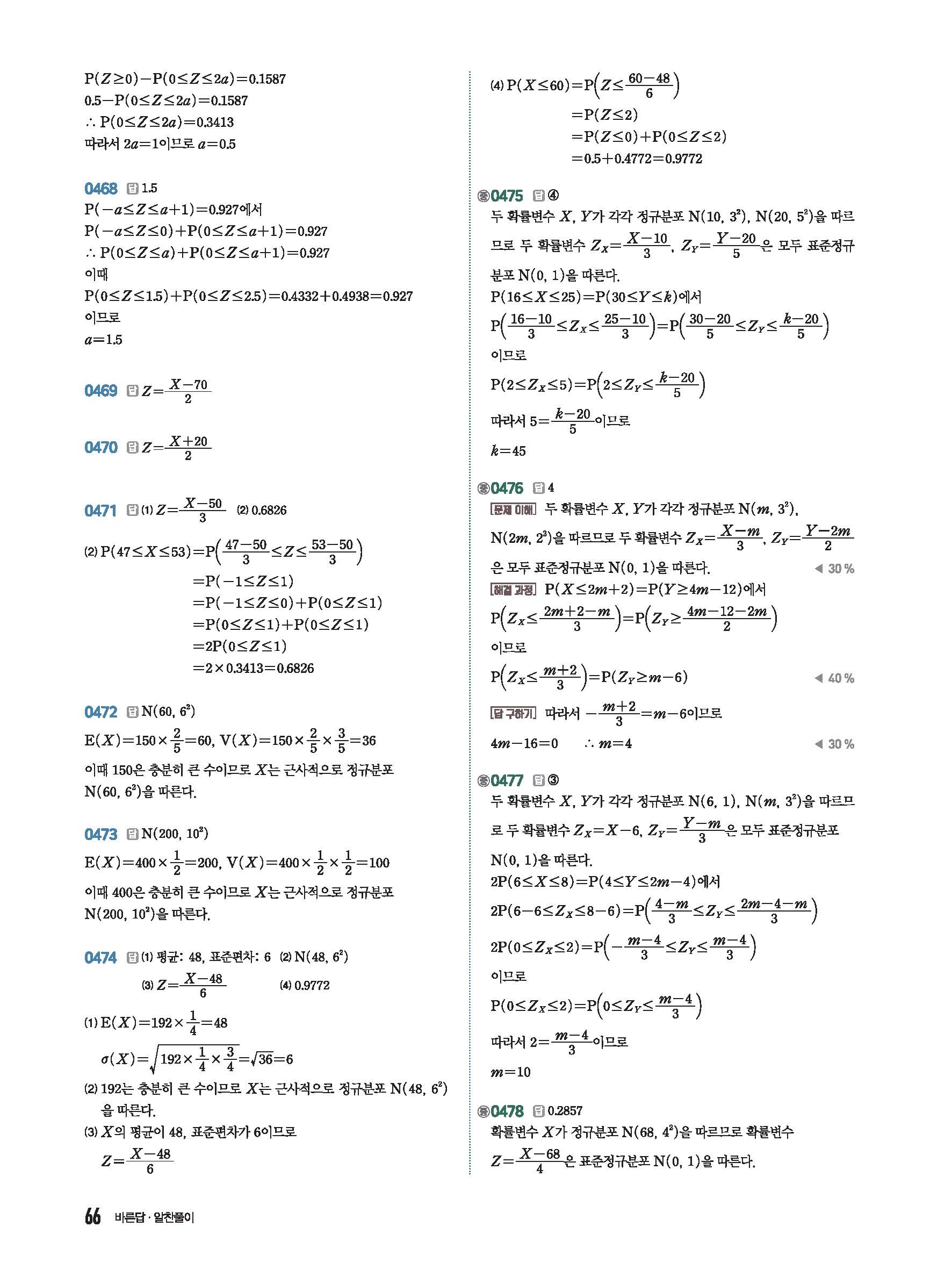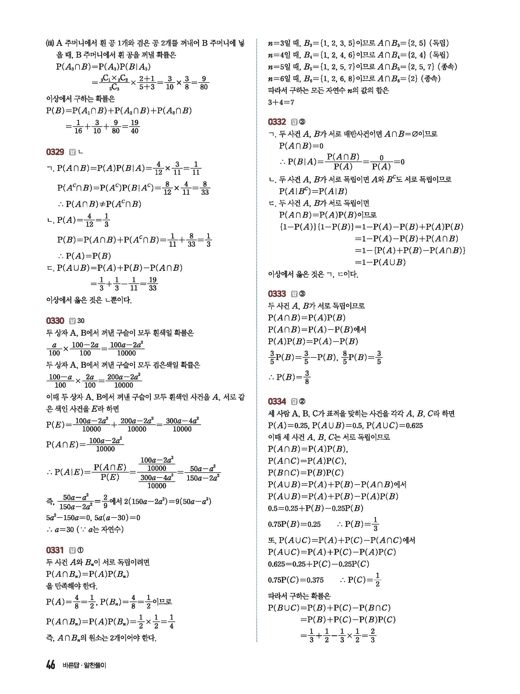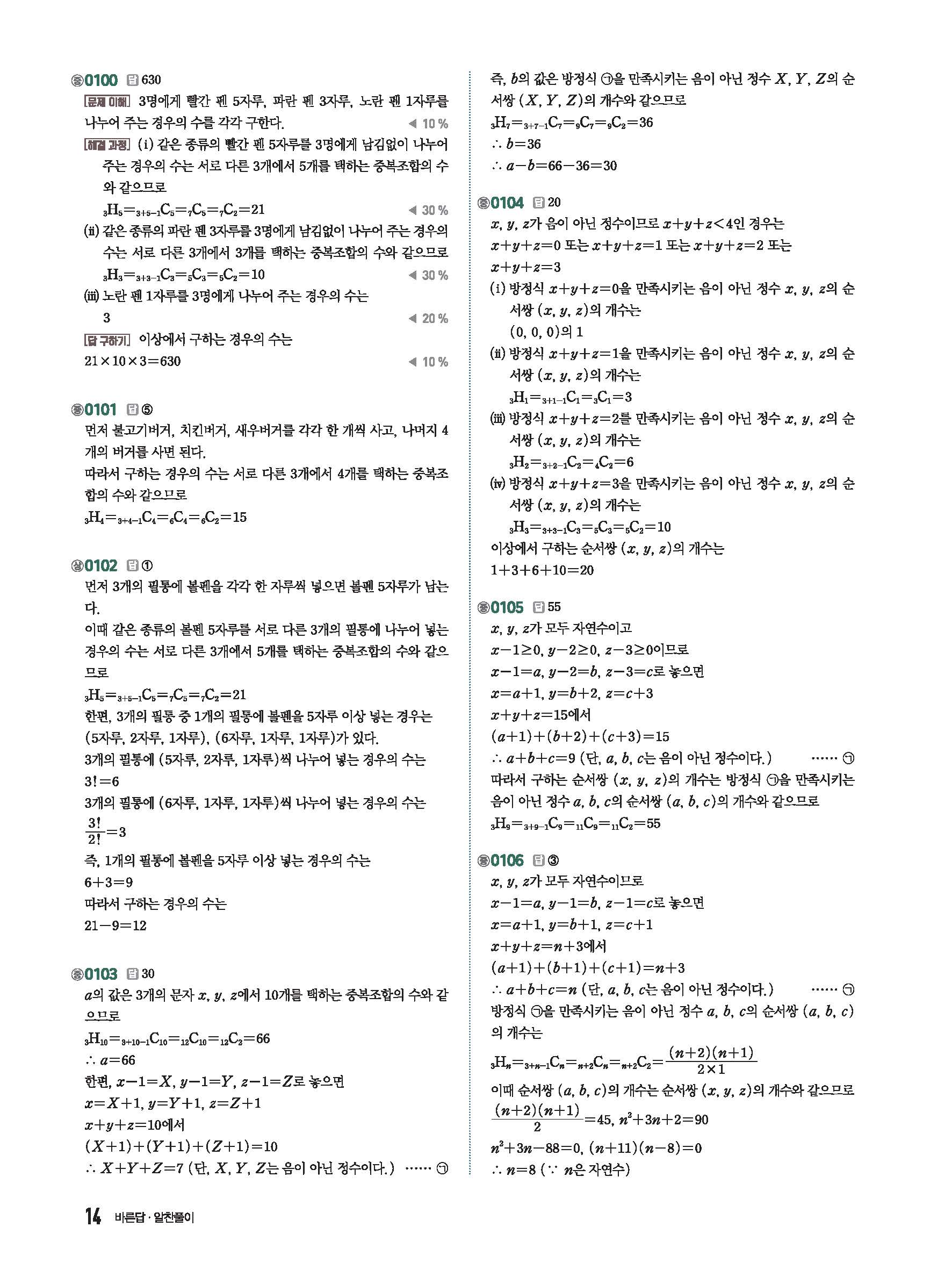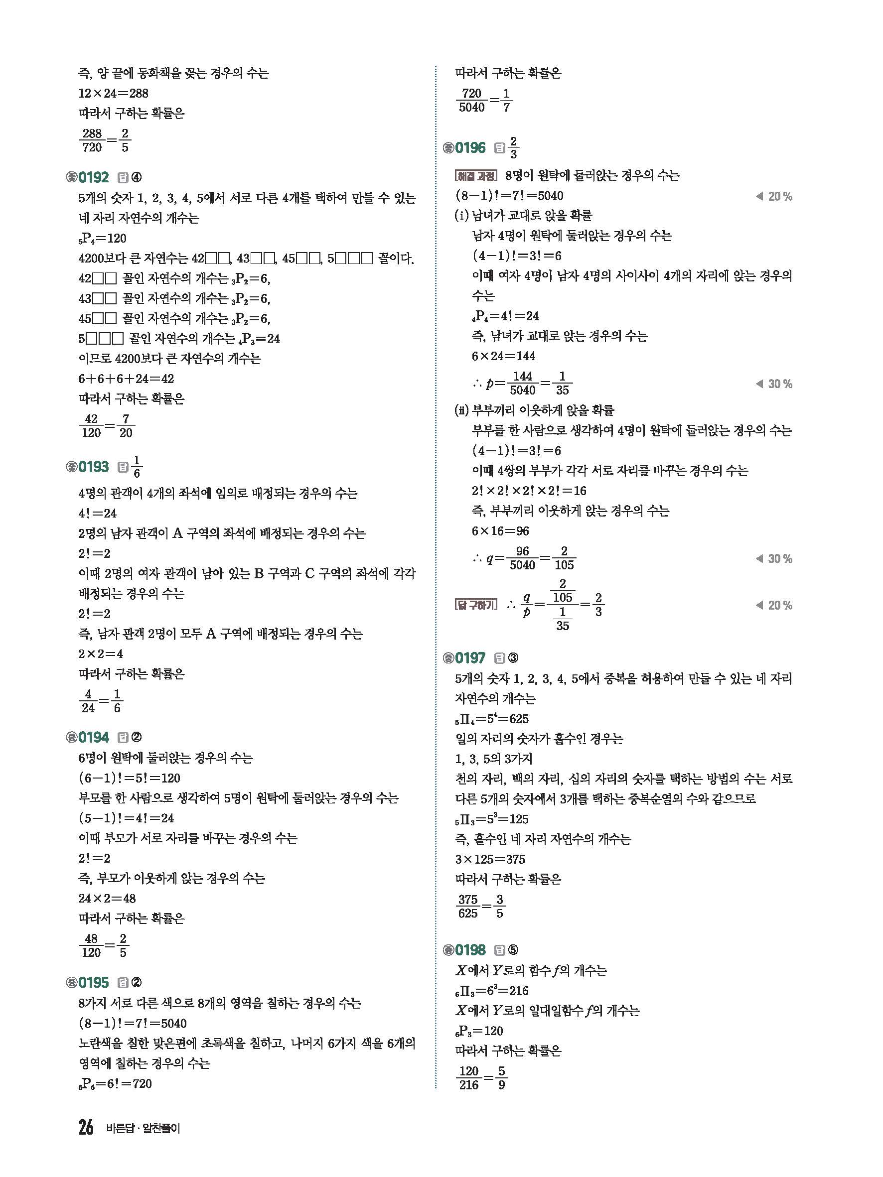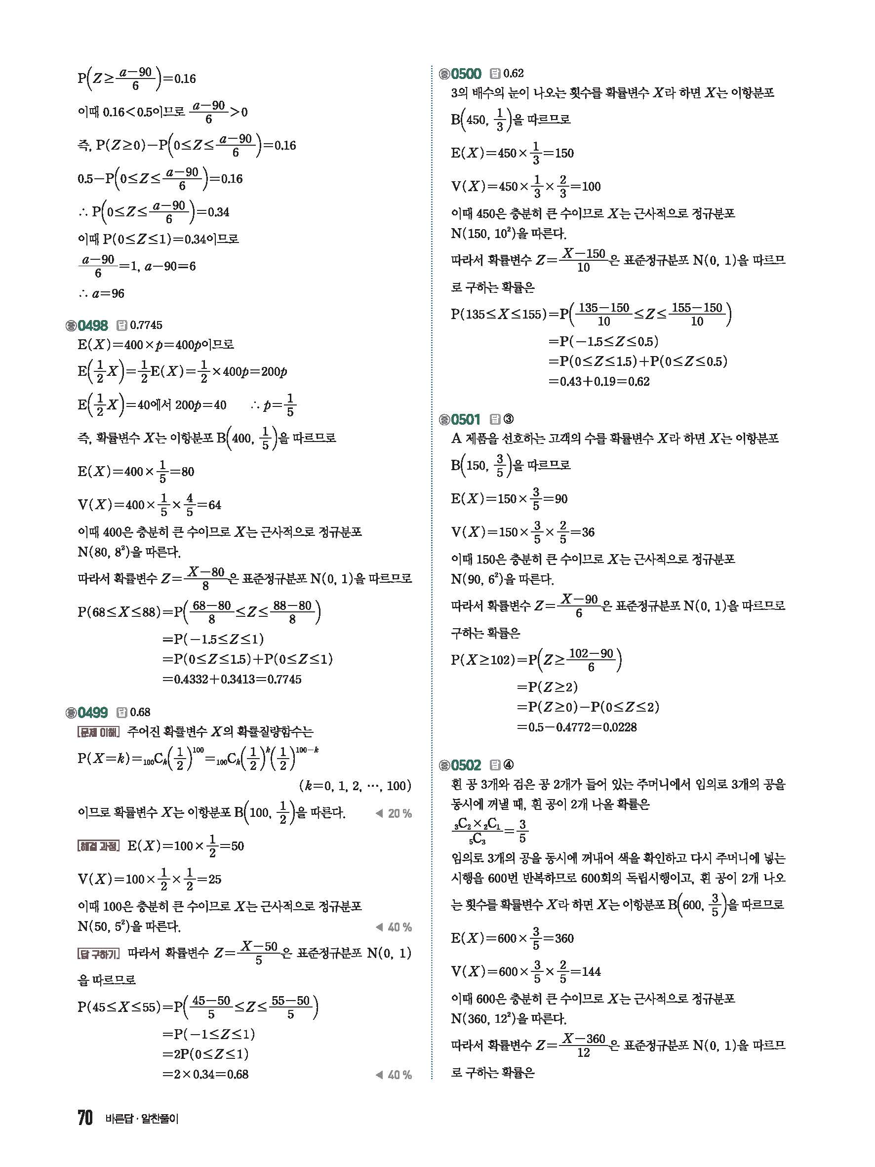 유형중심 확률과통계 답지 사진답지 빠른답지 모바일최적화