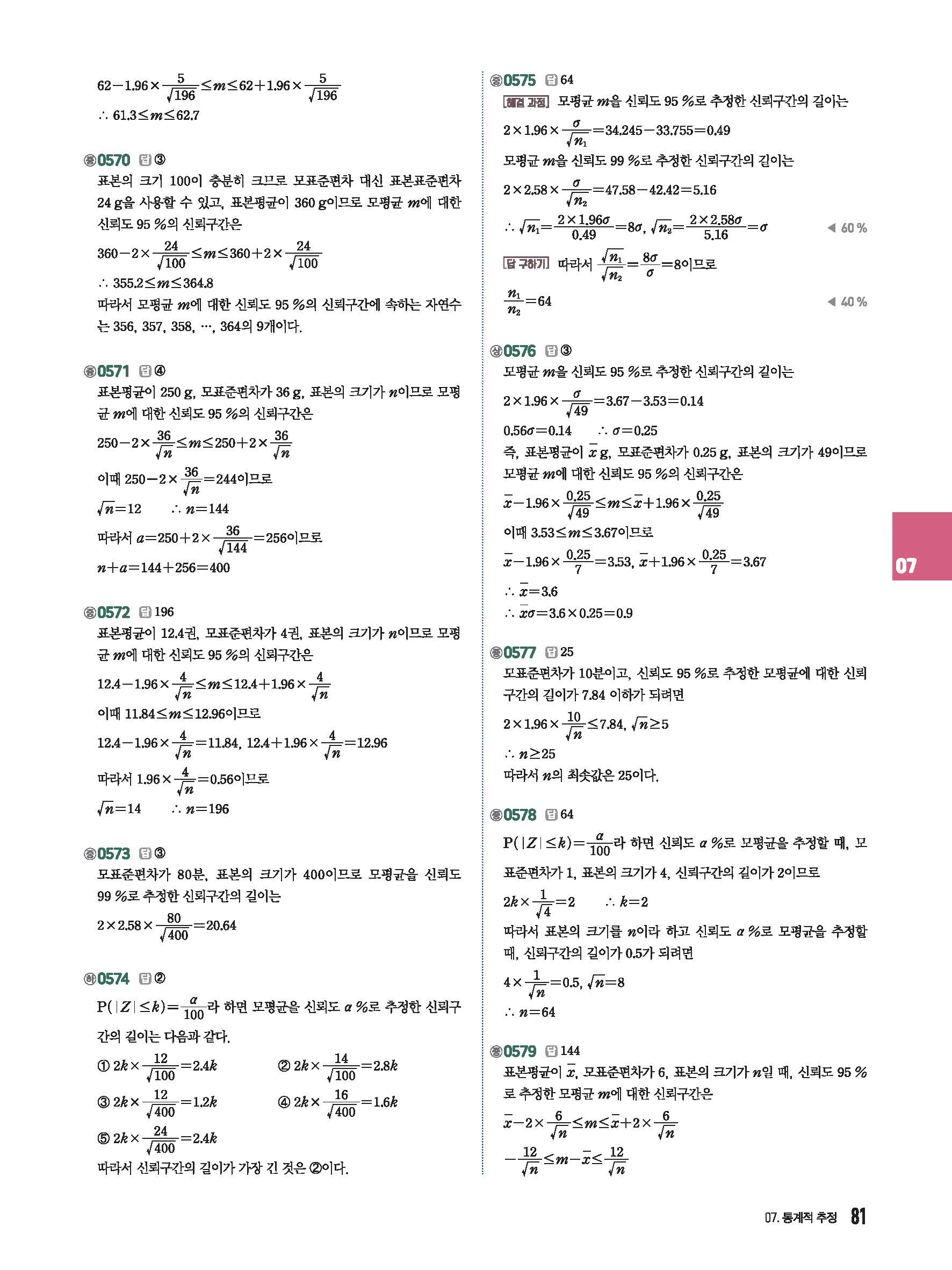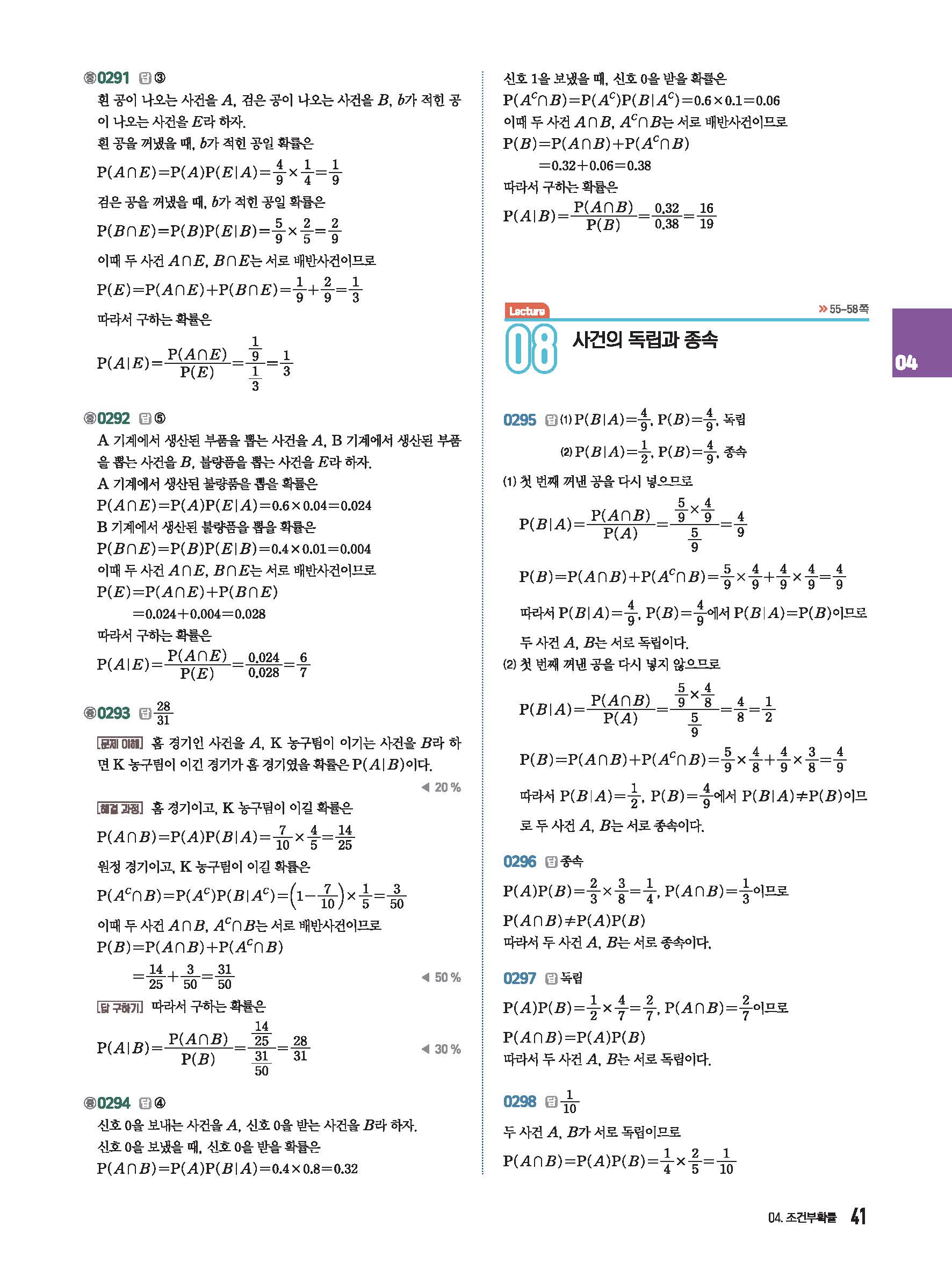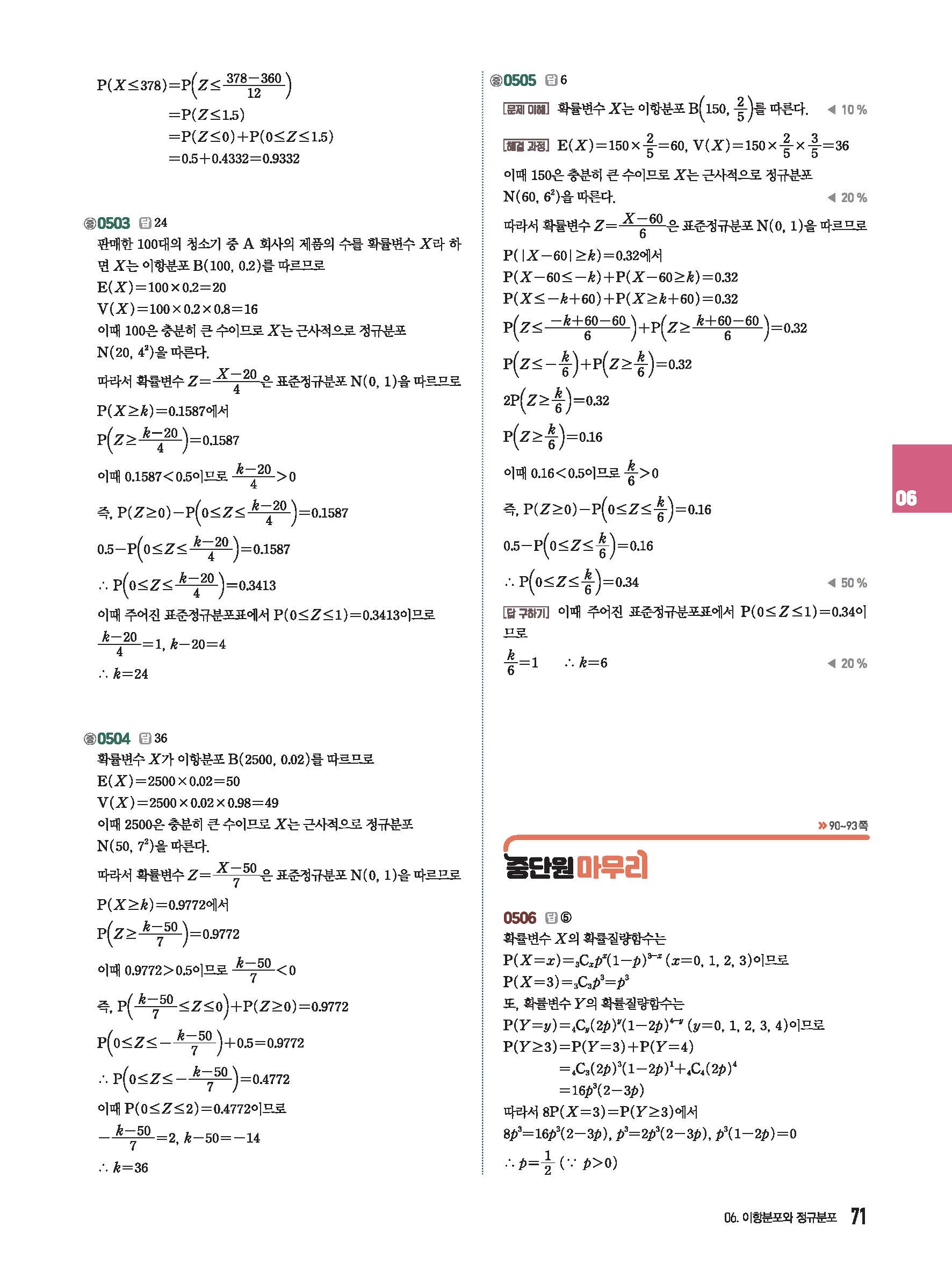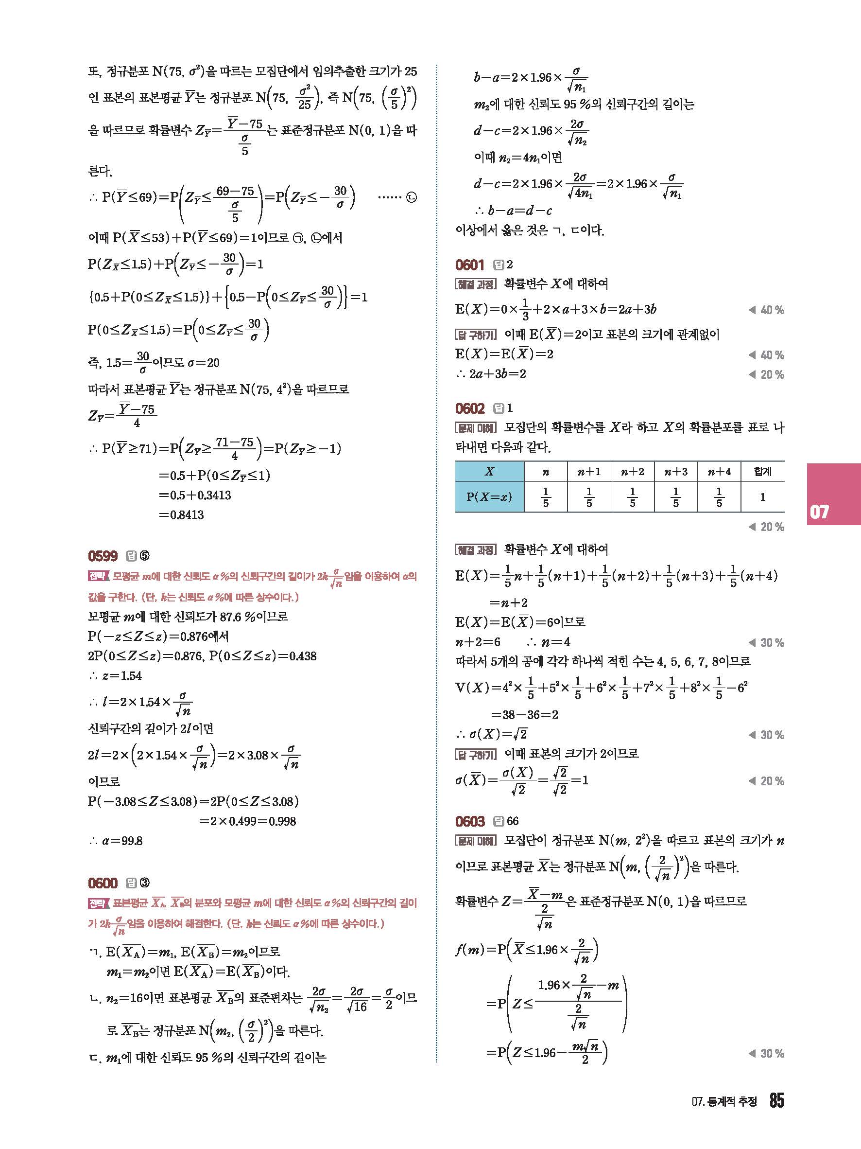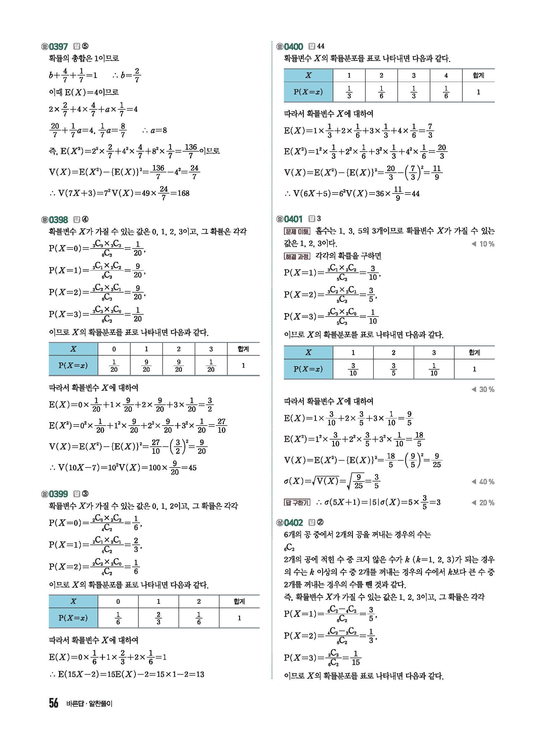 유형중심 확률과통계 답지 사진답지 빠른답지 모바일최적화