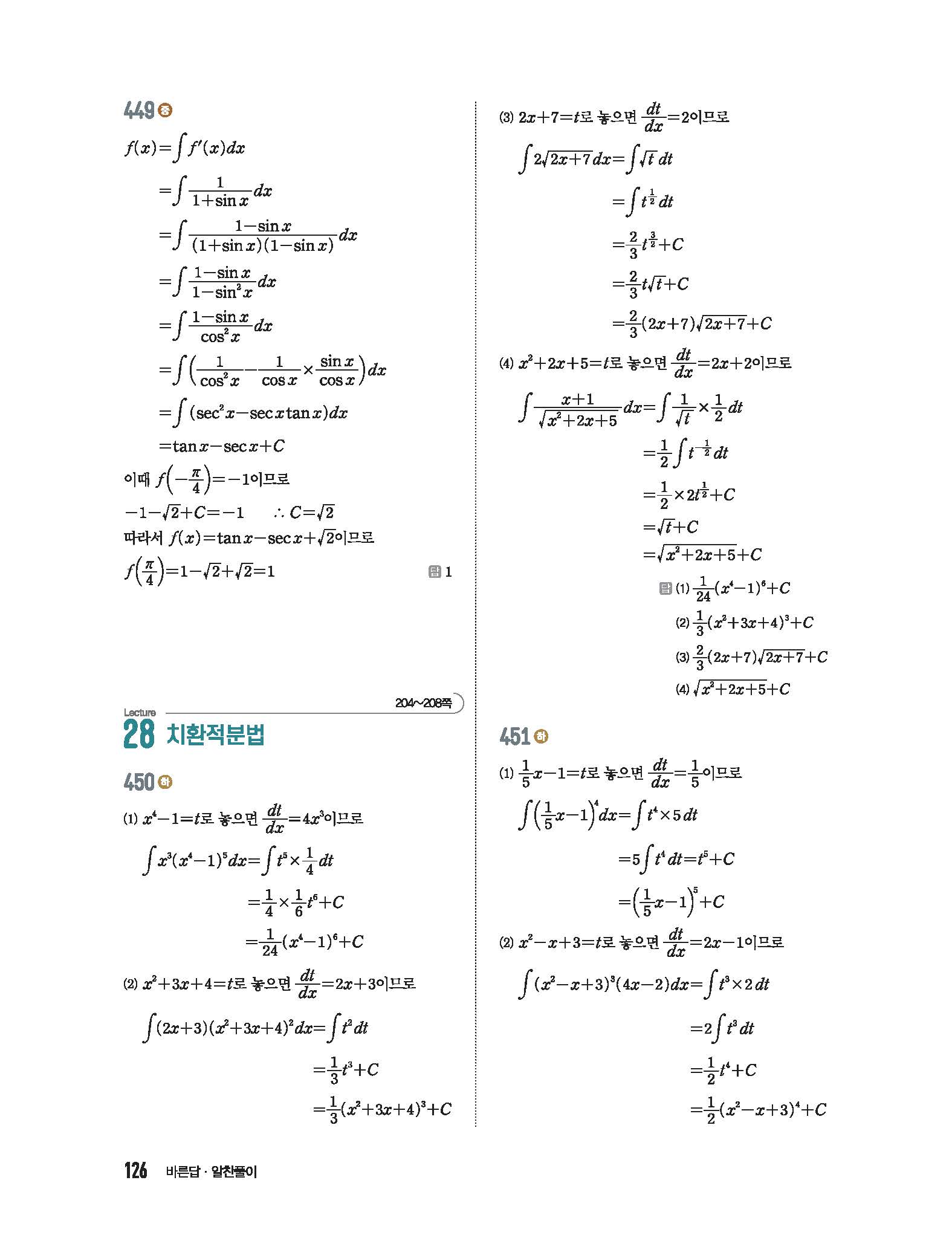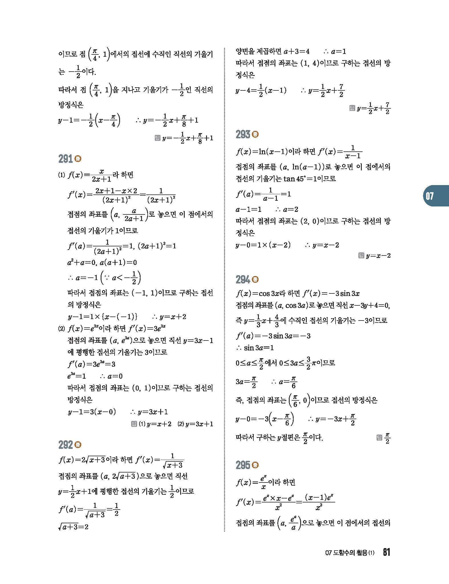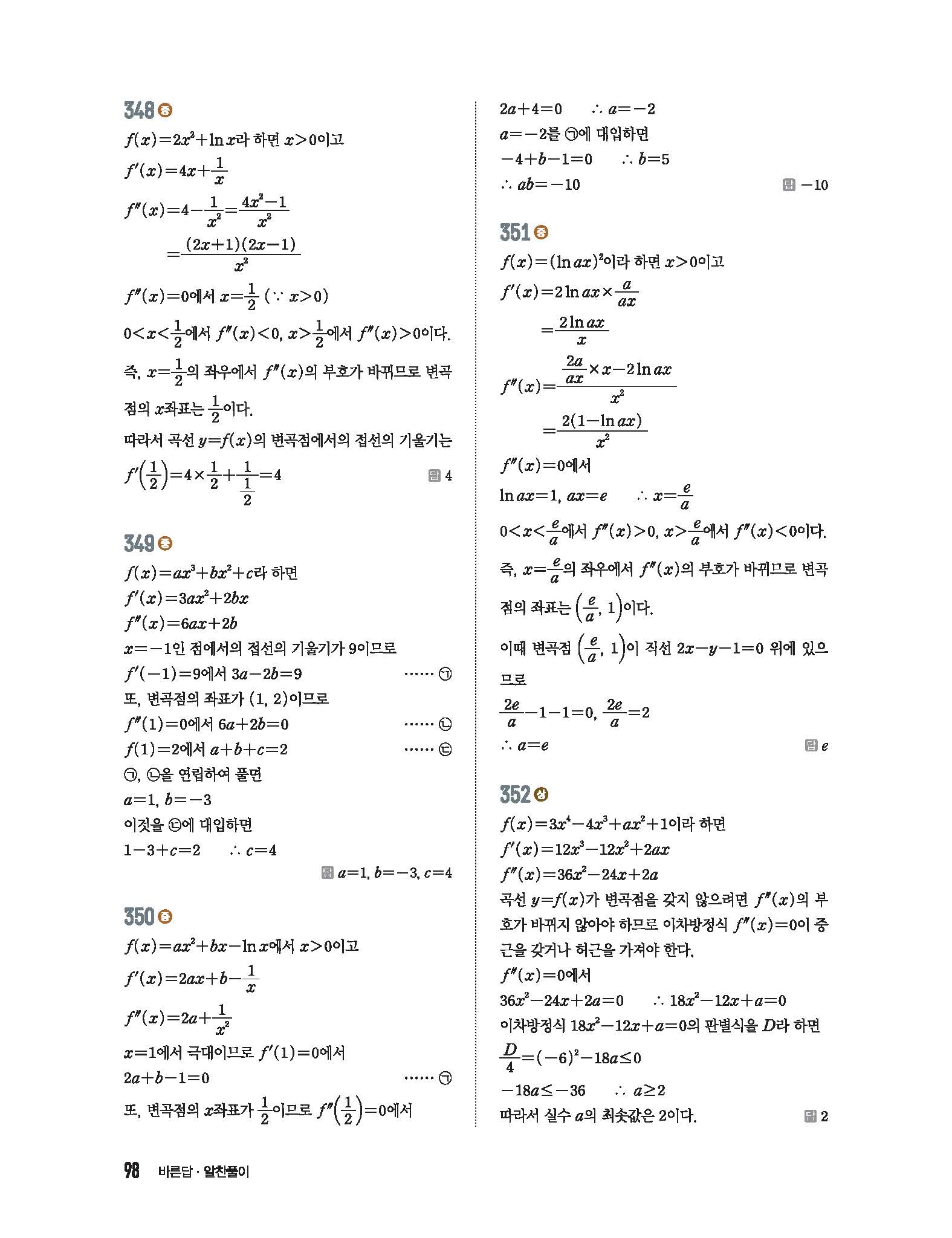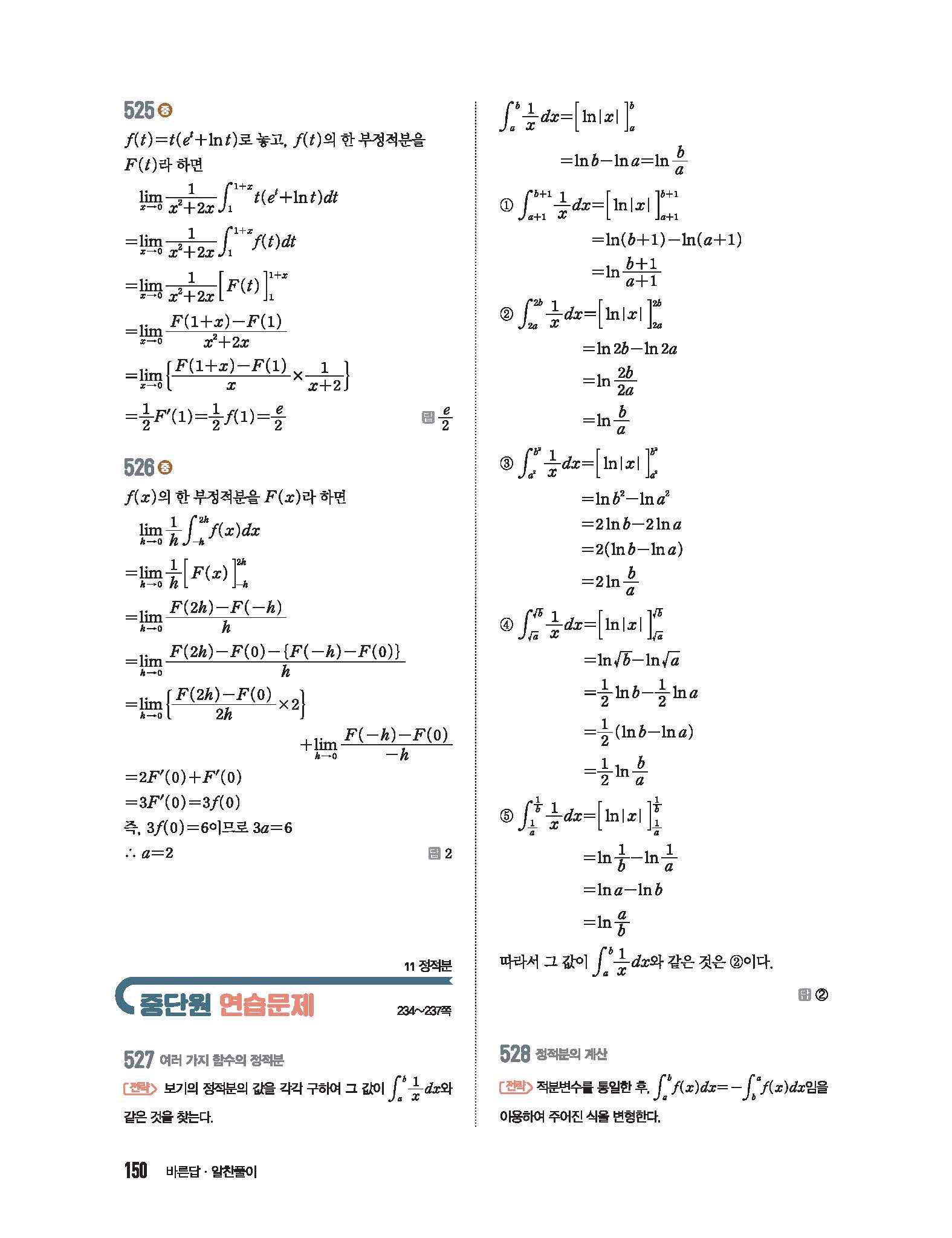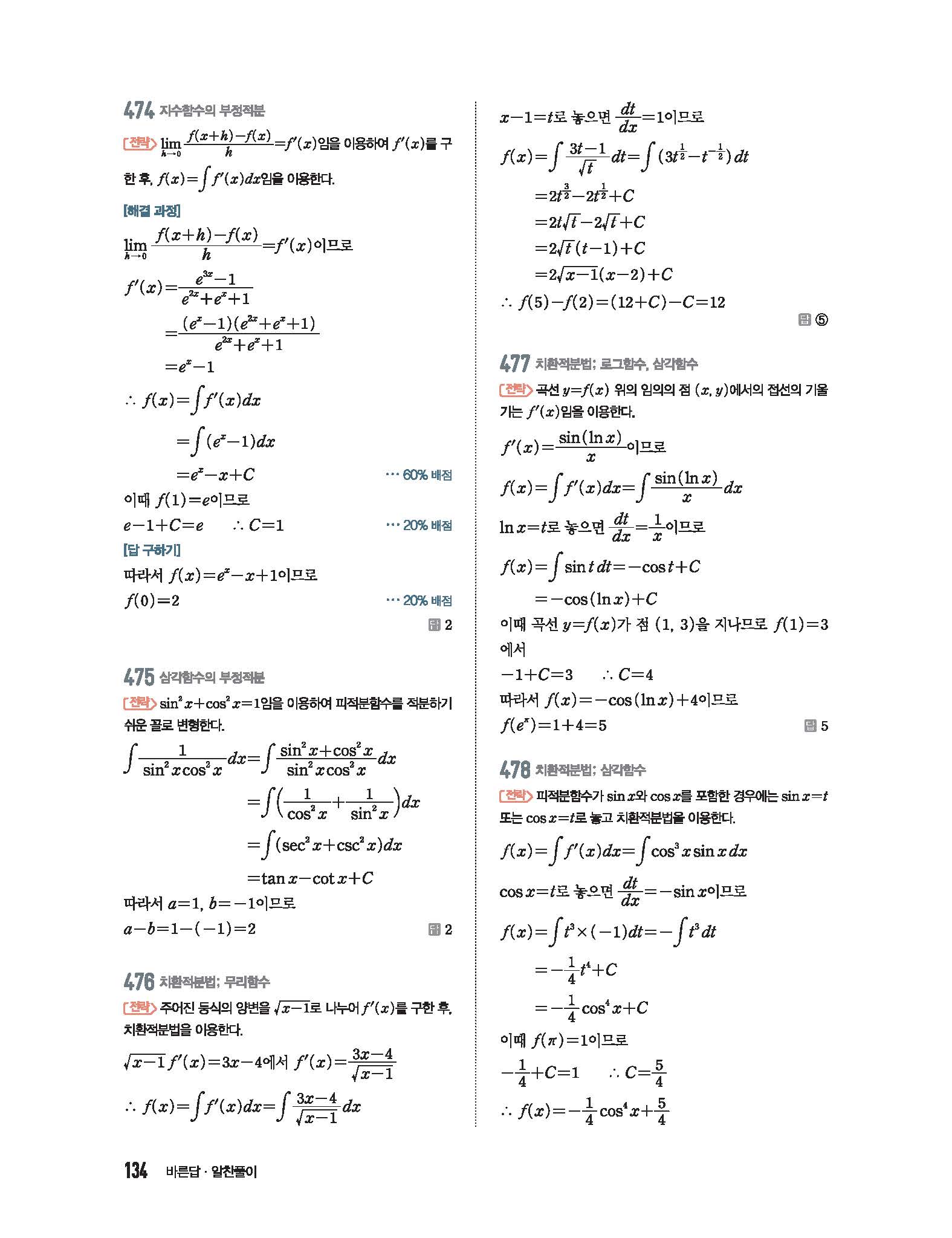 수학중심 미적분 답지 사진답지 빠른답지 모바일최적화