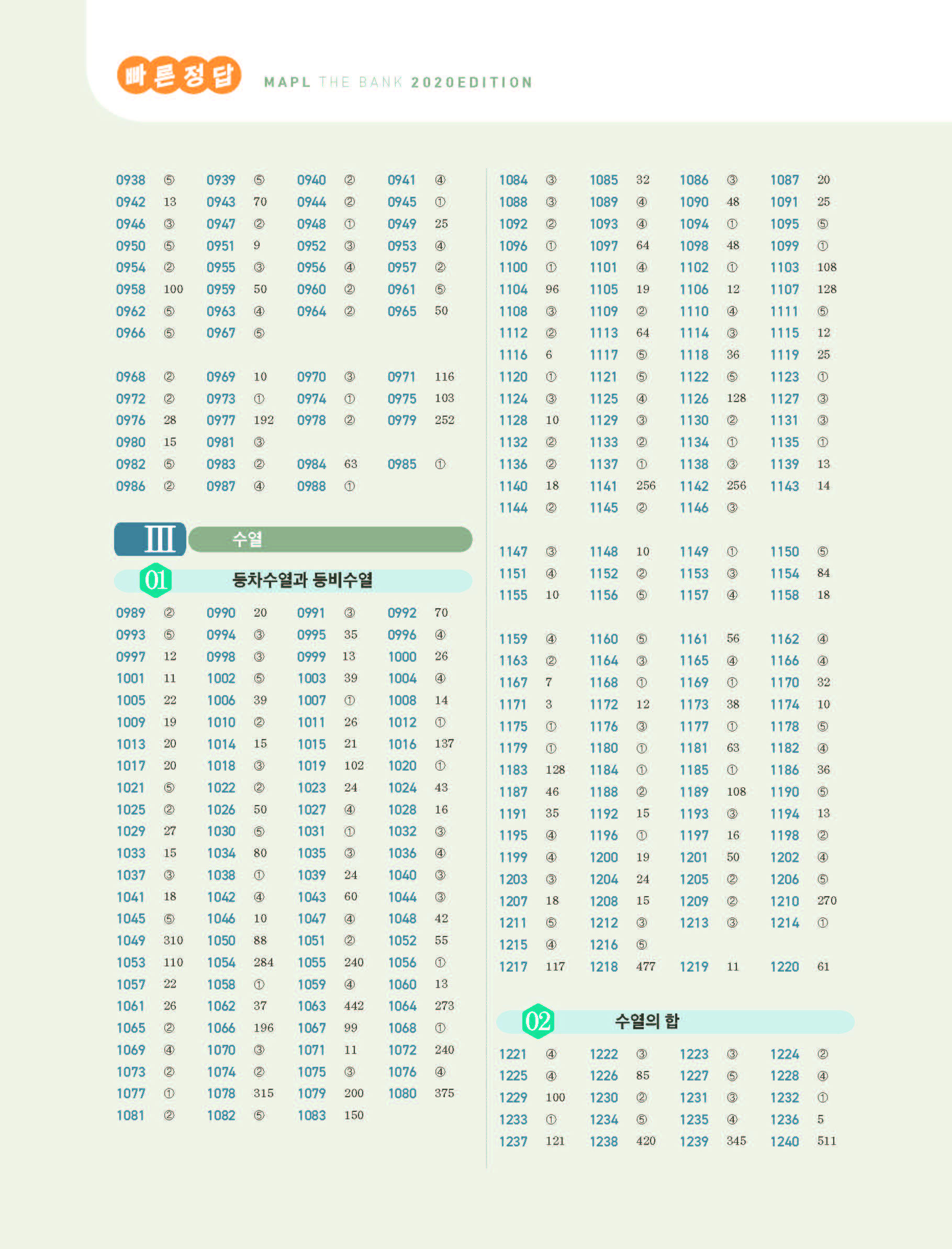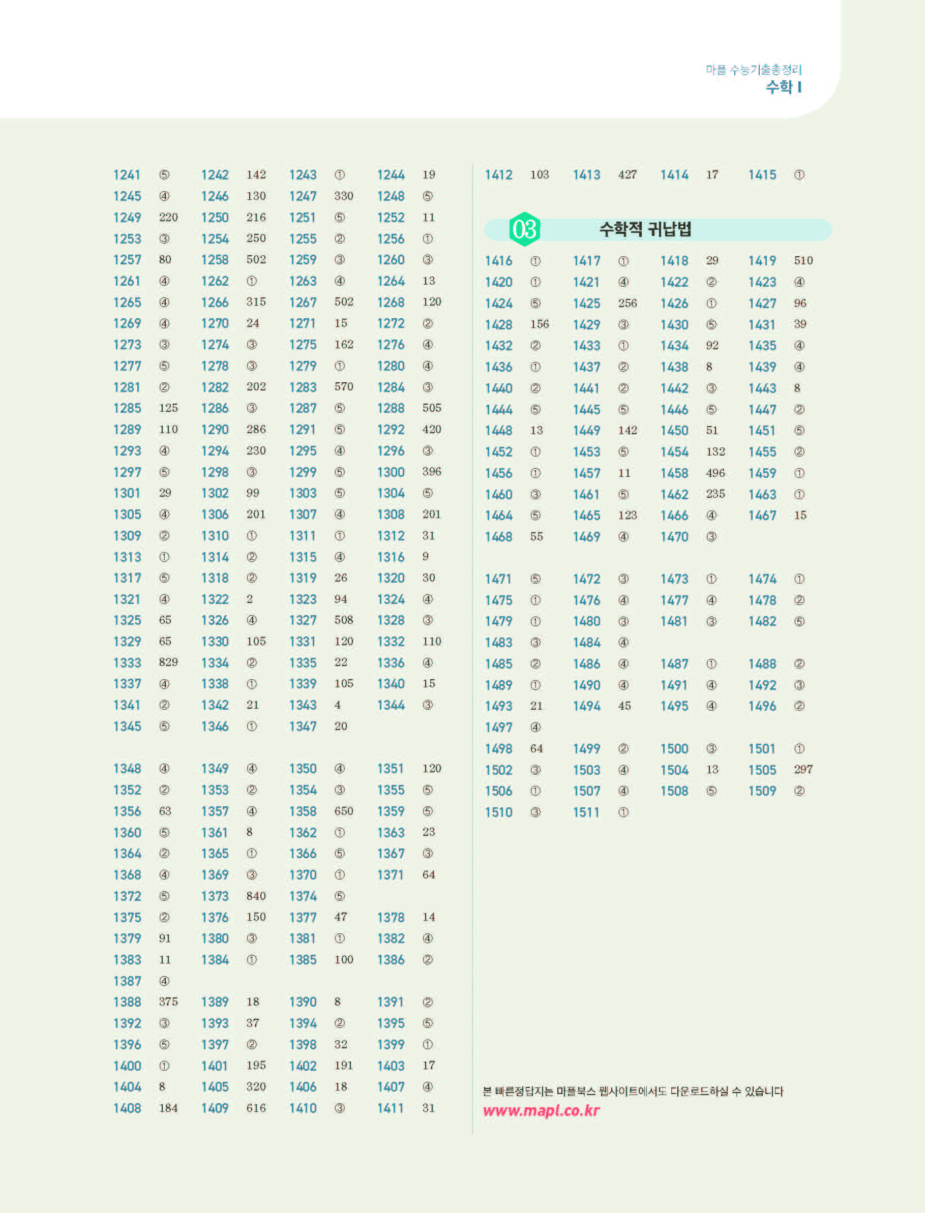 2020 마플 수능기출 총정리 수학1 답지 해설지 사진답지 빠른답지 모바일최적화
