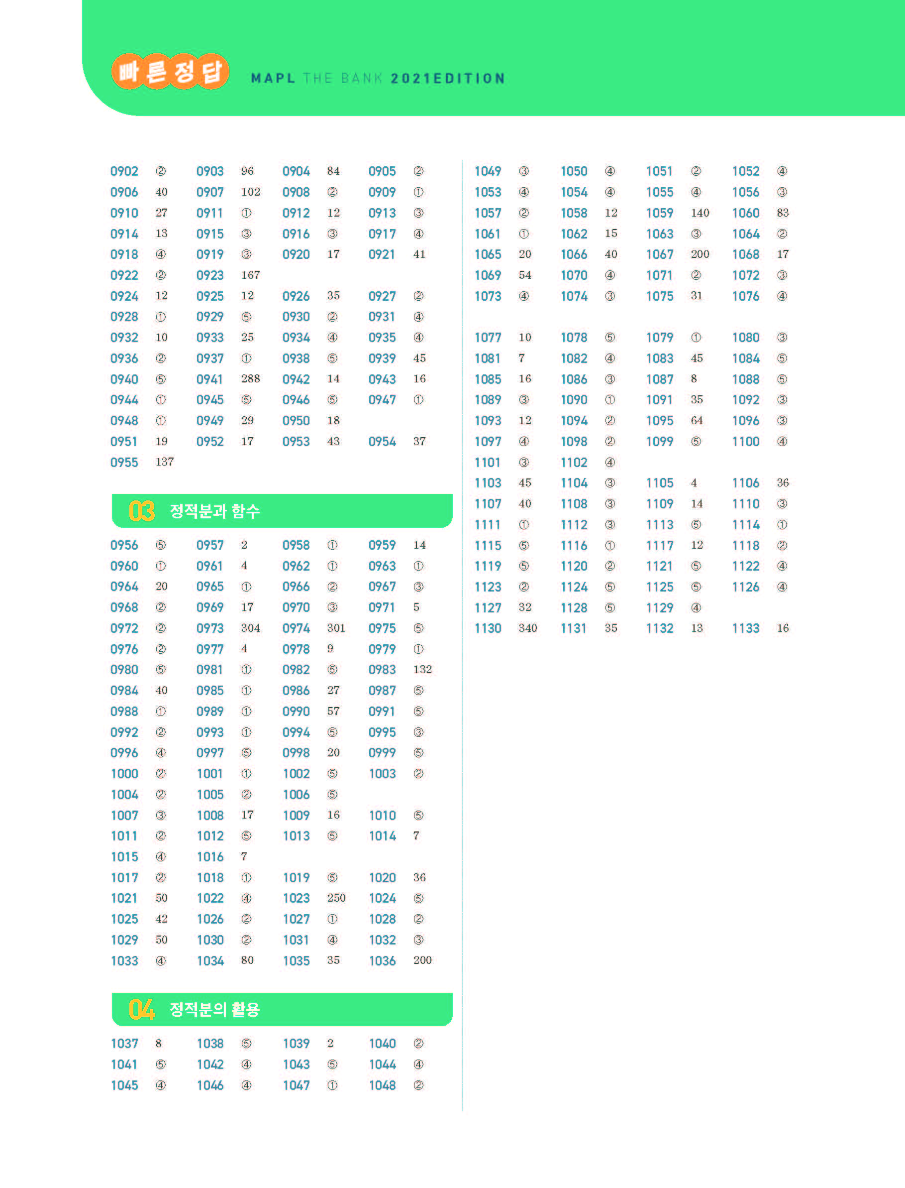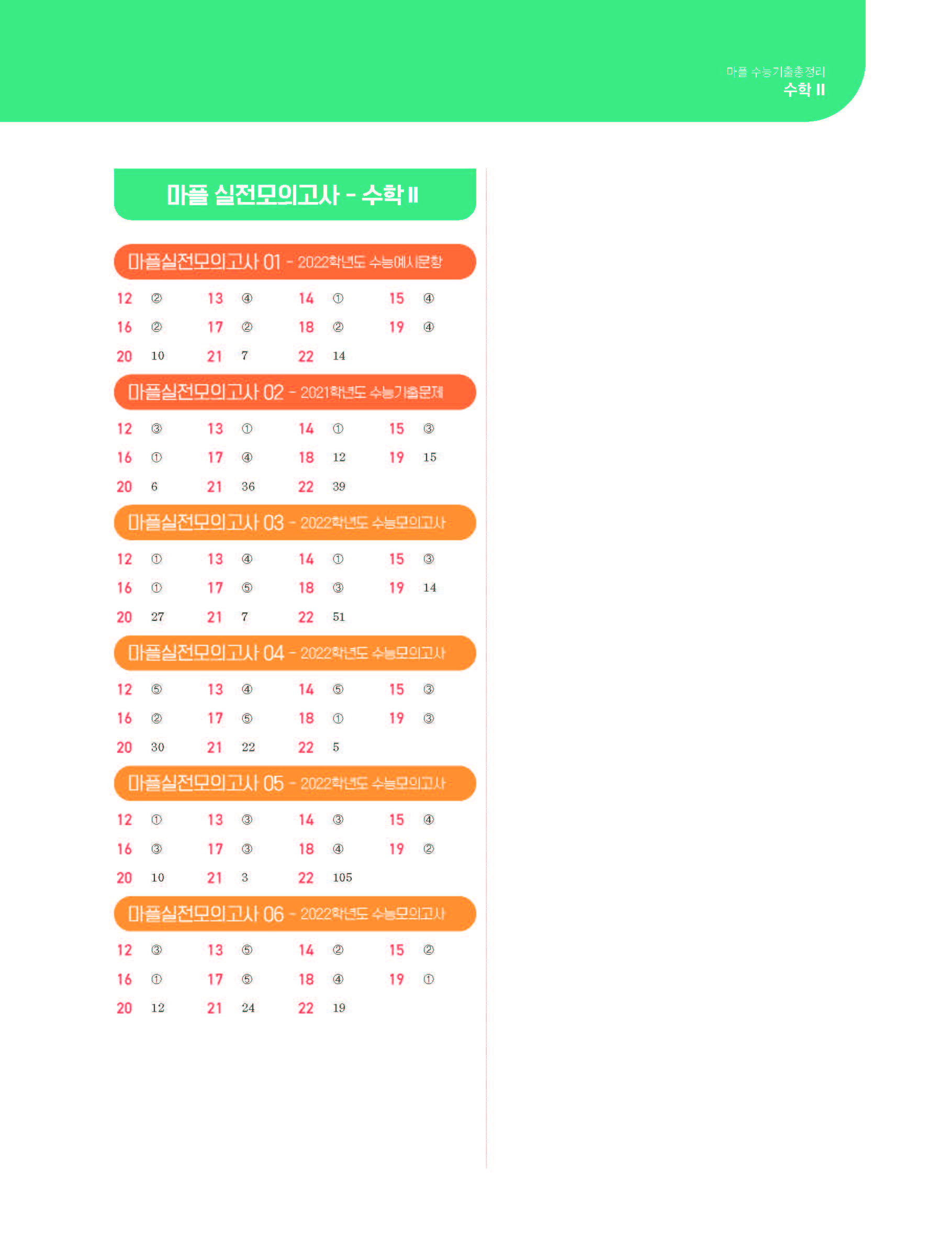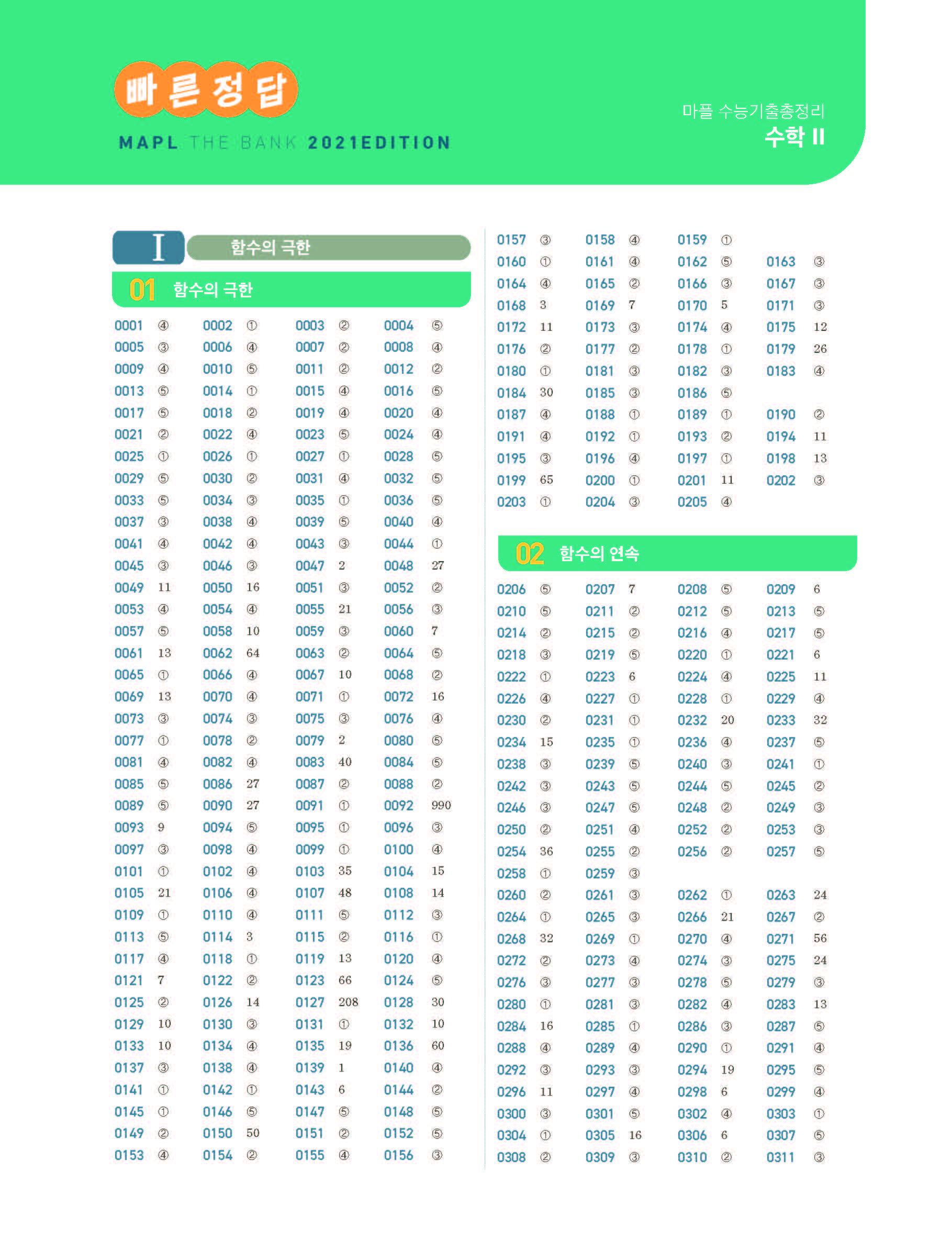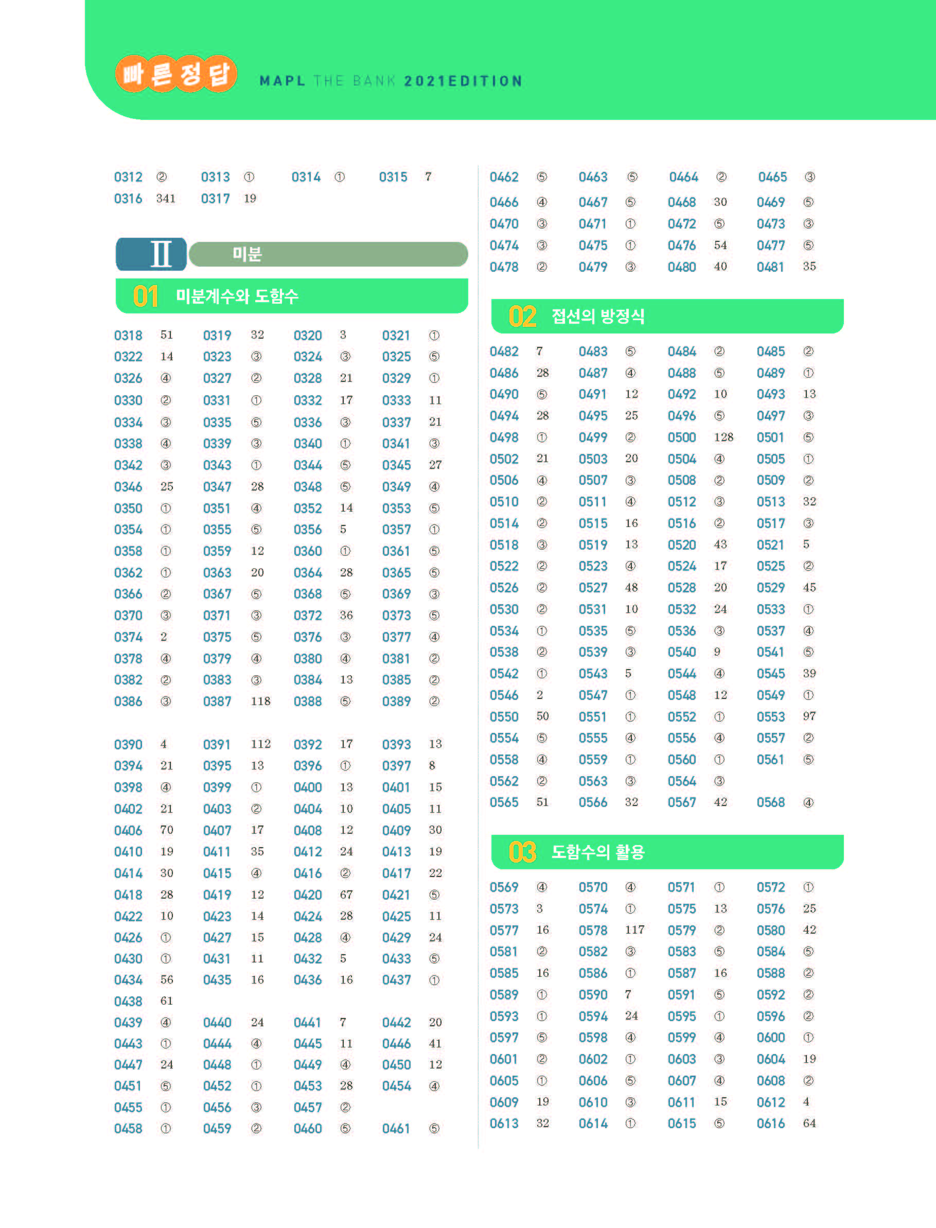 2021 마플 수능기출 총정리 수학2 답지 해설지 사진답지 빠른답지 모바일최적화