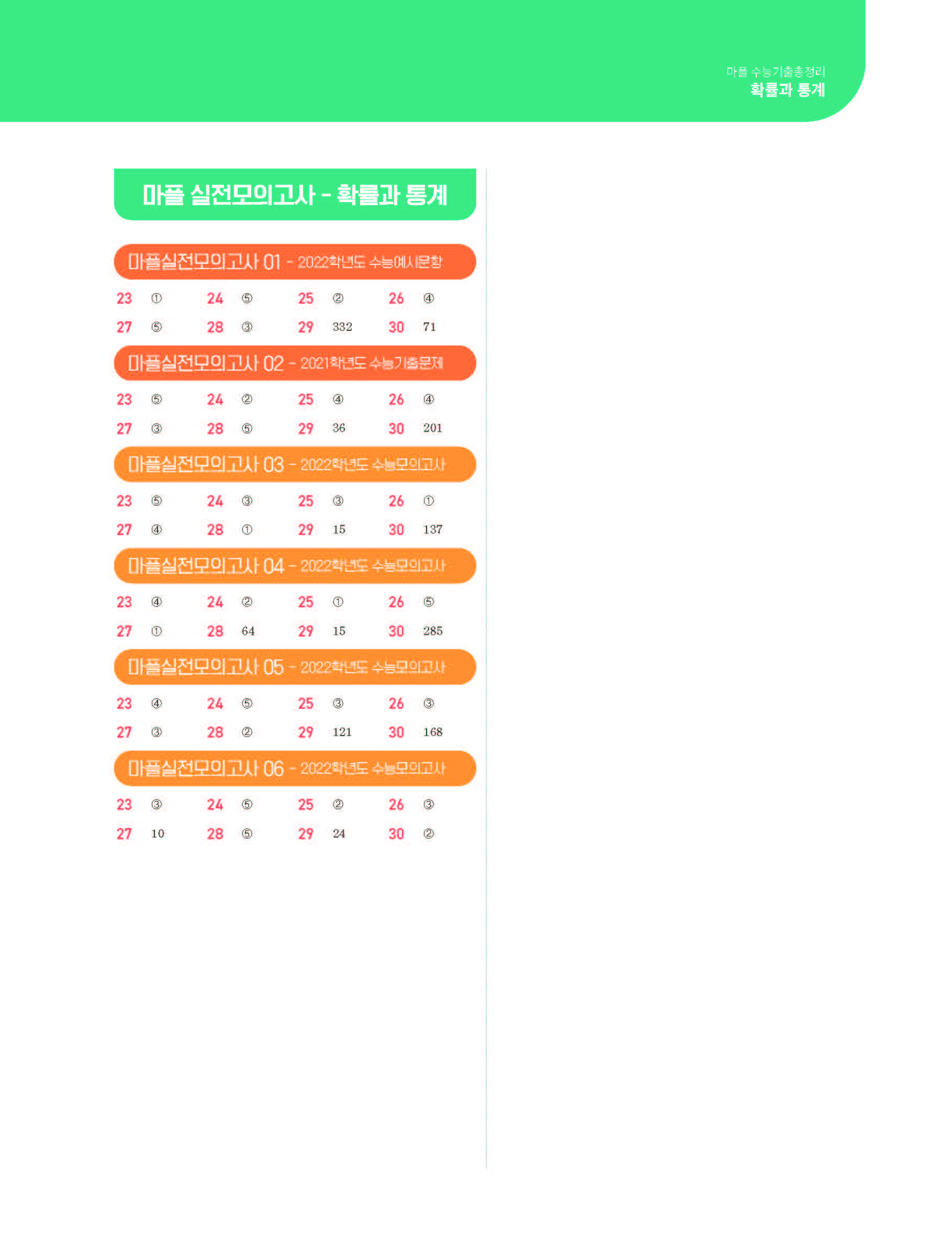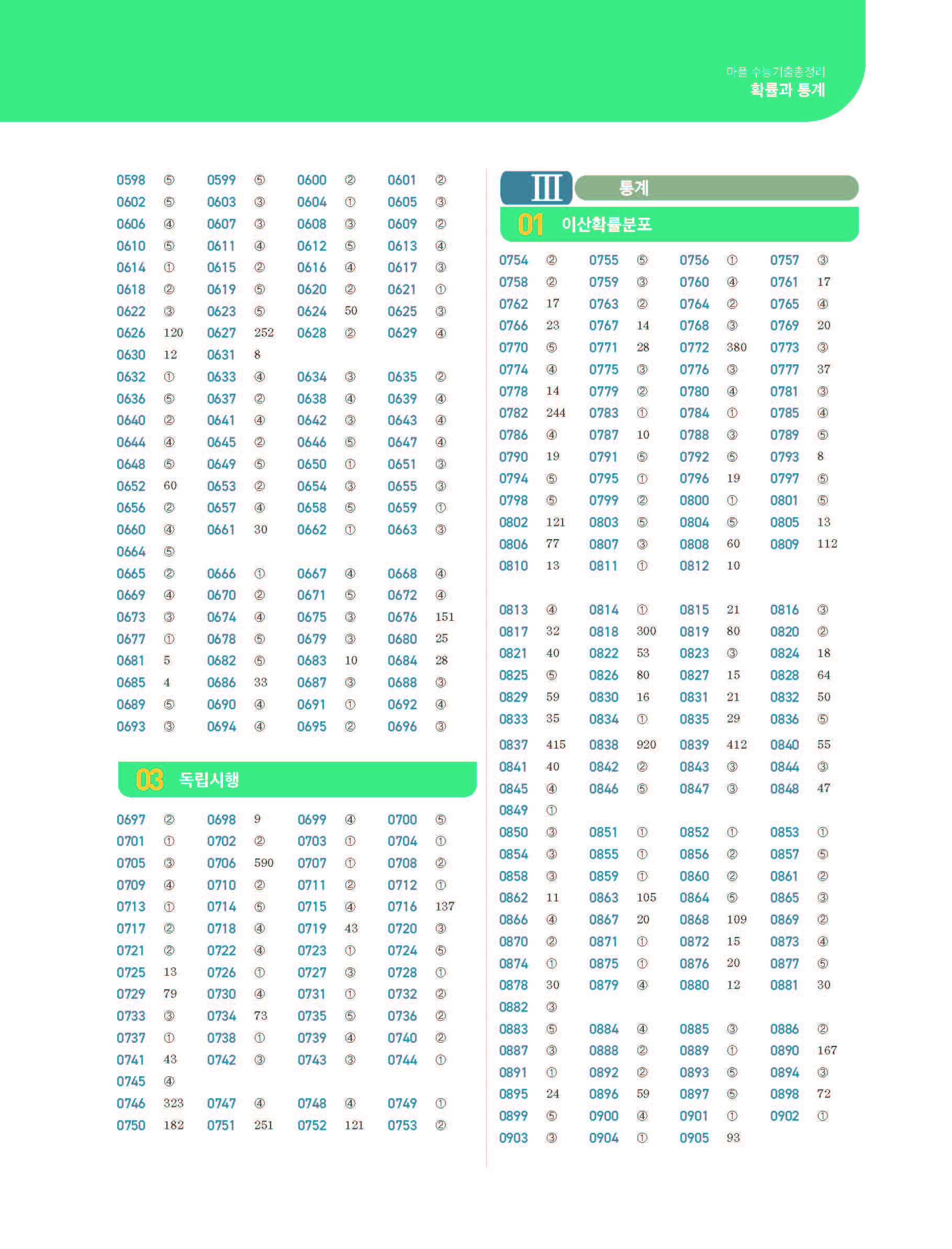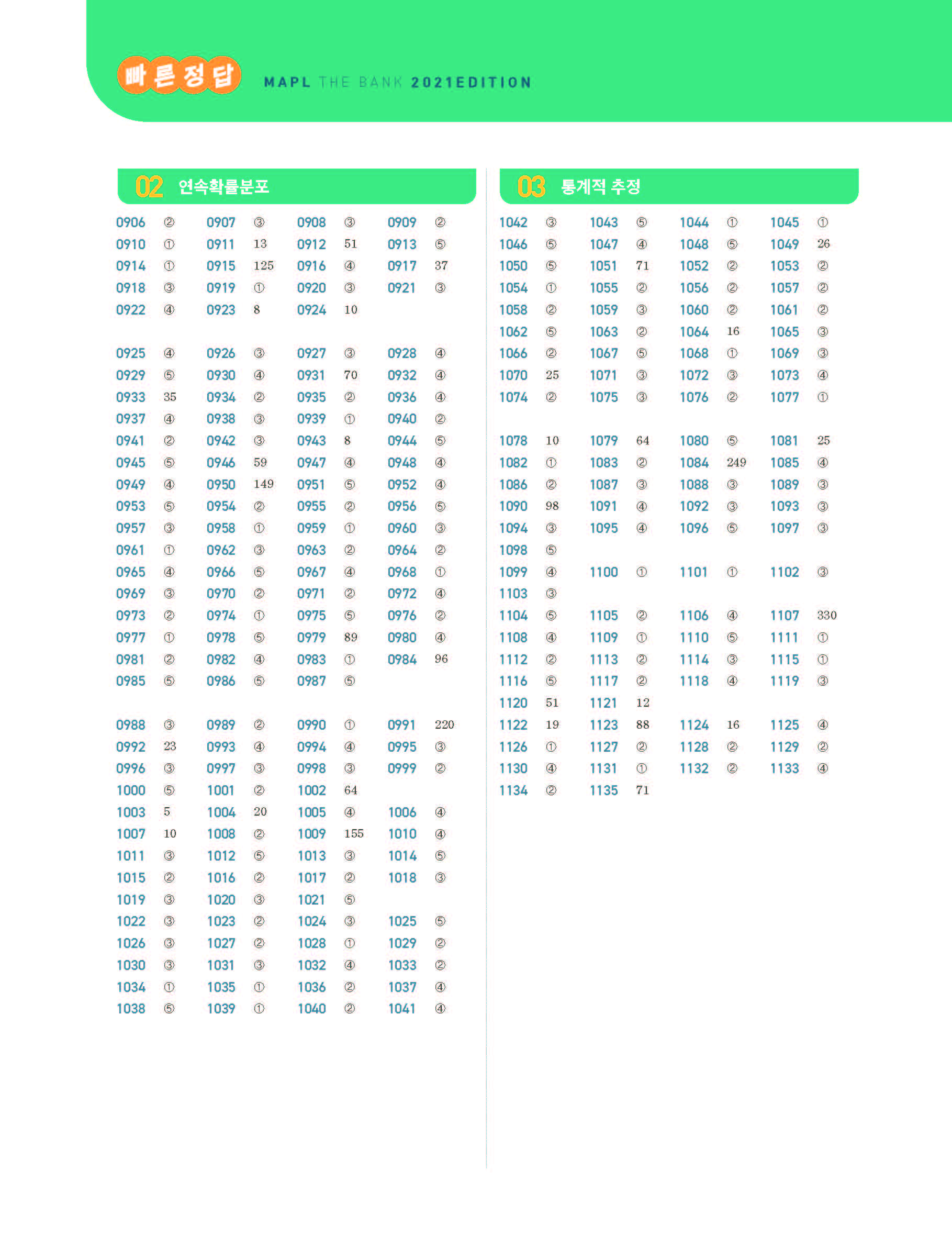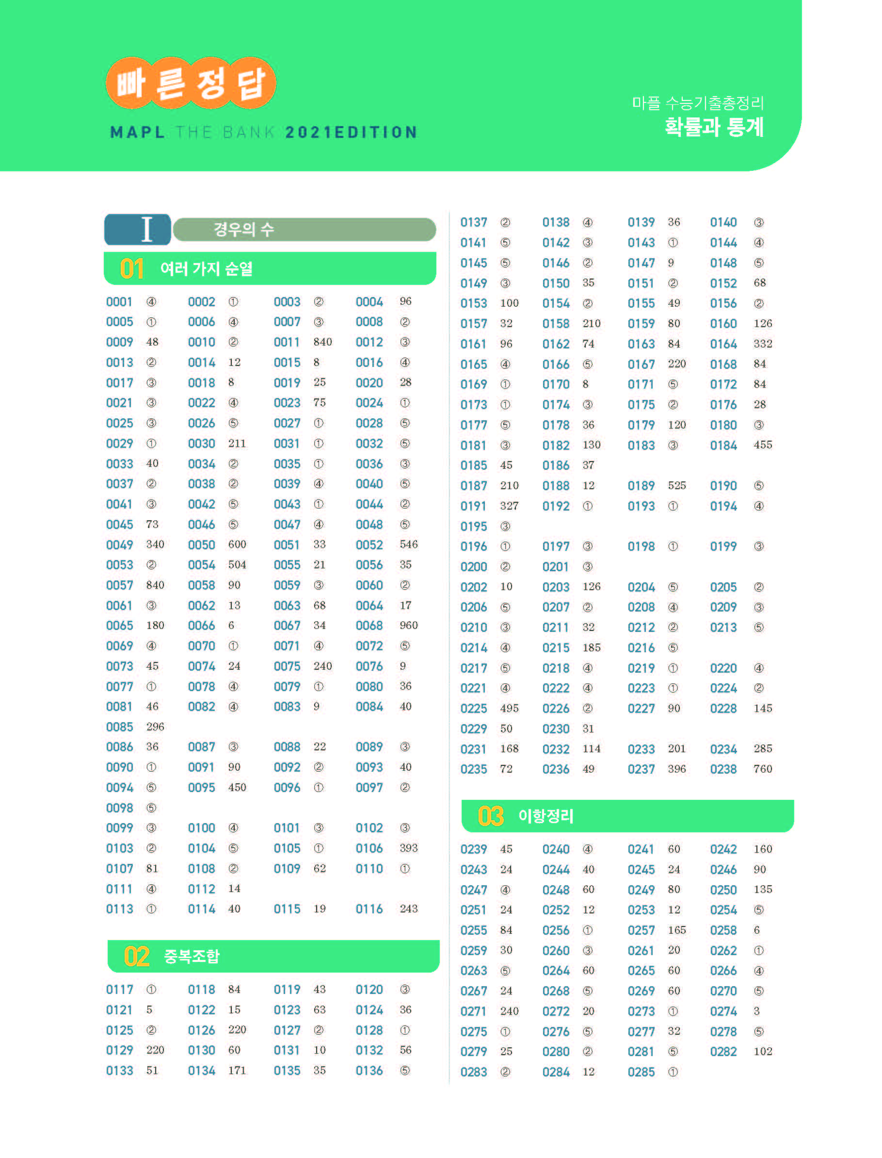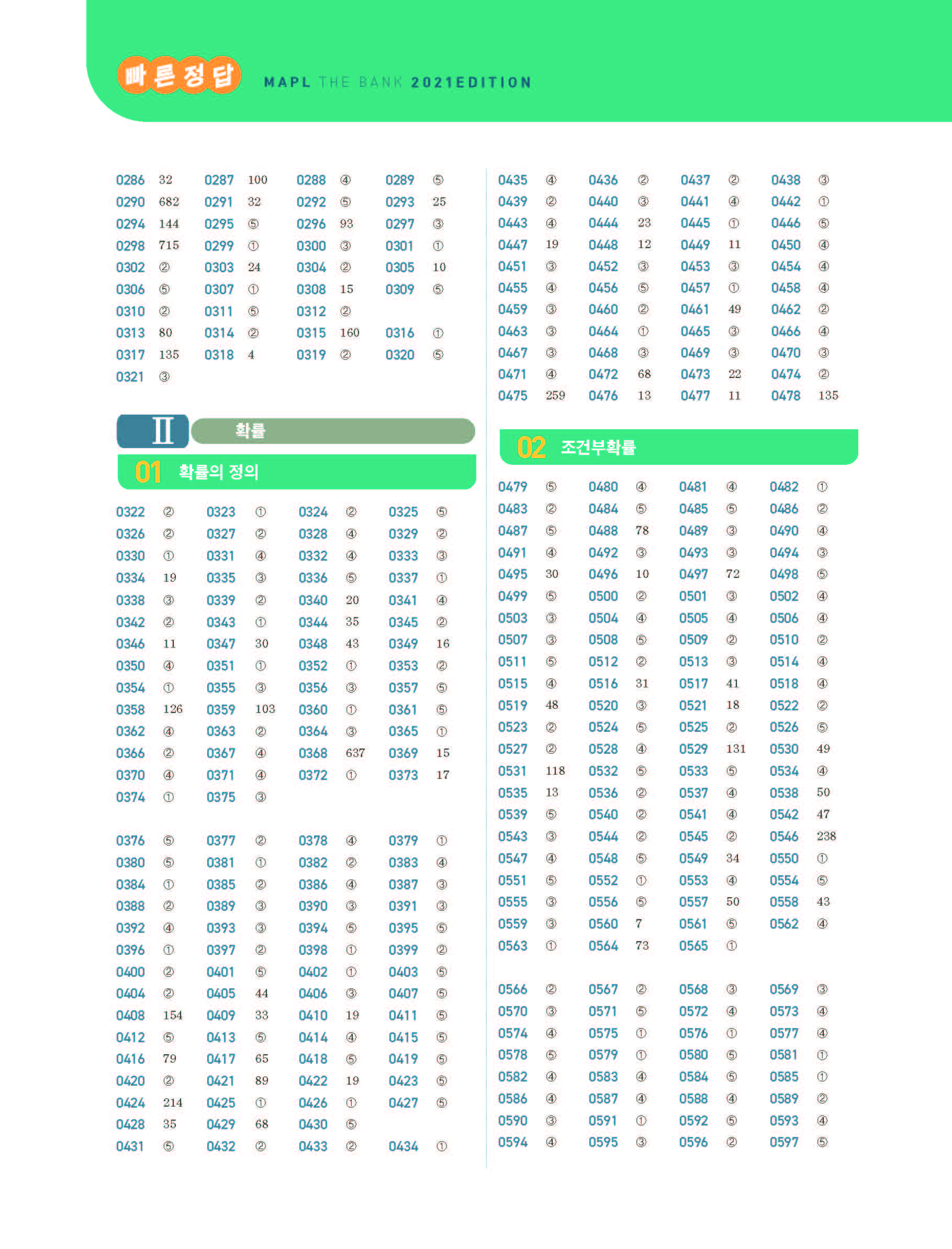 2021 마플 수능기출 총정리 확률과통계 답지 해설지 사진답지 빠른답지 모바일최적화
