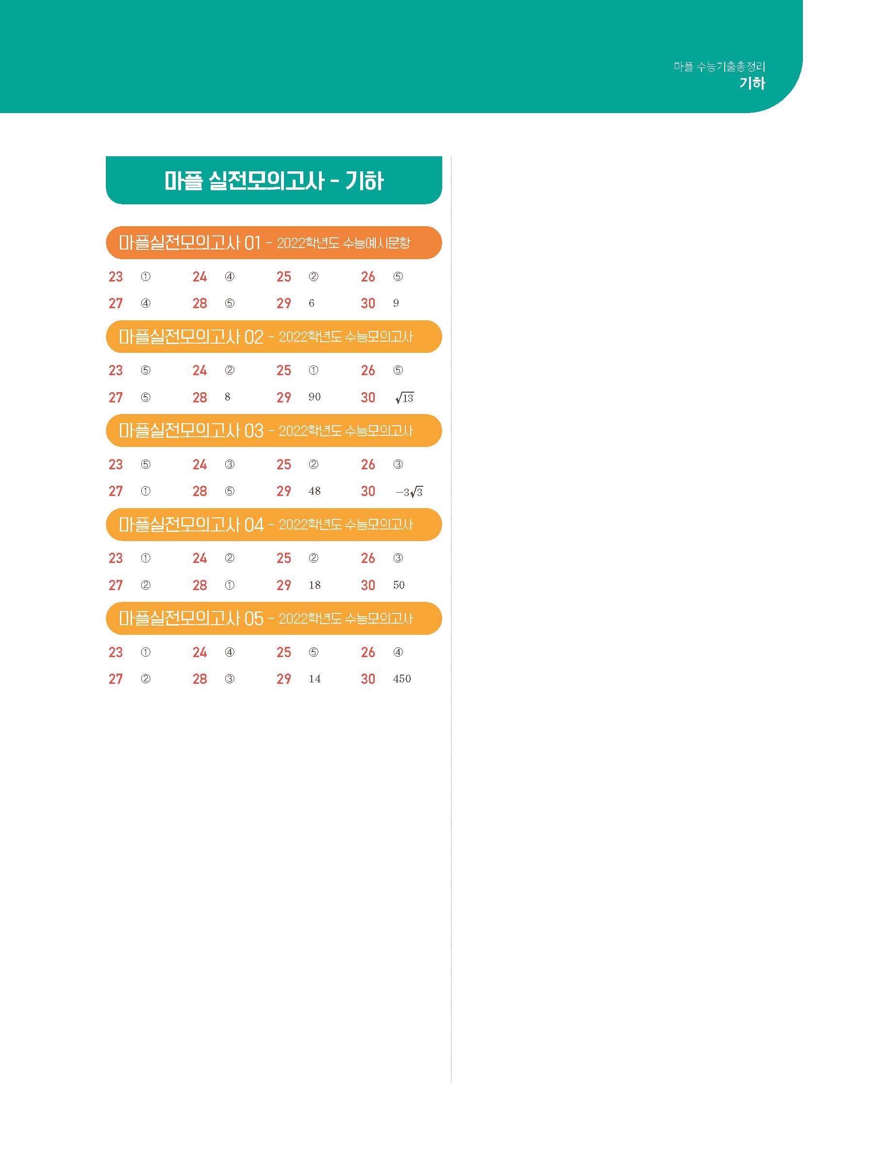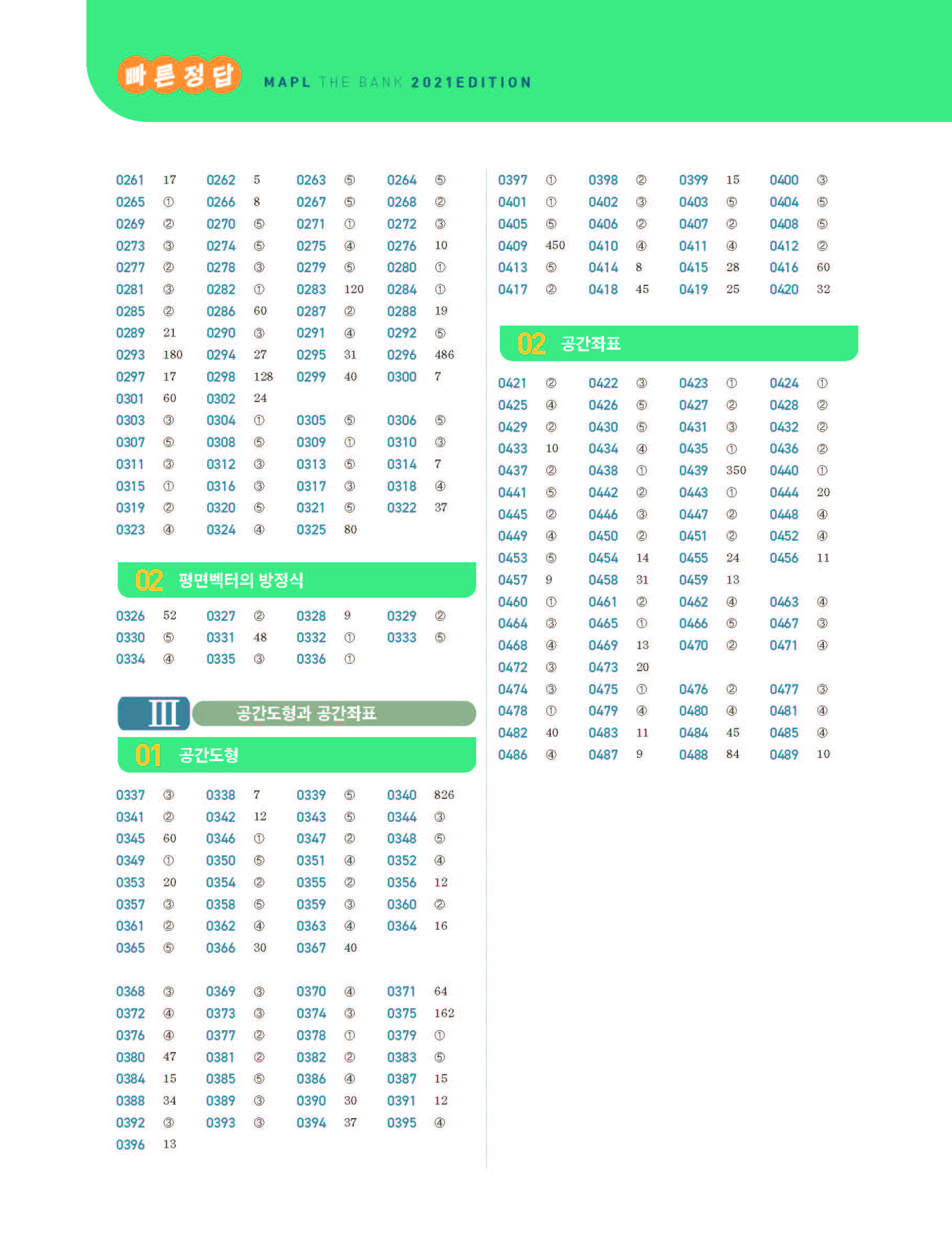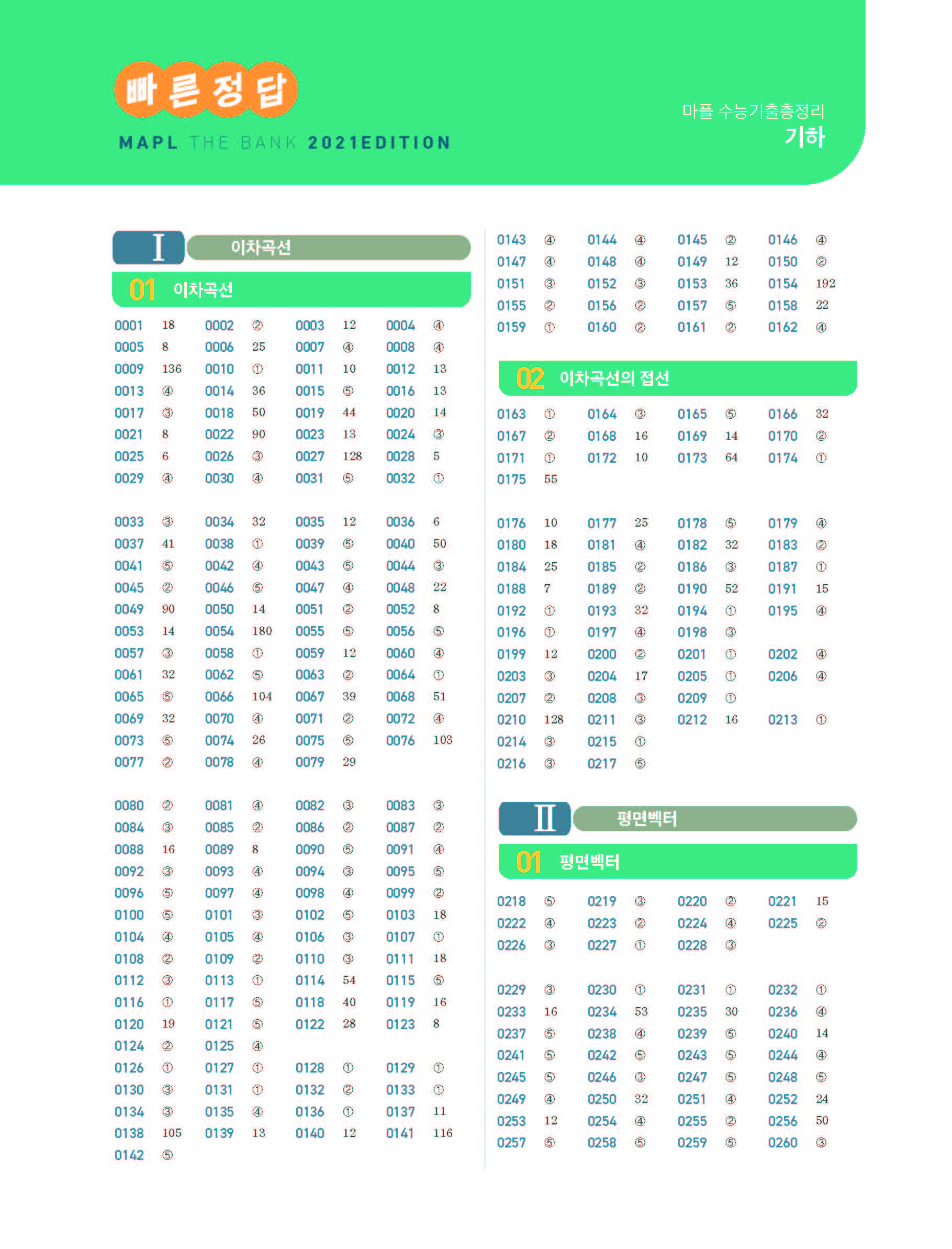 2021 마플 수능기출 총정리 기하 답지 해설지 사진답지 빠른답지 모바일최적화