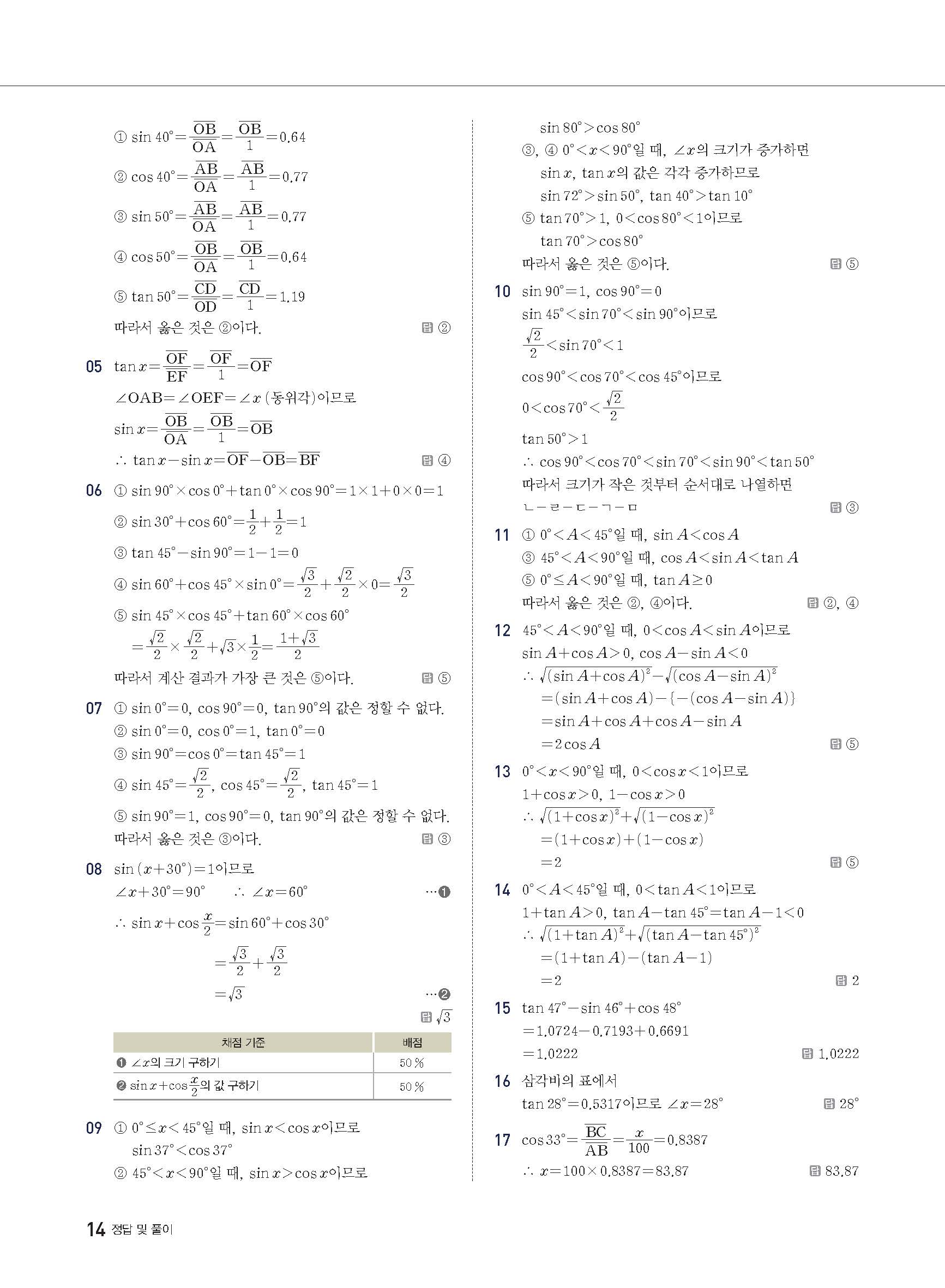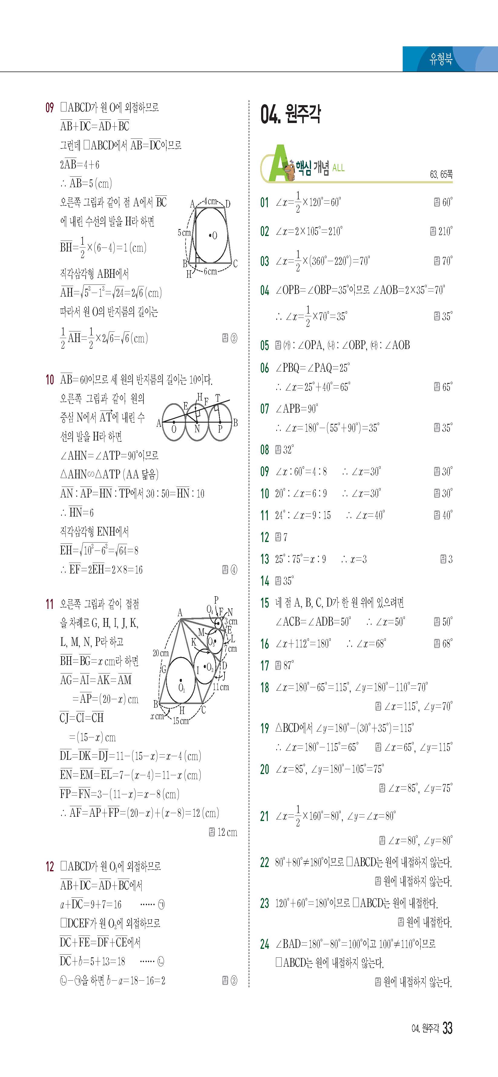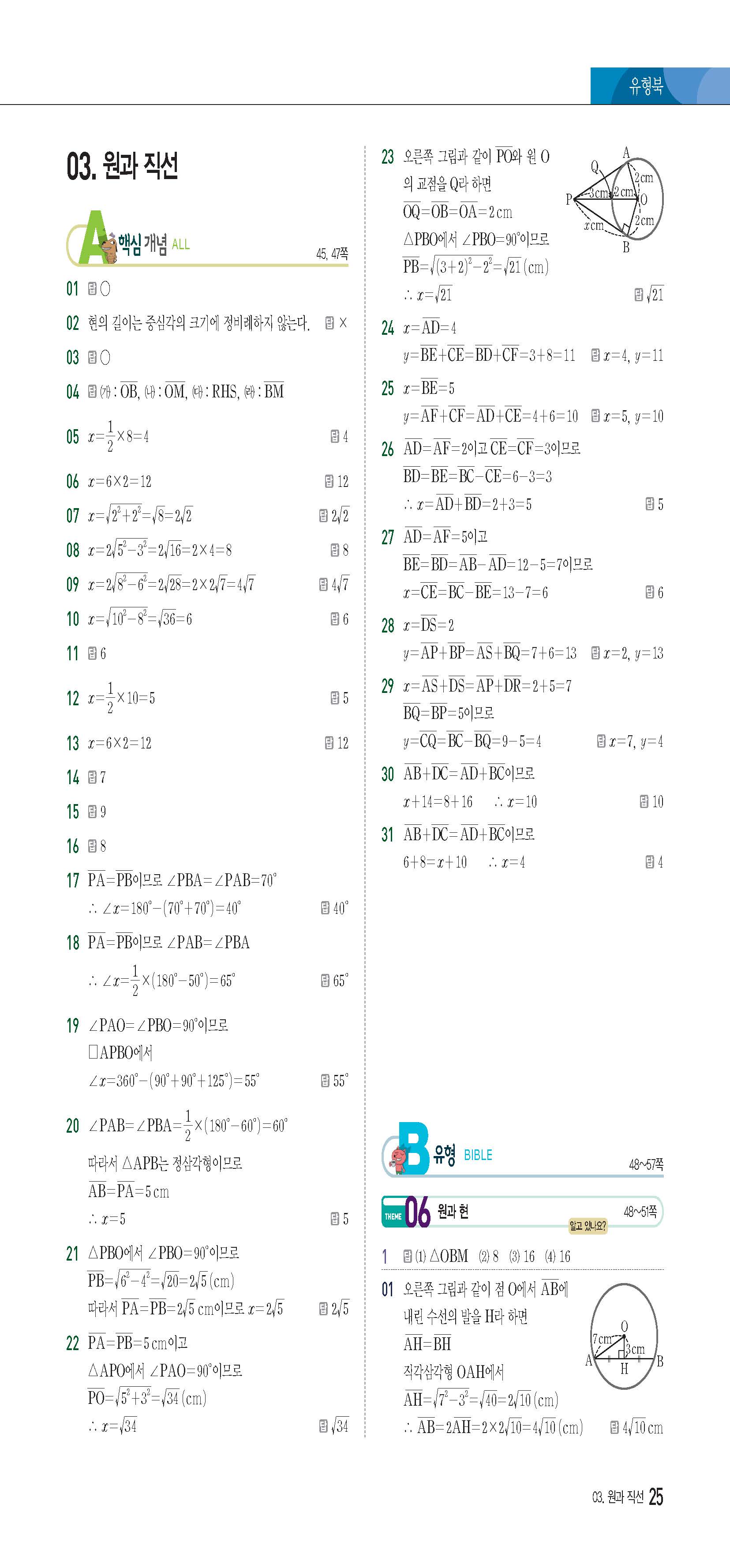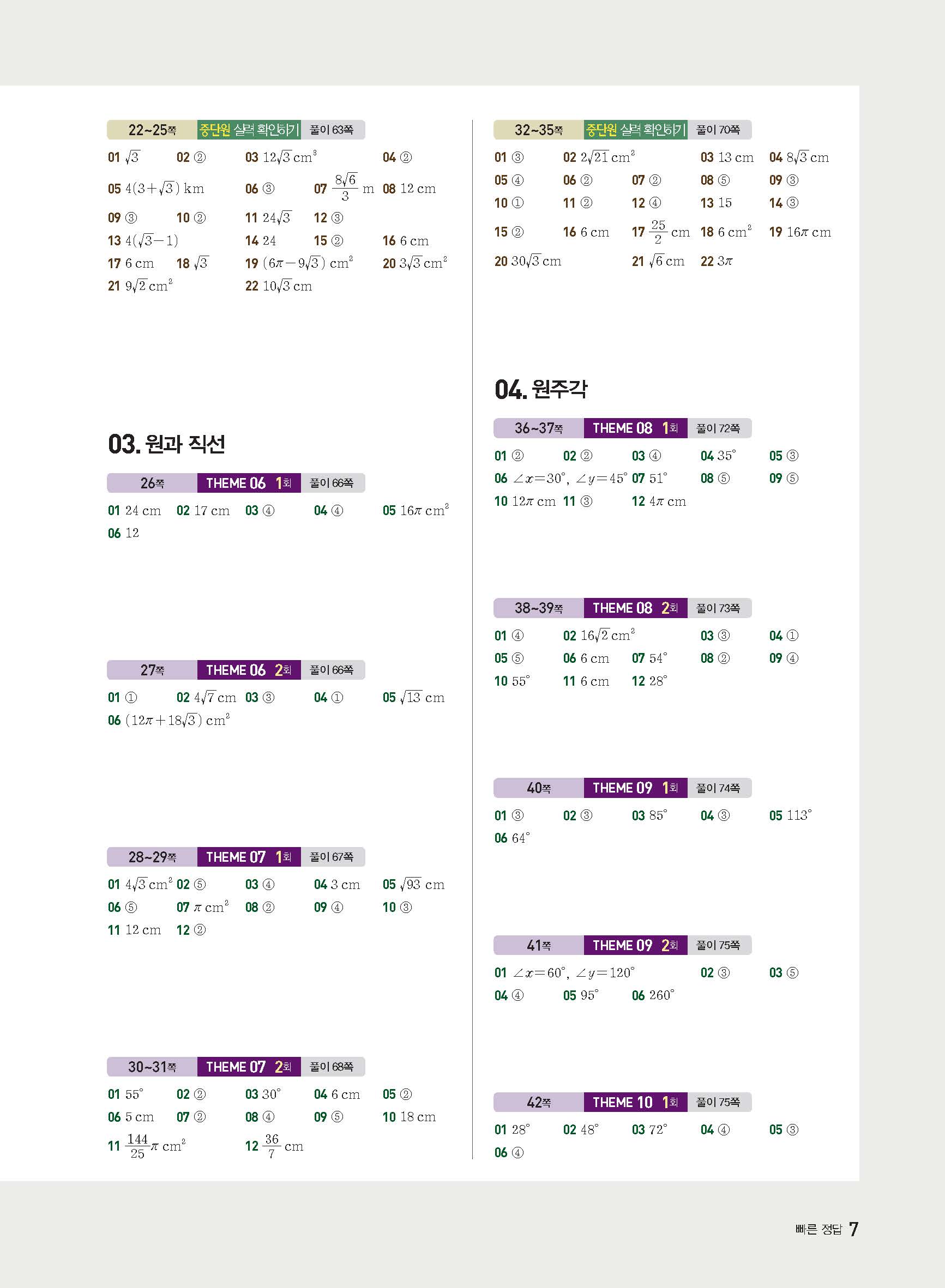 중등 빨리 강해지는 수학 중3하 3-2 답지 해설지 사진답지 빠른답지 모바일최적화