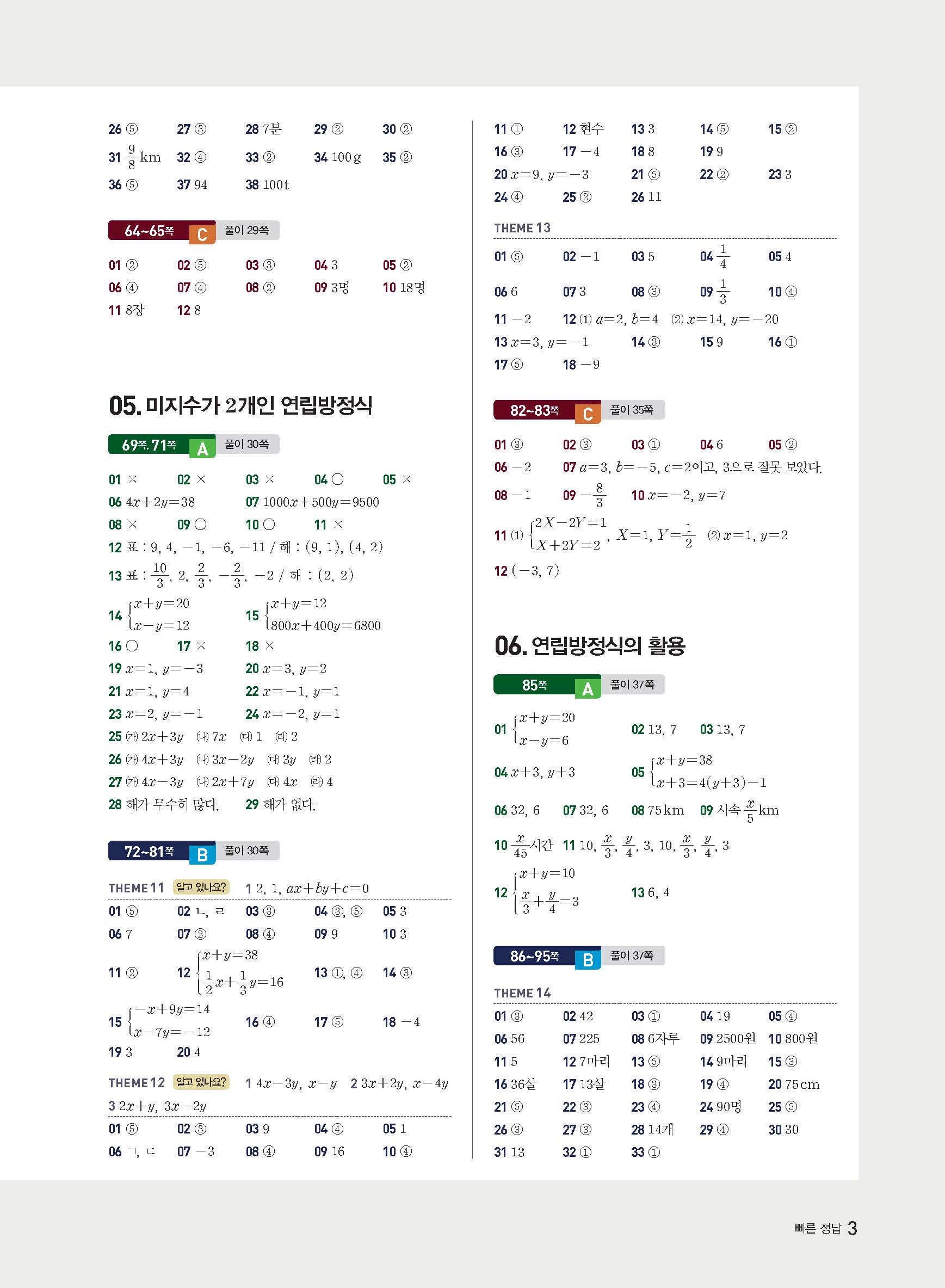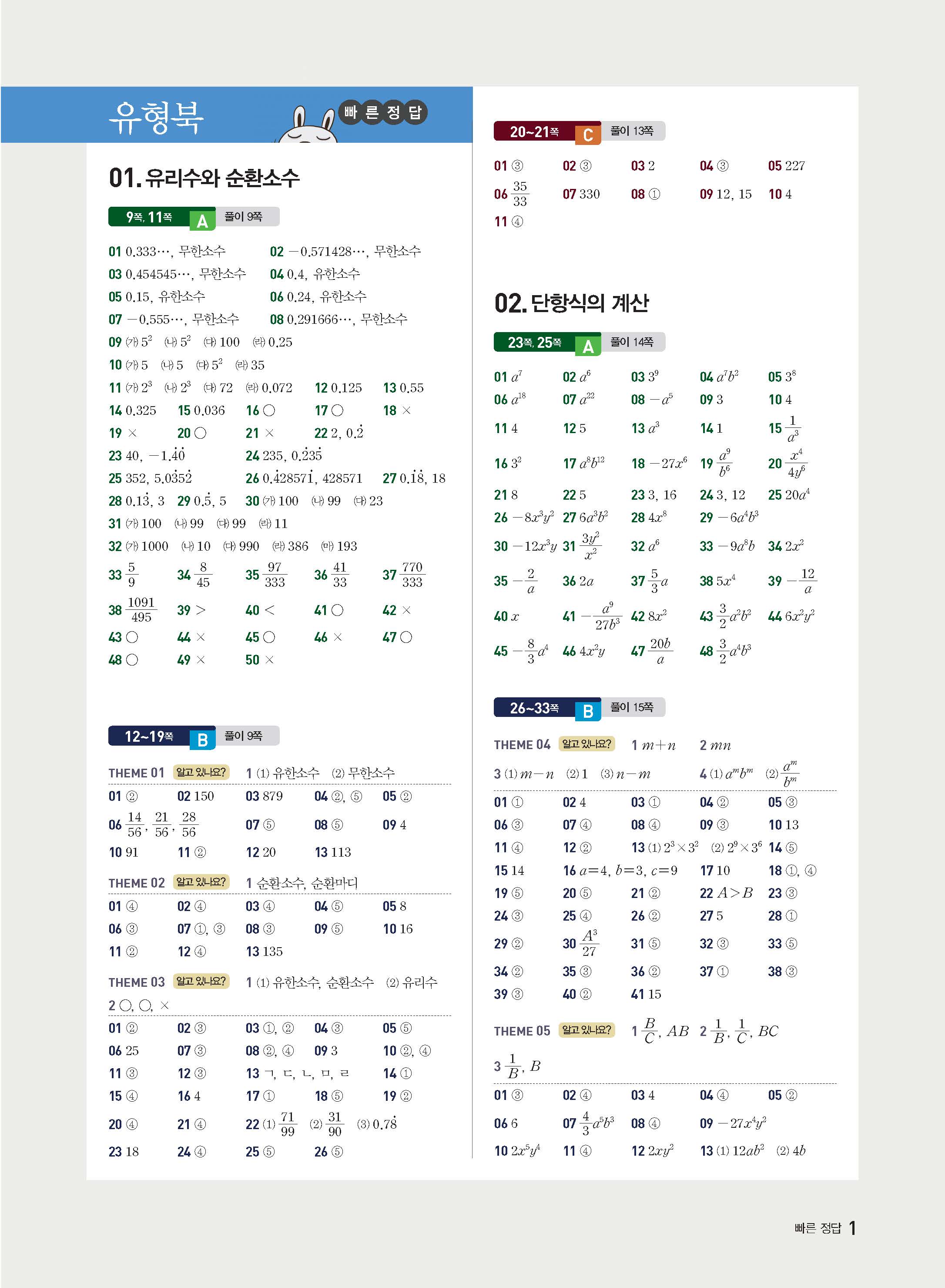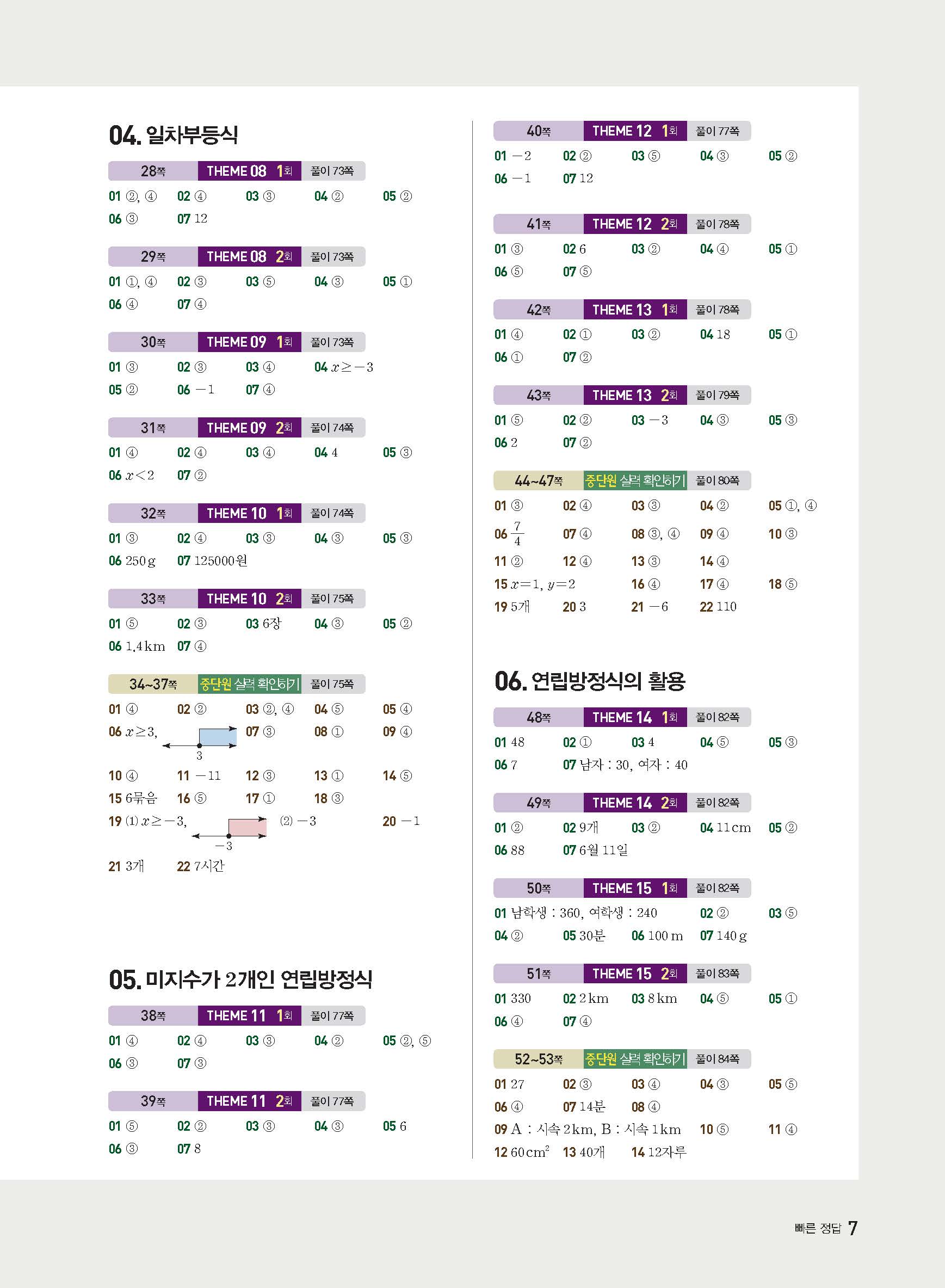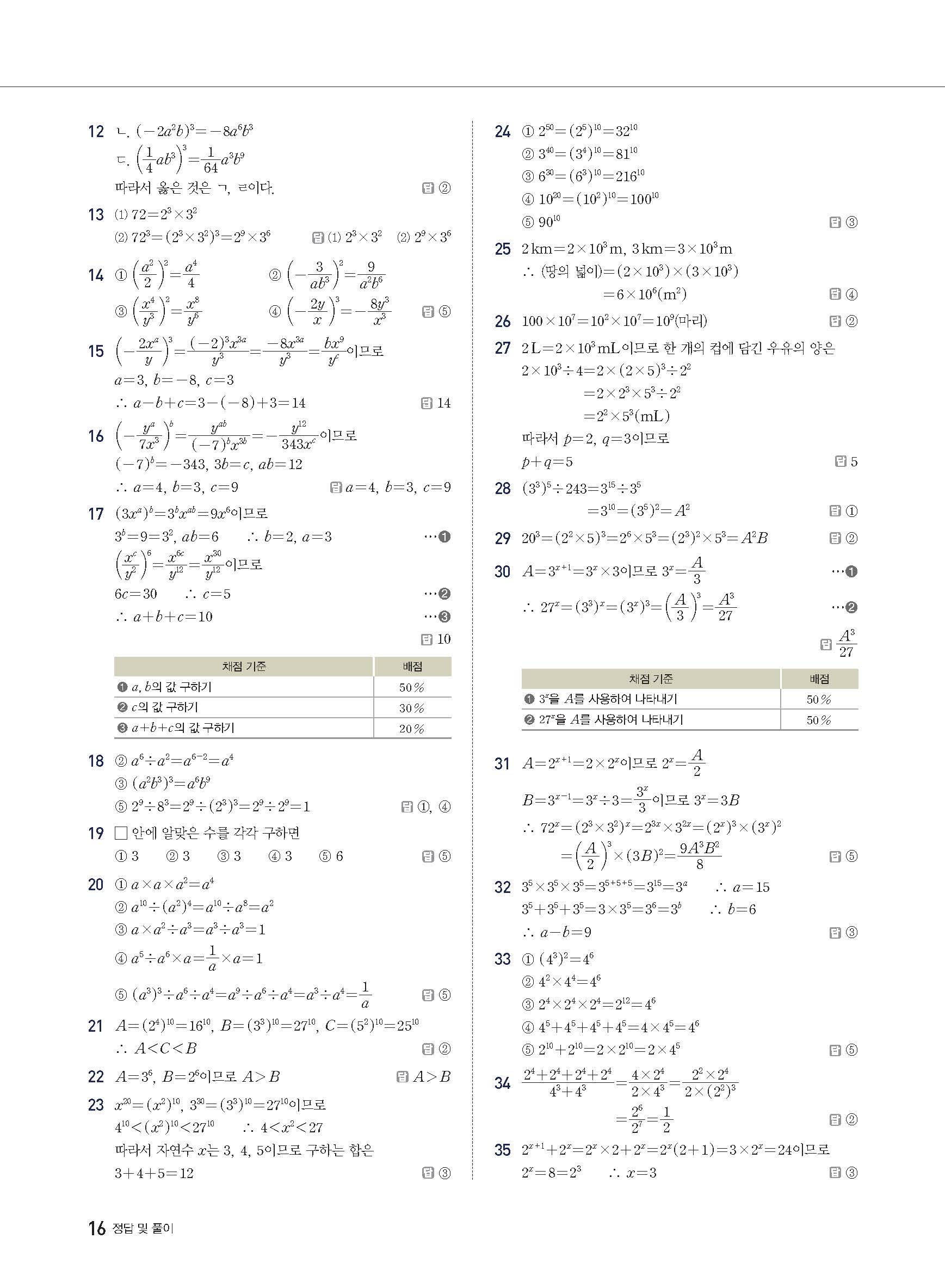 중등 빨리 강해지는 수학 중2상 2-1 답지 해설지 사진답지 빠른답지 모바일최적화