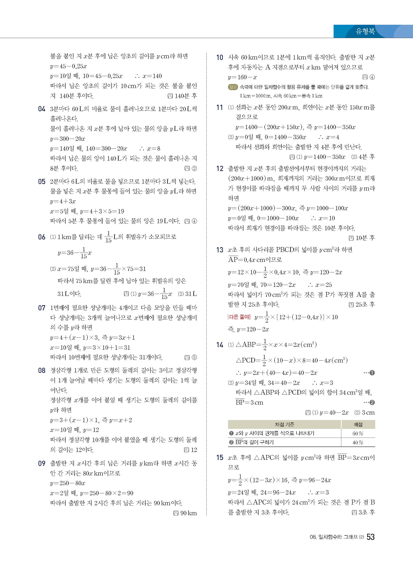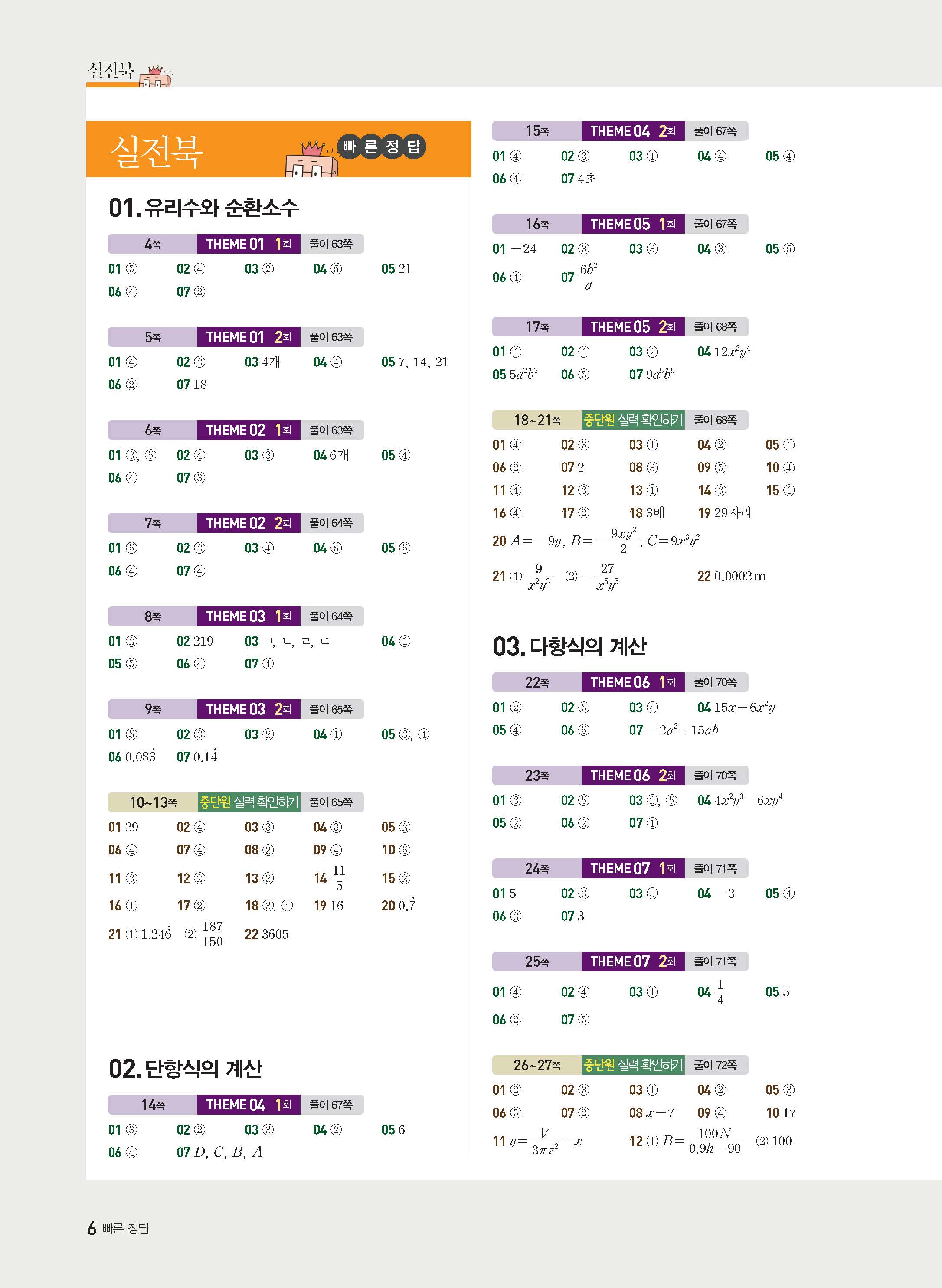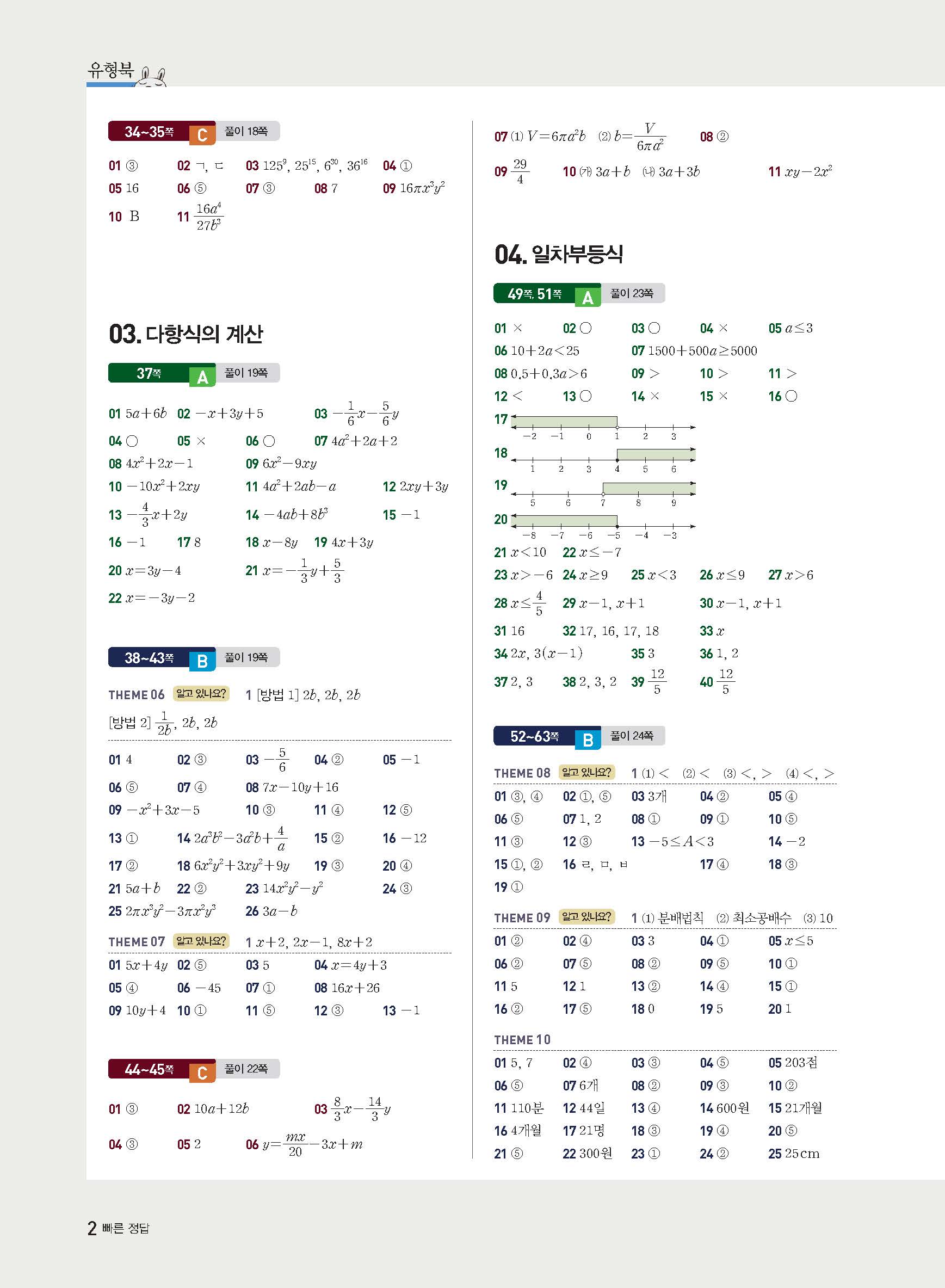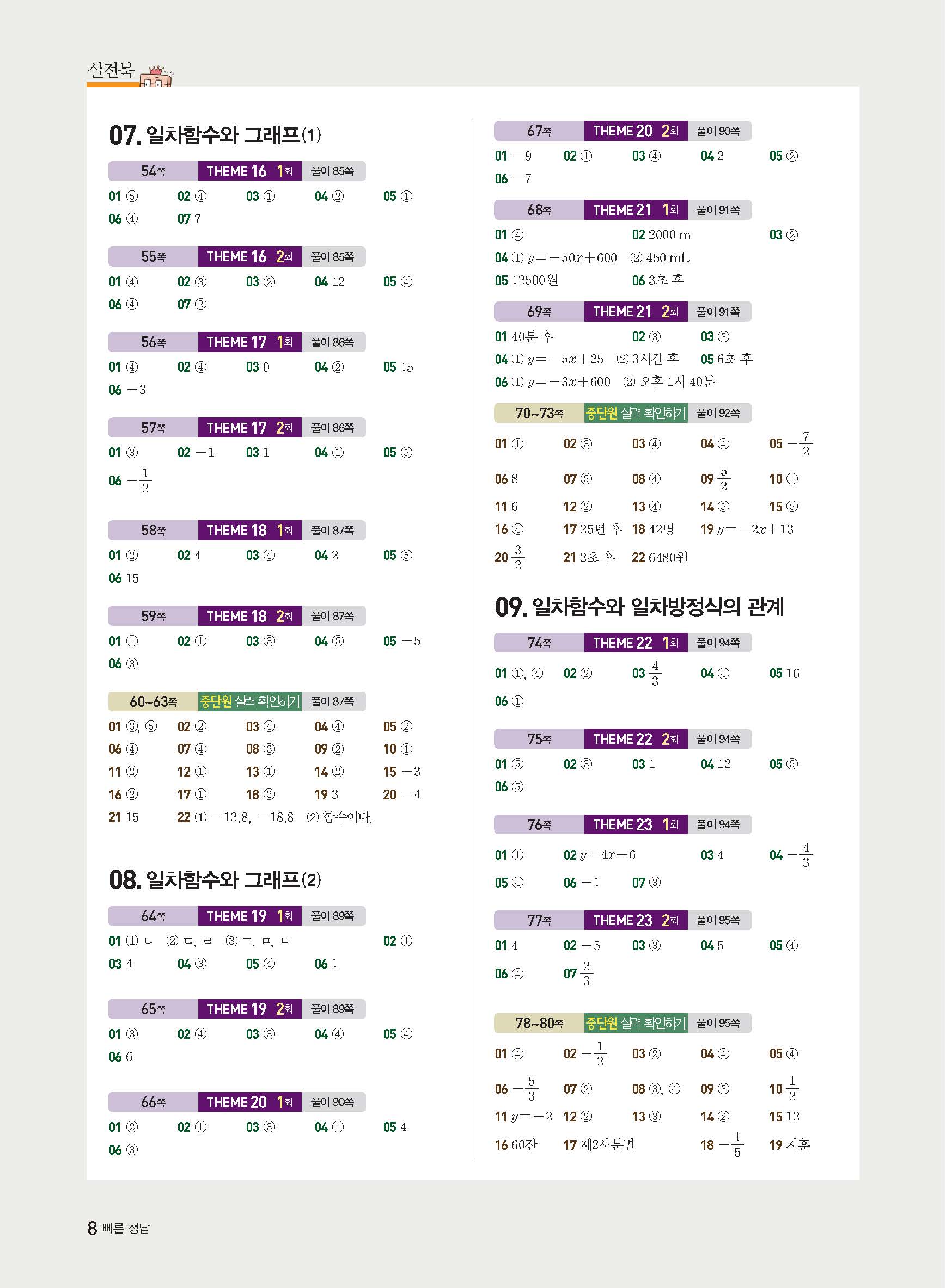 중등 빨리 강해지는 수학 중2상 2-1 답지 해설지 사진답지 빠른답지 모바일최적화