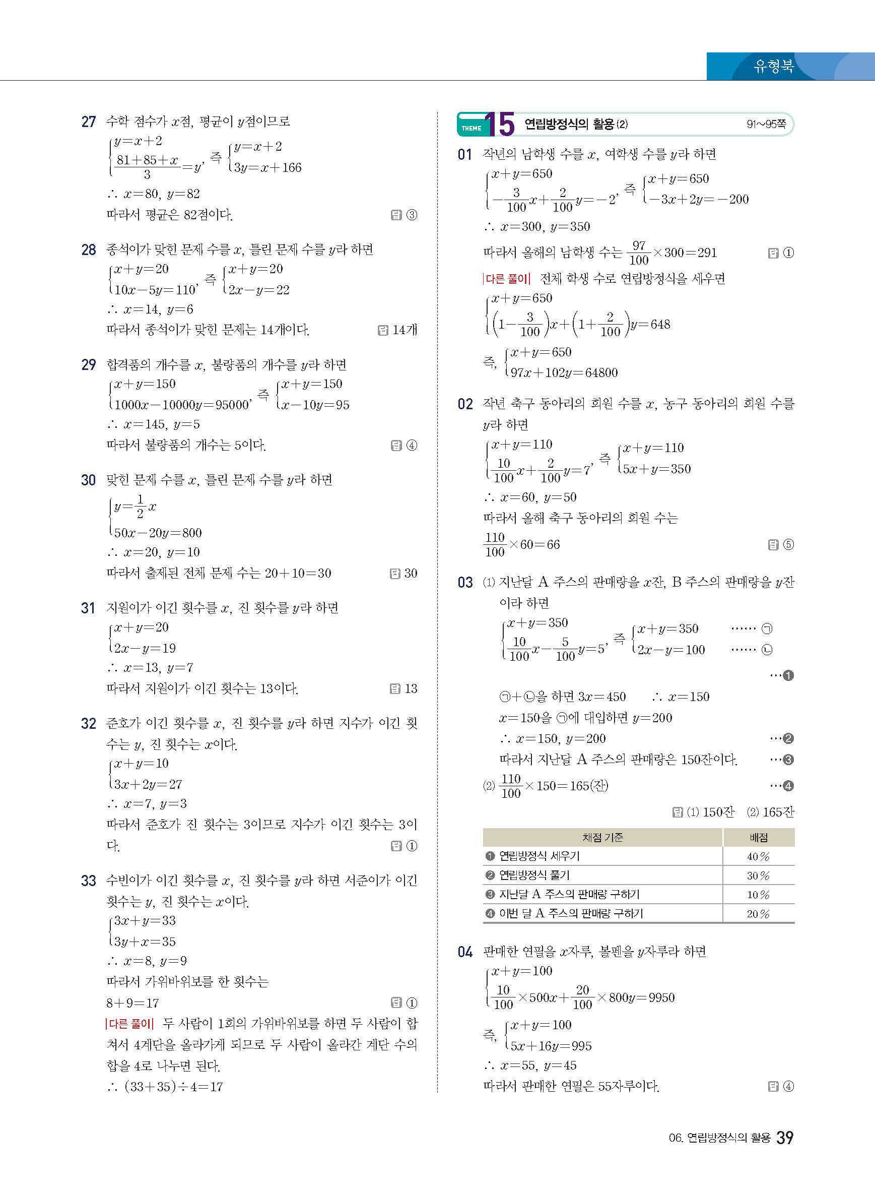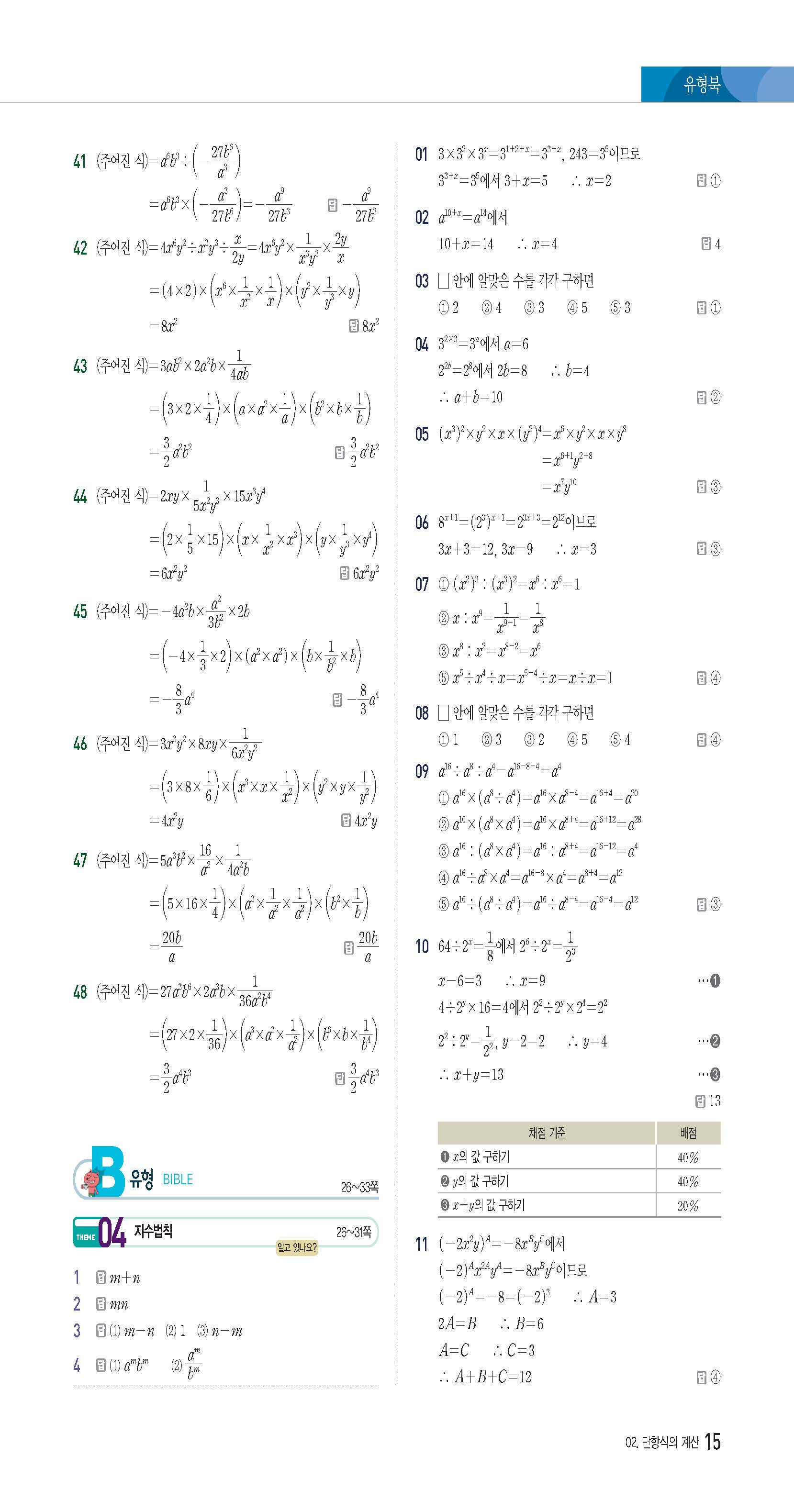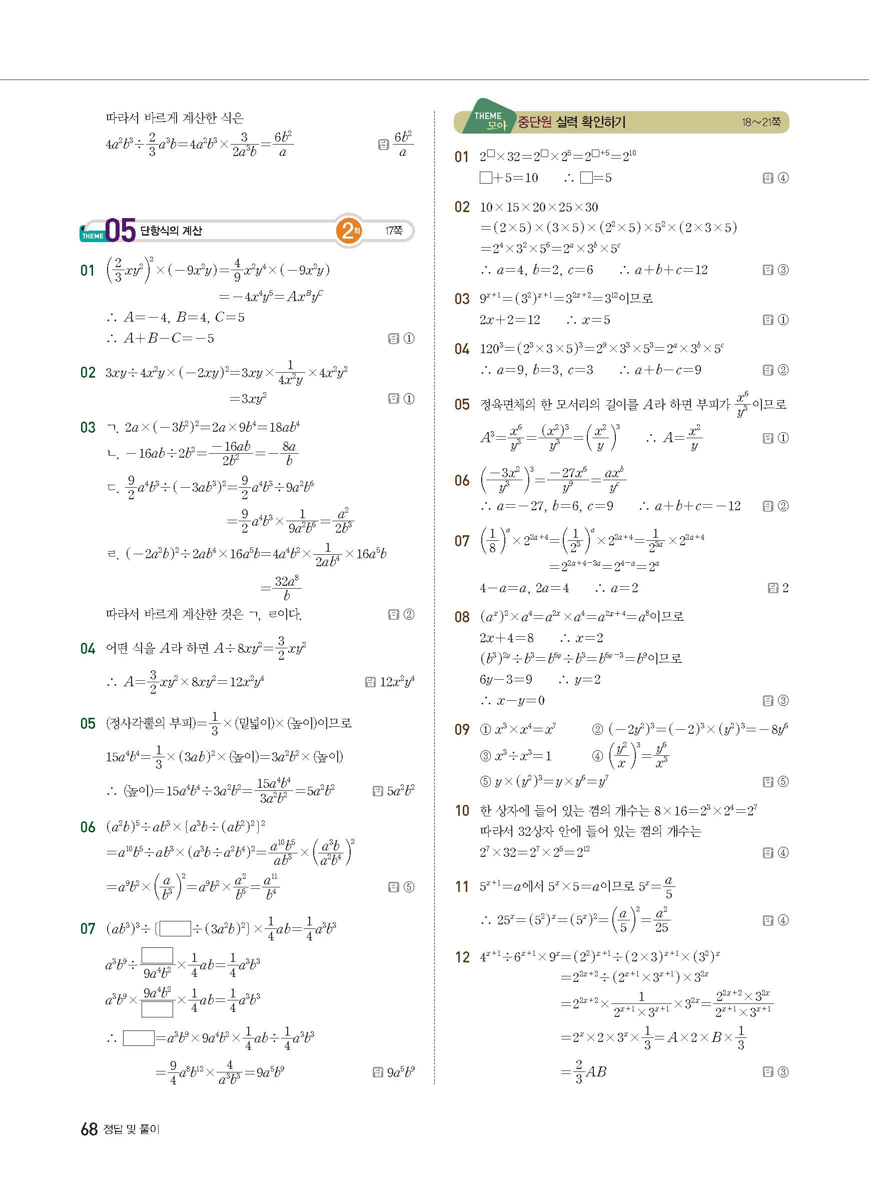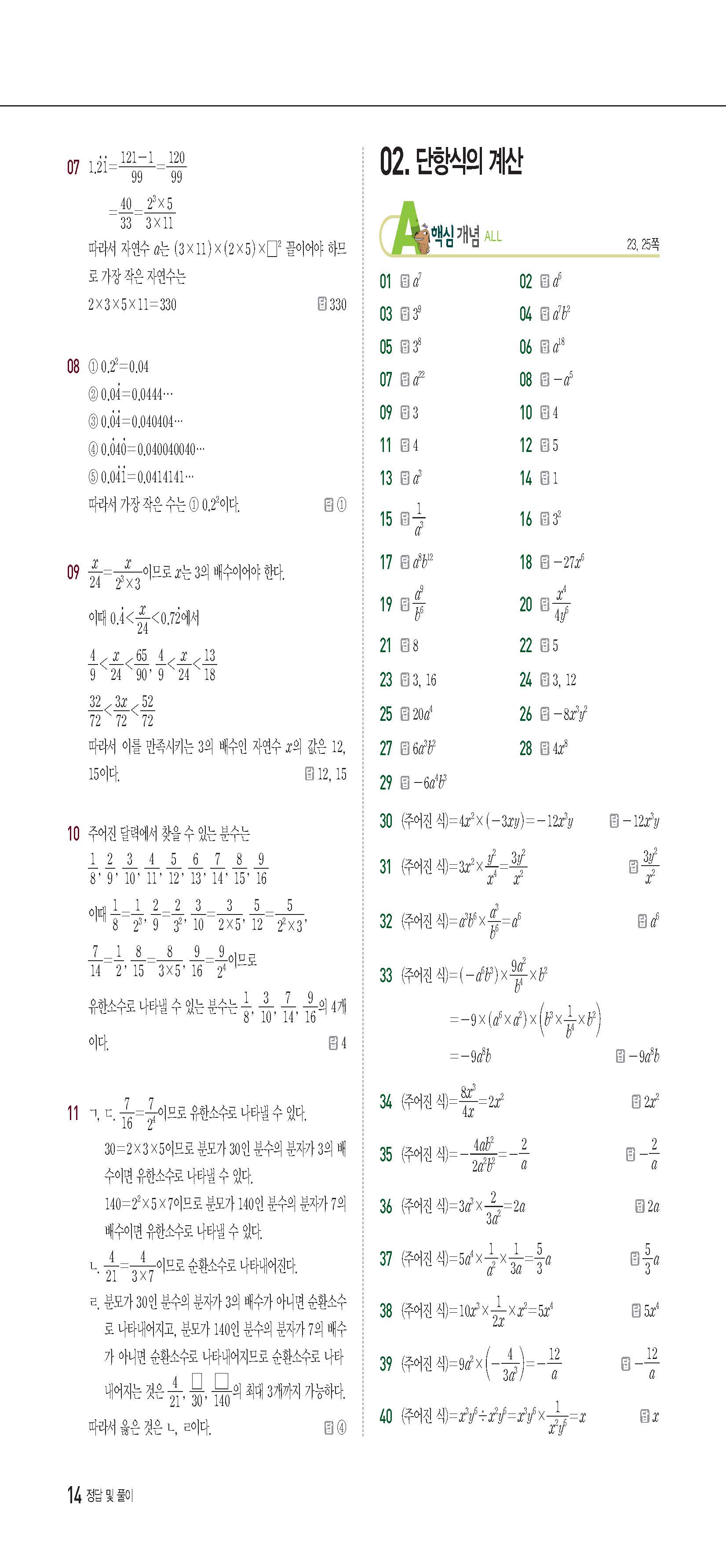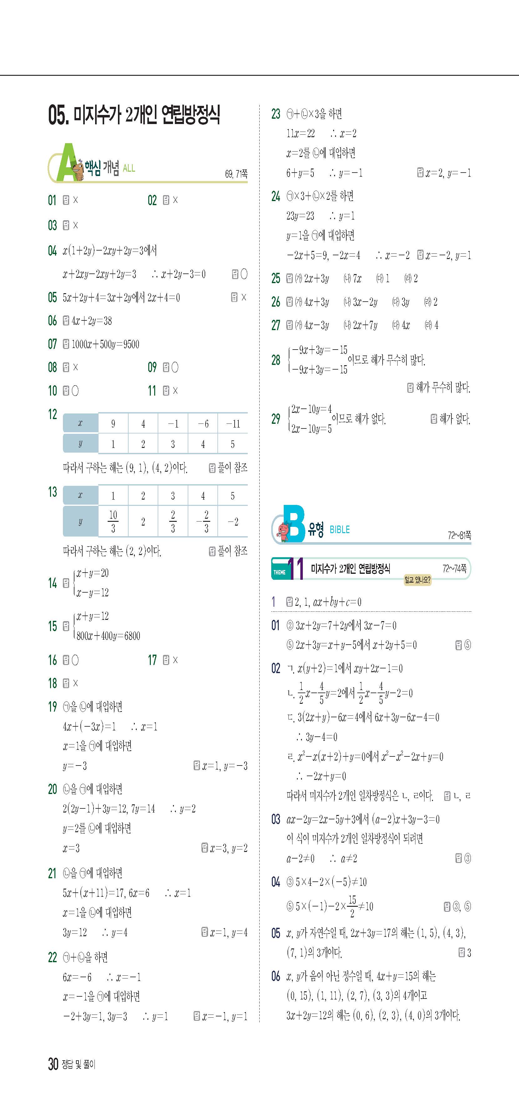 중등 빨리 강해지는 수학 중2상 2-1 답지 해설지 사진답지 빠른답지 모바일최적화
