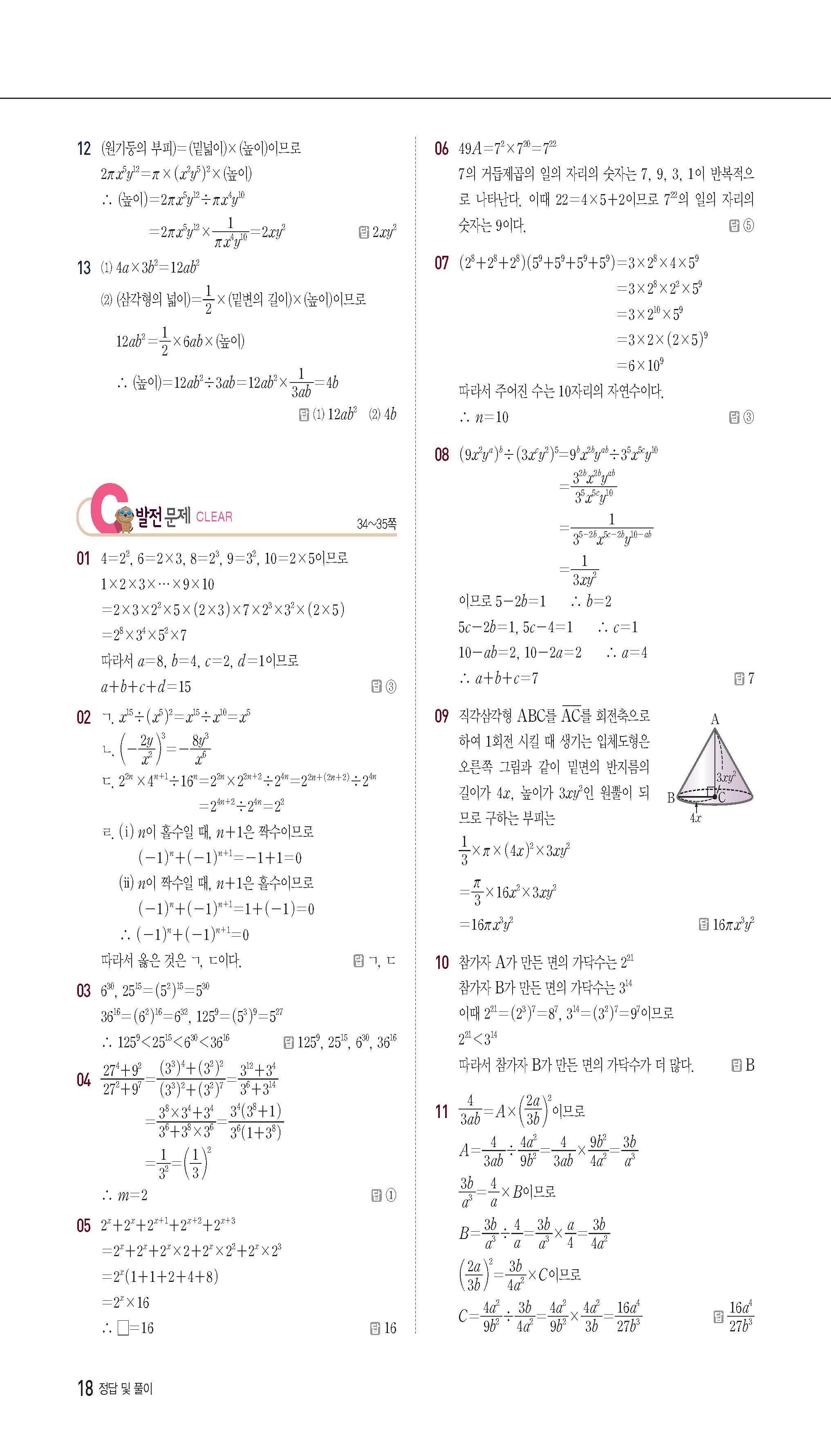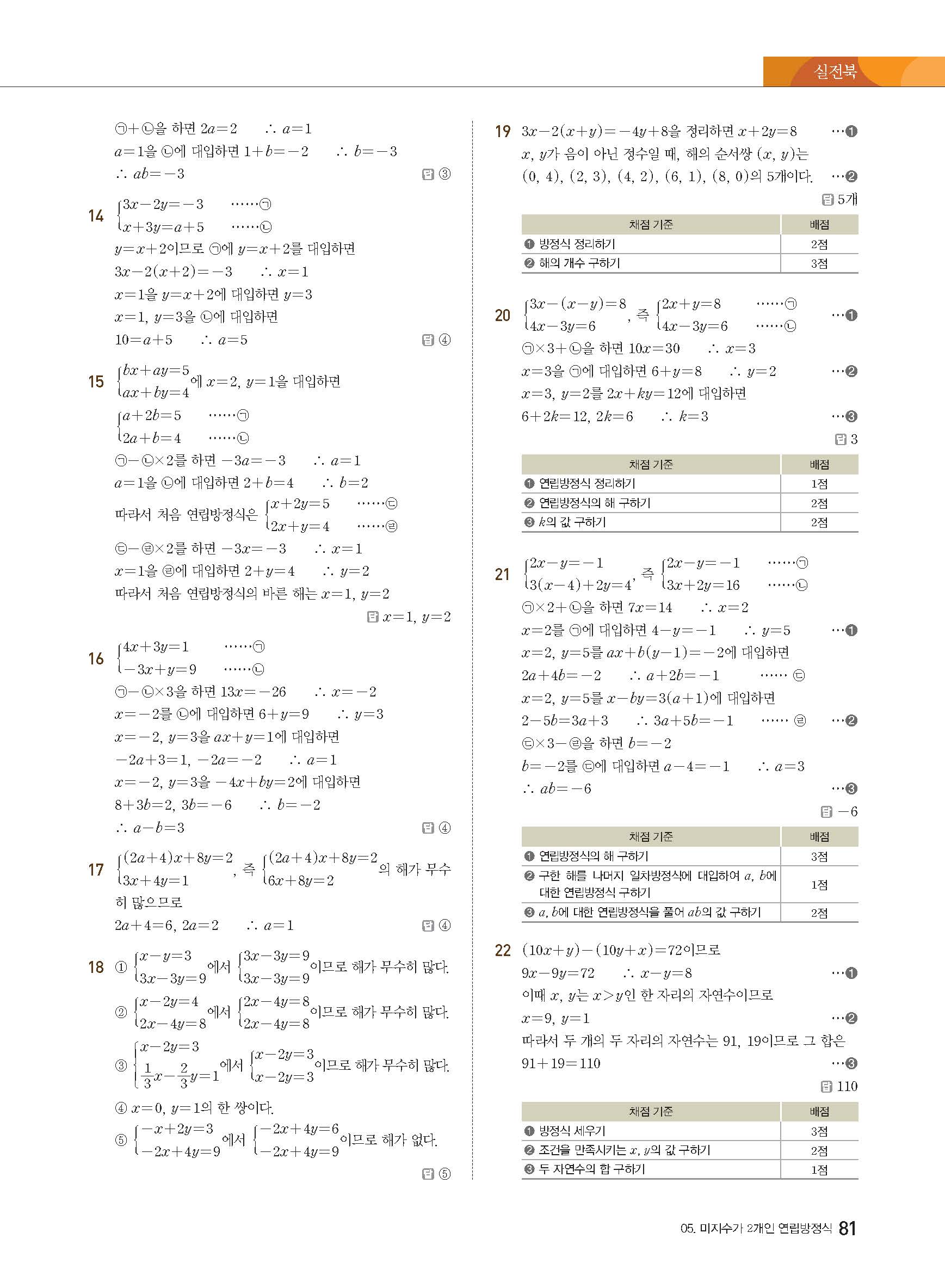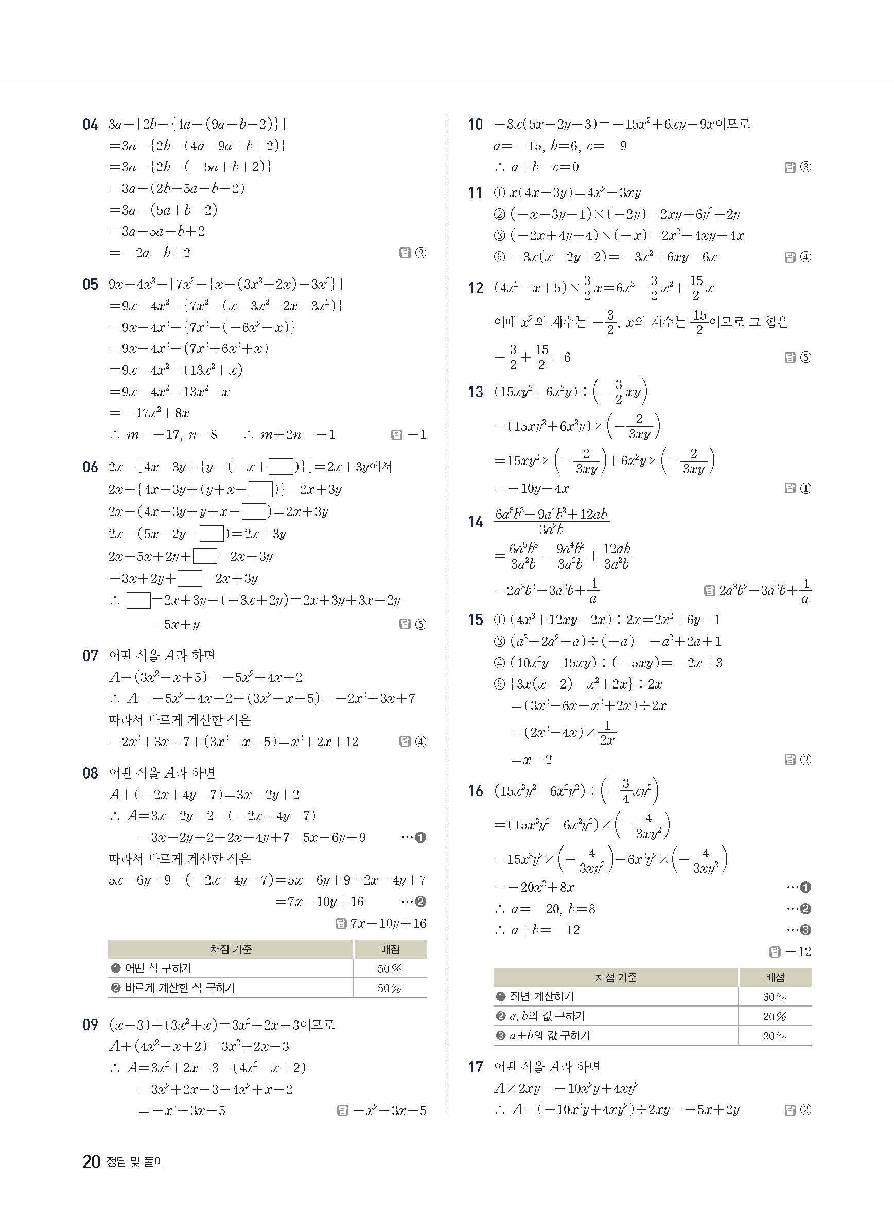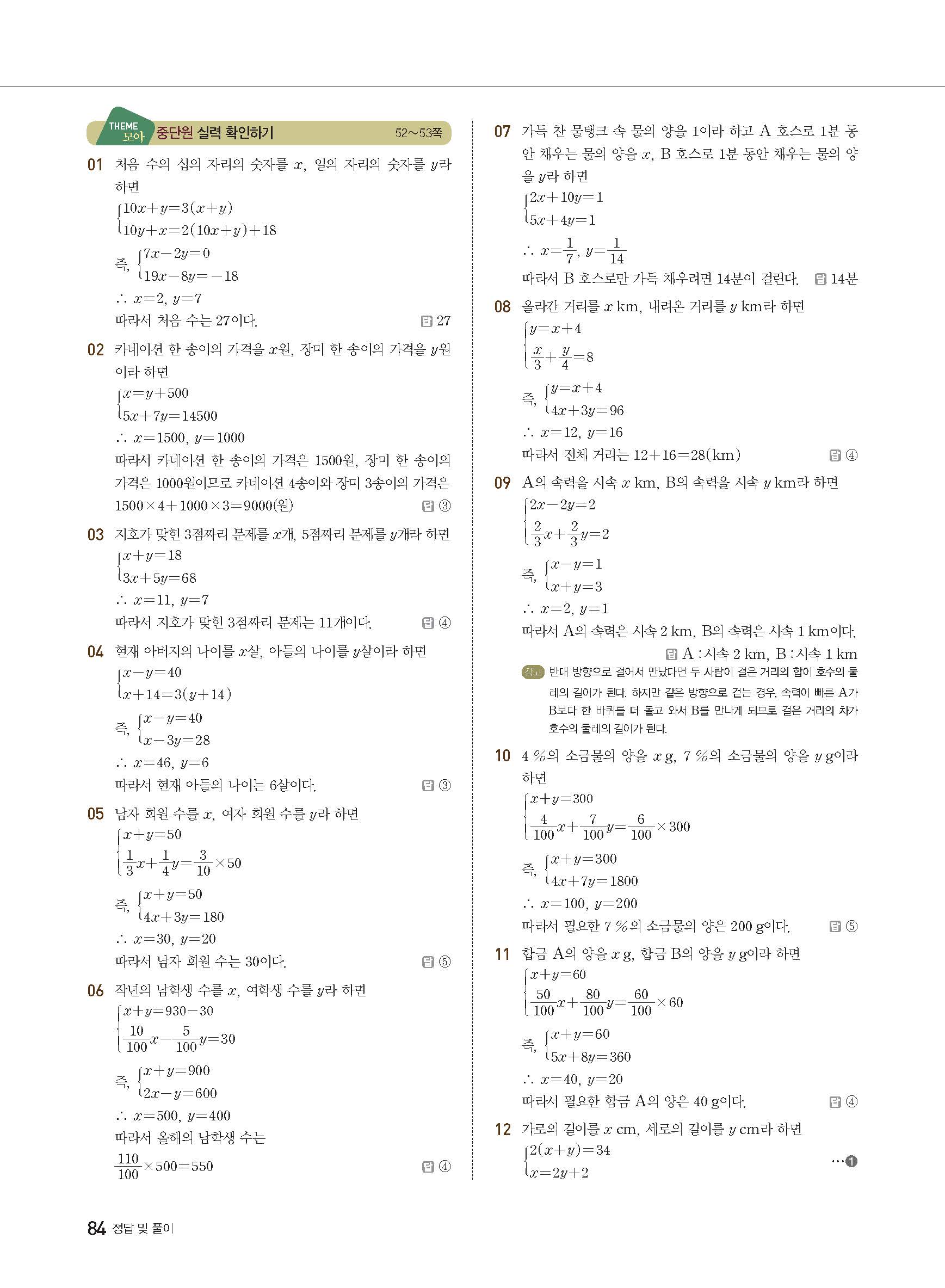 중등 빨리 강해지는 수학 중2상 2-1 답지 해설지 사진답지 빠른답지 모바일최적화