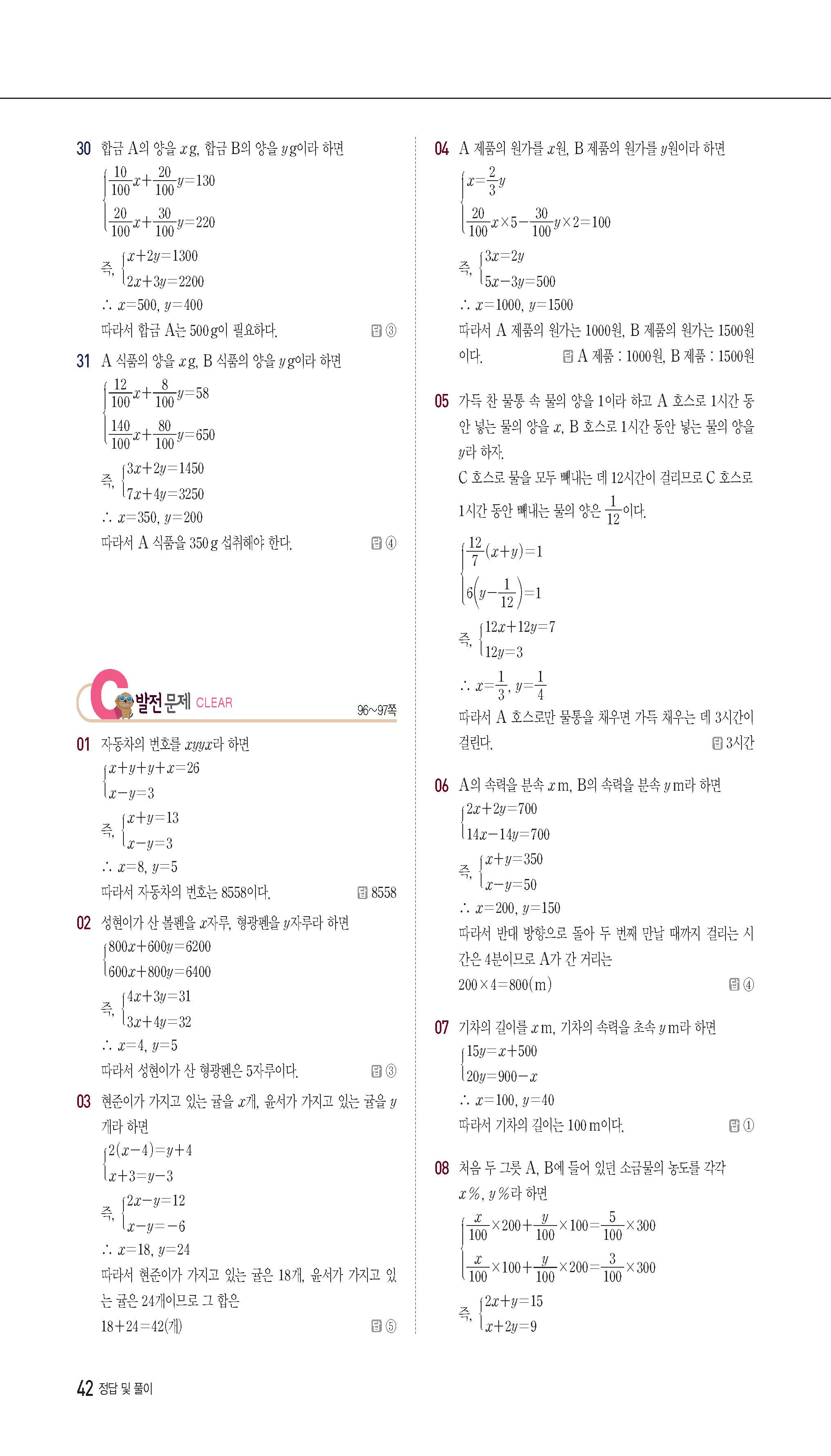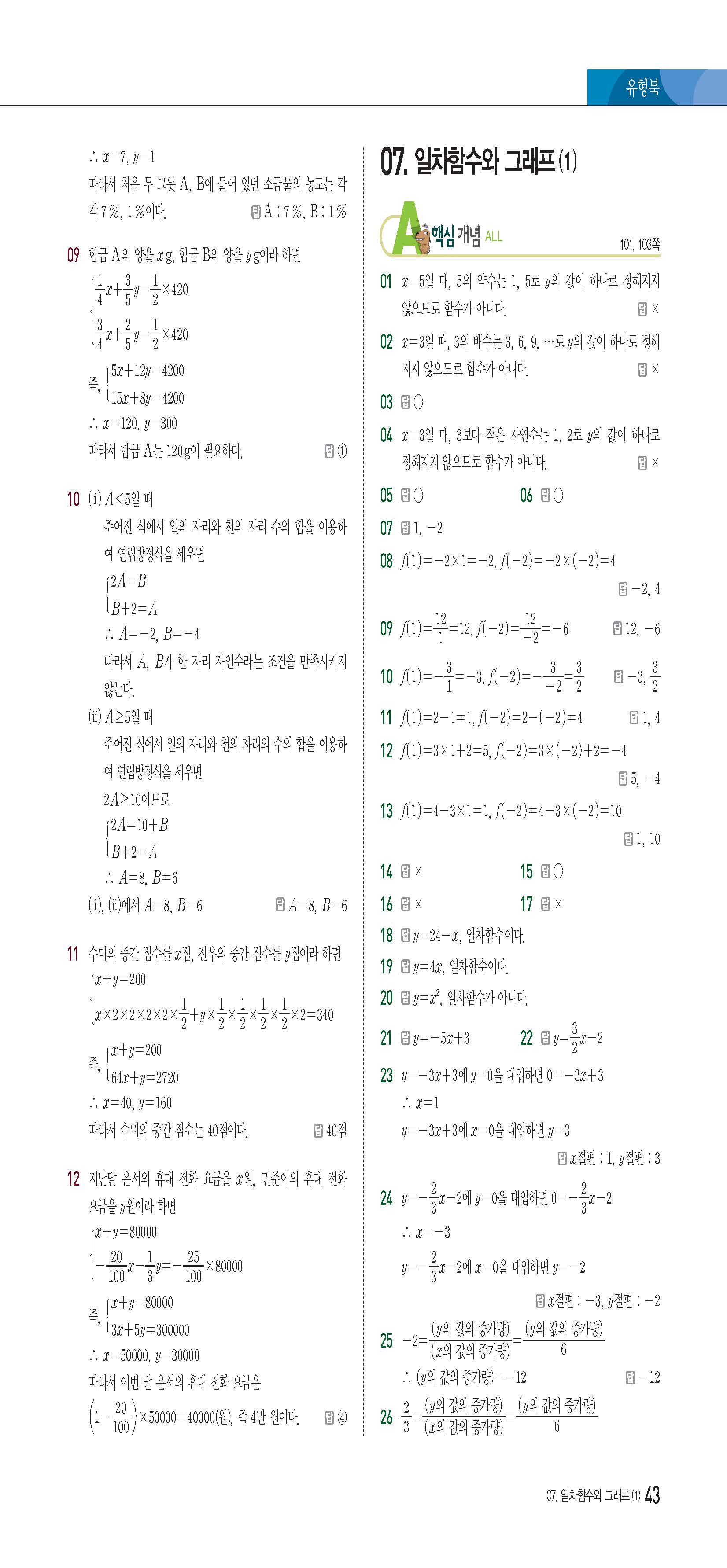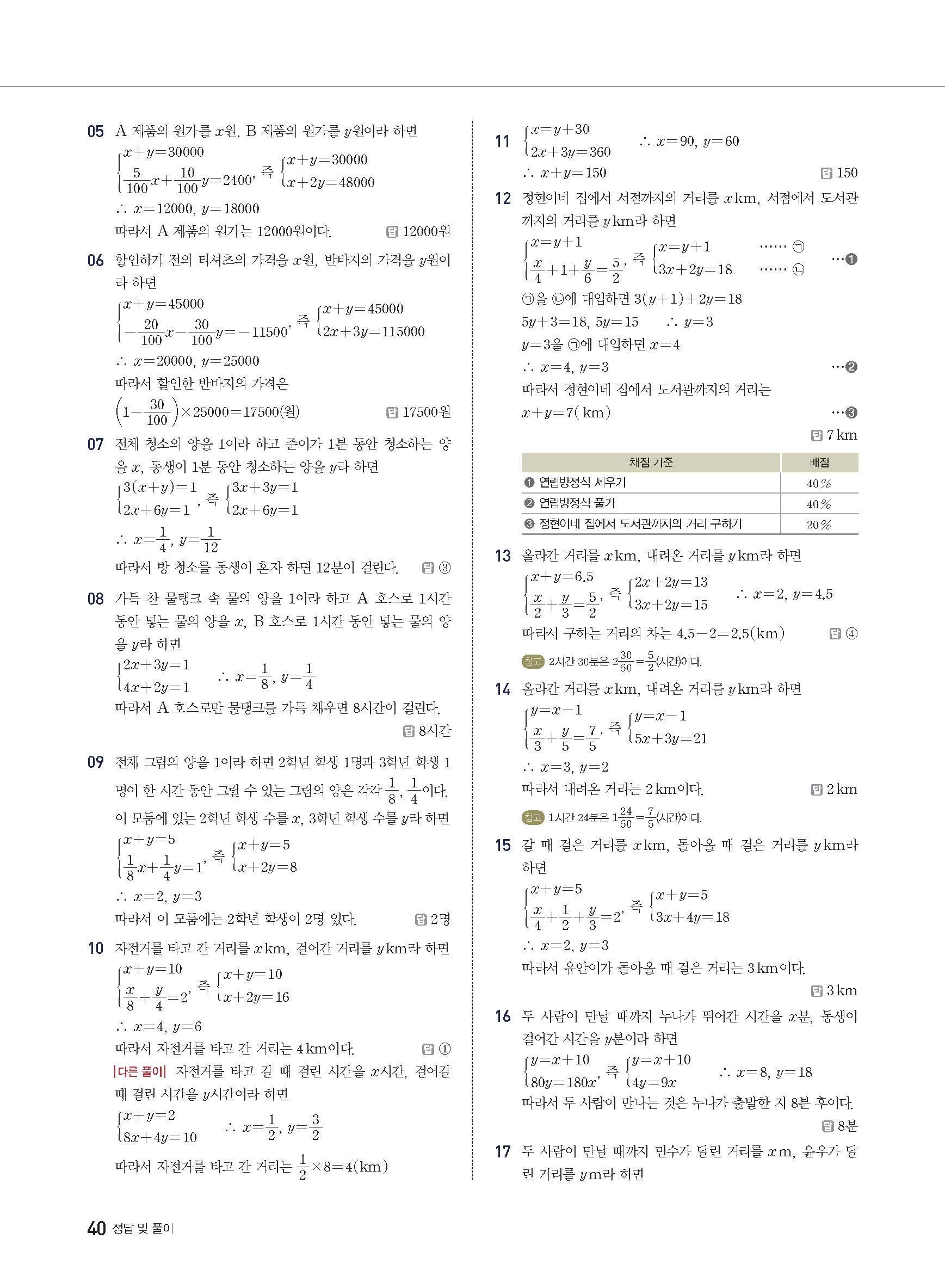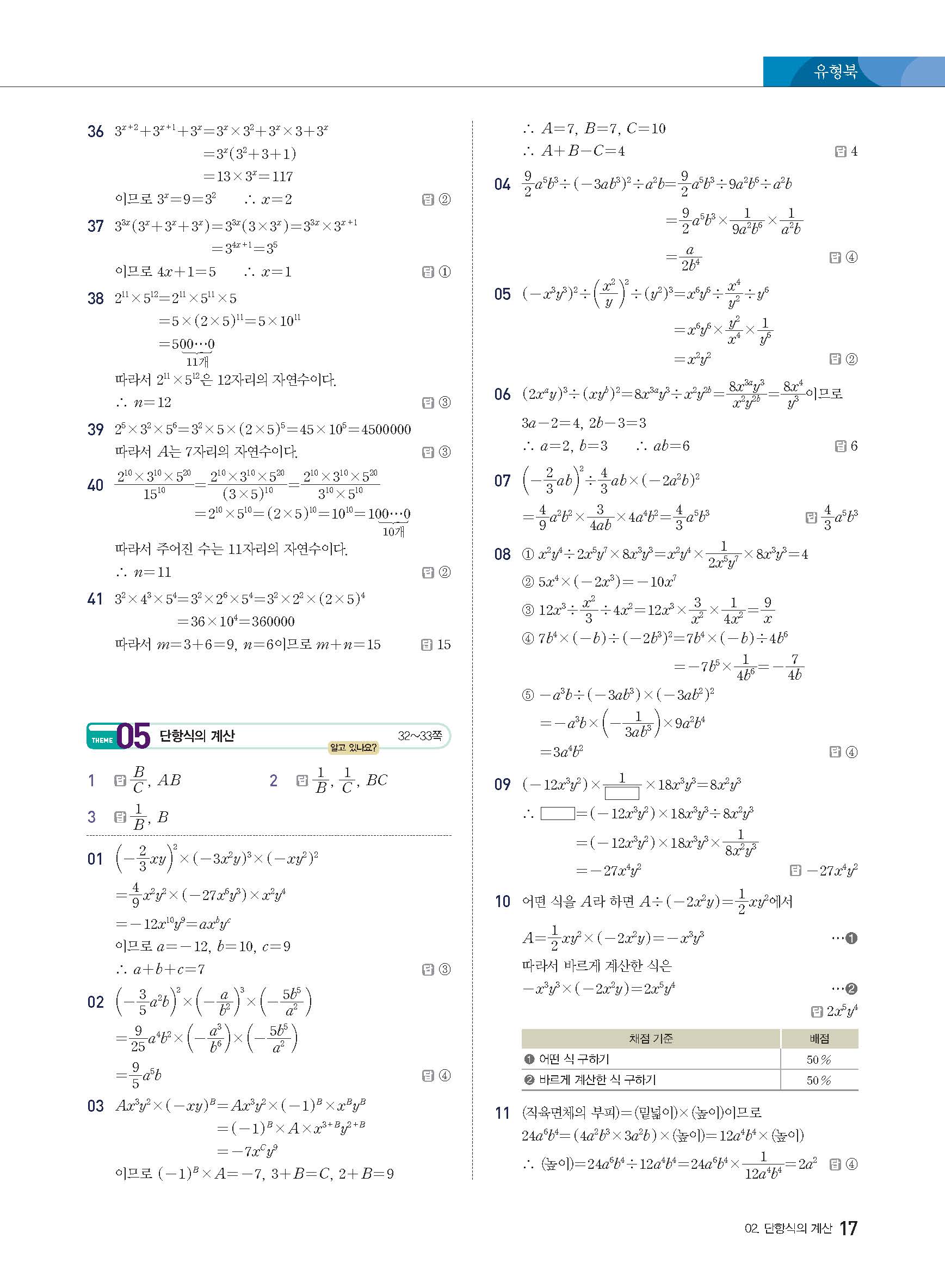 중등 빨리 강해지는 수학 중2상 2-1 답지 해설지 사진답지 빠른답지 모바일최적화