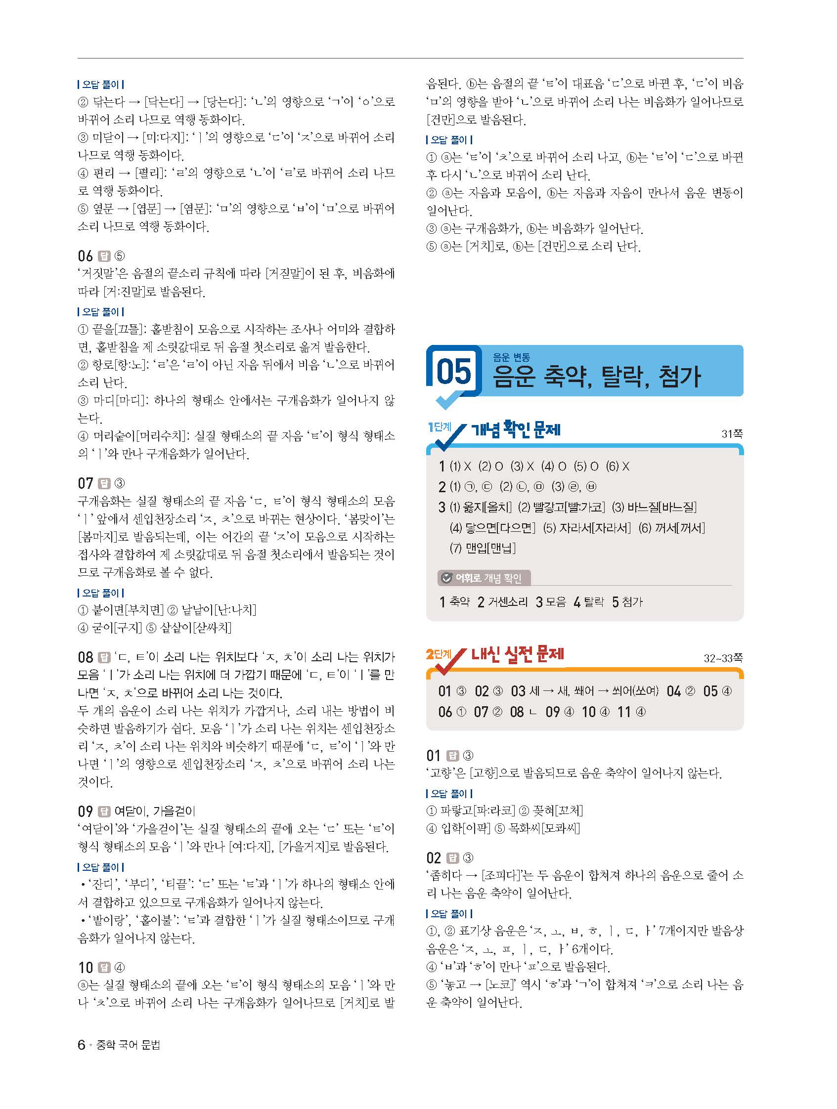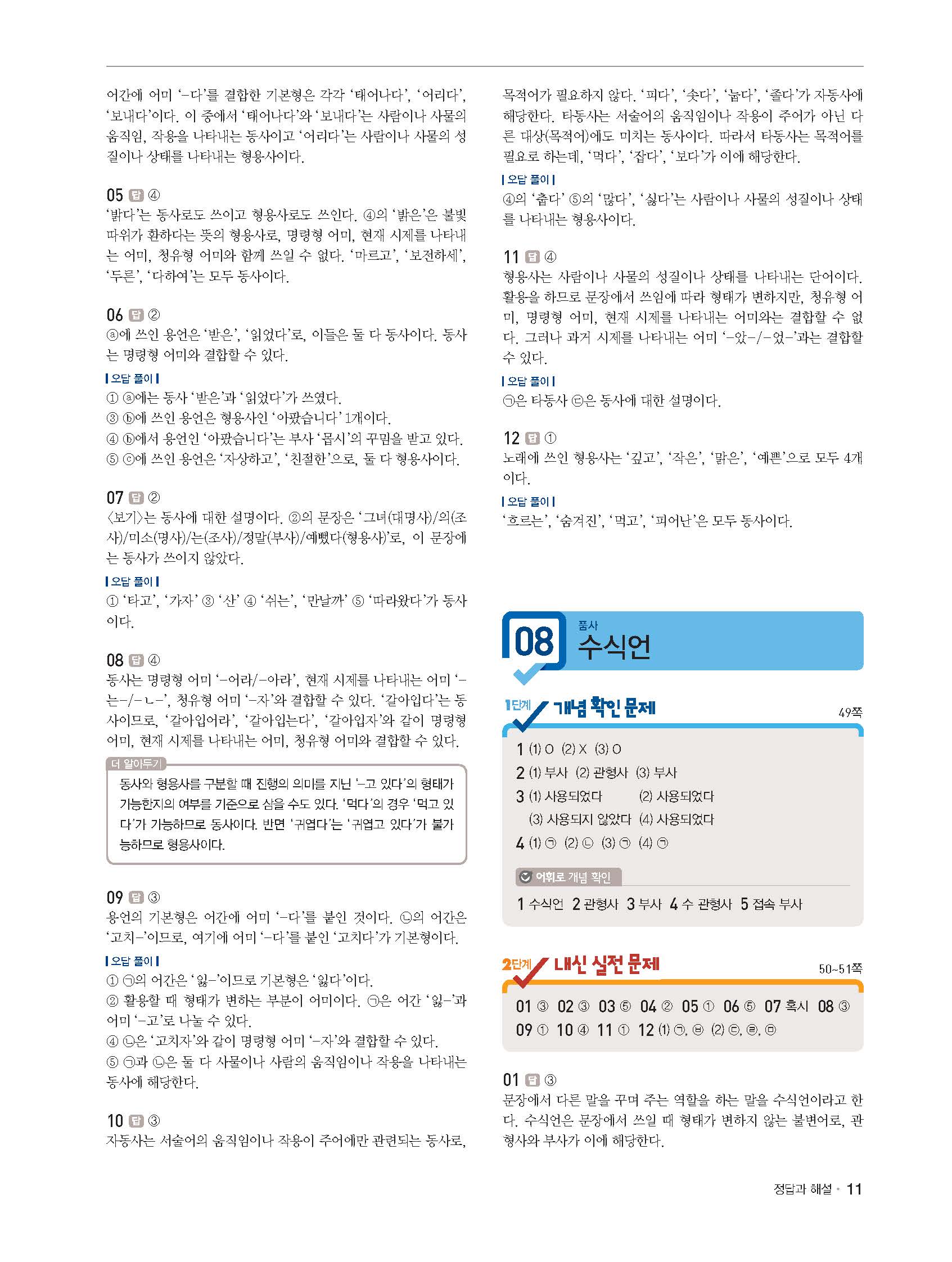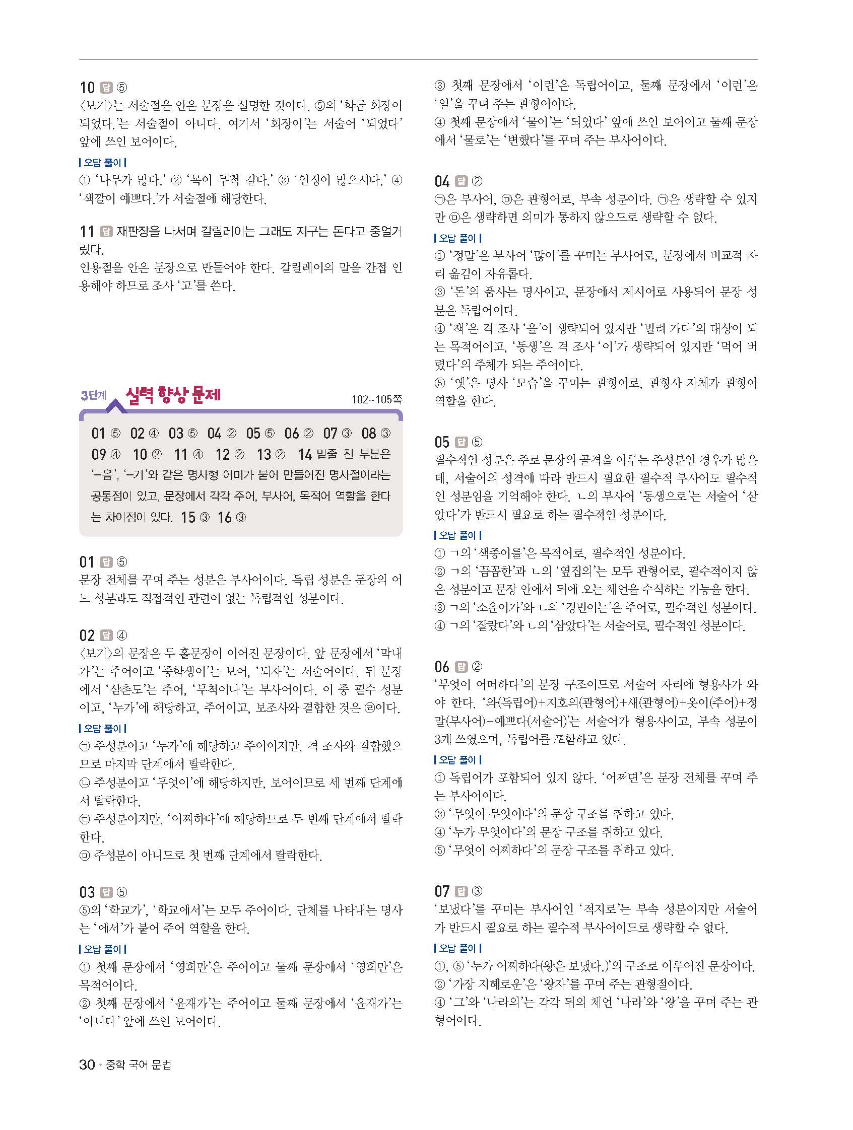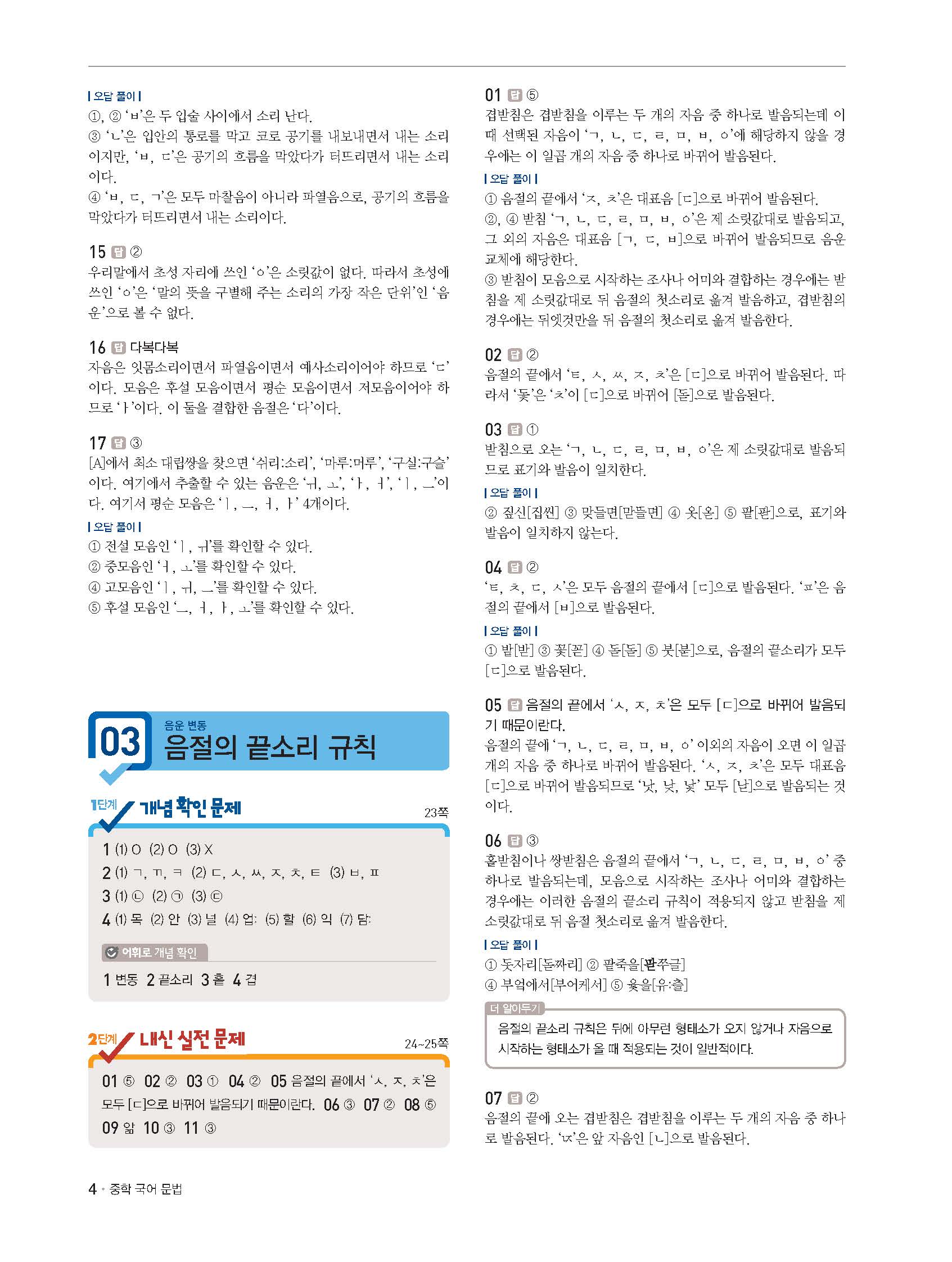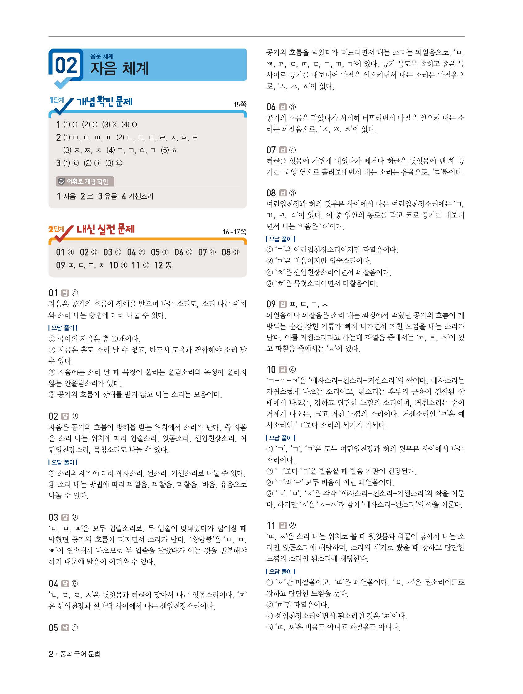 빠작 중등국어 문법 답지 해설지 사진답지 빠른답지 모바일최적화