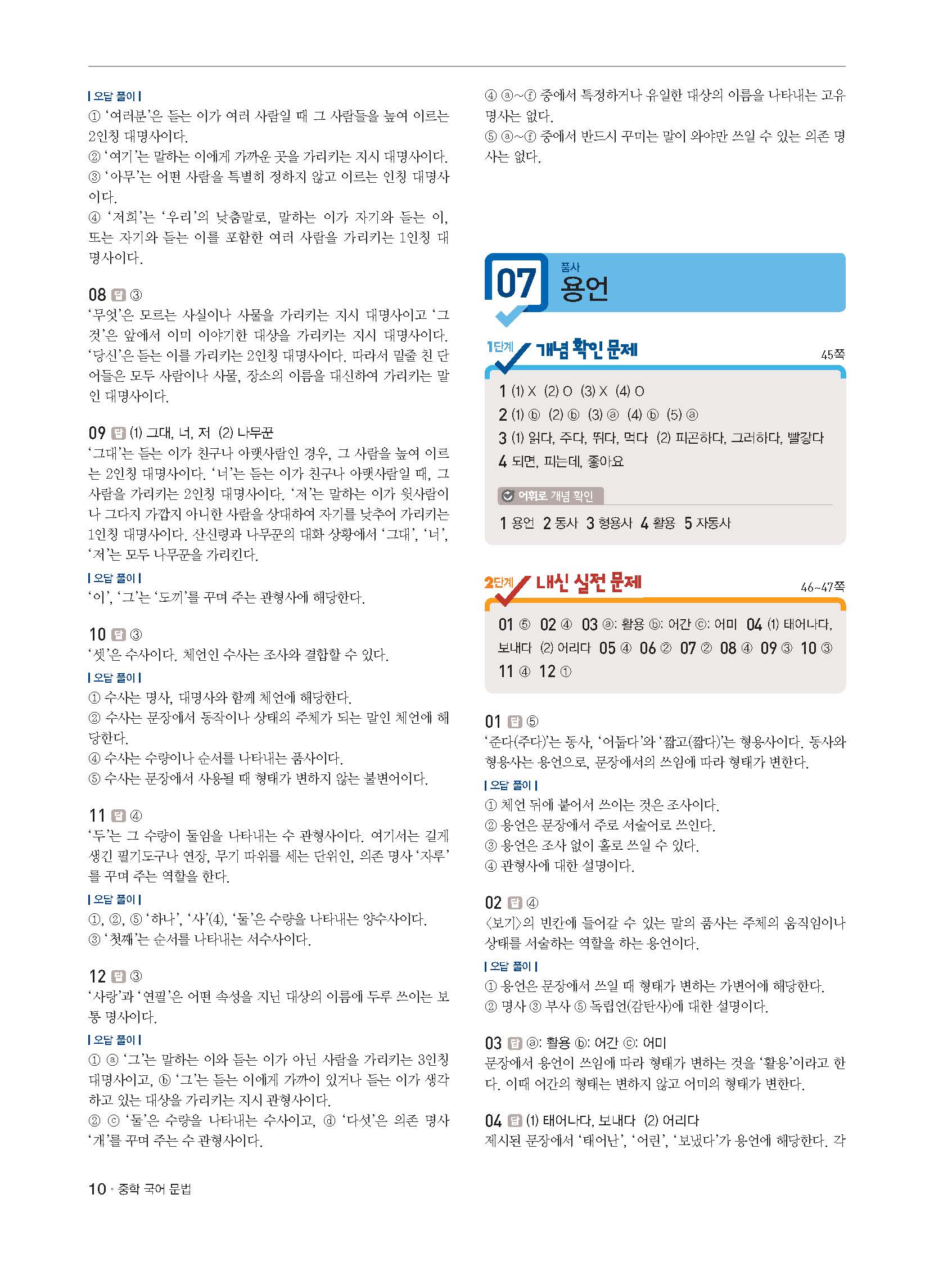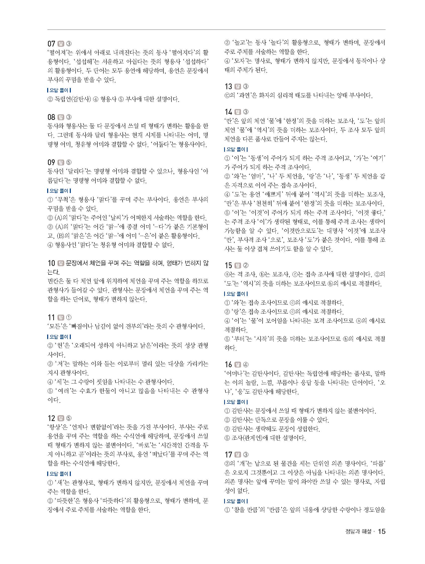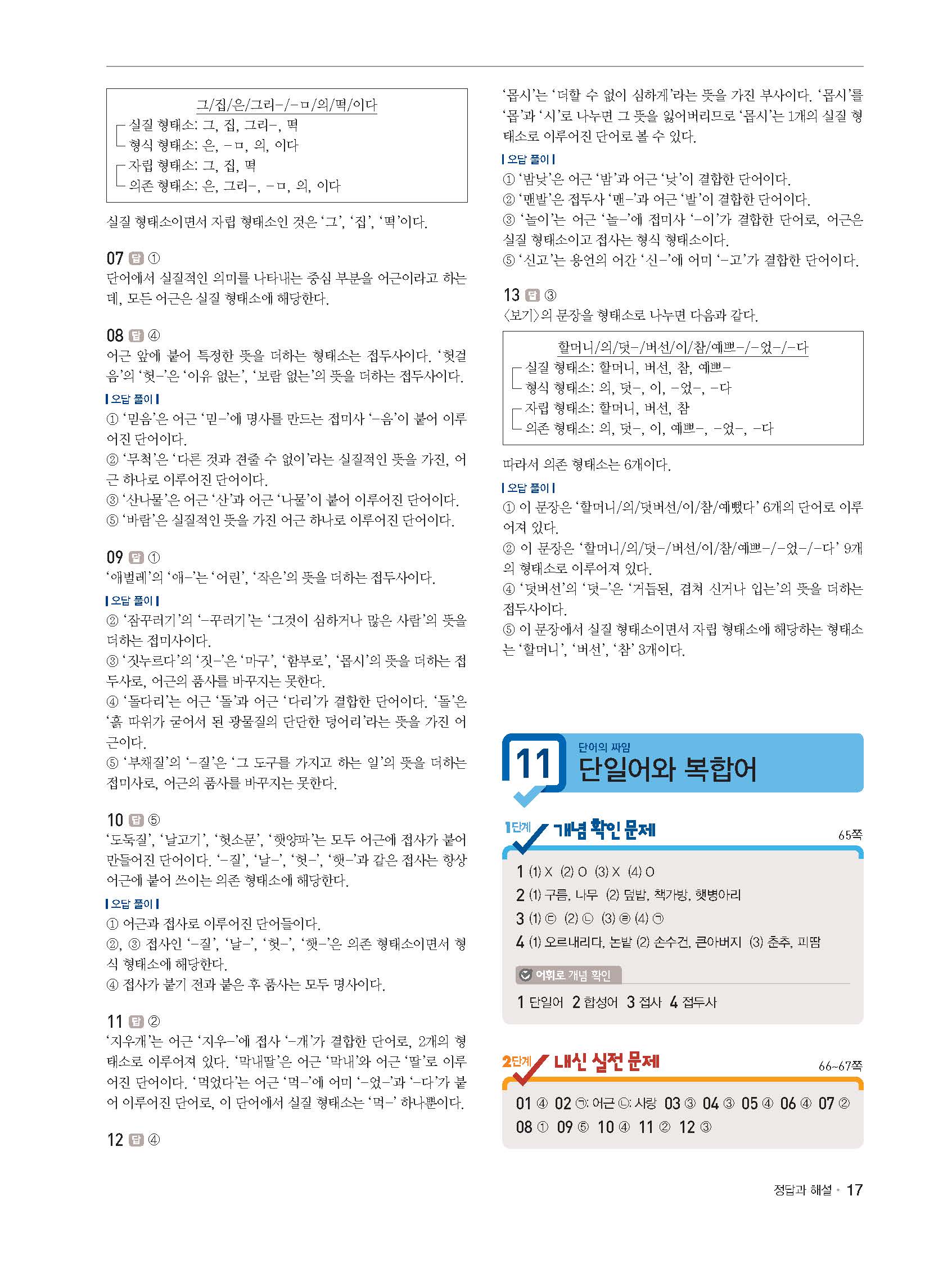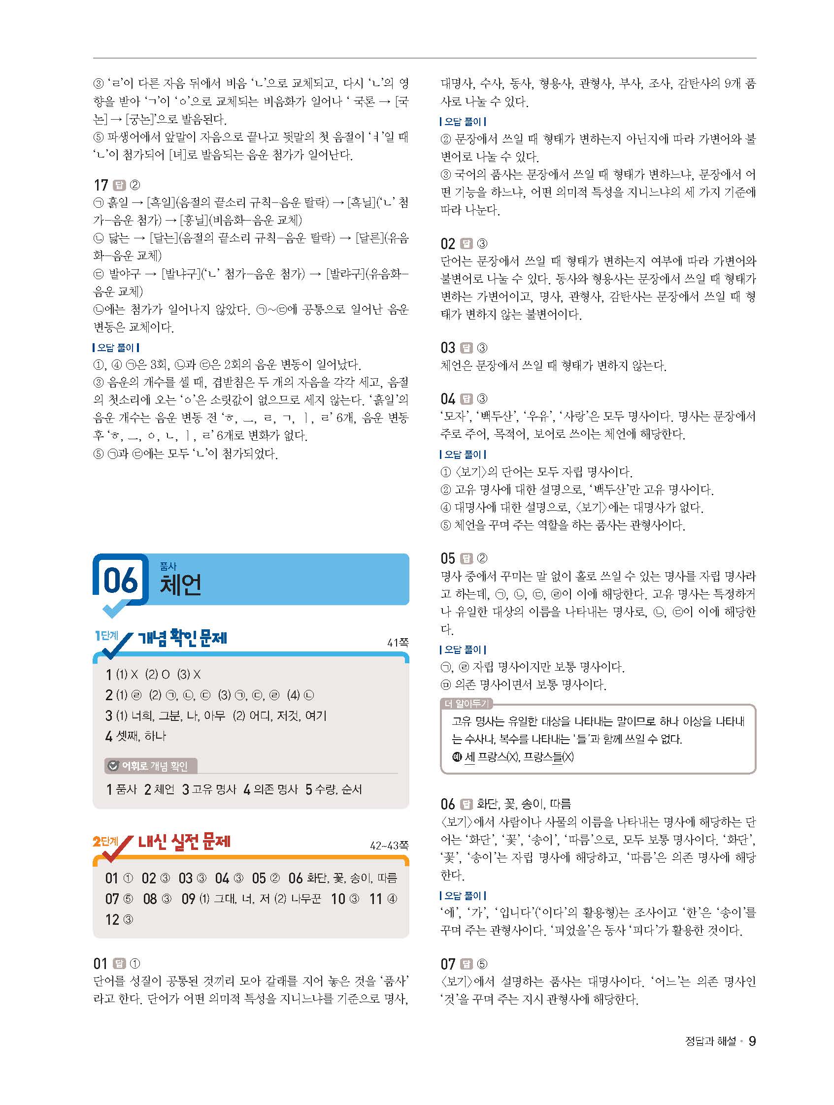 빠작 중등국어 문법 답지 해설지 사진답지 빠른답지 모바일최적화