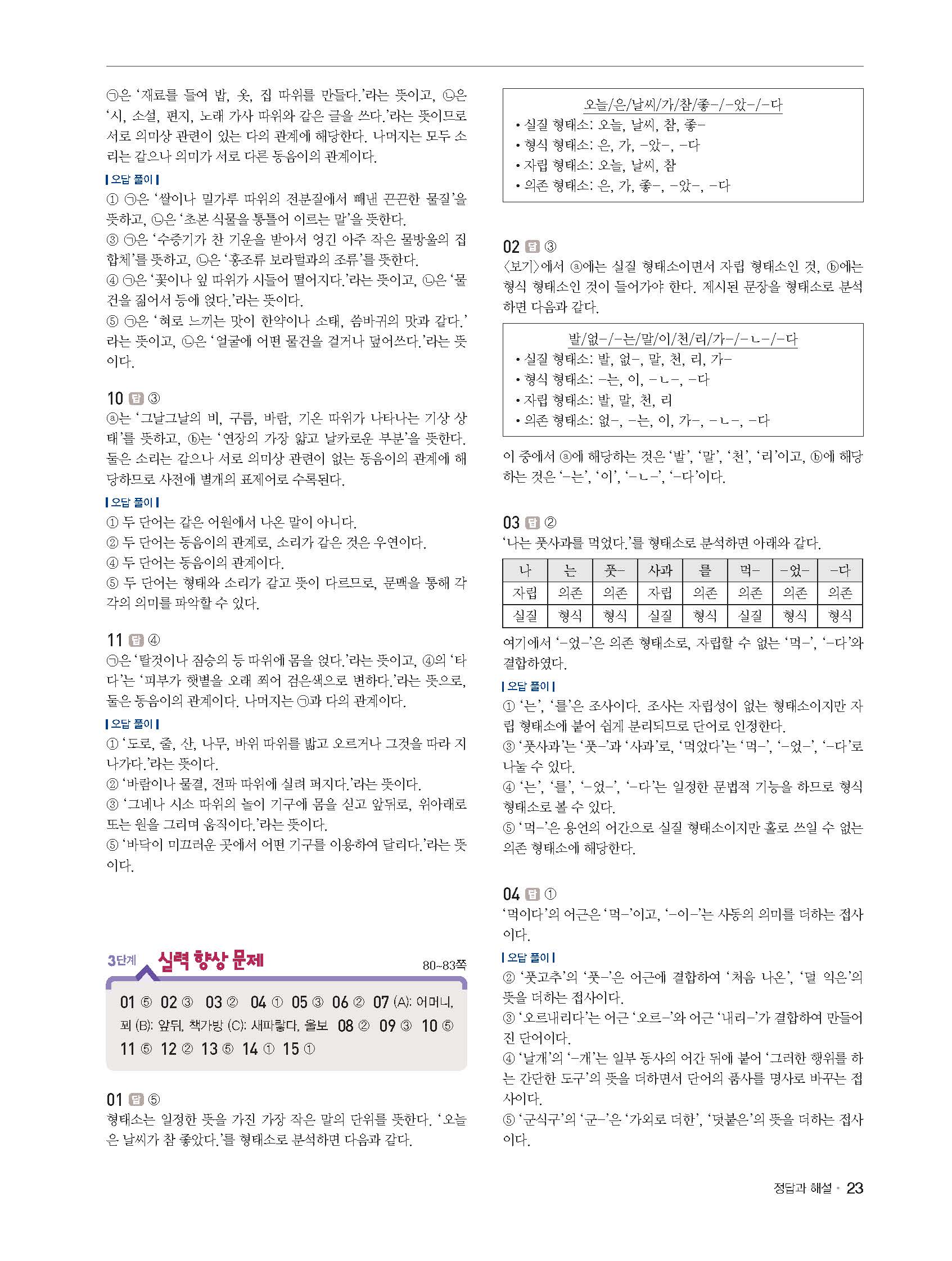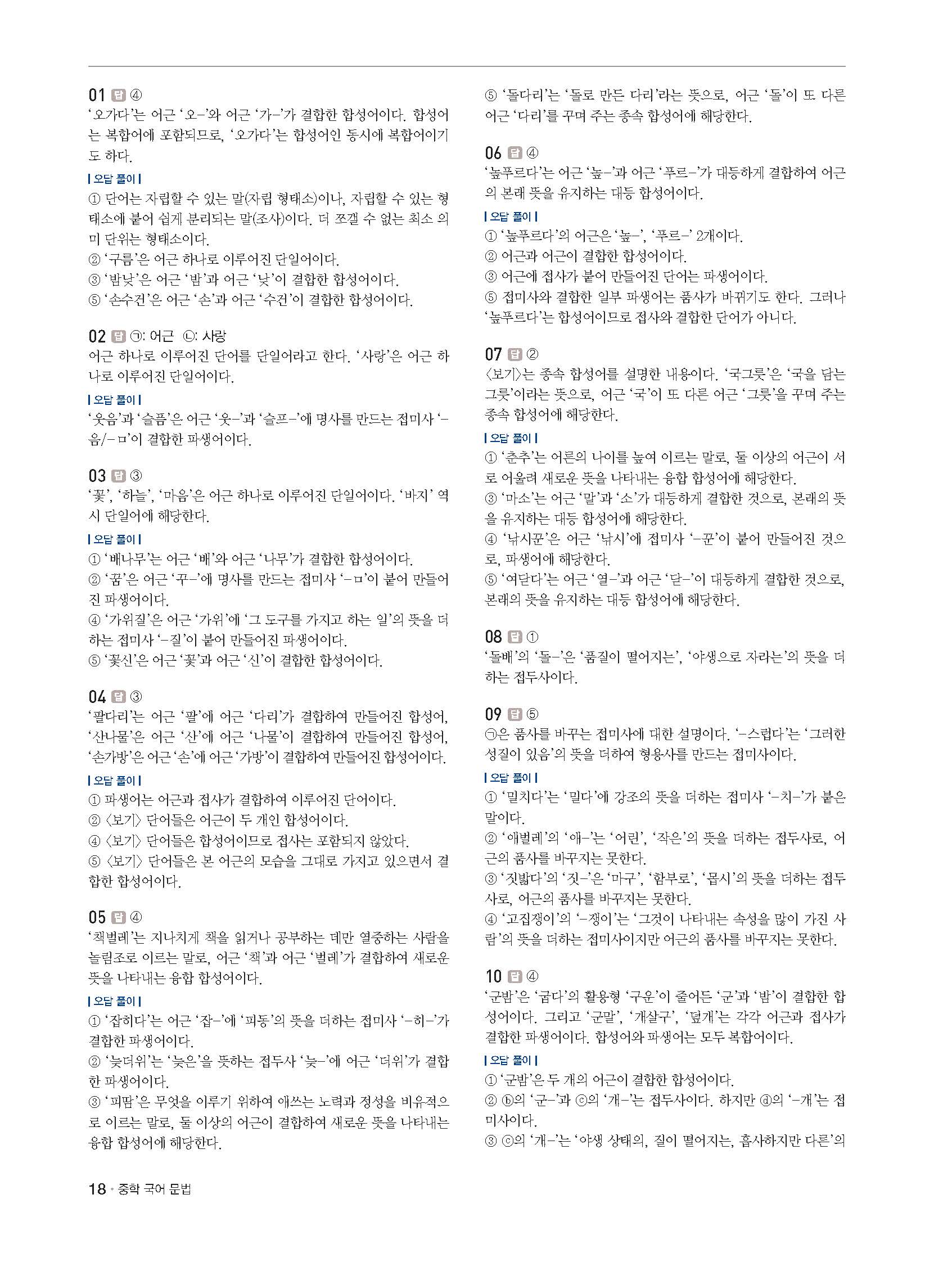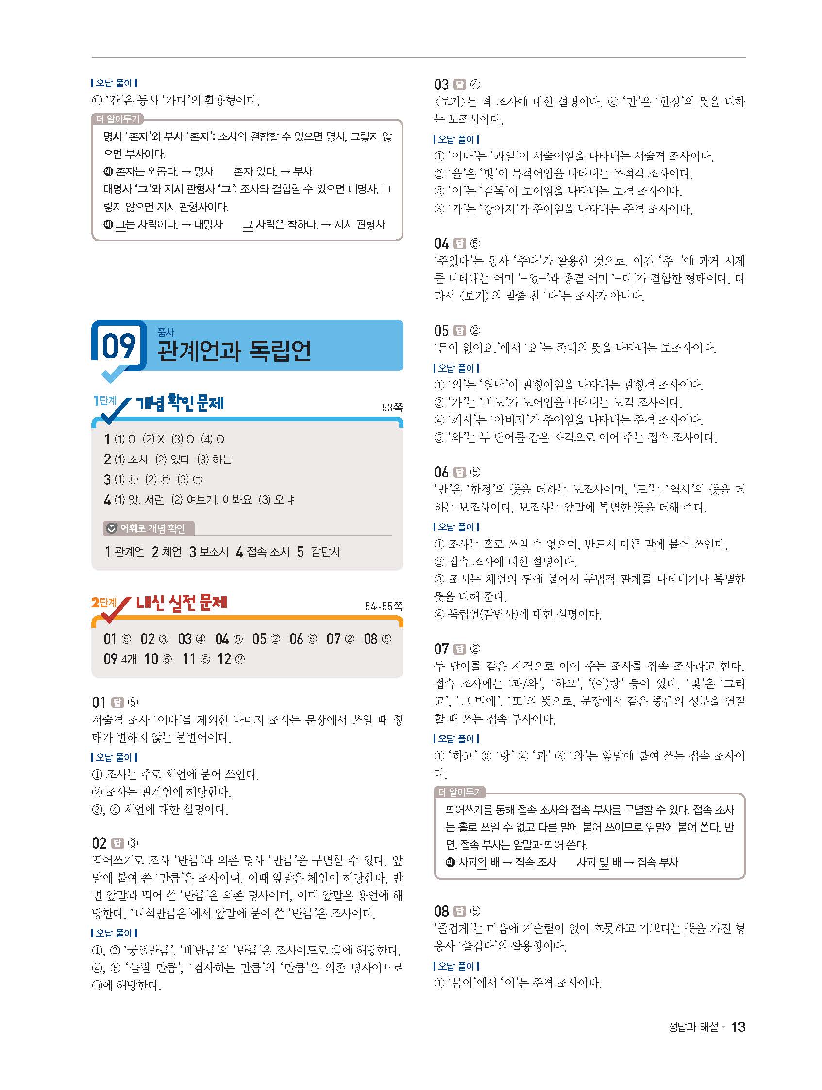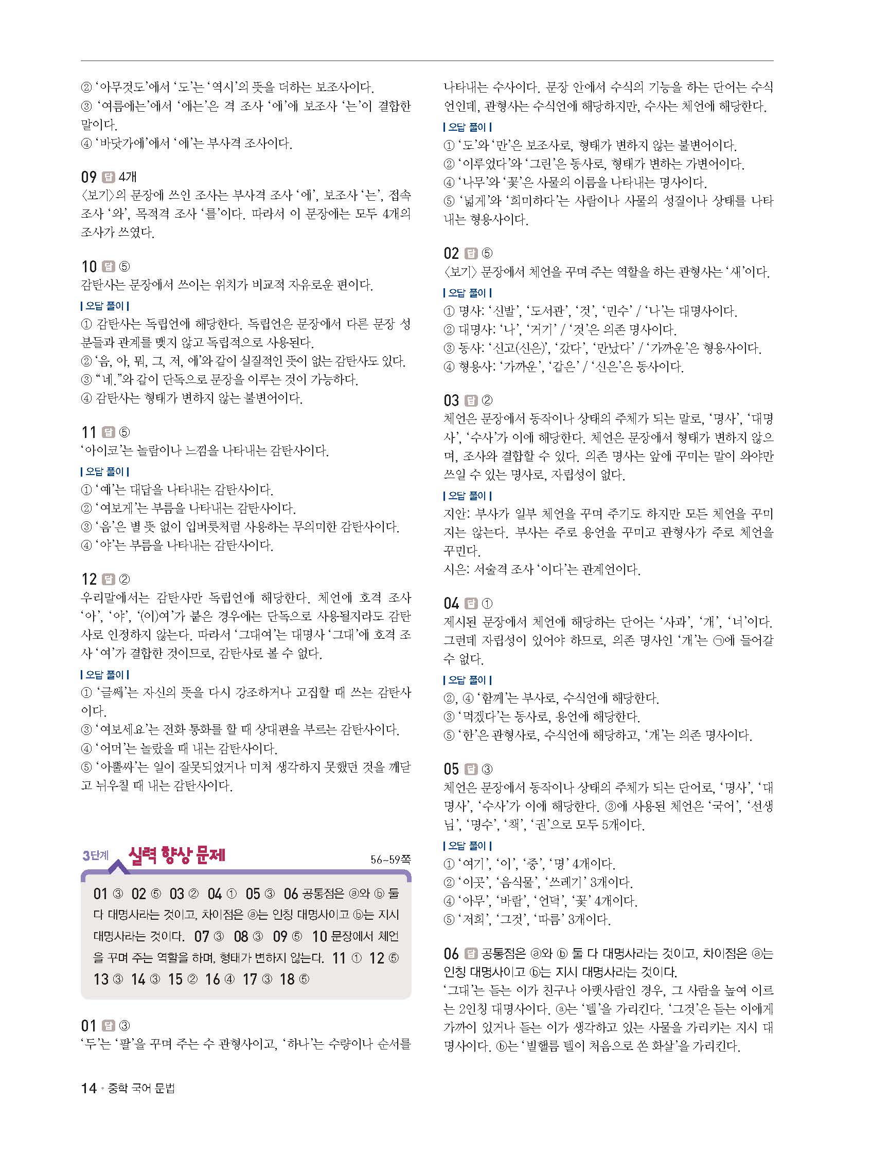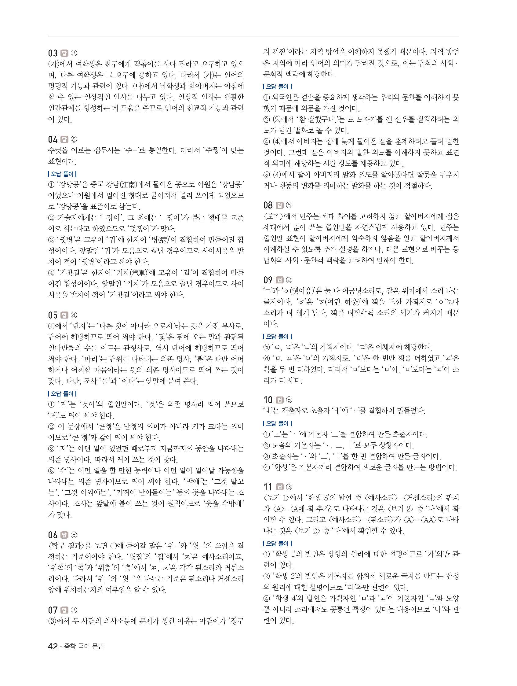 빠작 중등국어 문법 답지 해설지 사진답지 빠른답지 모바일최적화