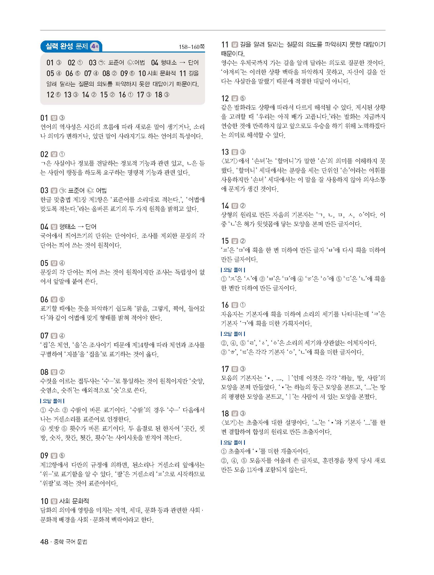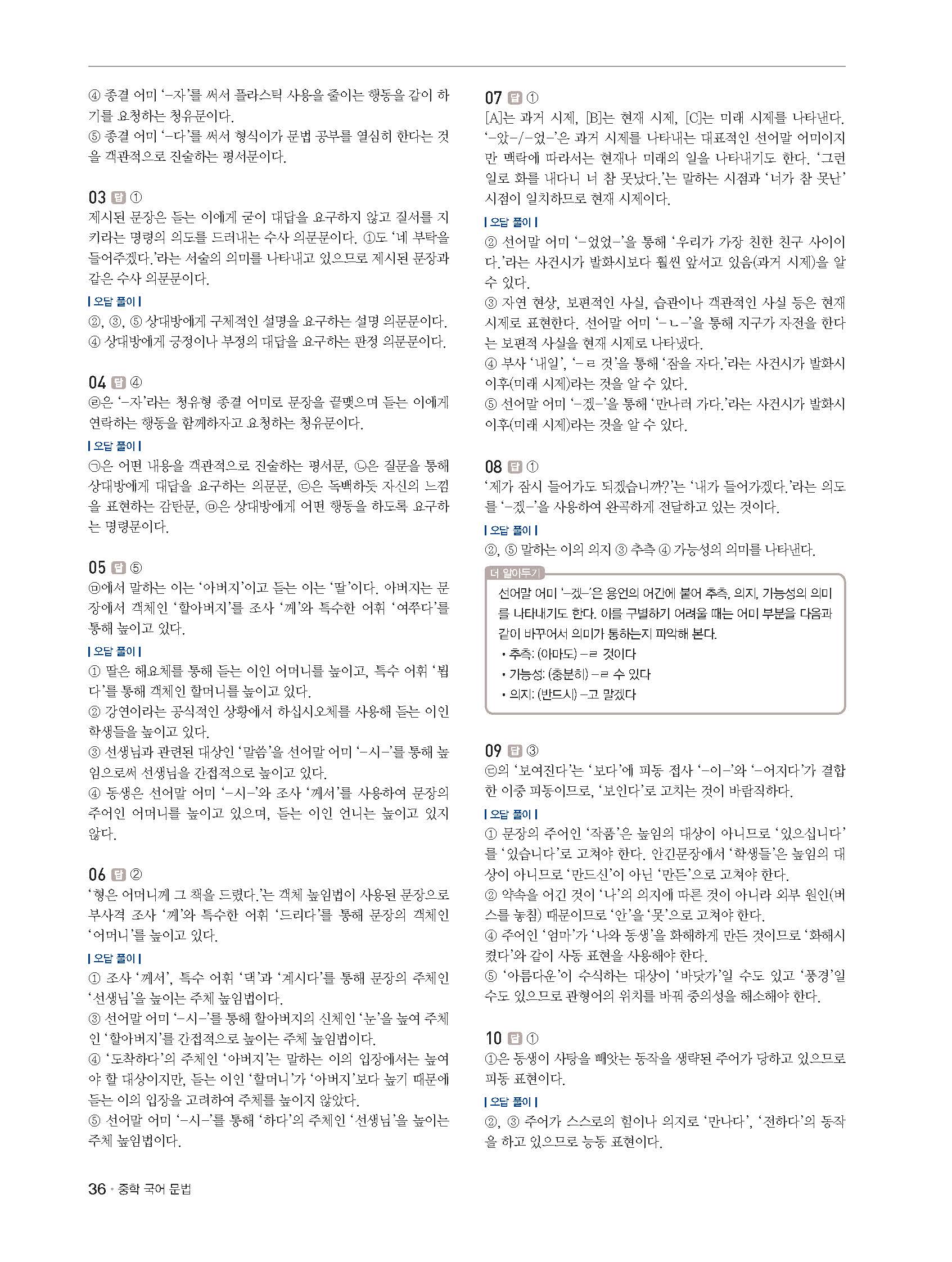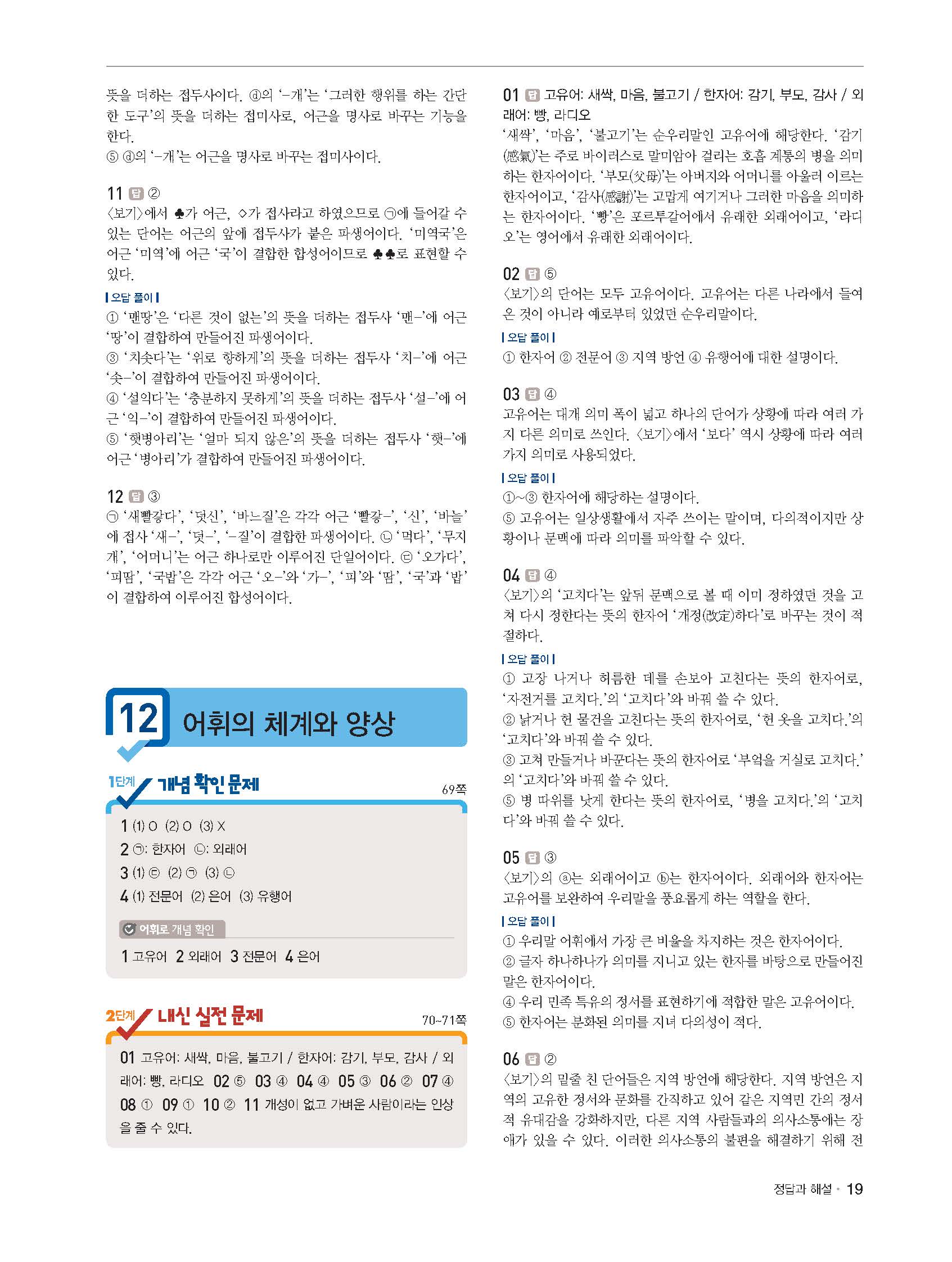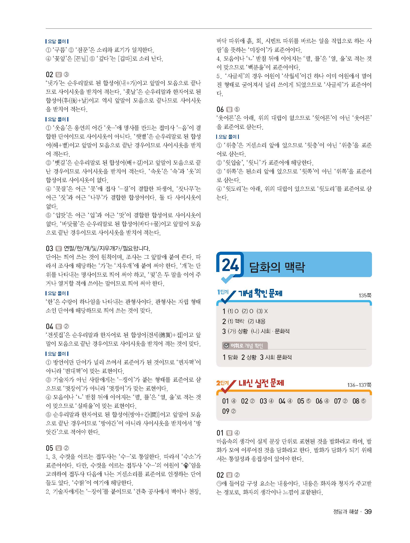 빠작 중등국어 문법 답지 해설지 사진답지 빠른답지 모바일최적화