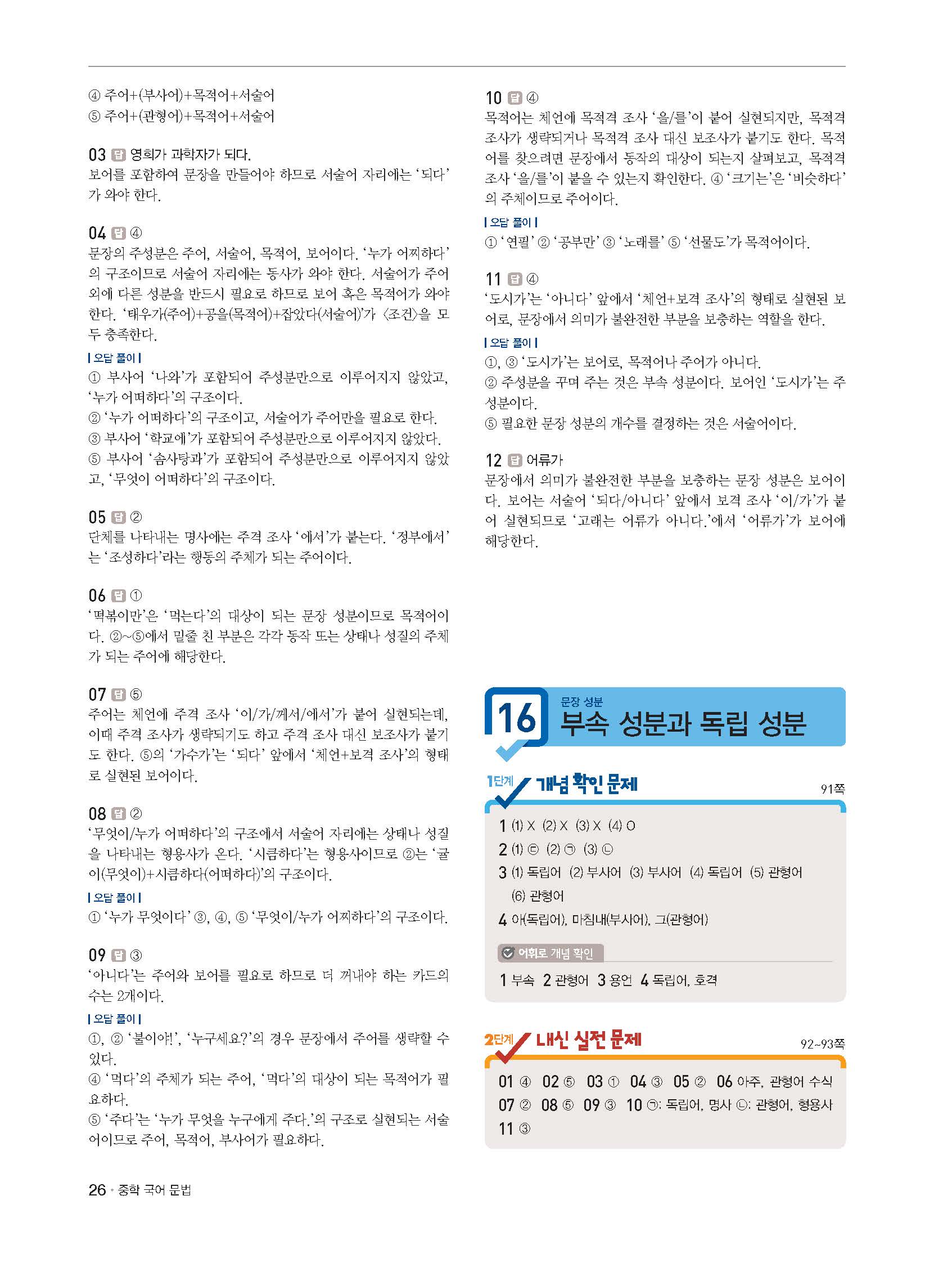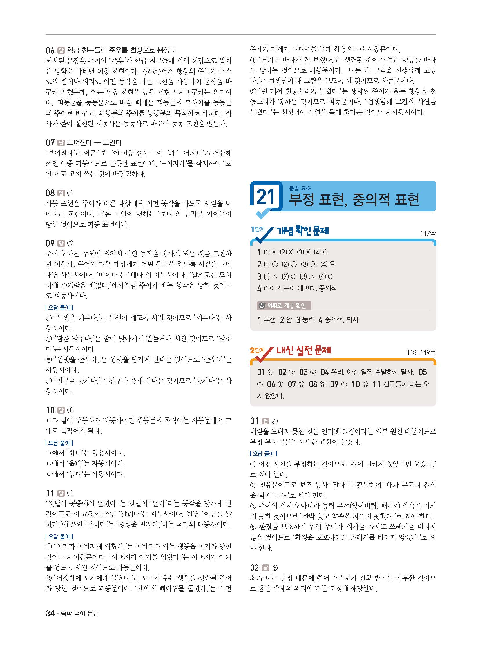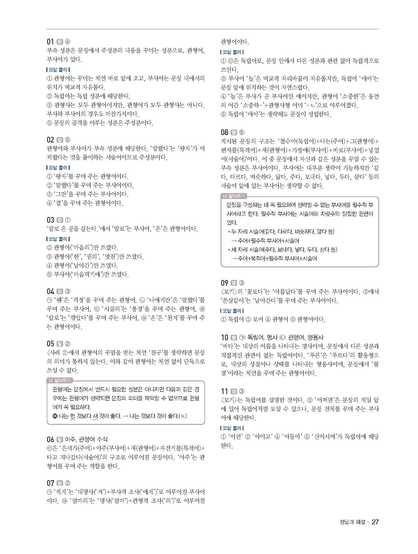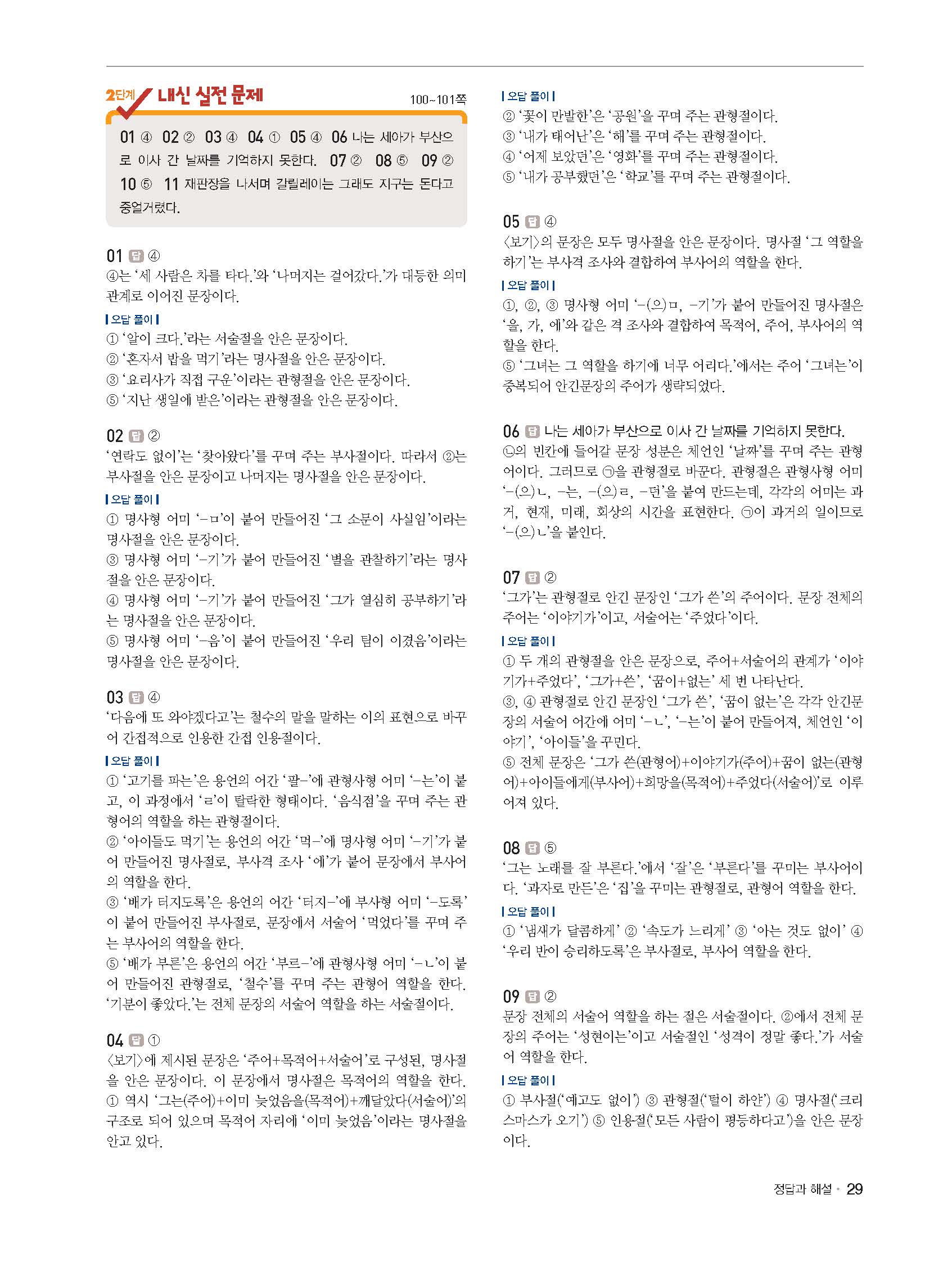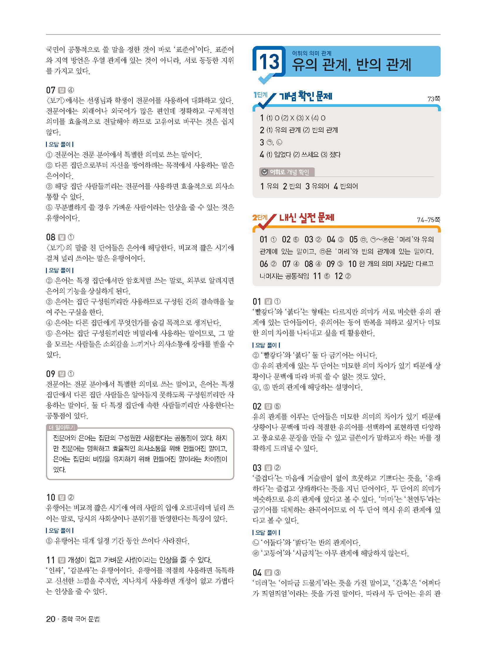 빠작 중등국어 문법 답지 해설지 사진답지 빠른답지 모바일최적화