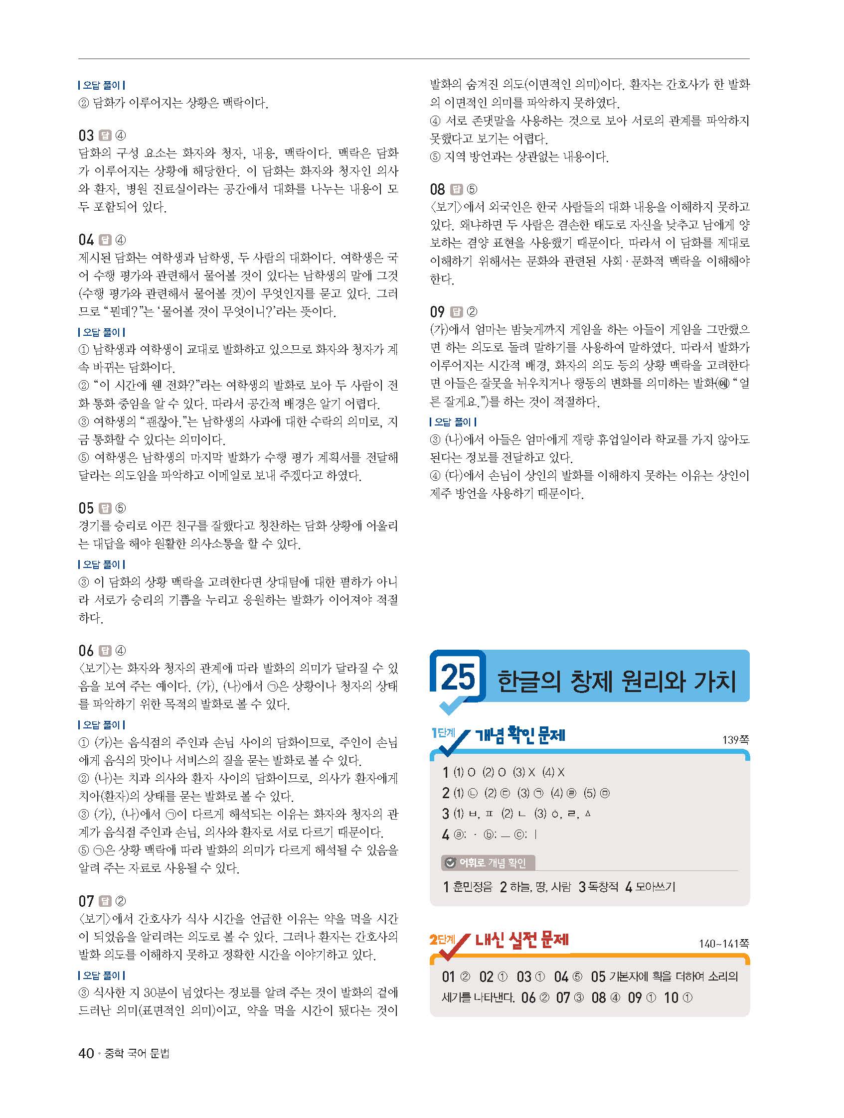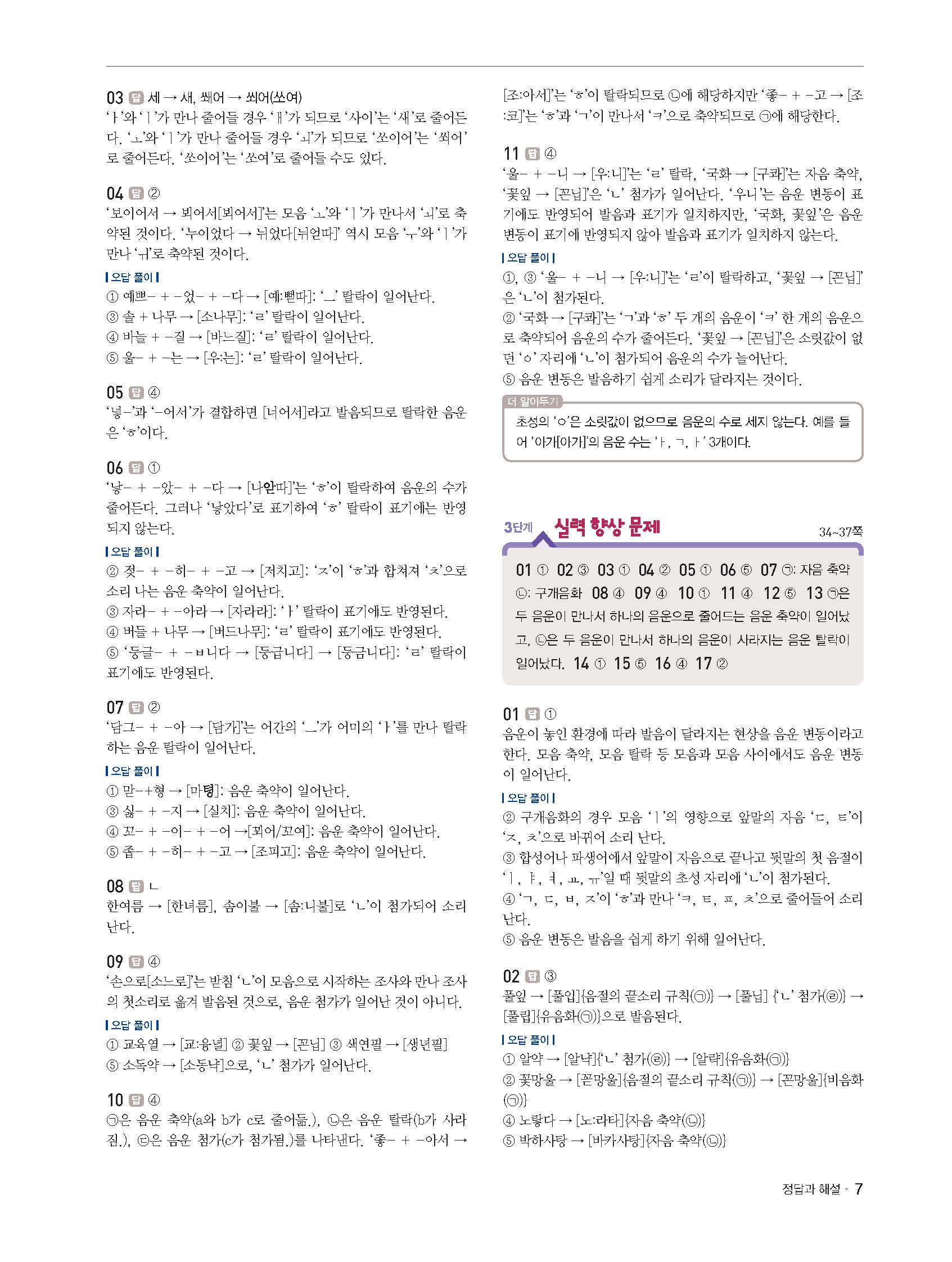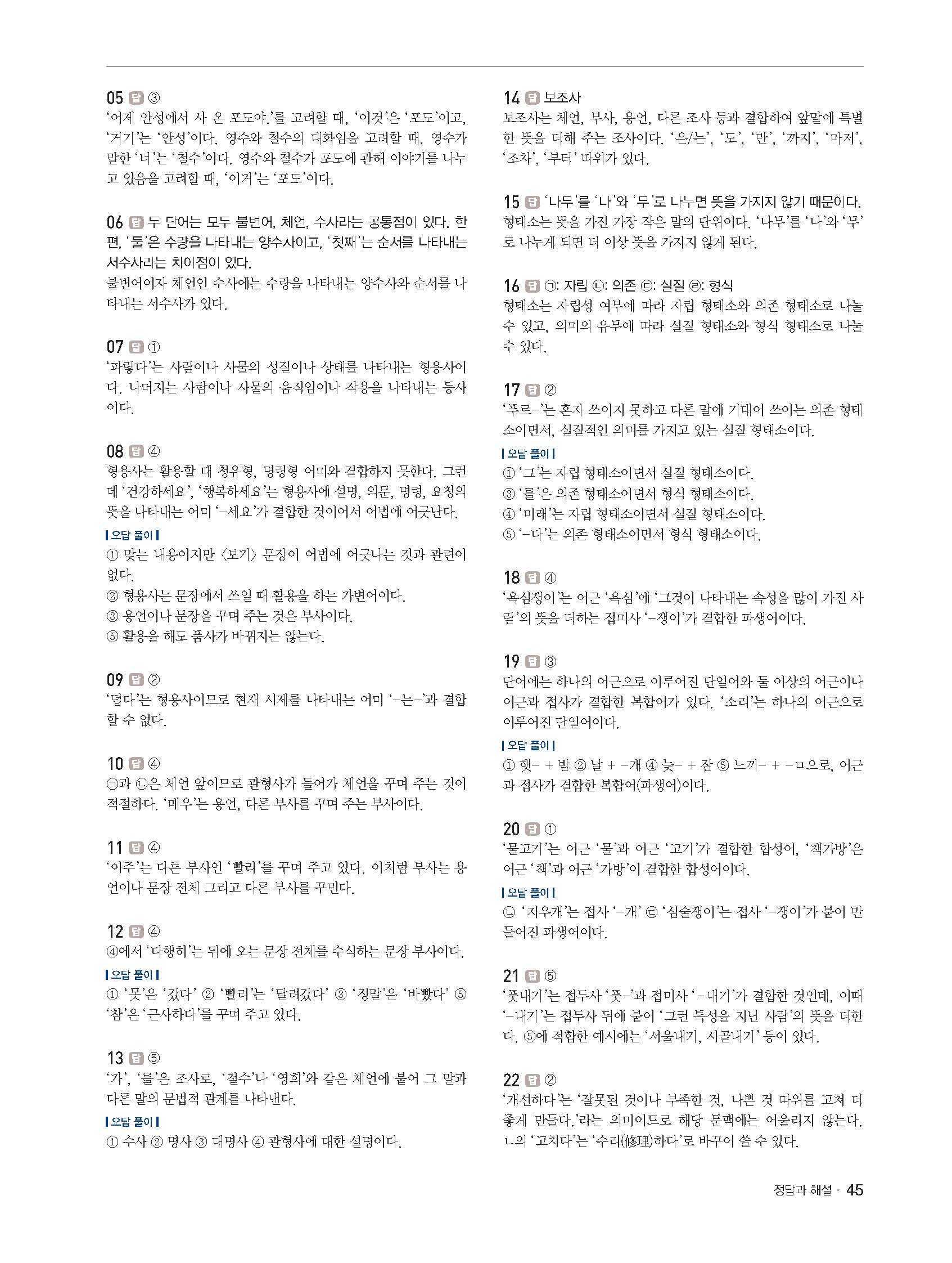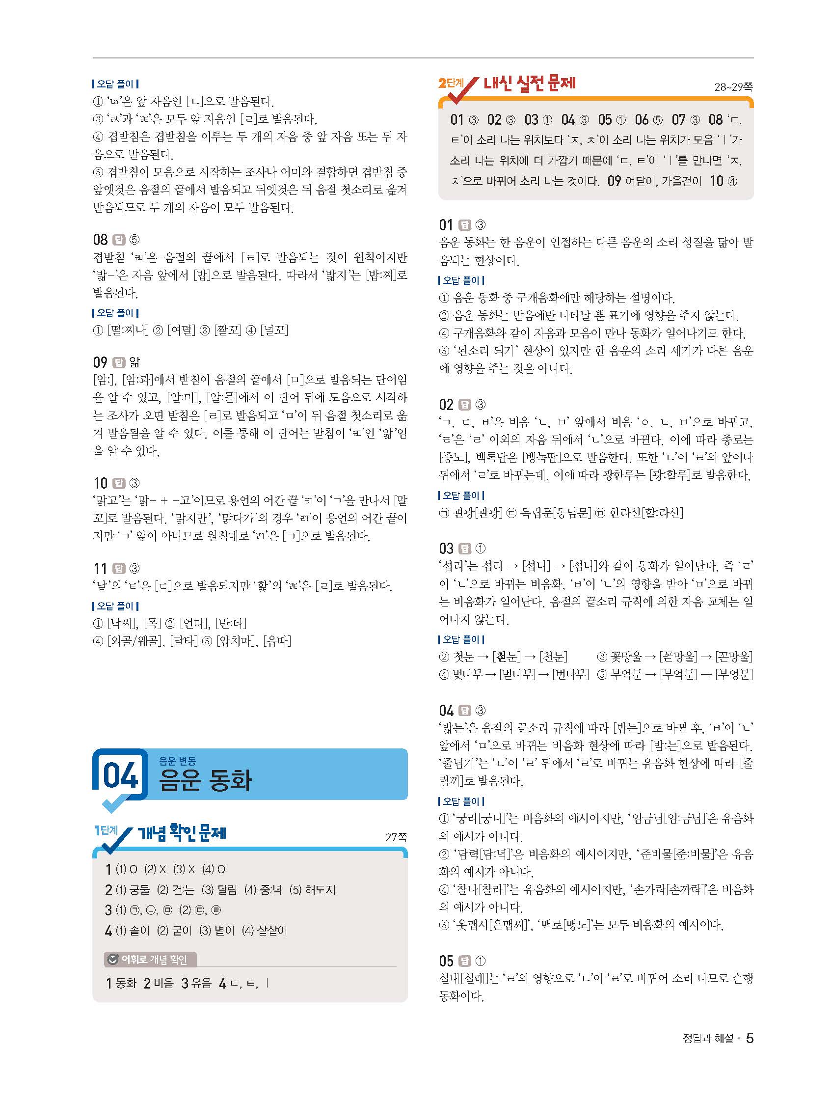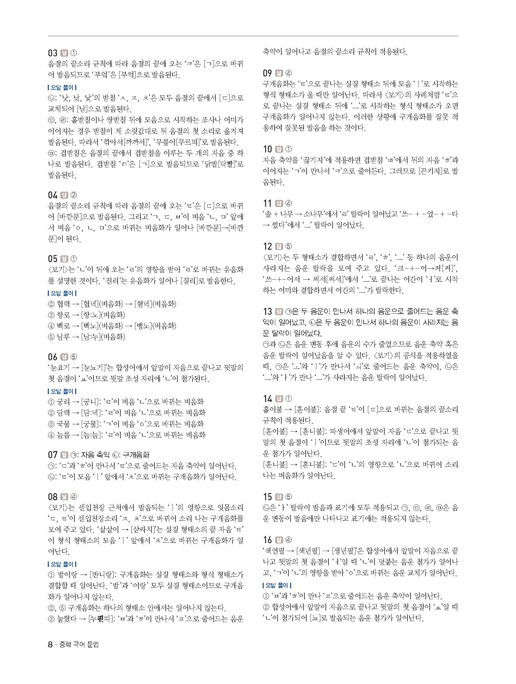 빠작 중등국어 문법 답지 해설지 사진답지 빠른답지 모바일최적화