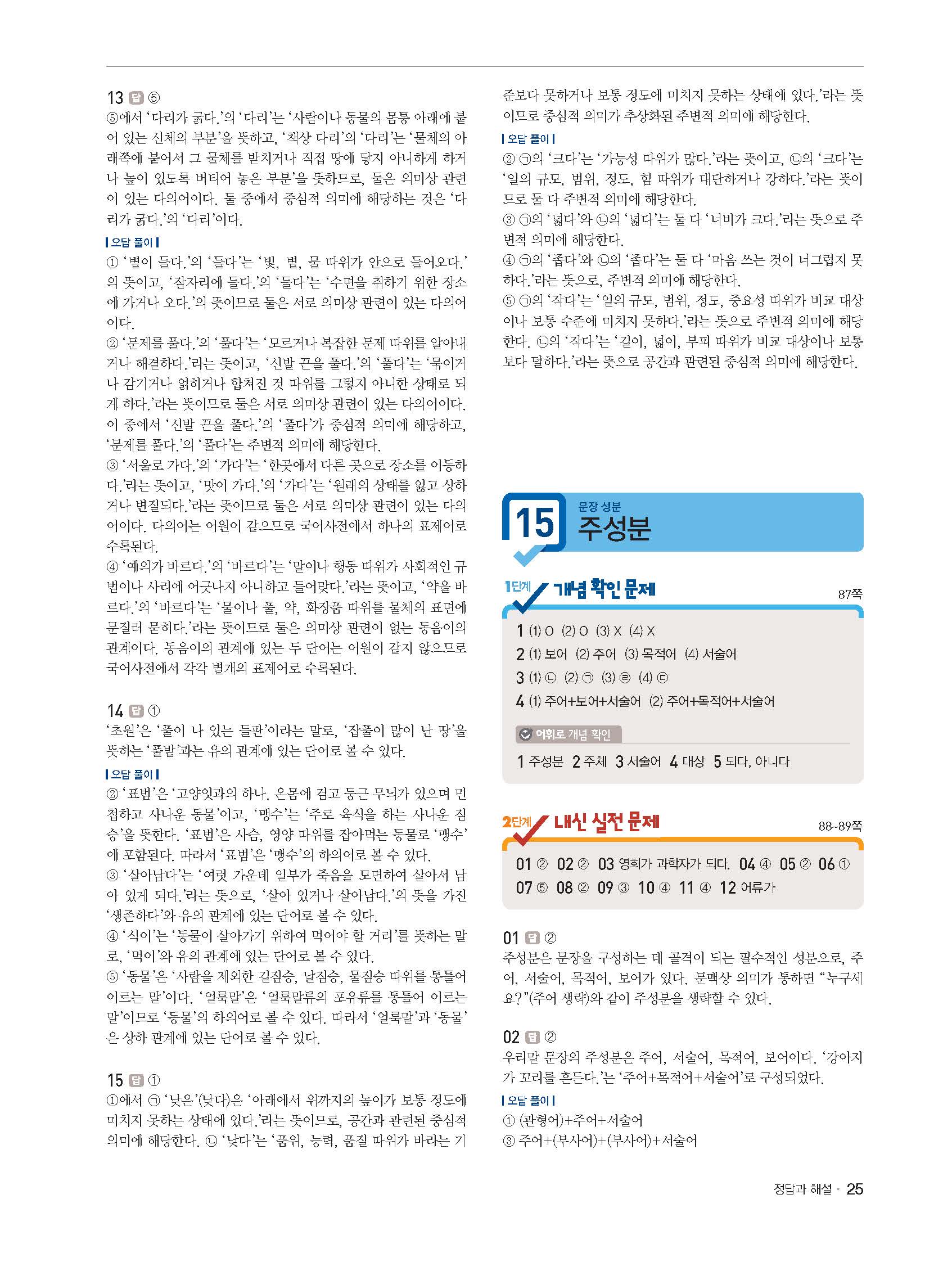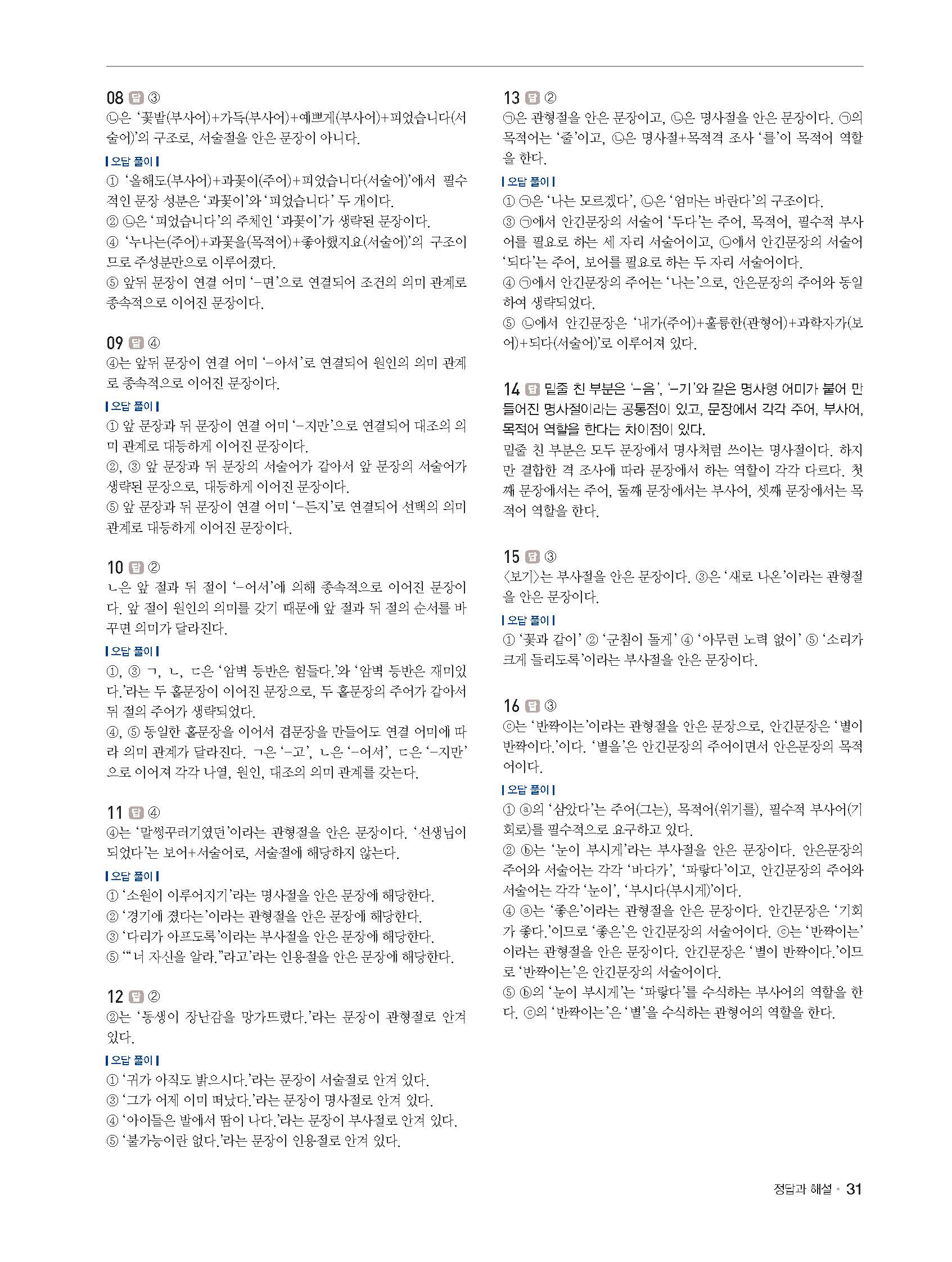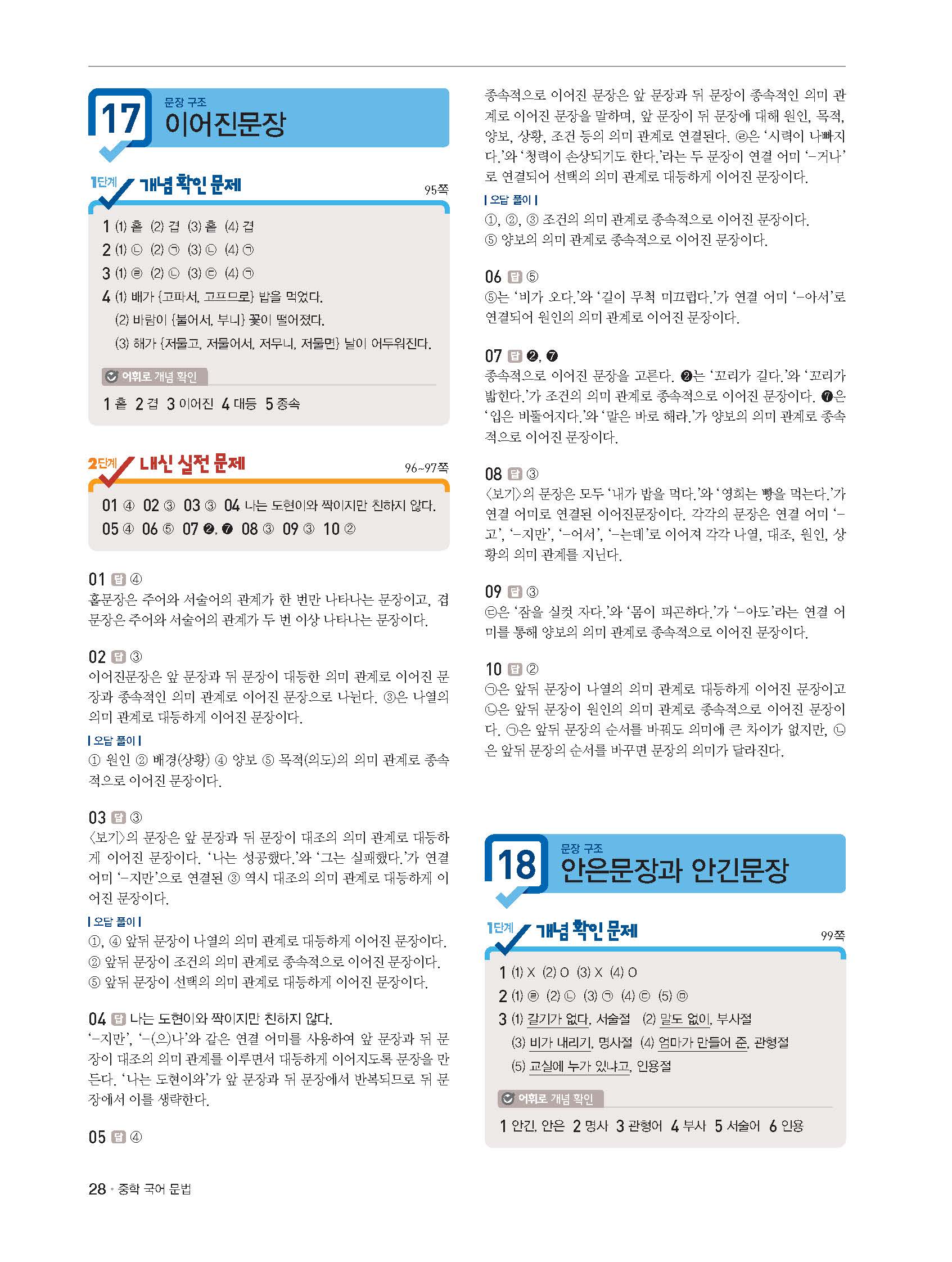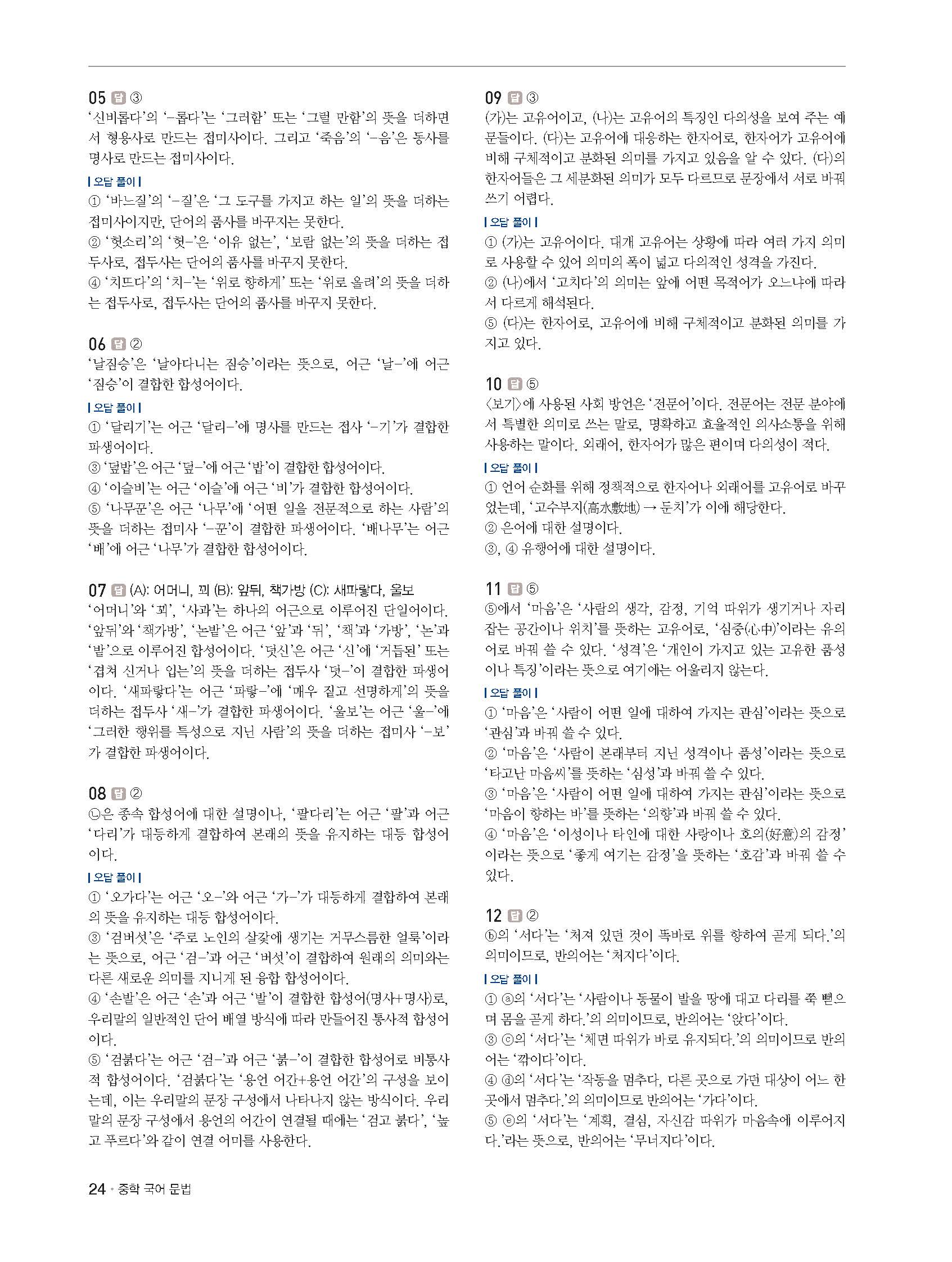 빠작 중등국어 문법 답지 해설지 사진답지 빠른답지 모바일최적화