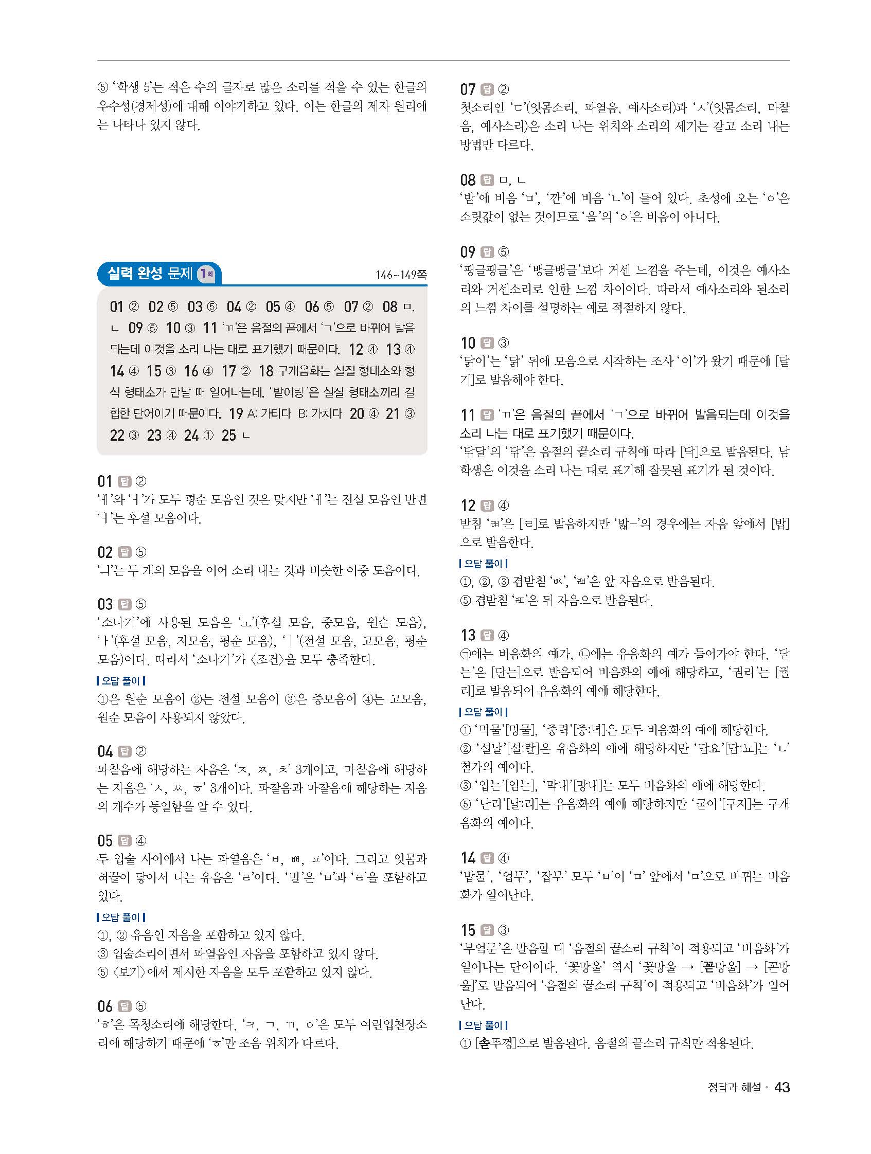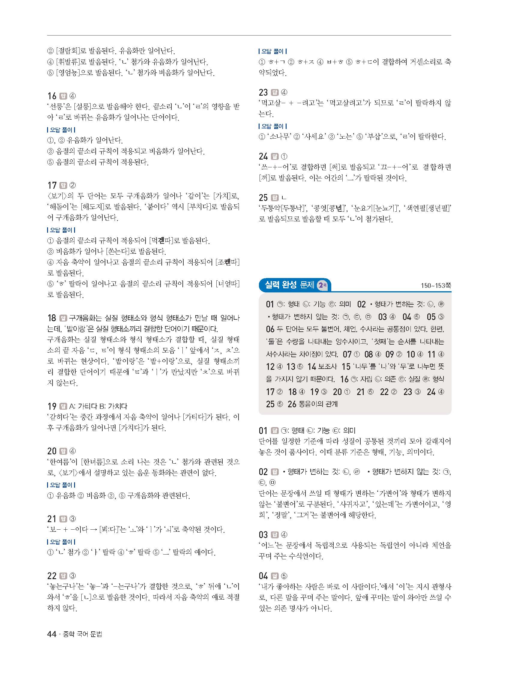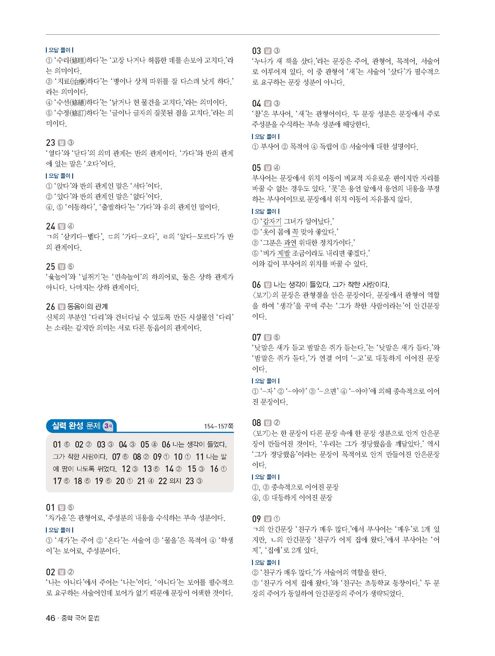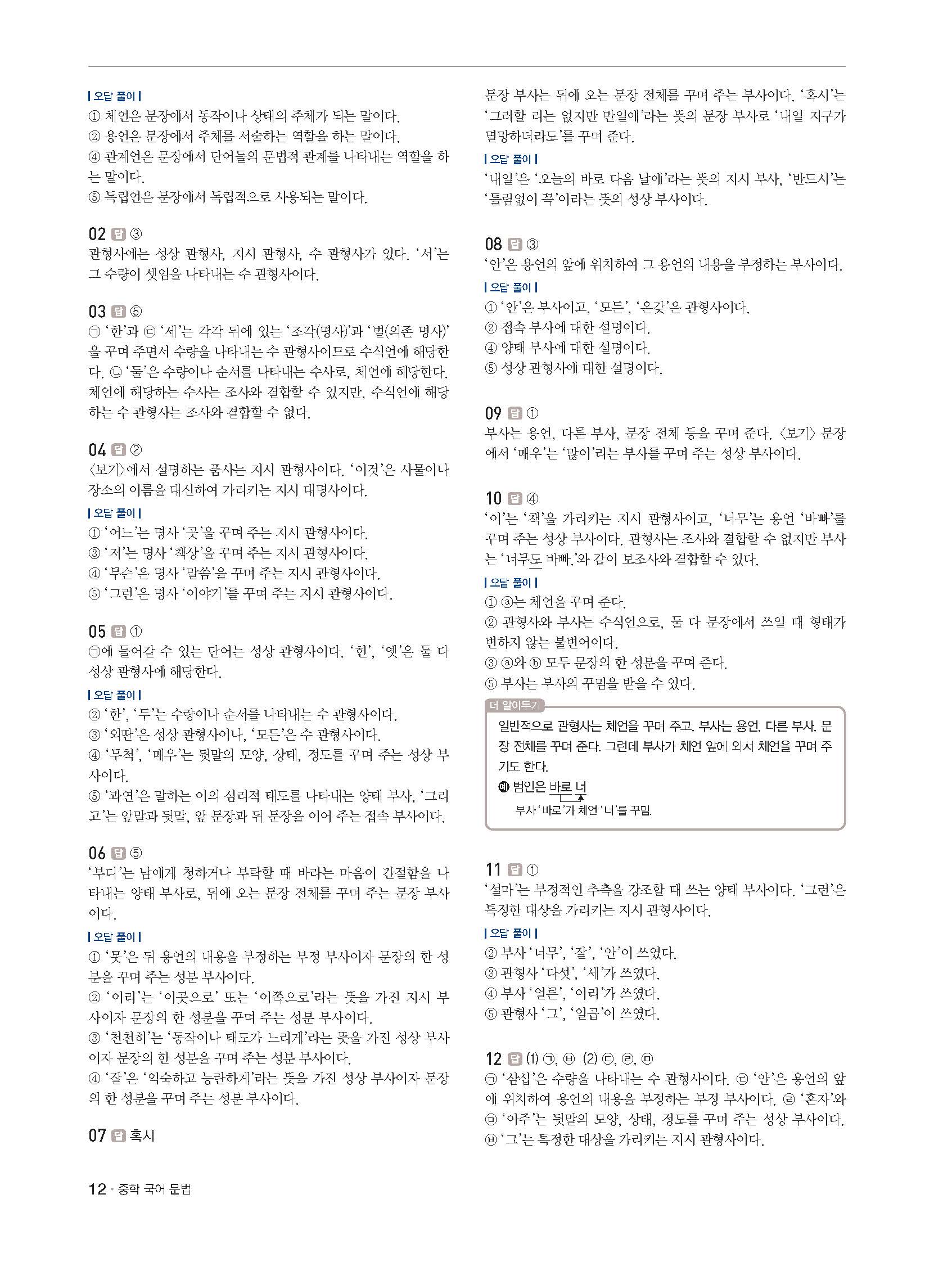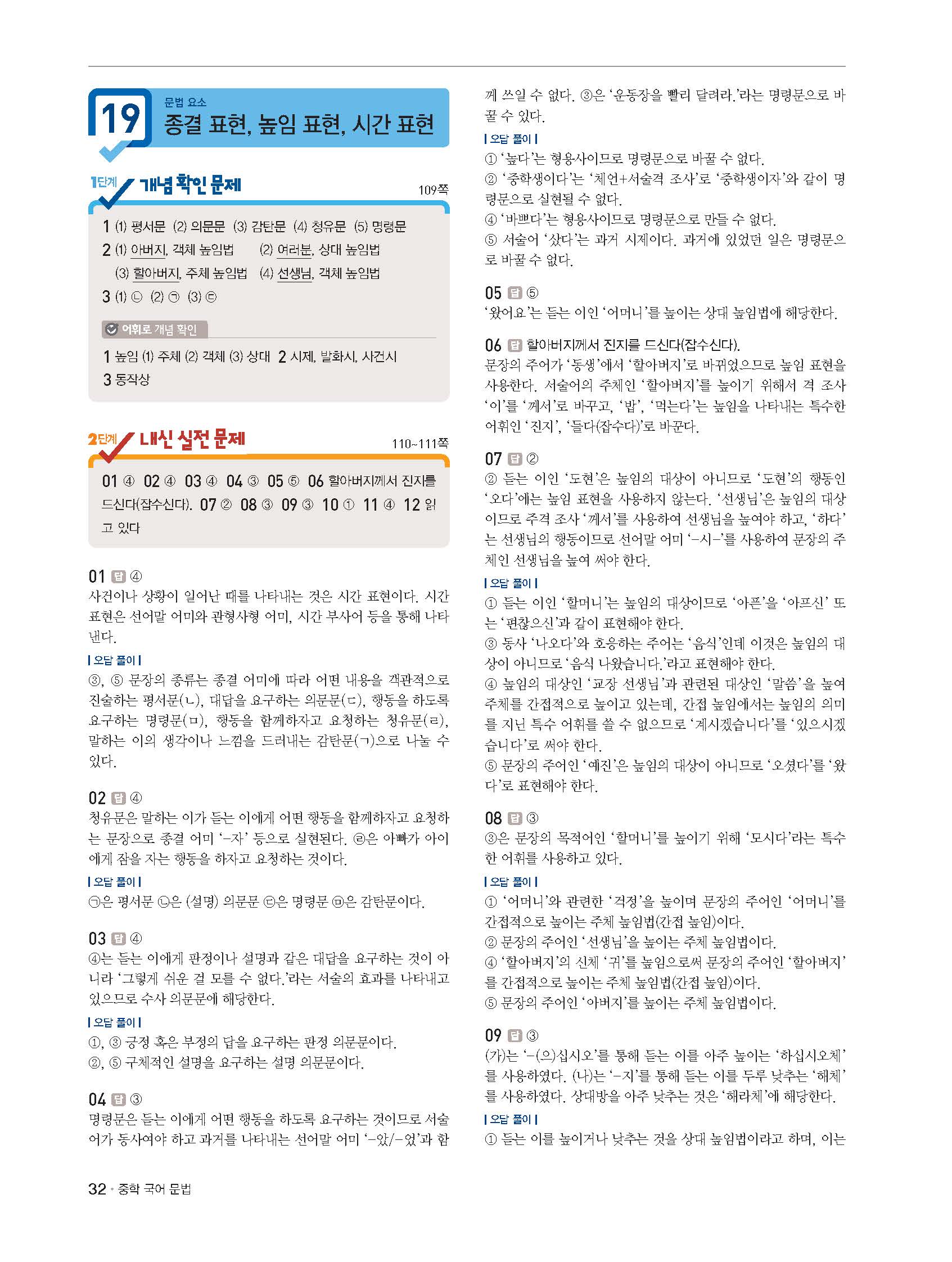 빠작 중등국어 문법 답지 해설지 사진답지 빠른답지 모바일최적화