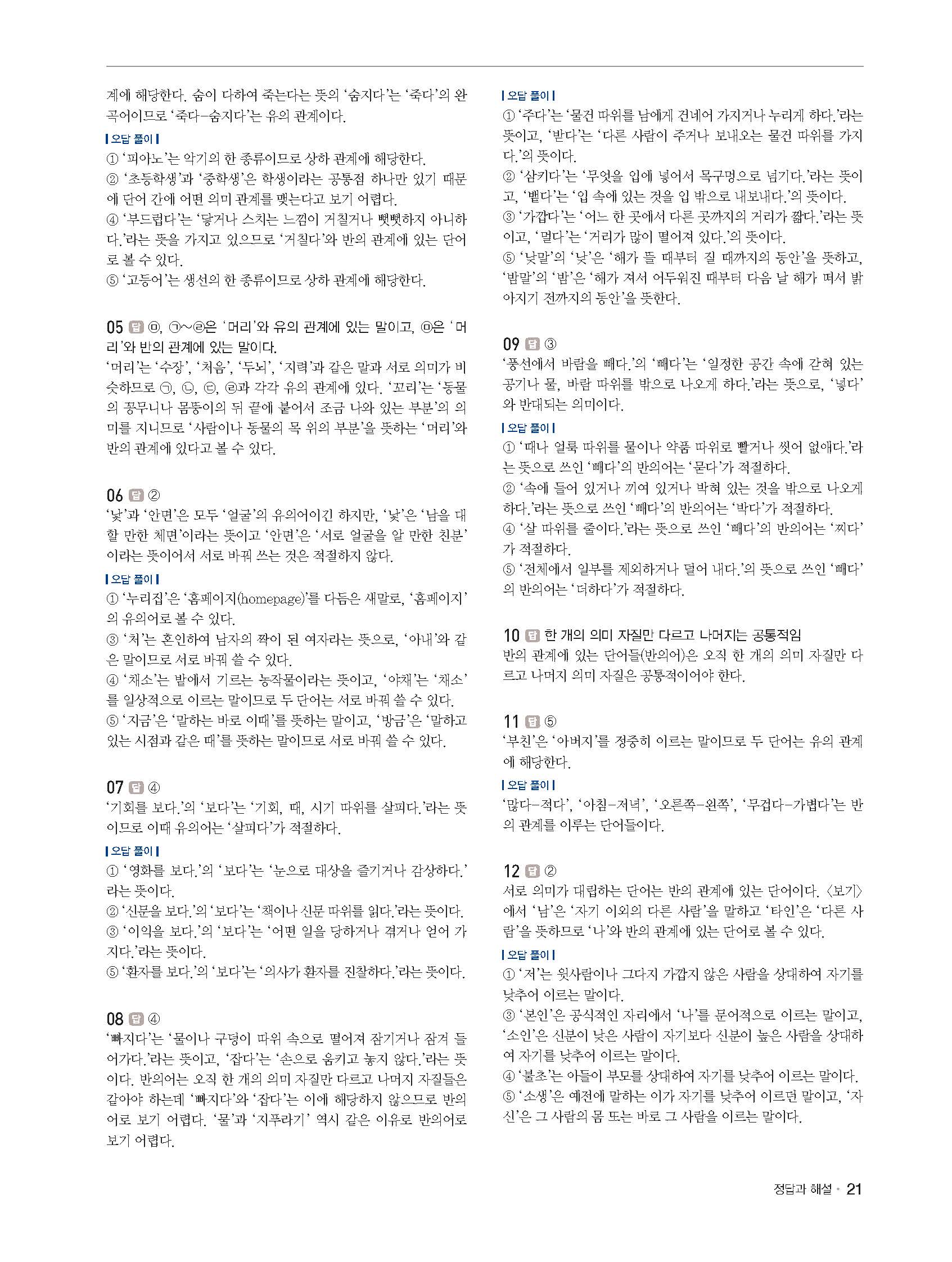 다운로드 받을필요 없이 바로 볼수 있는 모바일에 최적화된 답지 입니다