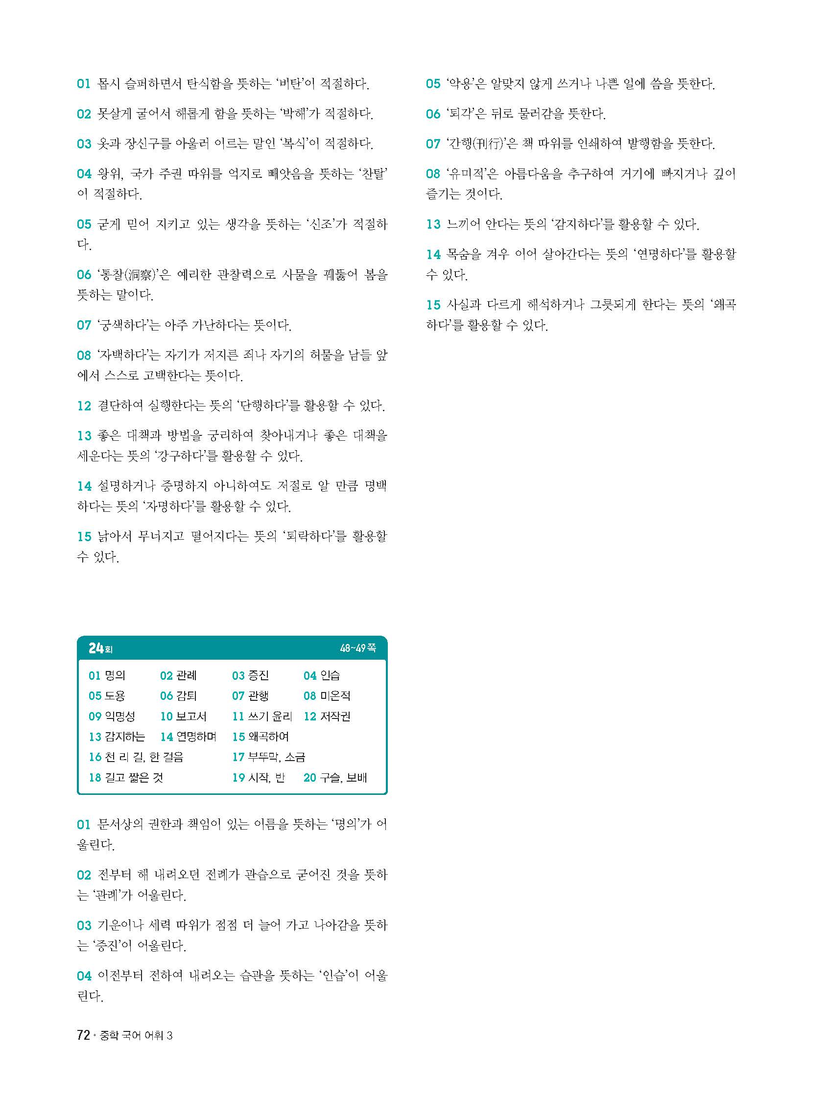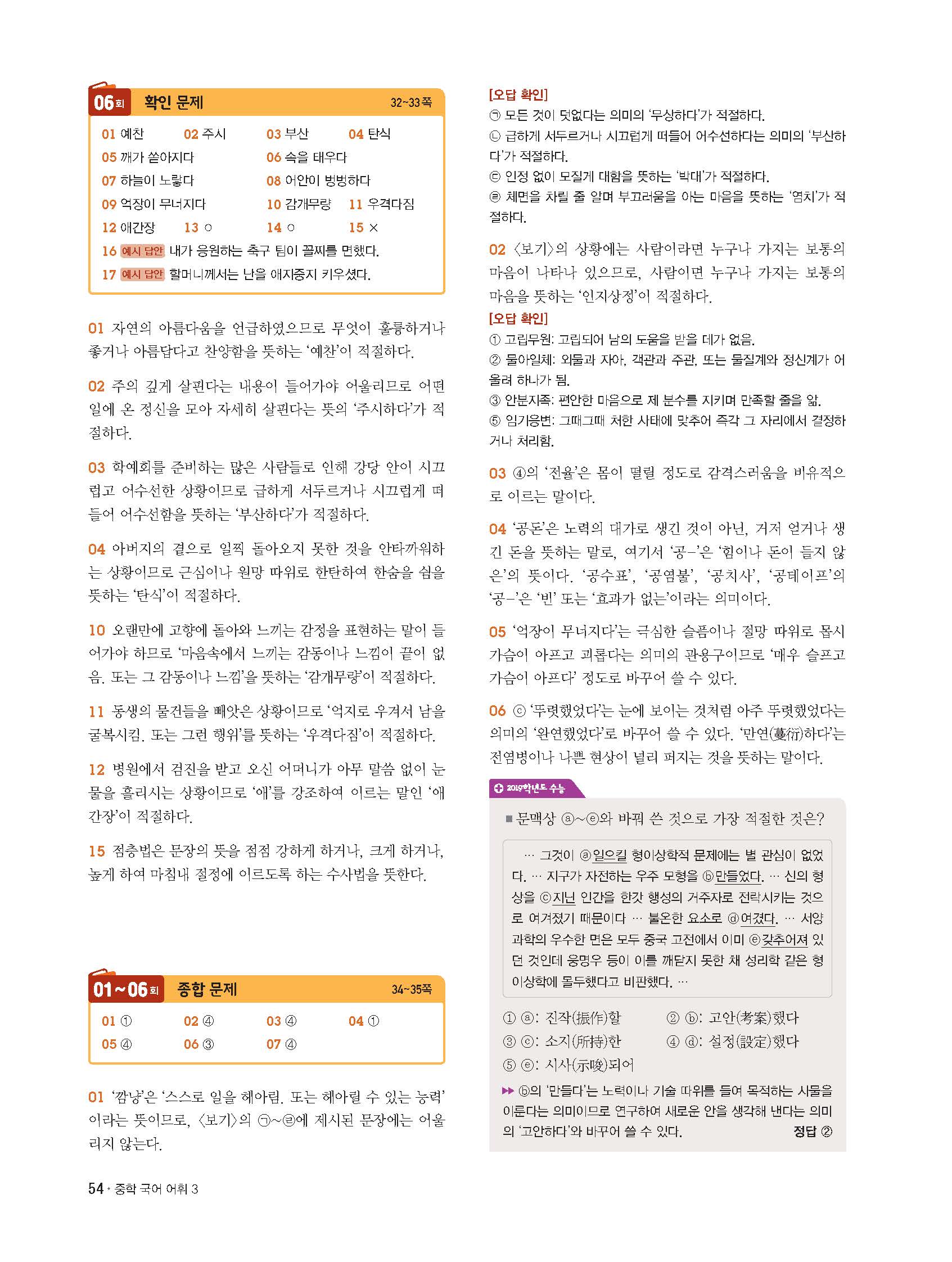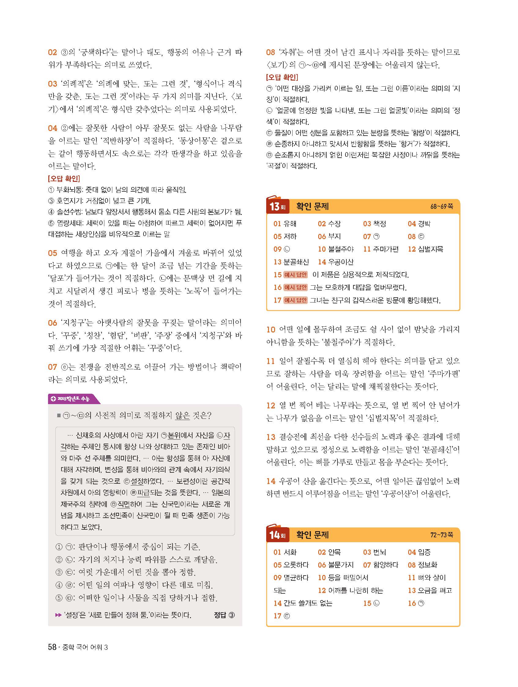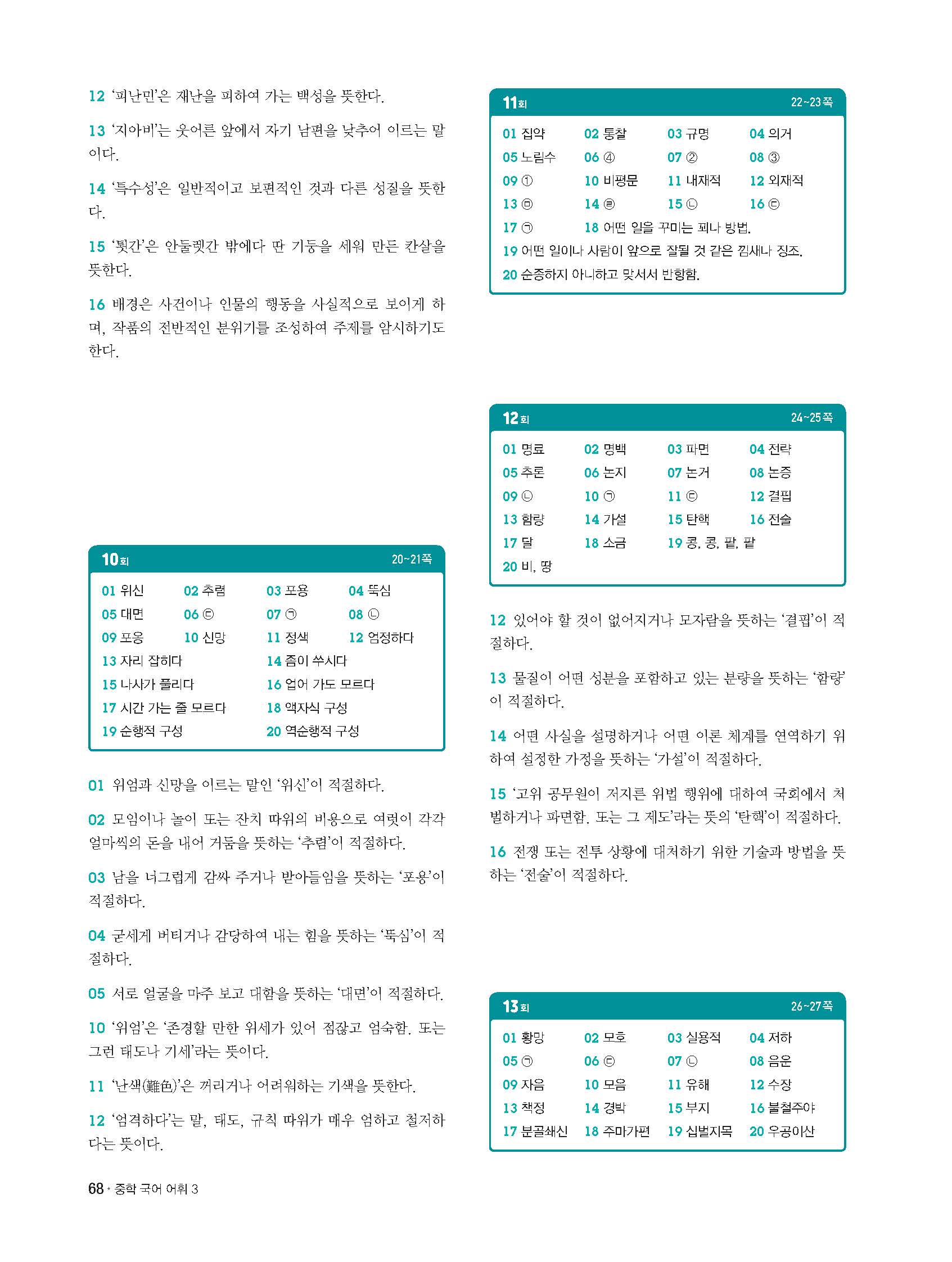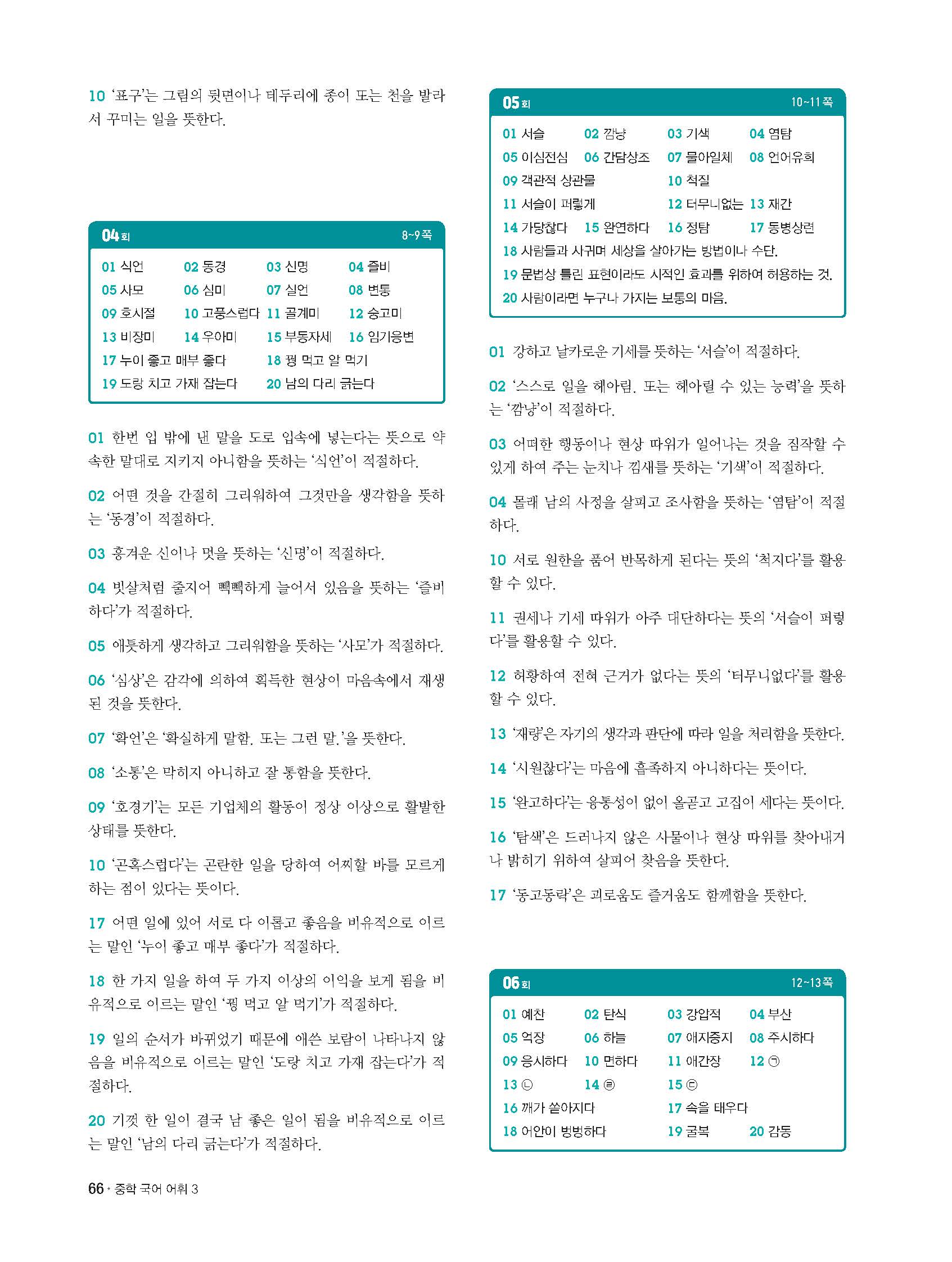 빠작 중학국어 어휘 3권 답지 해설지 사진답지 빠른답지 모바일최적화